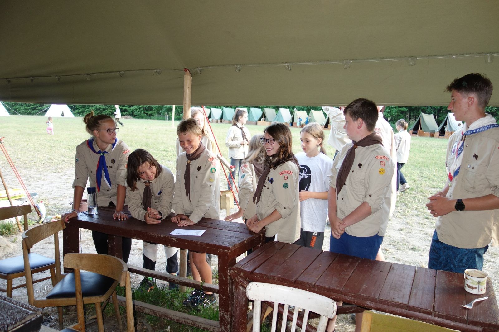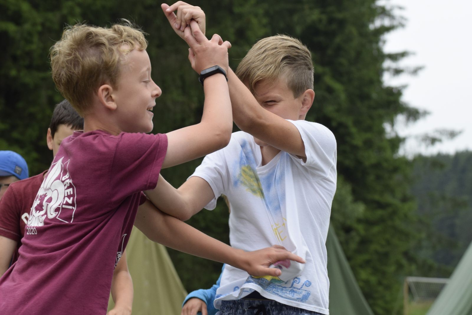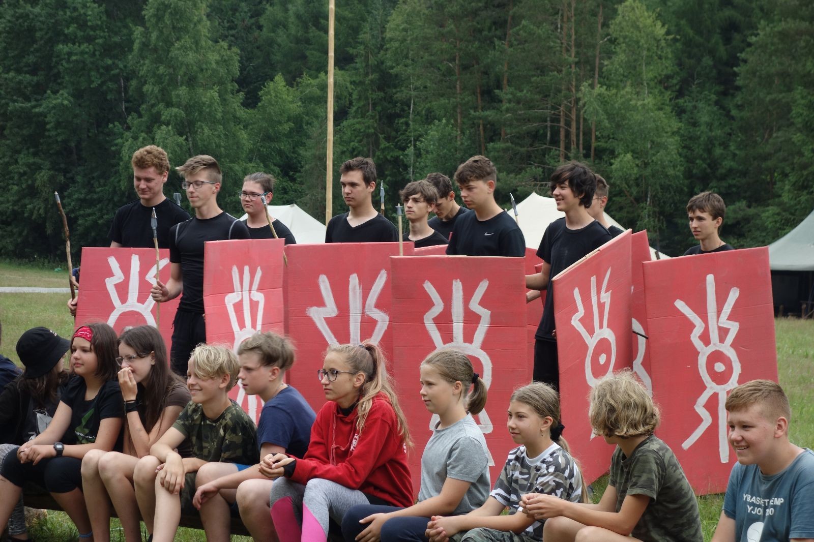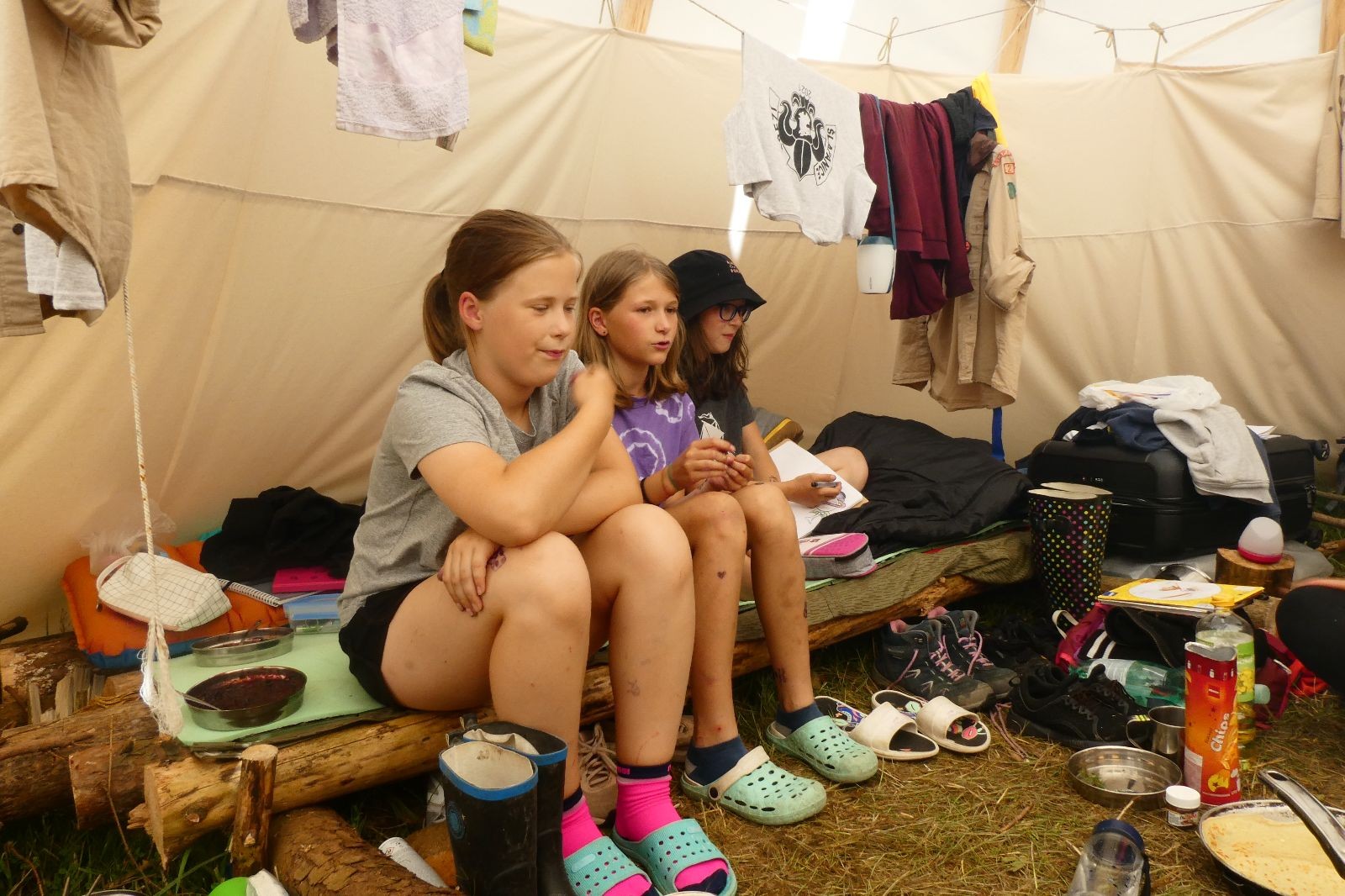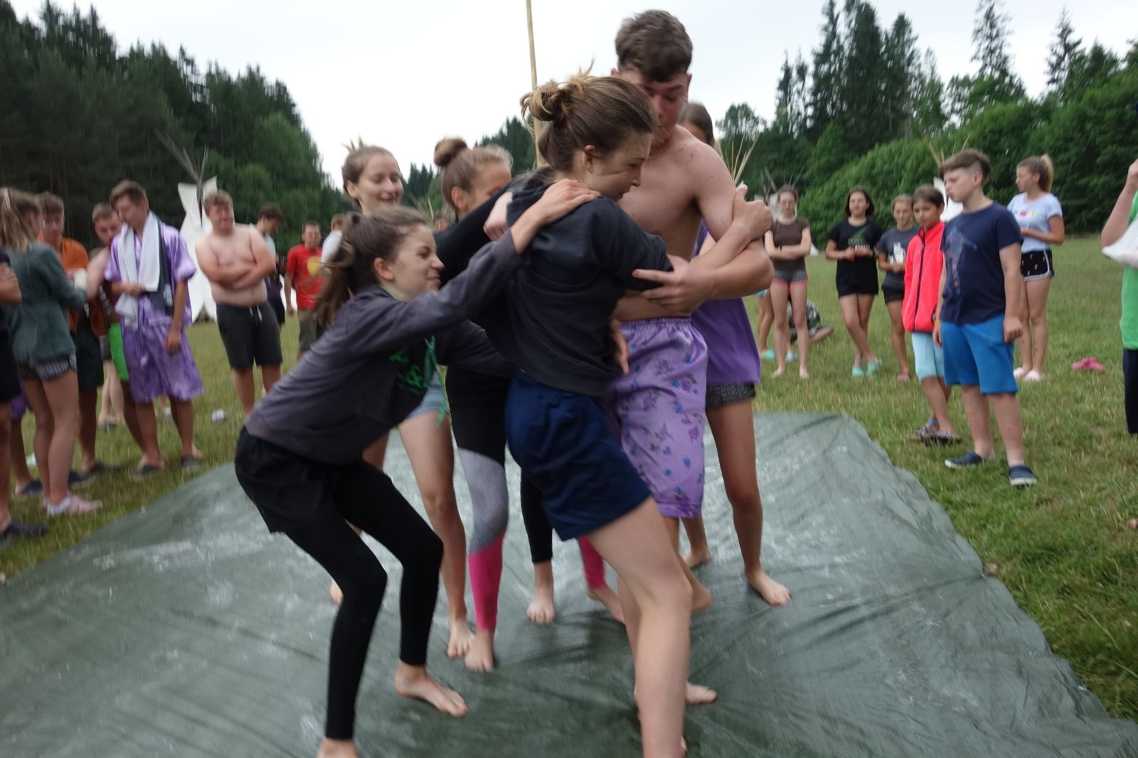 Noční přepad nám opět trošku zvětšil táborový spánkový deficit, ale co, zážitek to byl. Den se rozjíždí piánko – budíček, rozcvička, snídaně, bodování úklidu… A pak: souboje na mýdlové ploše. To je kultovní oddílová soutěž, kterou si obzvláště starší neskutečně užívají. Mladší mezi tím hrají hru v lese. Na oběd máme těstoviny s kečupem a sýrem, po poledním klidu následuje družinový program. Kulinářské zážitky, cesty do okolí tábora, koupání v přehradě, plavba na loďkách na rybníku…co družinka to dobrý nápad. Večer po sněmu zkoušíme novinku – stolní hry. Každý vedoucí má nějakou hru na starost a zájemci si můžou přijít zahrát. Vypadá to, že novinka se osvědčila.