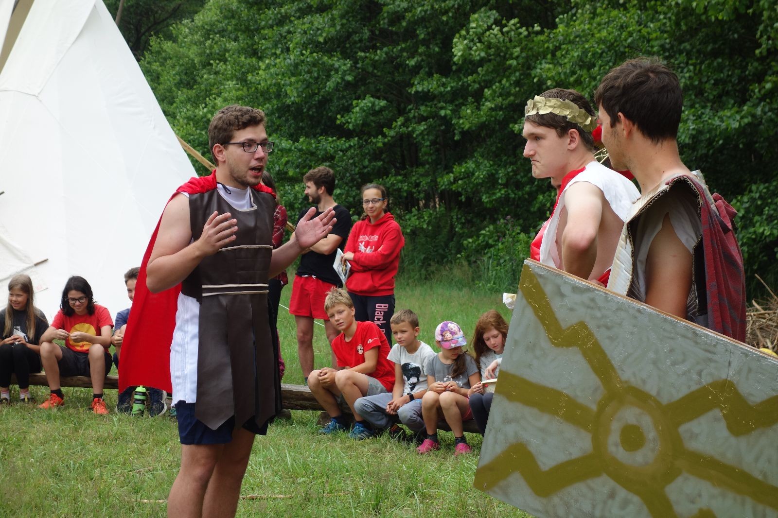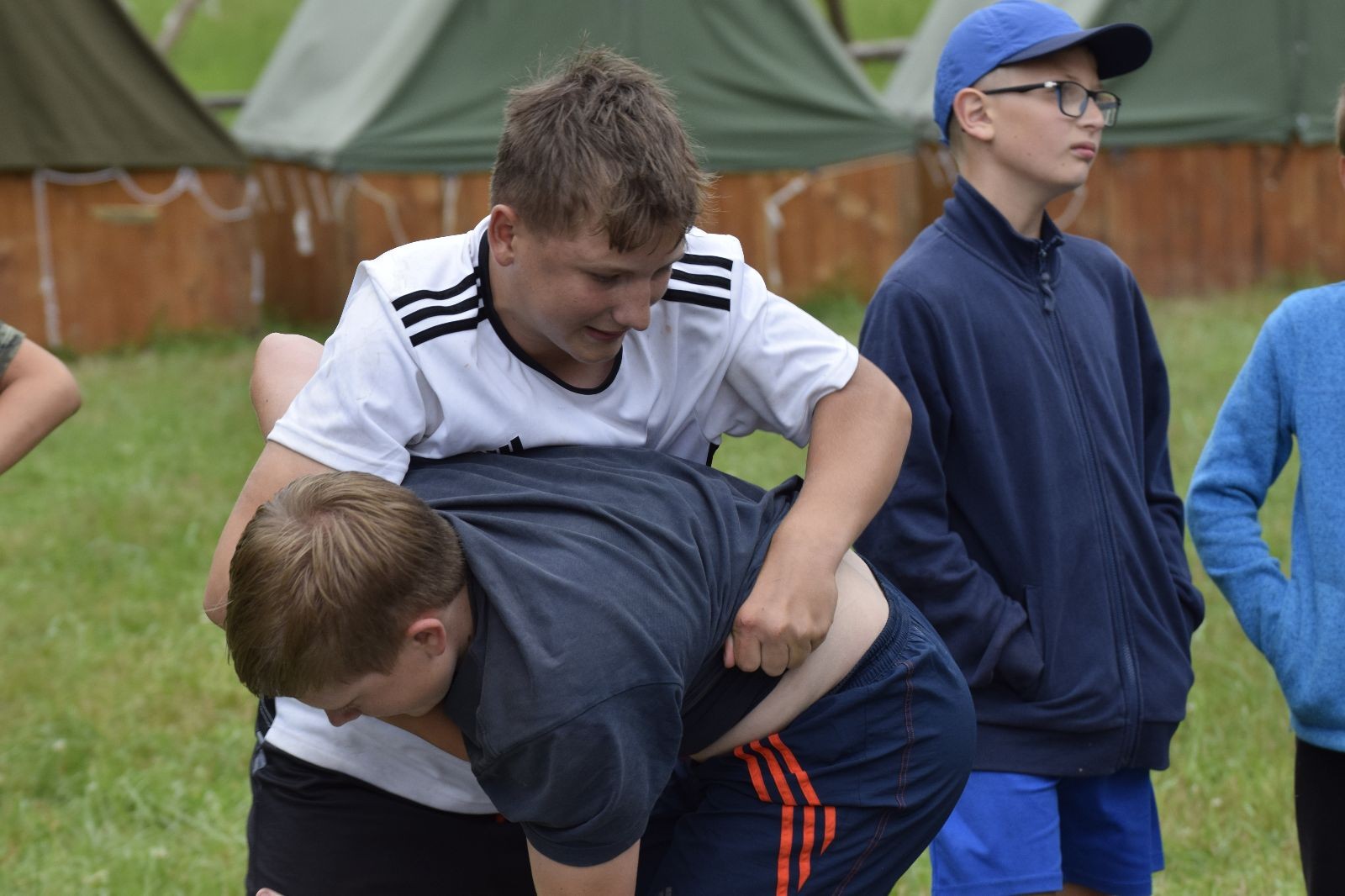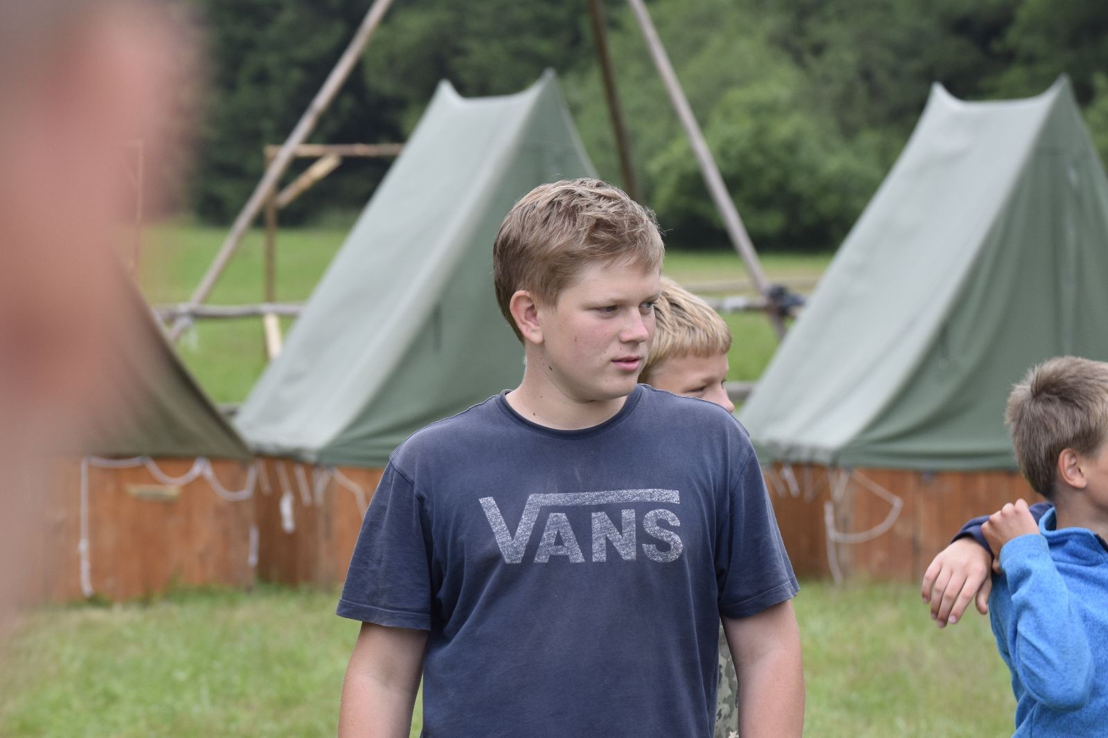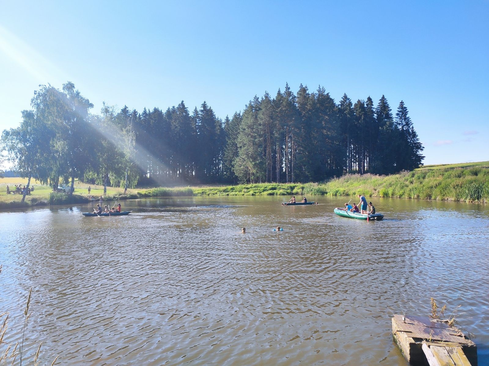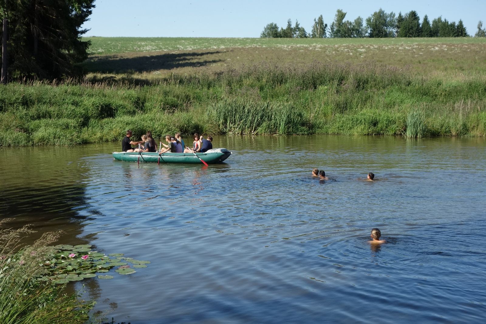 Noční přepad nám opět trošku zvětšil táborový spánkový deficit, ale co, zážitek to byl. Den se rozjíždí piánko – budíček, rozcvička, snídaně, bodování úklidu… A pak: souboje na mýdlové ploše. To je kultovní oddílová soutěž, kterou si obzvláště starší neskutečně užívají. Mladší mezi tím hrají hru v lese. Na oběd máme těstoviny s kečupem a sýrem, po poledním klidu následuje družinový program. Kulinářské zážitky, cesty do okolí tábora, koupání v přehradě, plavba na loďkách na rybníku…co družinka to dobrý nápad. Večer po sněmu zkoušíme novinku – stolní hry. Každý vedoucí má nějakou hru na starost a zájemci si můžou přijít zahrát. Vypadá to, že novinka se osvědčila.