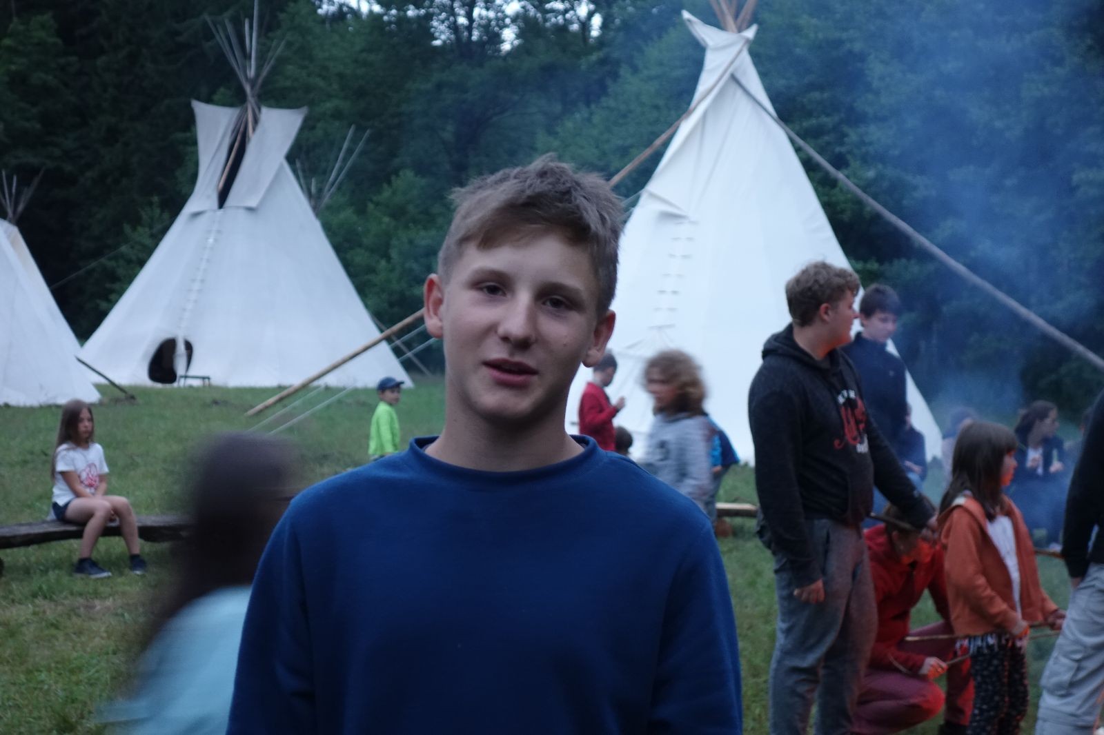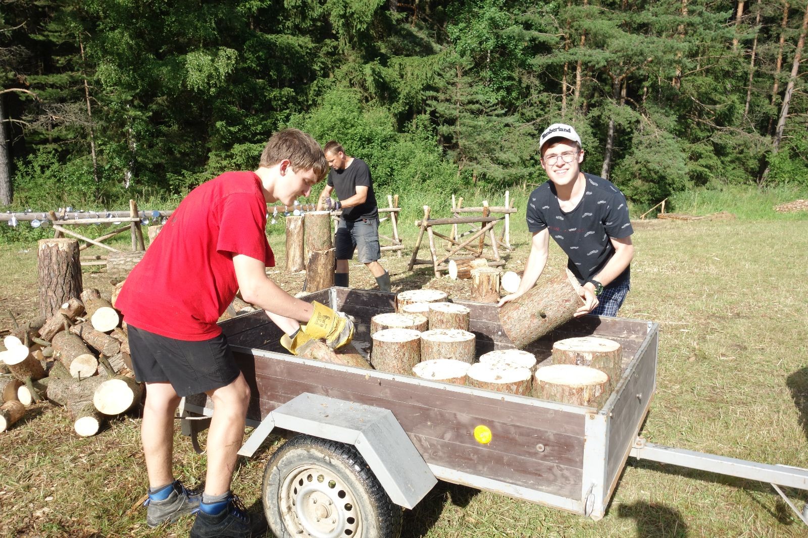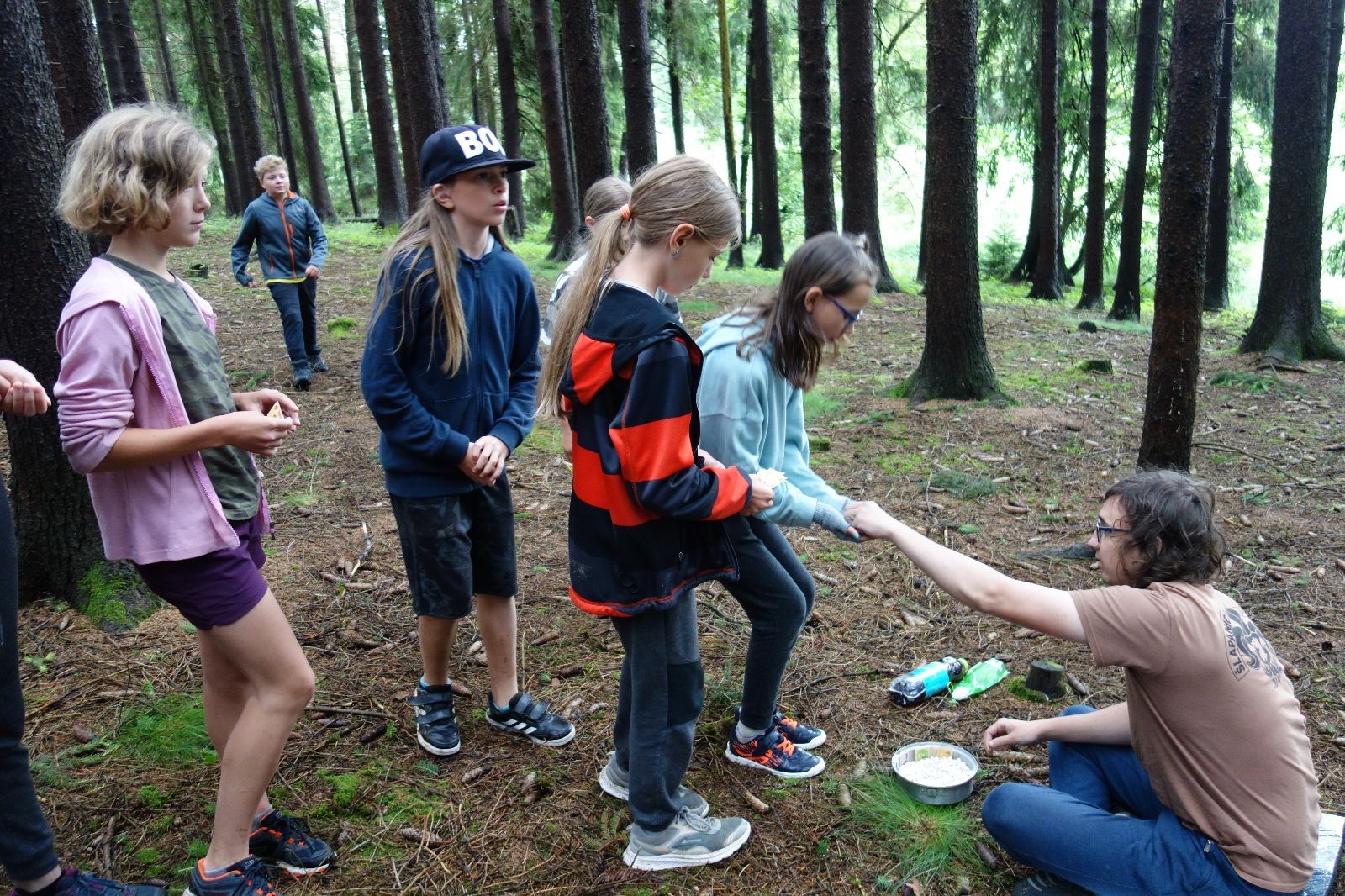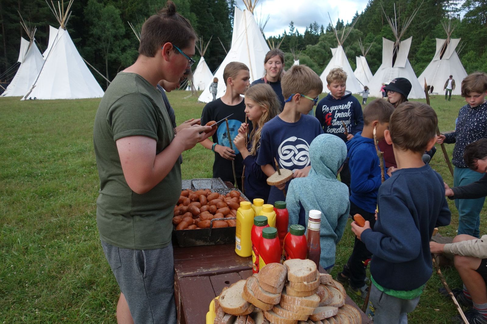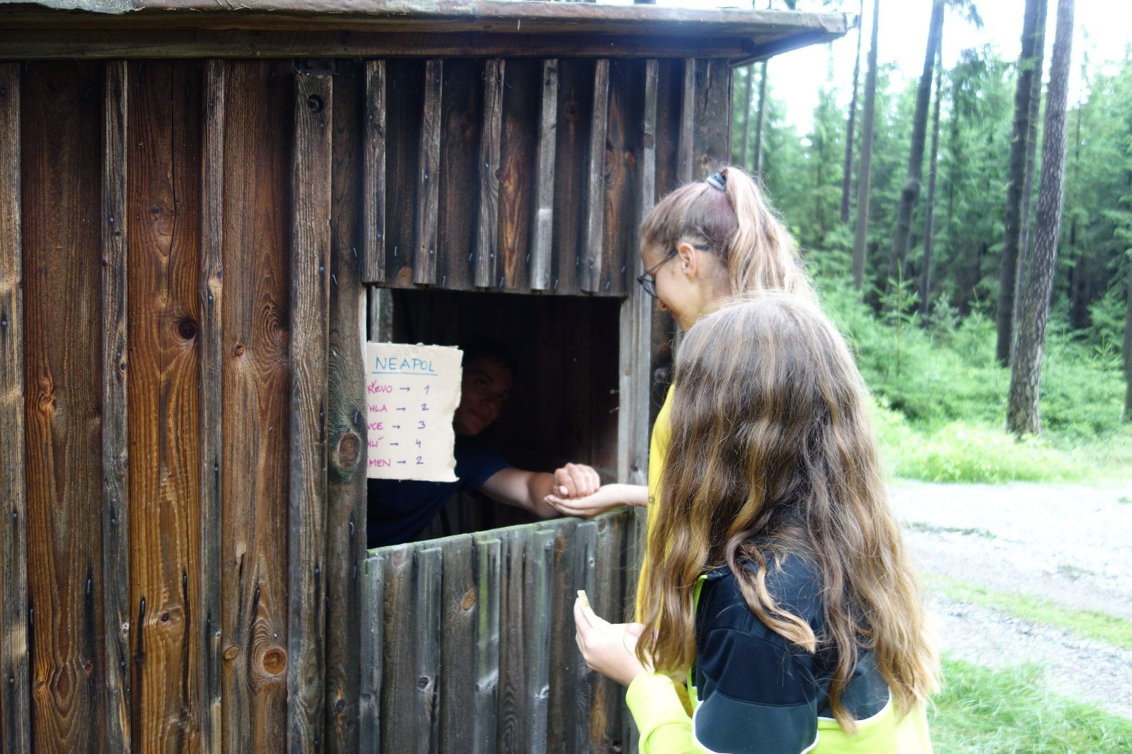 Tak aby toho nebylo málo, nad ránem přišla ještě bouřka třetí a vzala nás pěkně poctivě, středem. Od 3:40 do 3:50 to bylo, jako když otočíte kýbl. Blesky a hromy lítaly všude okolo. Všichni vedoucí a starší byli vzhůru, naopak většina mladších to v podsadách zaspala. Naštěstí ani tentokrát nefoukal žádný uragán a tak opět odneslo jen pár zmáčených věcí. Škody na životech či majetku nula nula nic. Ráno nesměle vykoukl oskárek a pak už nás provázel celým dnem stejně jako lehký vítr. Louka doslova vysychala před očima podobně jako věci na sušárnách. Dopoledne bylo věnováno lesní strategické hře „Přístavy“, mladší hráli „Riskuj“. V poledne do tábora dorazila šestice Svišťů a ulokovala se v podsadách. Odpoledne kromě etap mladších a starších probíhaly též hry se Svišti, doplnili jsme zásoby dřeva v kuchyni a dále sušili navlhlé věci. Večer oheň, písničky a opékání špekáčků. Usínali jsme s jasnou oblohou nad hlavou, hvězdy zářily. Pěkný rozdíl, proti minulé noci…