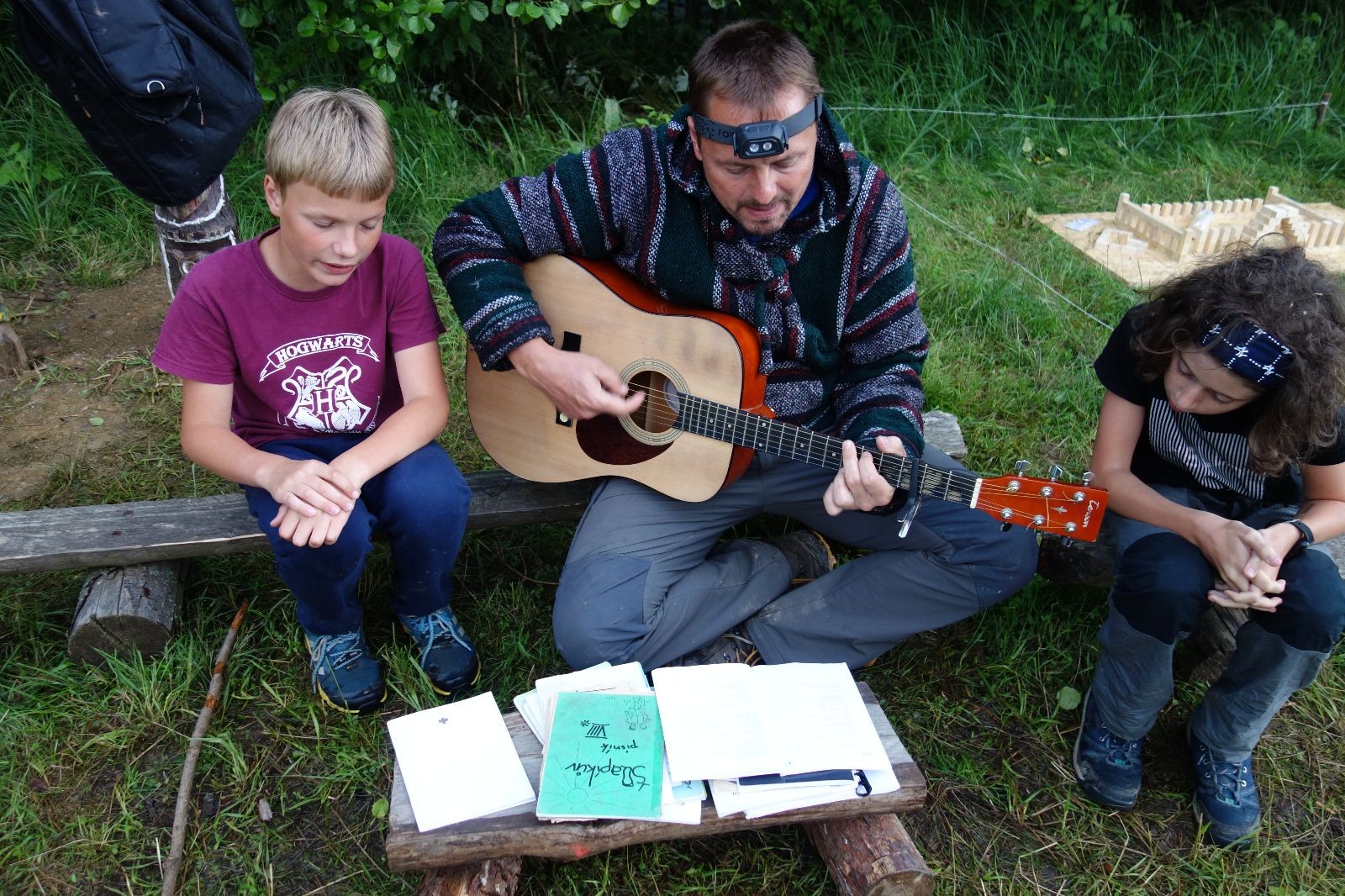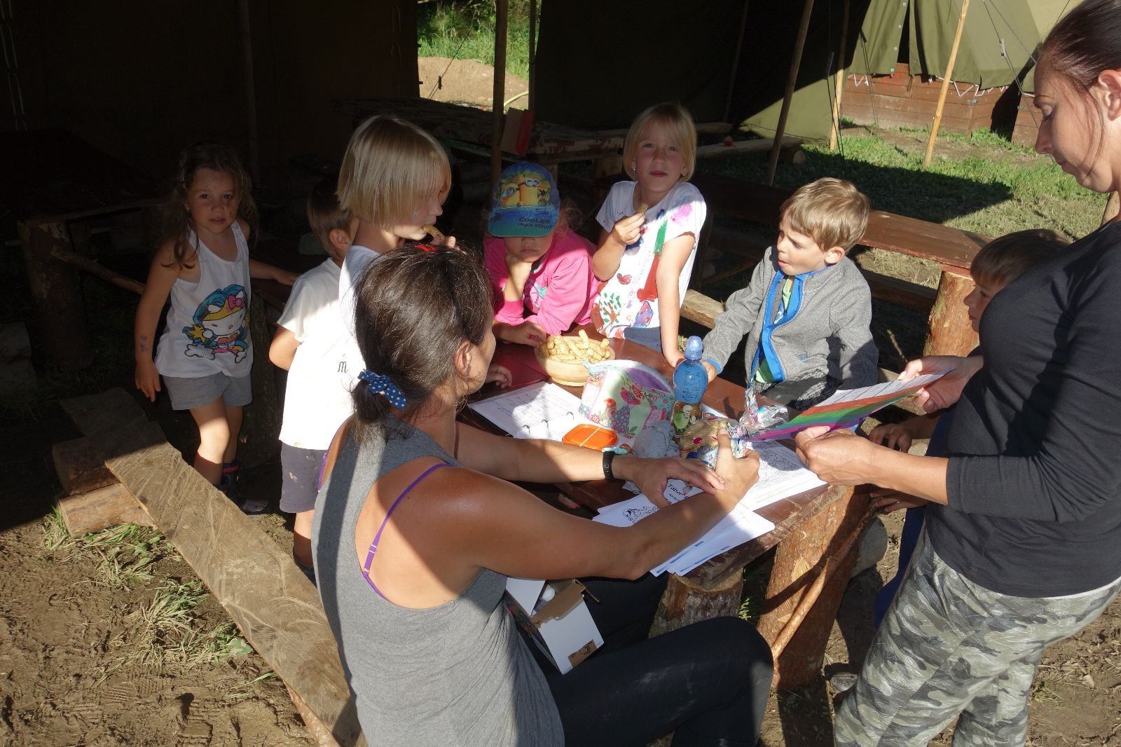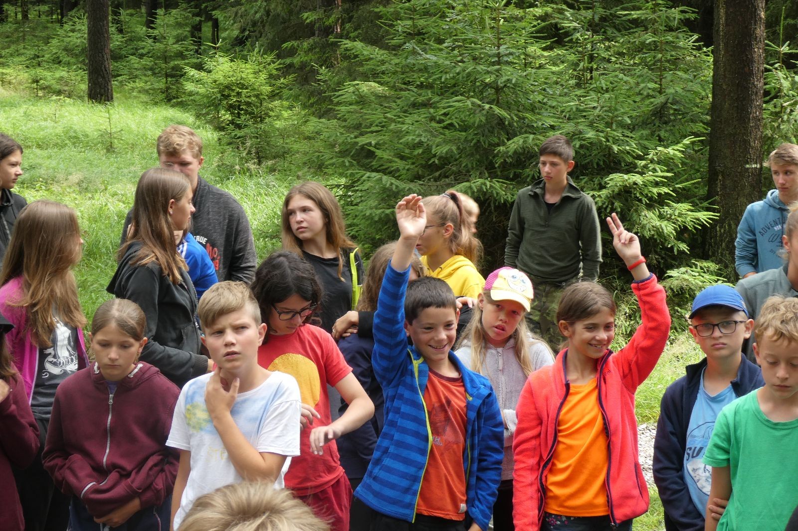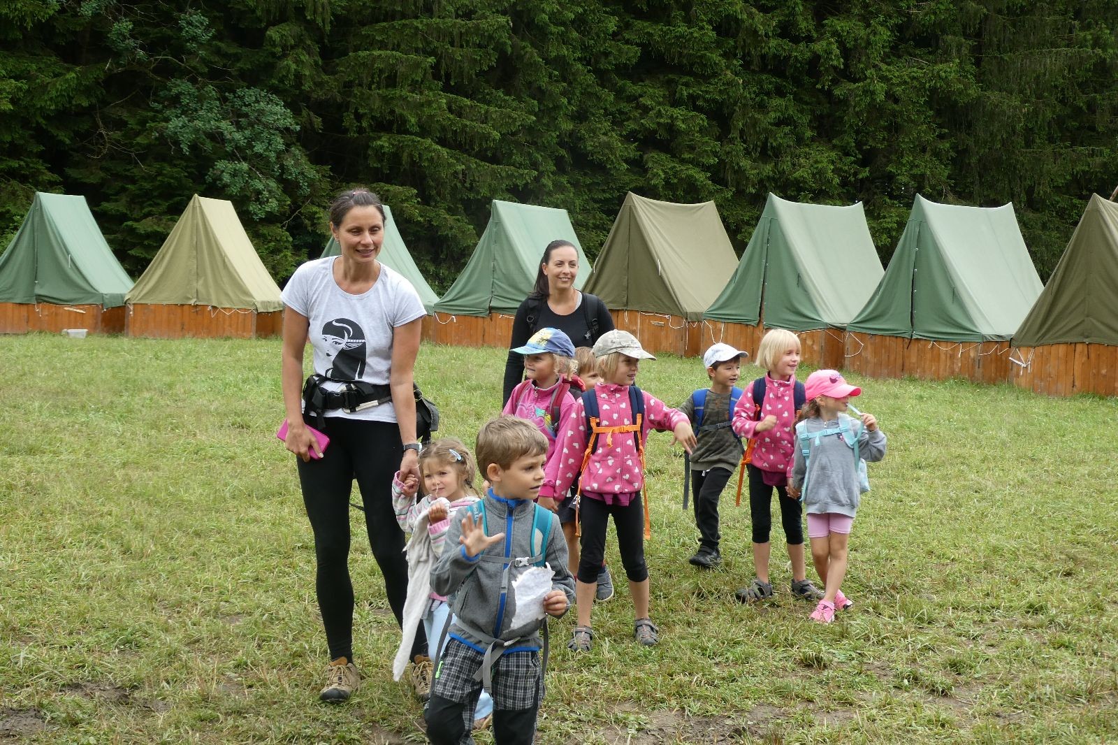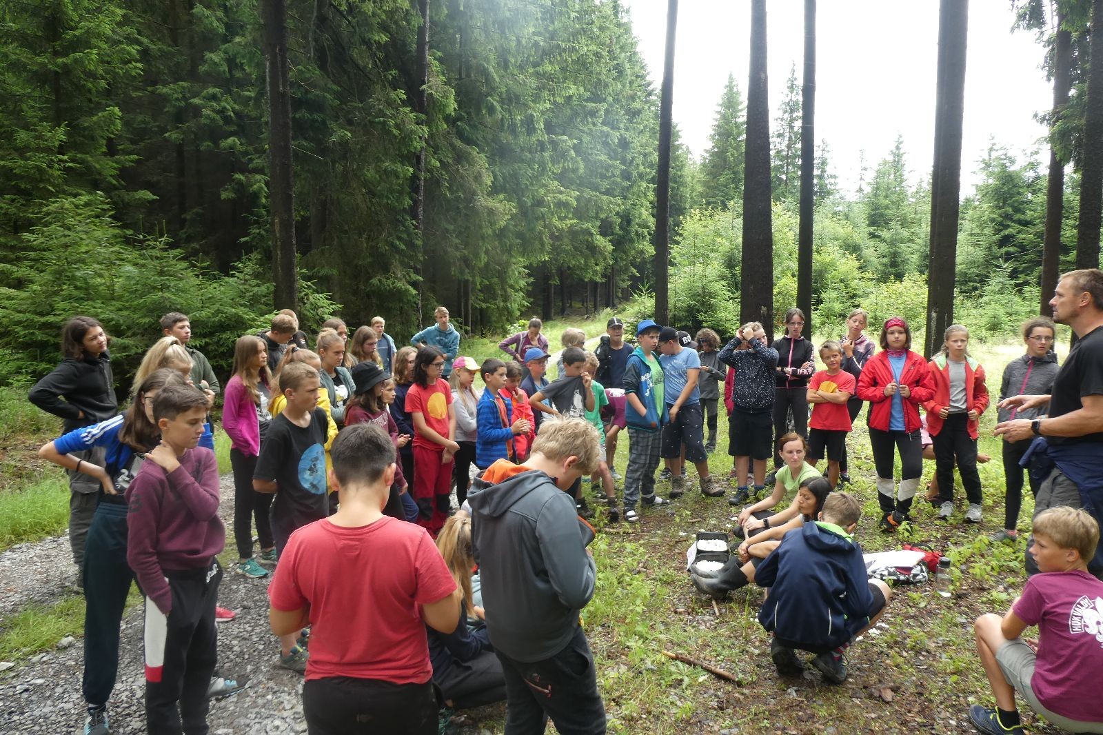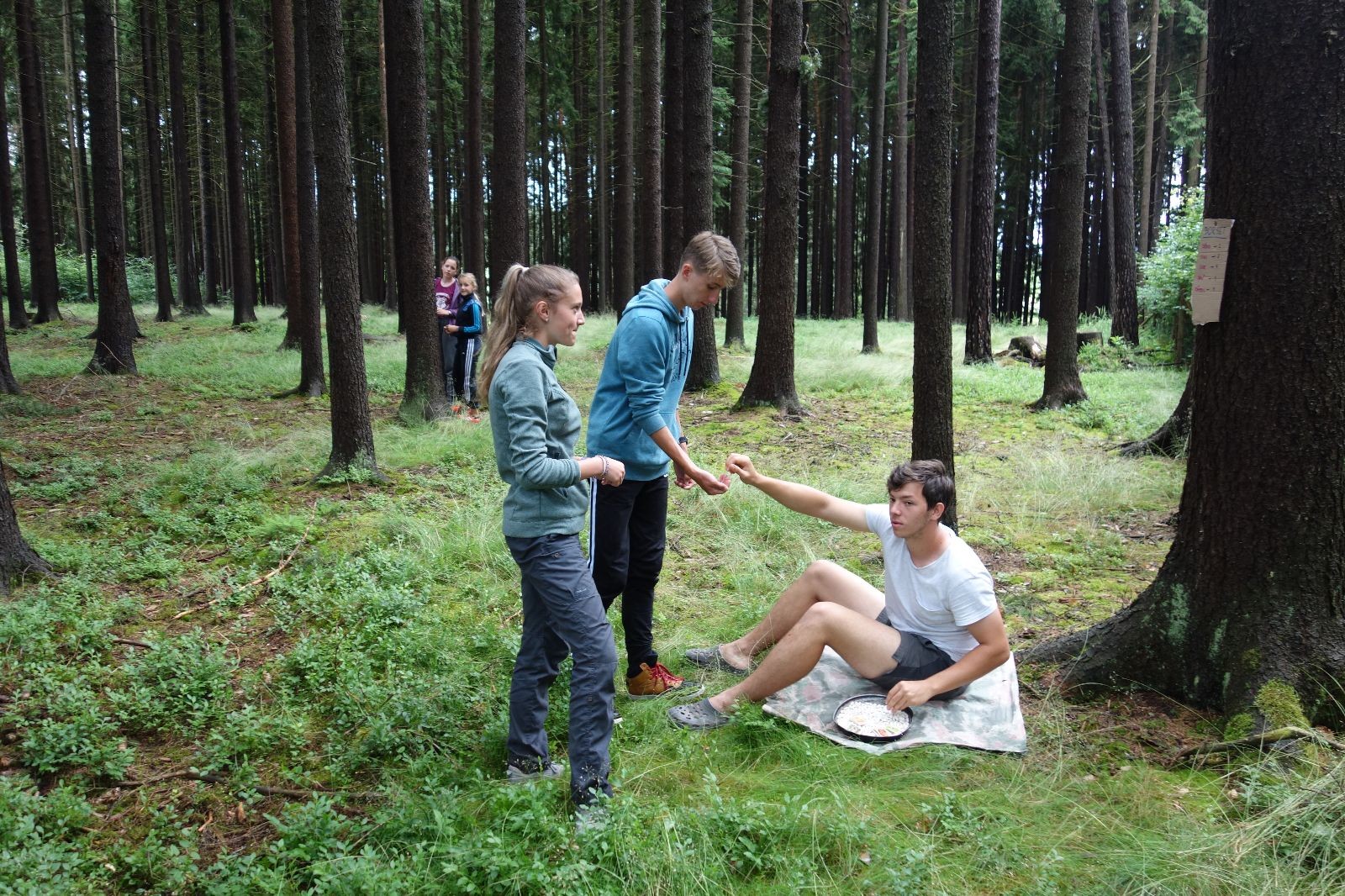 Tak aby toho nebylo málo, nad ránem přišla ještě bouřka třetí a vzala nás pěkně poctivě, středem. Od 3:40 do 3:50 to bylo, jako když otočíte kýbl. Blesky a hromy lítaly všude okolo. Všichni vedoucí a starší byli vzhůru, naopak většina mladších to v podsadách zaspala. Naštěstí ani tentokrát nefoukal žádný uragán a tak opět odneslo jen pár zmáčených věcí. Škody na životech či majetku nula nula nic. Ráno nesměle vykoukl oskárek a pak už nás provázel celým dnem stejně jako lehký vítr. Louka doslova vysychala před očima podobně jako věci na sušárnách. Dopoledne bylo věnováno lesní strategické hře „Přístavy“, mladší hráli „Riskuj“. V poledne do tábora dorazila šestice Svišťů a ulokovala se v podsadách. Odpoledne kromě etap mladších a starších probíhaly též hry se Svišti, doplnili jsme zásoby dřeva v kuchyni a dále sušili navlhlé věci. Večer oheň, písničky a opékání špekáčků. Usínali jsme s jasnou oblohou nad hlavou, hvězdy zářily. Pěkný rozdíl, proti minulé noci…