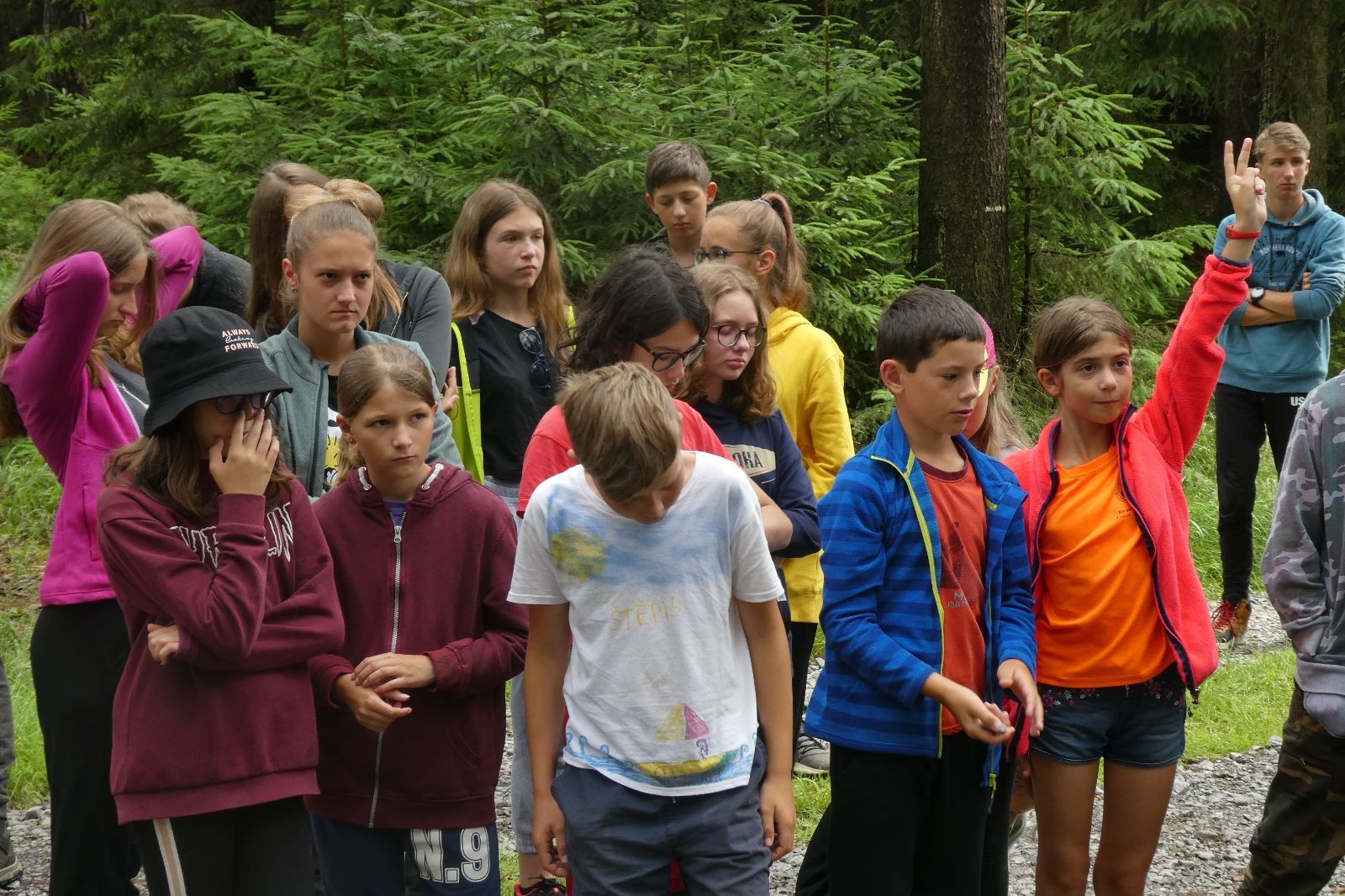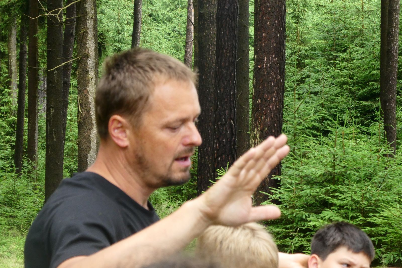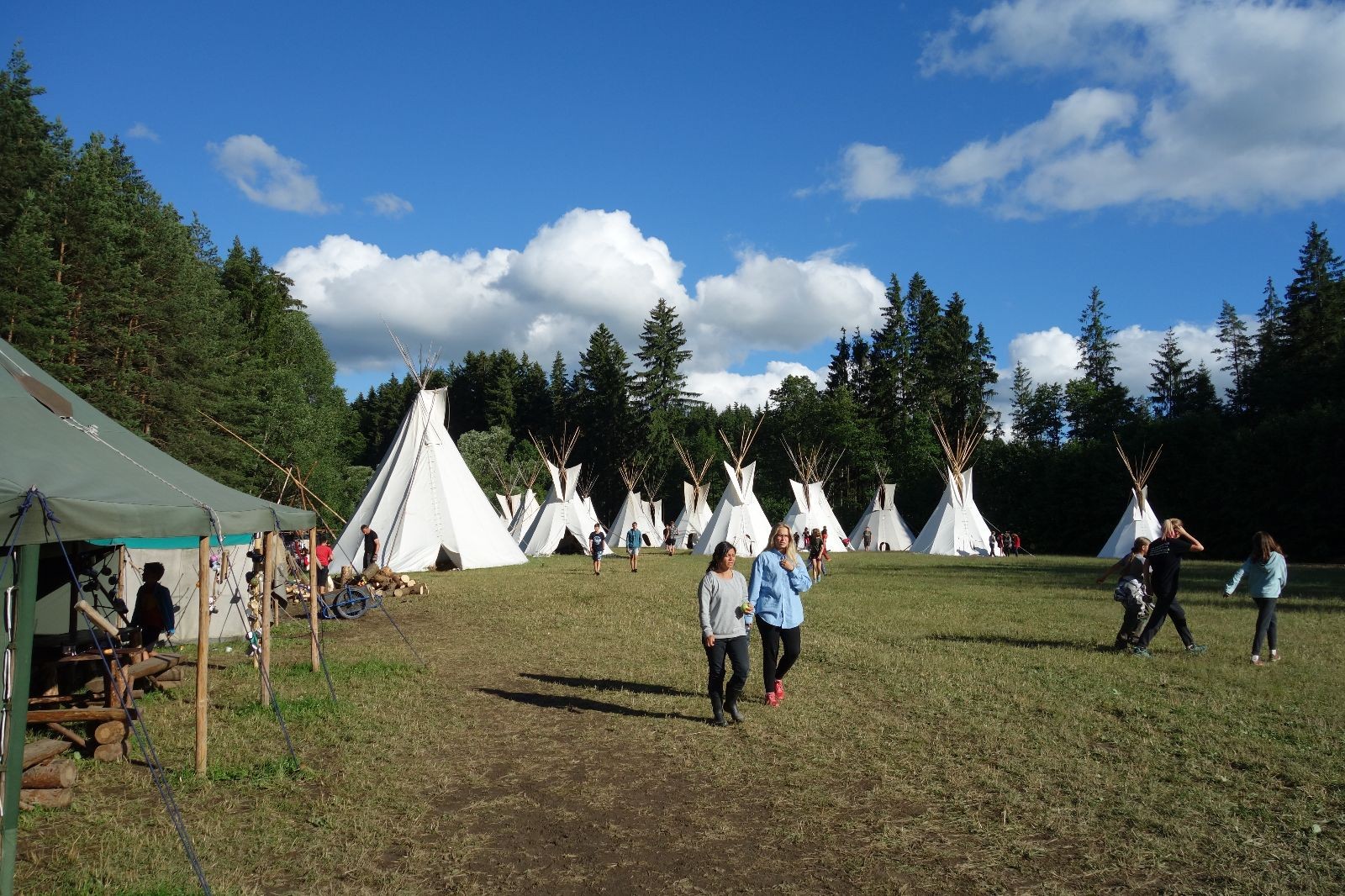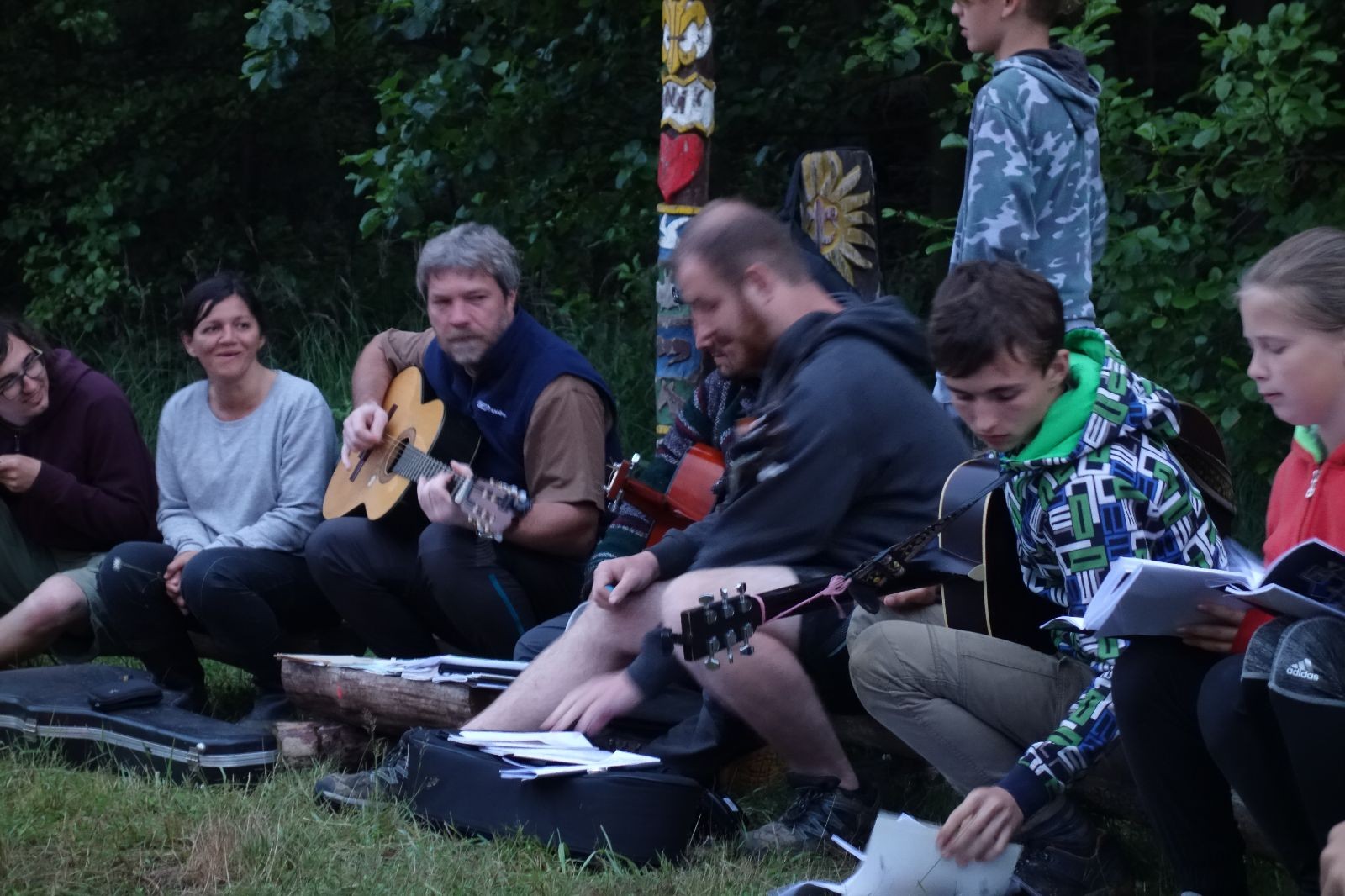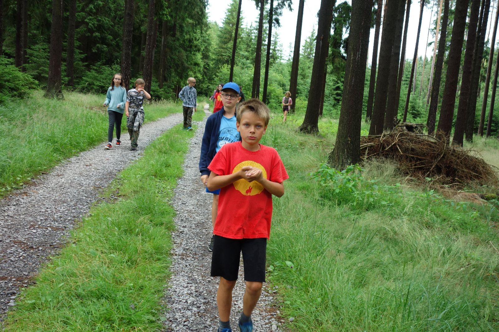 Tak aby toho nebylo málo, nad ránem přišla ještě bouřka třetí a vzala nás pěkně poctivě, středem. Od 3:40 do 3:50 to bylo, jako když otočíte kýbl. Blesky a hromy lítaly všude okolo. Všichni vedoucí a starší byli vzhůru, naopak většina mladších to v podsadách zaspala. Naštěstí ani tentokrát nefoukal žádný uragán a tak opět odneslo jen pár zmáčených věcí. Škody na životech či majetku nula nula nic. Ráno nesměle vykoukl oskárek a pak už nás provázel celým dnem stejně jako lehký vítr. Louka doslova vysychala před očima podobně jako věci na sušárnách. Dopoledne bylo věnováno lesní strategické hře „Přístavy“, mladší hráli „Riskuj“. V poledne do tábora dorazila šestice Svišťů a ulokovala se v podsadách. Odpoledne kromě etap mladších a starších probíhaly též hry se Svišti, doplnili jsme zásoby dřeva v kuchyni a dále sušili navlhlé věci. Večer oheň, písničky a opékání špekáčků. Usínali jsme s jasnou oblohou nad hlavou, hvězdy zářily. Pěkný rozdíl, proti minulé noci…