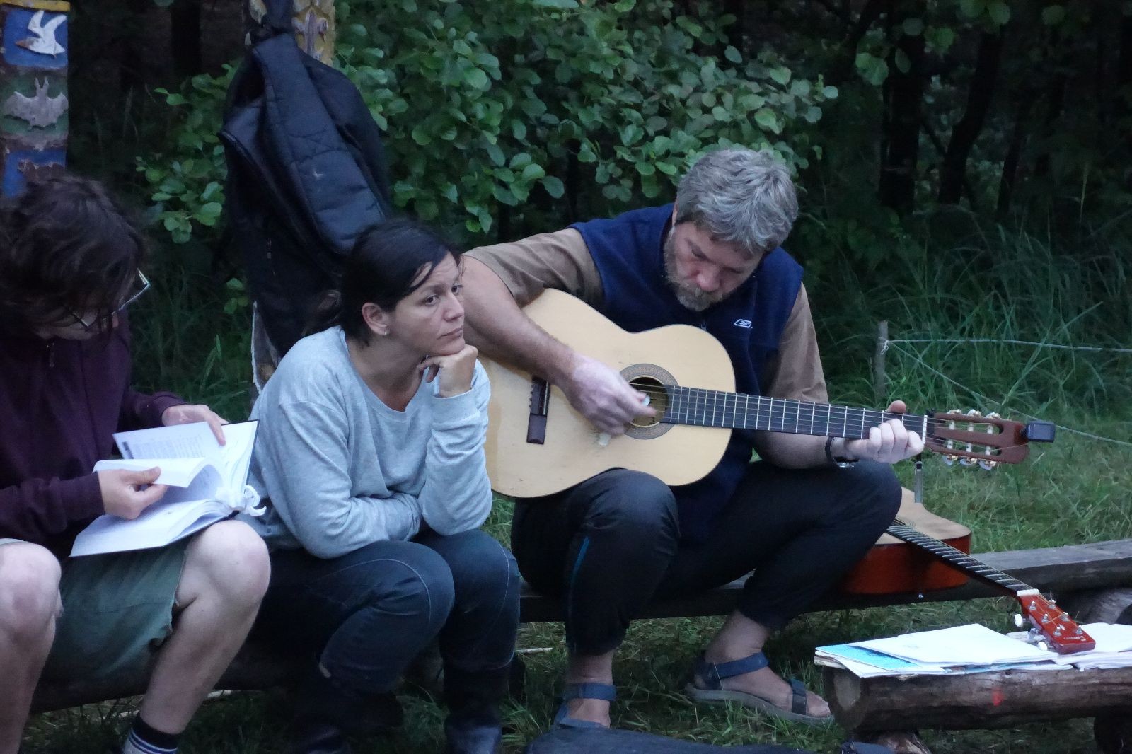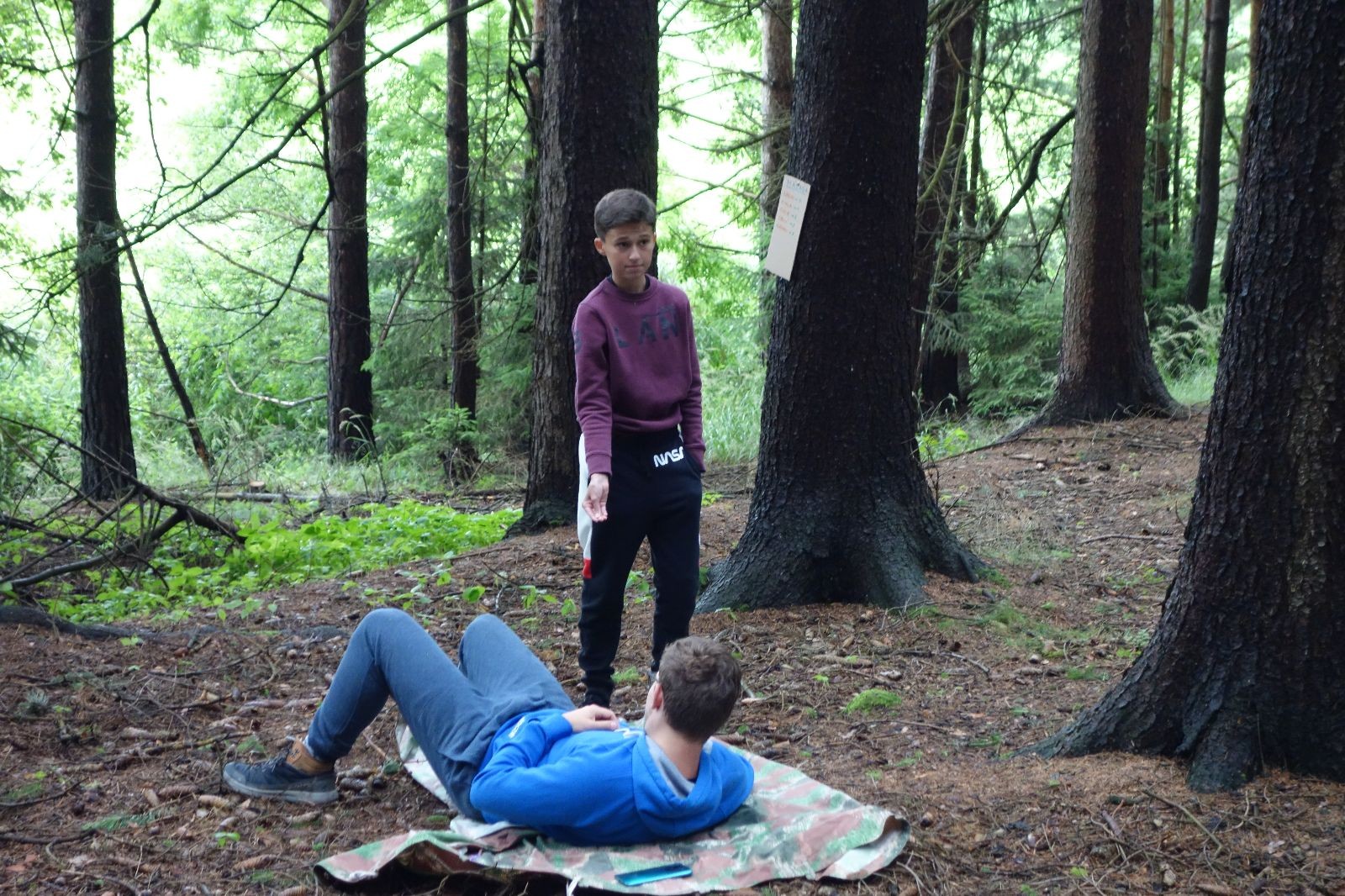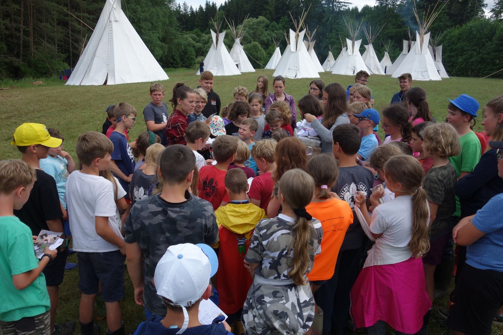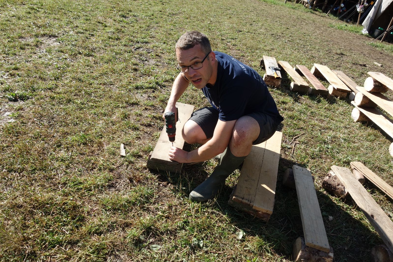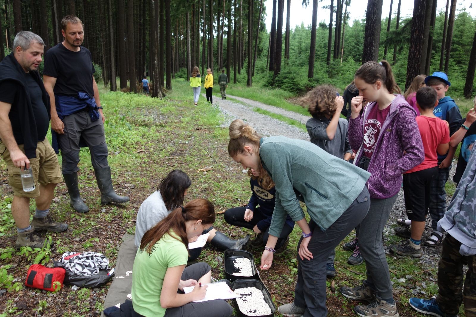 Tak aby toho nebylo málo, nad ránem přišla ještě bouřka třetí a vzala nás pěkně poctivě, středem. Od 3:40 do 3:50 to bylo, jako když otočíte kýbl. Blesky a hromy lítaly všude okolo. Všichni vedoucí a starší byli vzhůru, naopak většina mladších to v podsadách zaspala. Naštěstí ani tentokrát nefoukal žádný uragán a tak opět odneslo jen pár zmáčených věcí. Škody na životech či majetku nula nula nic. Ráno nesměle vykoukl oskárek a pak už nás provázel celým dnem stejně jako lehký vítr. Louka doslova vysychala před očima podobně jako věci na sušárnách. Dopoledne bylo věnováno lesní strategické hře „Přístavy“, mladší hráli „Riskuj“. V poledne do tábora dorazila šestice Svišťů a ulokovala se v podsadách. Odpoledne kromě etap mladších a starších probíhaly též hry se Svišti, doplnili jsme zásoby dřeva v kuchyni a dále sušili navlhlé věci. Večer oheň, písničky a opékání špekáčků. Usínali jsme s jasnou oblohou nad hlavou, hvězdy zářily. Pěkný rozdíl, proti minulé noci…