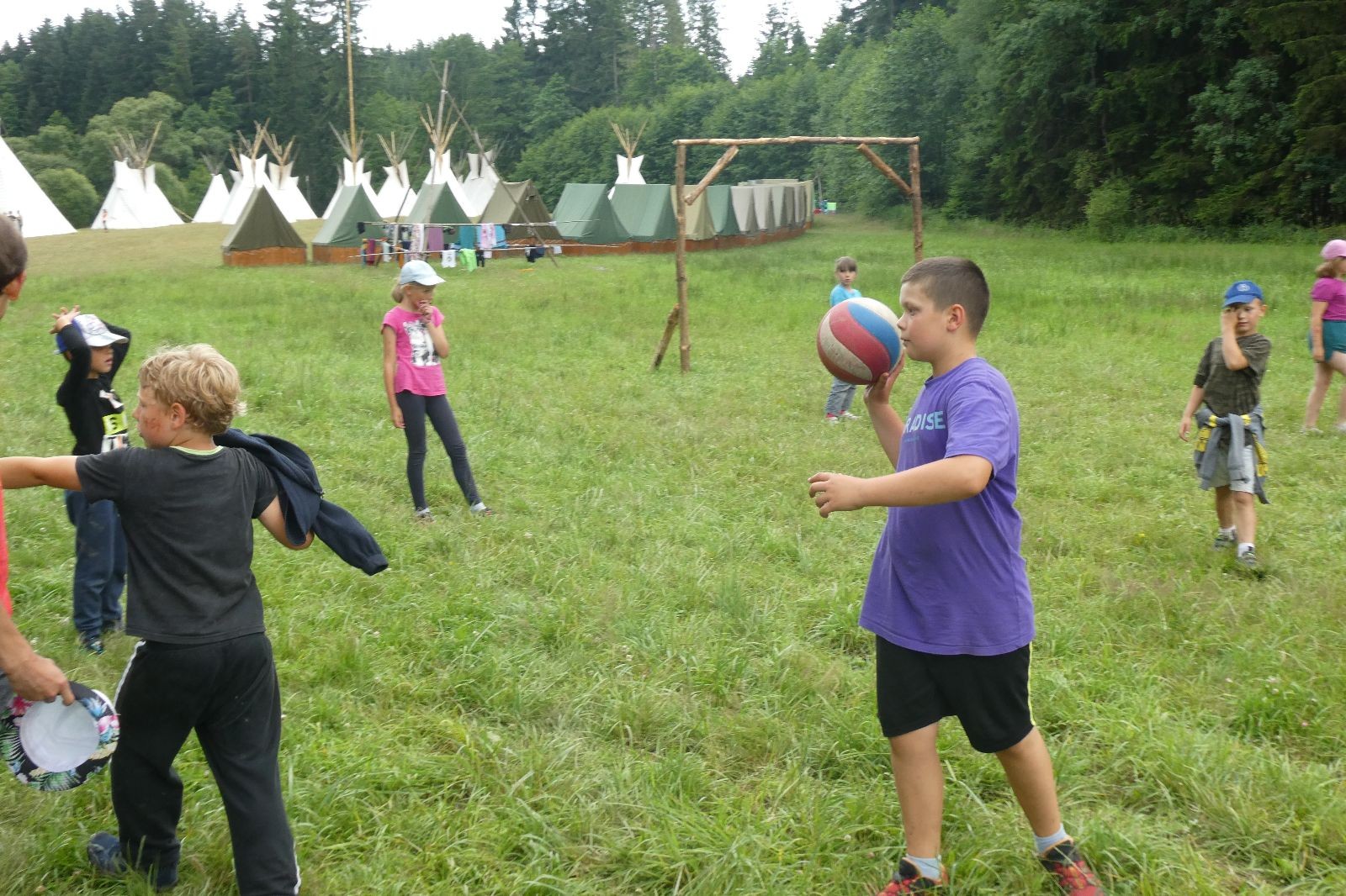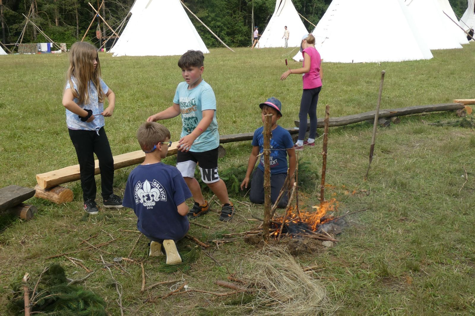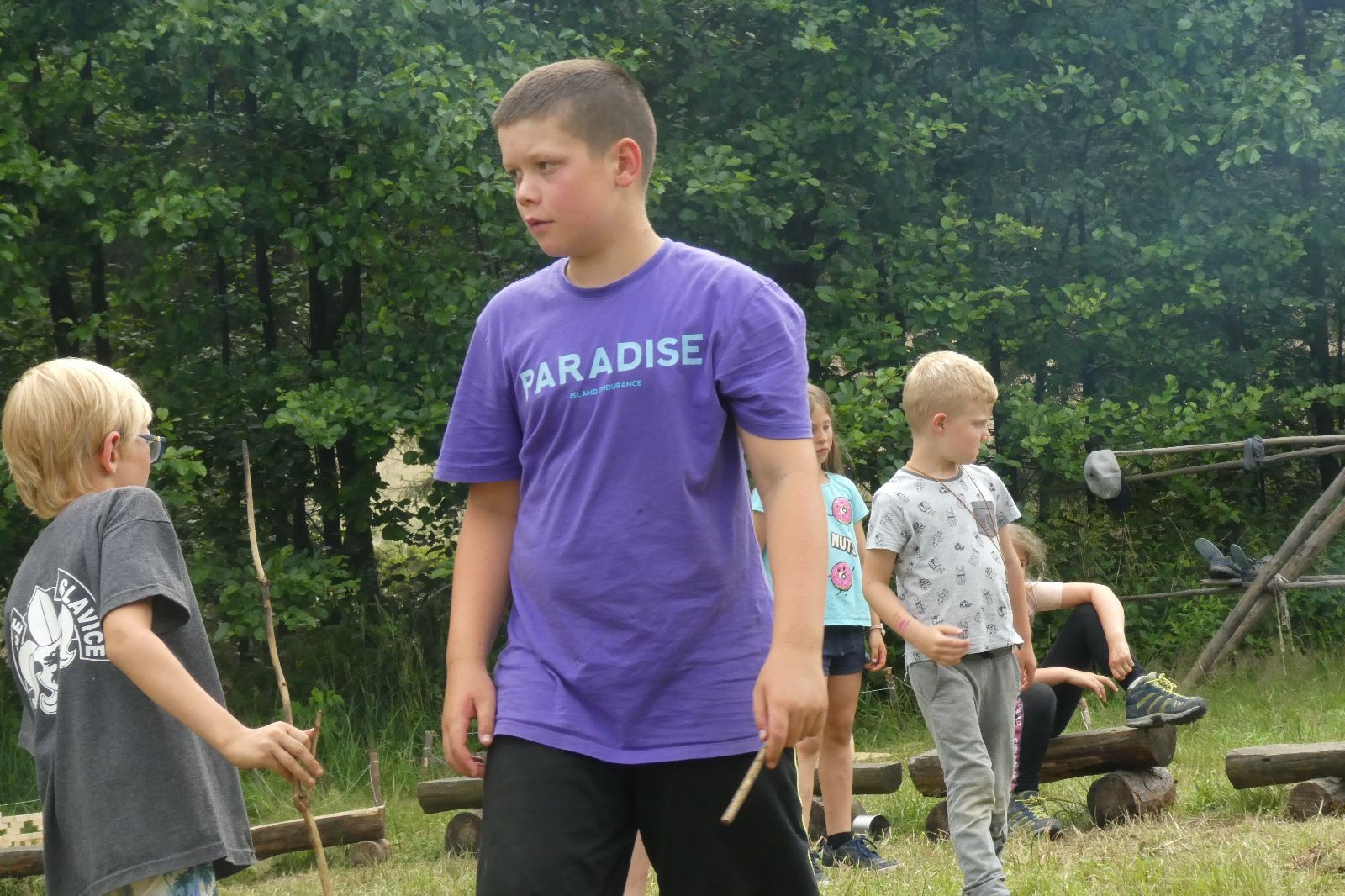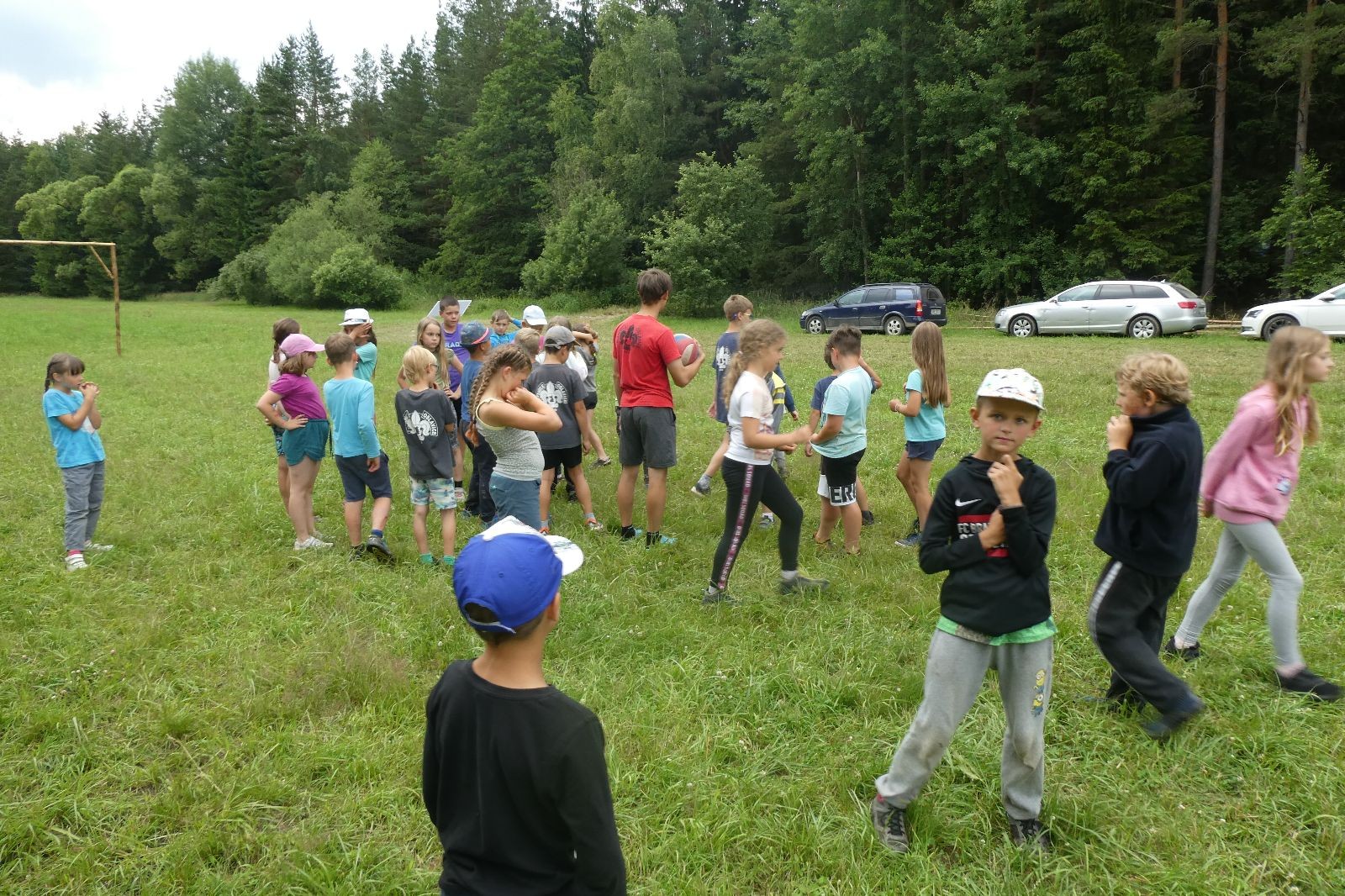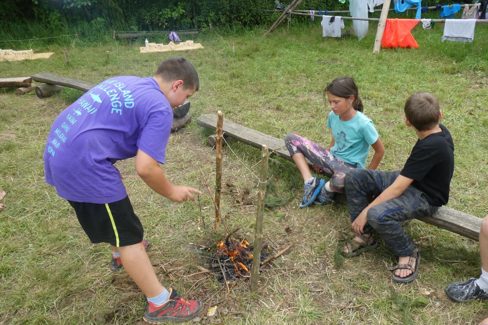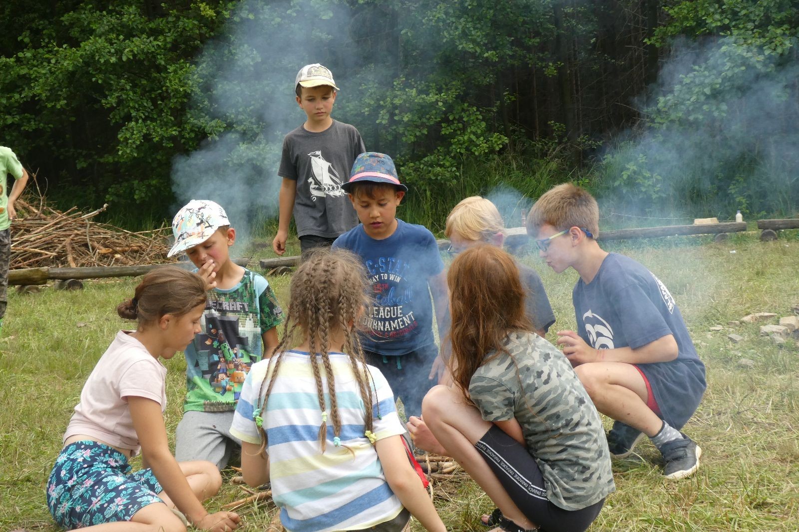 Neděle. Ta se obejde bez rozcvičky. Dopolední etapy u mladších i u starších probíhaly v lese a byly docela bojové. Svišti měli etapu poslední a každý v jejím závěru získal pěkného plyšáka. Ještě před obědem nás Svišti opustili a tak přišli o zážitek z „nejlepšího guláše v dějinách oddílu“, jak se někteří obdivně vyjádřili směrem k dnešnímu obědu. Po poledním klidu starší plnili úkoly na trase – etapa spíše intelektuální a podobně na tom byli mladší – ti zase rozdělávali oheň a přepalovali provázek. Sluníčko stále nepolevovalo v aktivitě. Navečer vedoucí mladších naplánovali skvělou stezku odvahy, vedoucí starších pro změnu výsadek. Jenže se trošku ženou mraky. První bouřka nás minula, ani nekáplo, jen foukalo, ale zahradnickému deštíčku se podle radaru asi nevyhneme. No uvidíme, zítra napíšu, jak to dopadlo.