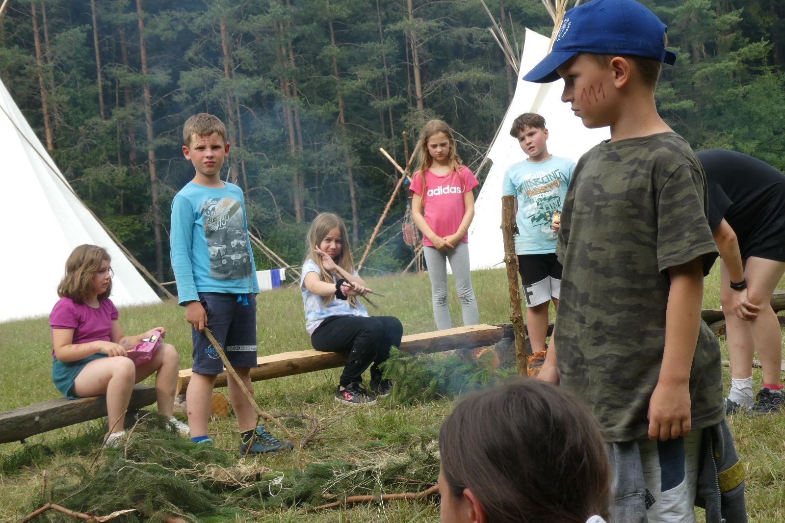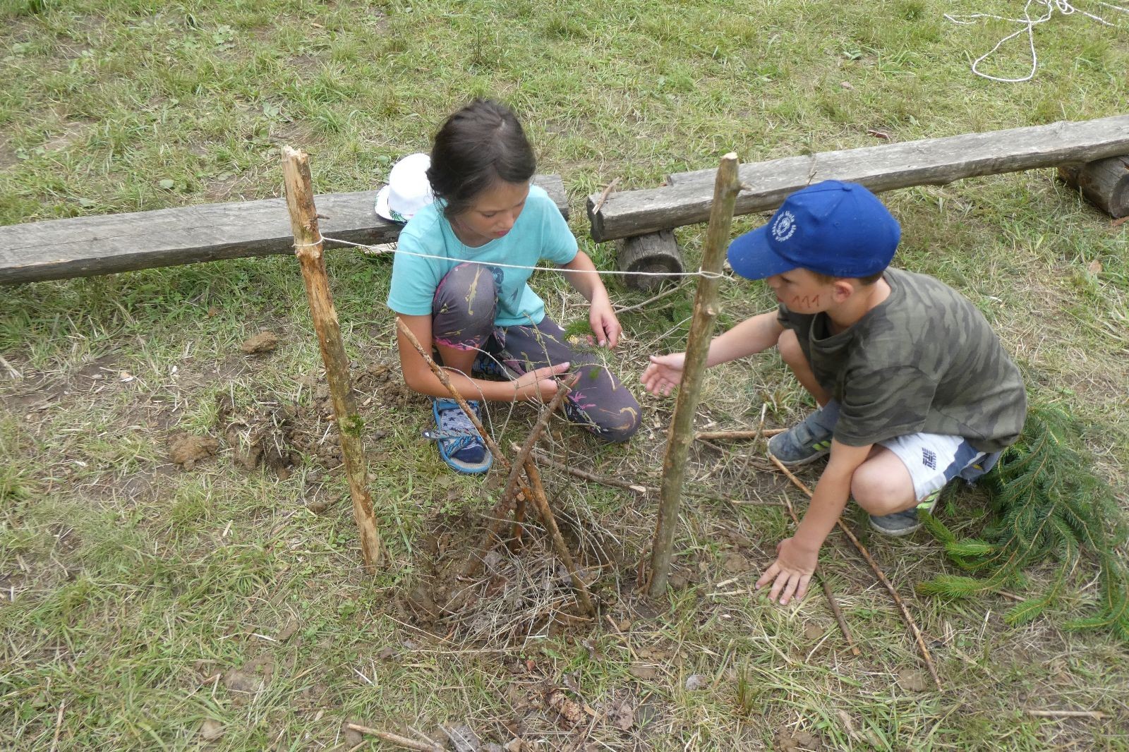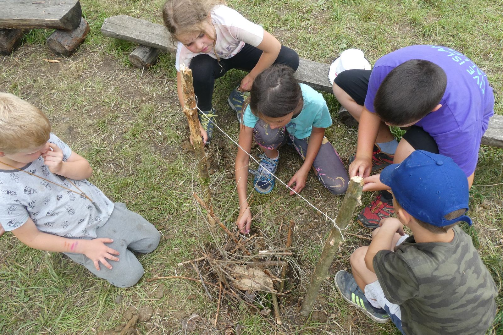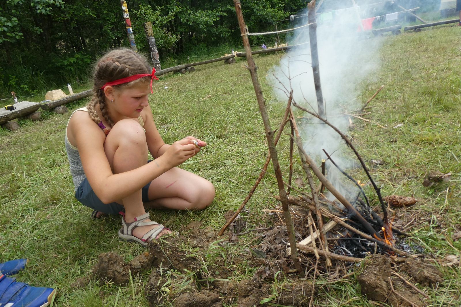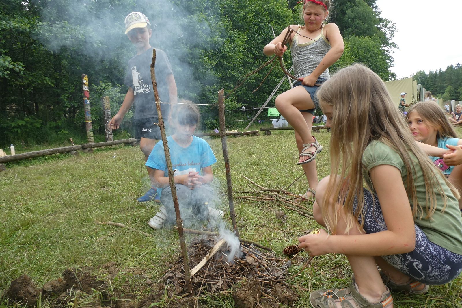 Neděle. Ta se obejde bez rozcvičky. Dopolední etapy u mladších i u starších probíhaly v lese a byly docela bojové. Svišti měli etapu poslední a každý v jejím závěru získal pěkného plyšáka. Ještě před obědem nás Svišti opustili a tak přišli o zážitek z „nejlepšího guláše v dějinách oddílu“, jak se někteří obdivně vyjádřili směrem k dnešnímu obědu. Po poledním klidu starší plnili úkoly na trase – etapa spíše intelektuální a podobně na tom byli mladší – ti zase rozdělávali oheň a přepalovali provázek. Sluníčko stále nepolevovalo v aktivitě. Navečer vedoucí mladších naplánovali skvělou stezku odvahy, vedoucí starších pro změnu výsadek. Jenže se trošku ženou mraky. První bouřka nás minula, ani nekáplo, jen foukalo, ale zahradnickému deštíčku se podle radaru asi nevyhneme. No uvidíme, zítra napíšu, jak to dopadlo.