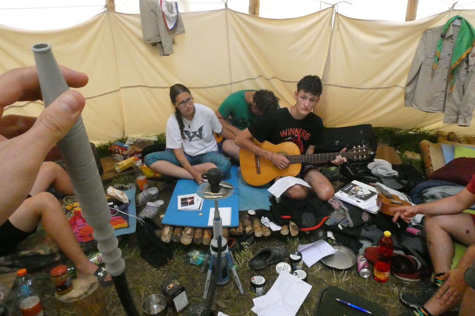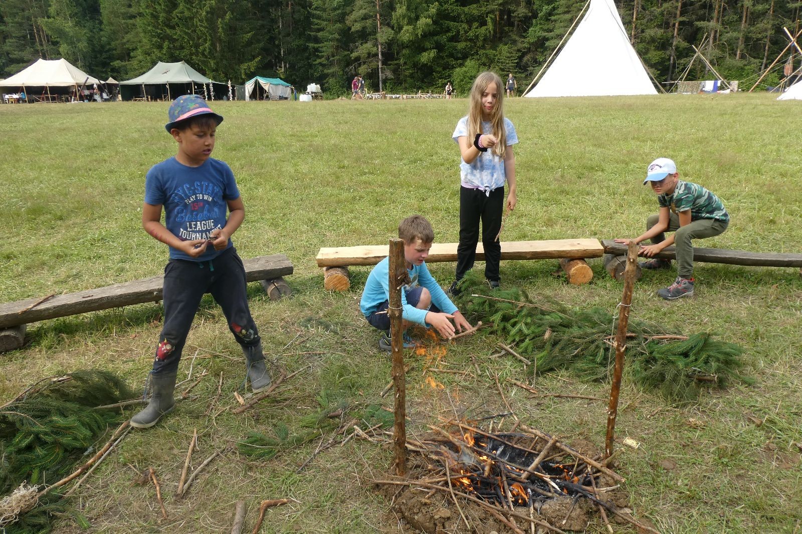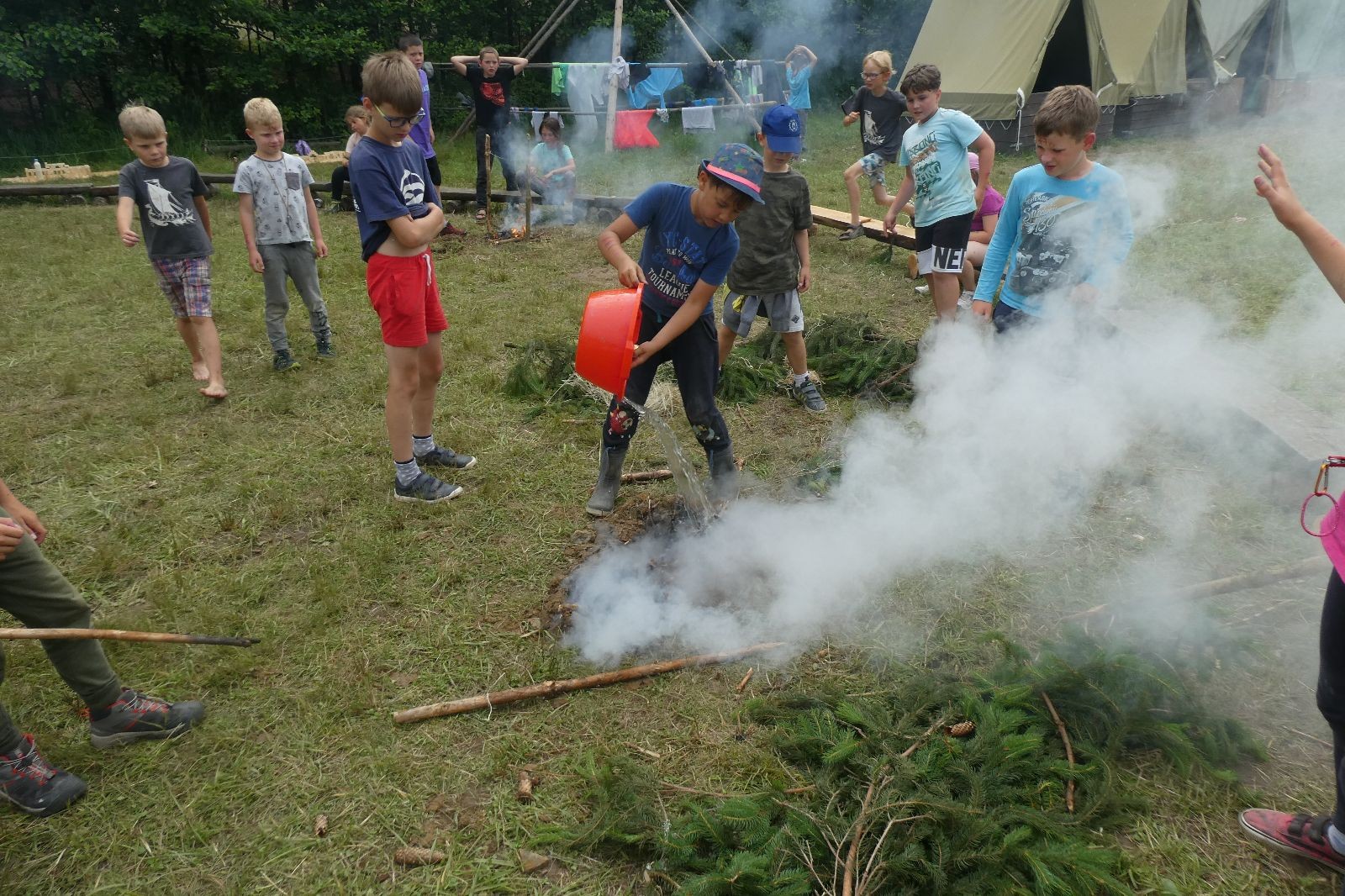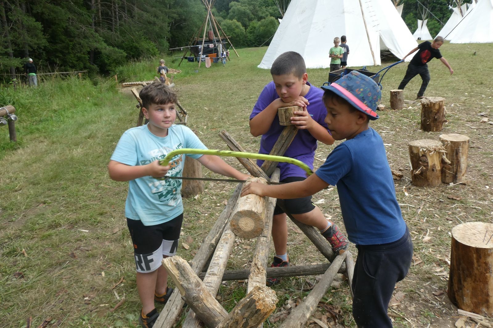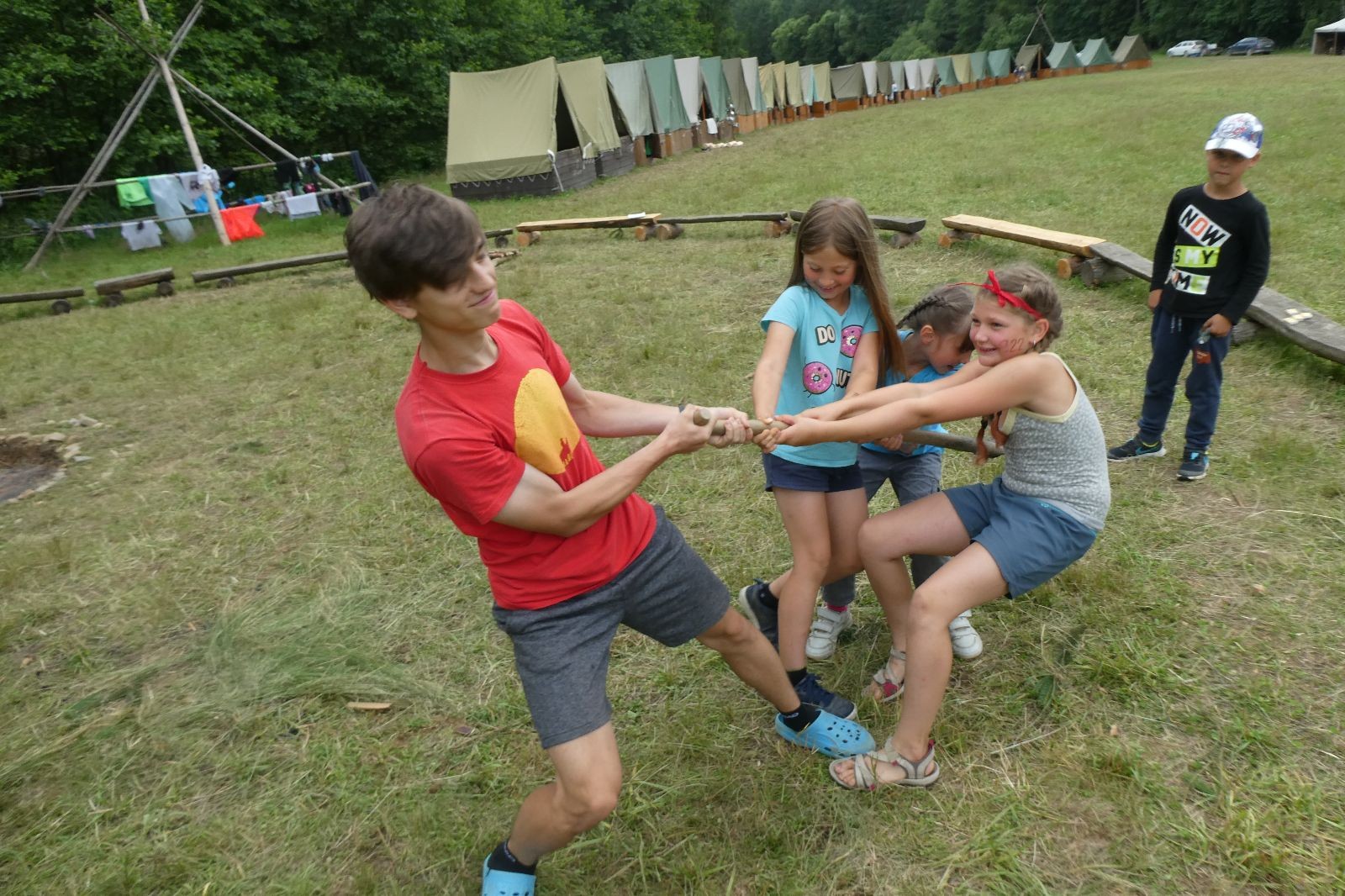 Neděle. Ta se obejde bez rozcvičky. Dopolední etapy u mladších i u starších probíhaly v lese a byly docela bojové. Svišti měli etapu poslední a každý v jejím závěru získal pěkného plyšáka. Ještě před obědem nás Svišti opustili a tak přišli o zážitek z „nejlepšího guláše v dějinách oddílu“, jak se někteří obdivně vyjádřili směrem k dnešnímu obědu. Po poledním klidu starší plnili úkoly na trase – etapa spíše intelektuální a podobně na tom byli mladší – ti zase rozdělávali oheň a přepalovali provázek. Sluníčko stále nepolevovalo v aktivitě. Navečer vedoucí mladších naplánovali skvělou stezku odvahy, vedoucí starších pro změnu výsadek. Jenže se trošku ženou mraky. První bouřka nás minula, ani nekáplo, jen foukalo, ale zahradnickému deštíčku se podle radaru asi nevyhneme. No uvidíme, zítra napíšu, jak to dopadlo.