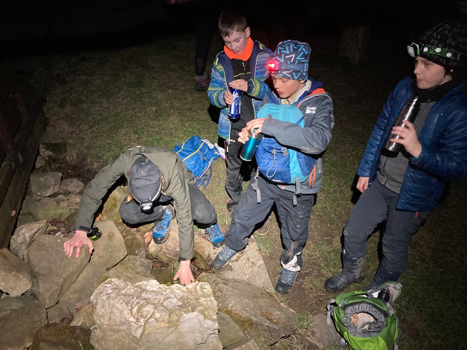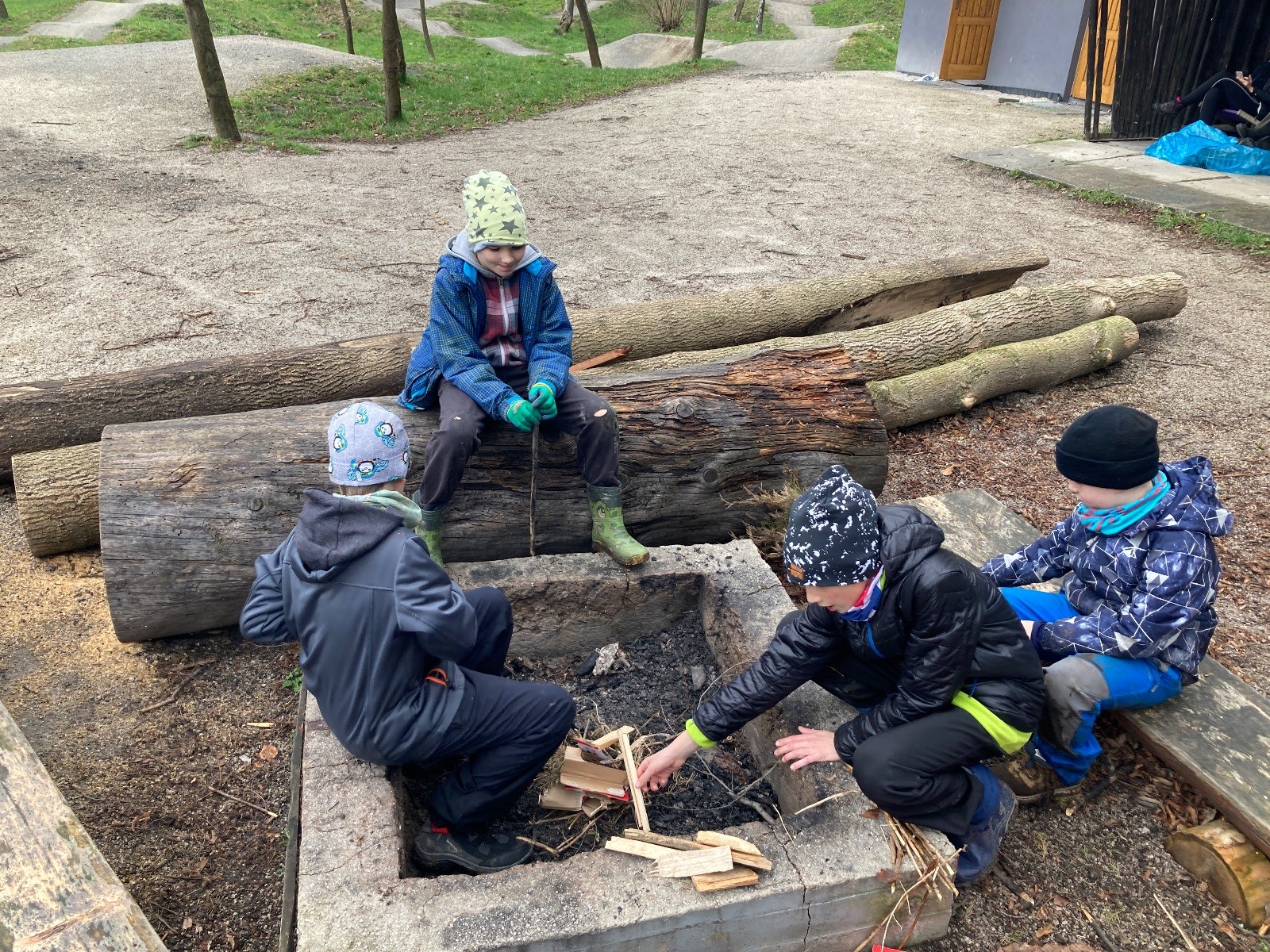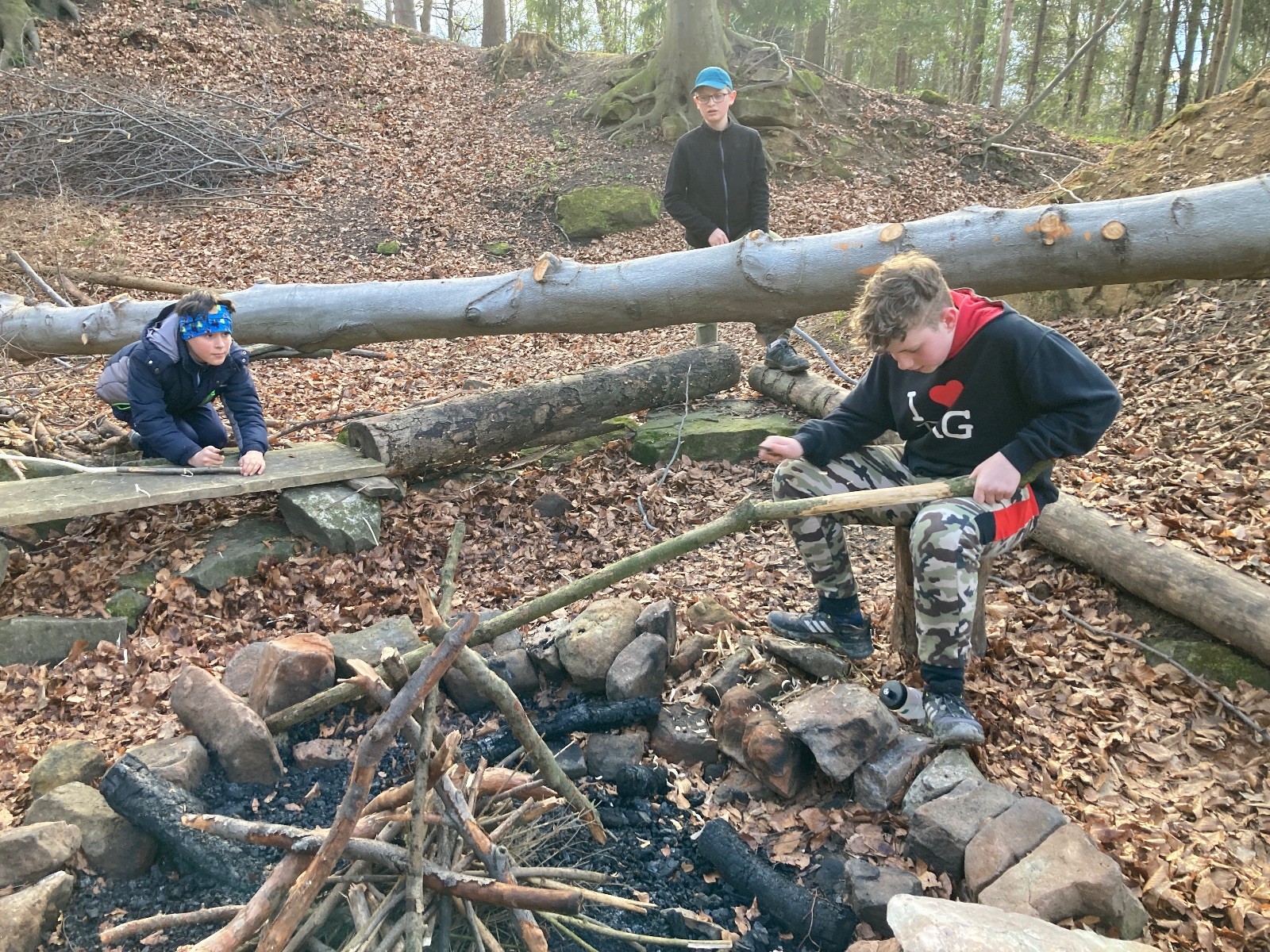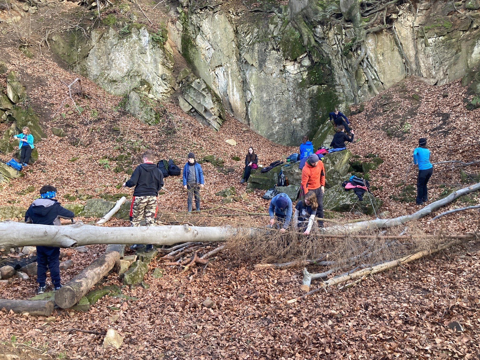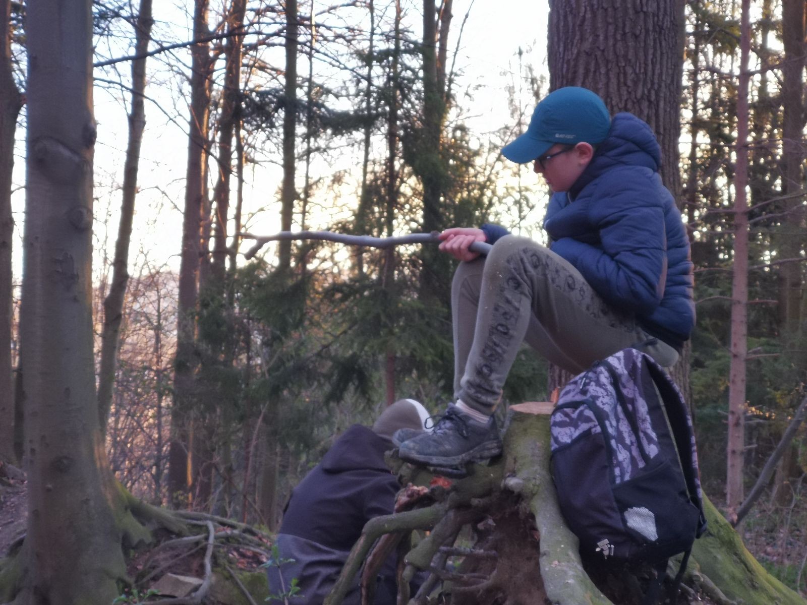 V 15.00 dáváme opět schůzku u myslivecké chaty, topíme a vybalujeme věci na spaní. Celkem se nás schází 21 (6 kocourů + 15 lišek). Vydáváme se směrem do větřkovického lomu. Po cestě již tradičně hrajeme na poli vlajkovanou. Netradiční, ale mi sympatickou kulisu nám tvoří rallye v pozadí. V lomu chystáme oheň, klacky na opékání a věci na sliby. Já připravuju pochodeň na zažehnutí slavnostního ohně. Někdy ostatním musíte ukázat, jak se věci dělat nemají, a říci: “Takhle ne, přátelé.” Ač nerad, tak se tohoto úkolu ujímám já a řežu se do prstu. Testuju novou lékárničku a pak už nám nic nebrání v cestě zapálit oheň. No a povězte sami, co by to bylo za slavnostní oheň, kdybychom pro něj nedali kousek ze sebe, že?