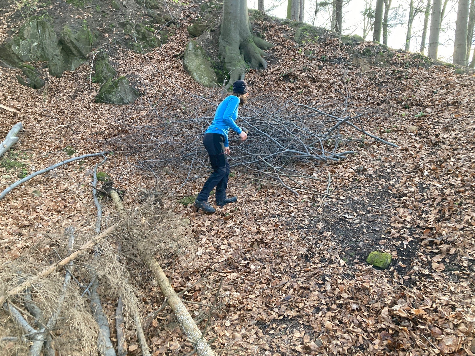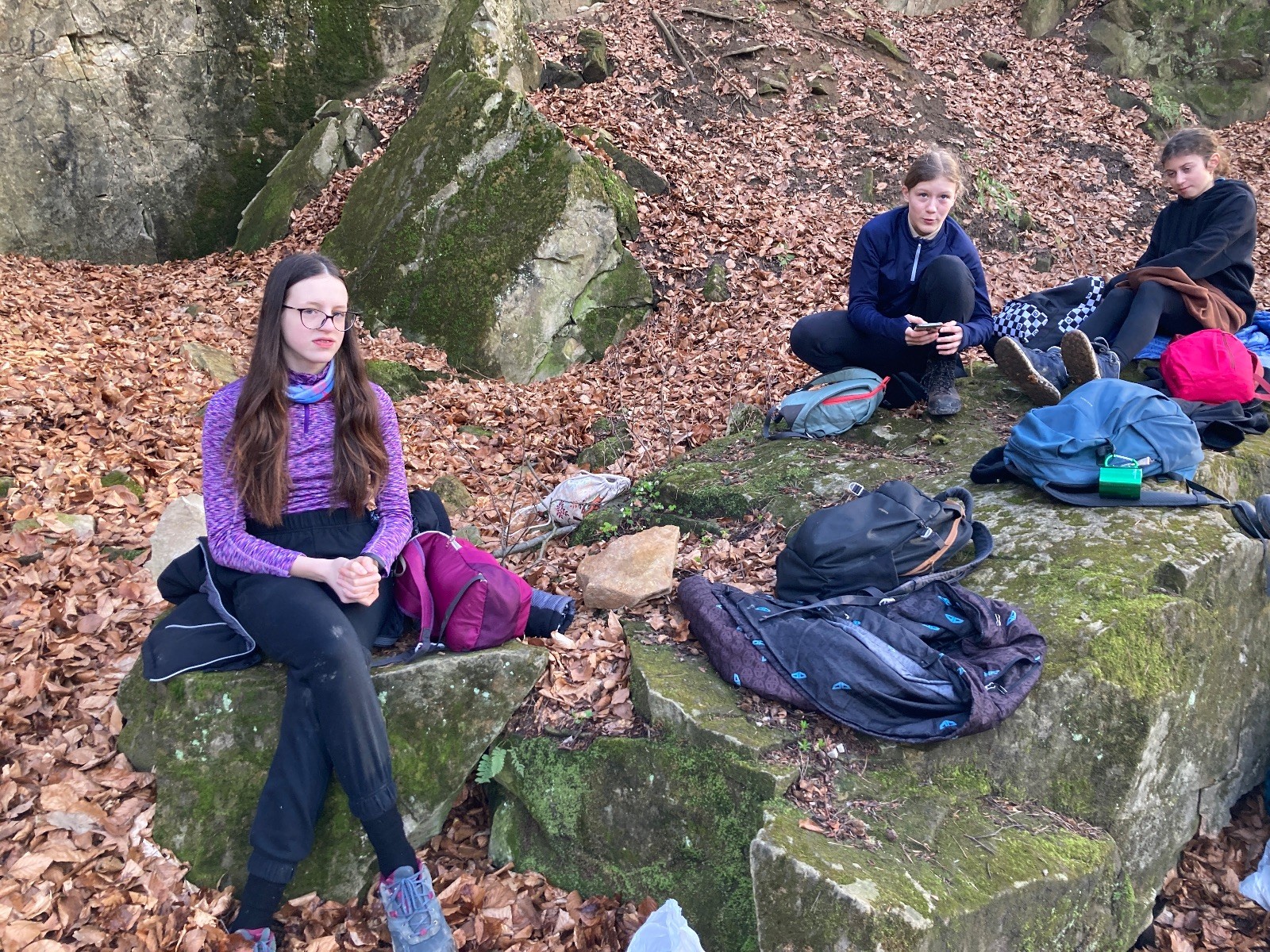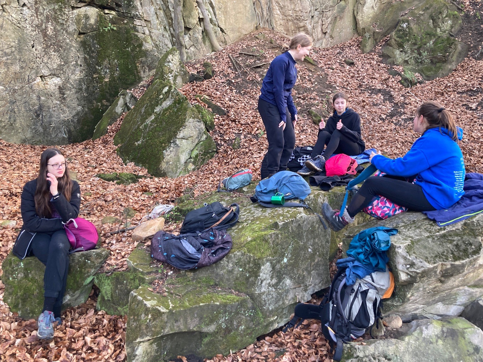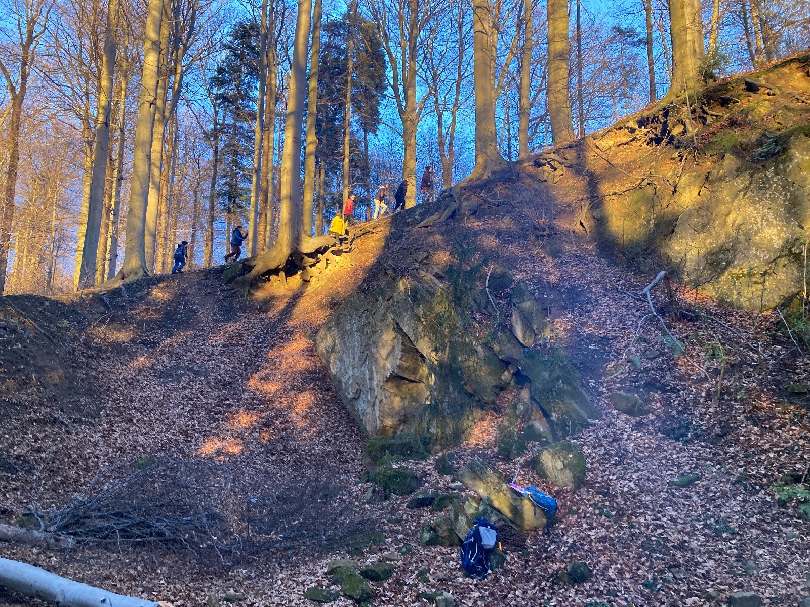 V 15.00 dáváme opět schůzku u myslivecké chaty, topíme a vybalujeme věci na spaní. Celkem se nás schází 21 (6 kocourů + 15 lišek). Vydáváme se směrem do větřkovického lomu. Po cestě již tradičně hrajeme na poli vlajkovanou. Netradiční, ale mi sympatickou kulisu nám tvoří rallye v pozadí. V lomu chystáme oheň, klacky na opékání a věci na sliby. Já připravuju pochodeň na zažehnutí slavnostního ohně. Někdy ostatním musíte ukázat, jak se věci dělat nemají, a říci: “Takhle ne, přátelé.” Ač nerad, tak se tohoto úkolu ujímám já a řežu se do prstu. Testuju novou lékárničku a pak už nám nic nebrání v cestě zapálit oheň. No a povězte sami, co by to bylo za slavnostní oheň, kdybychom pro něj nedali kousek ze sebe, že?