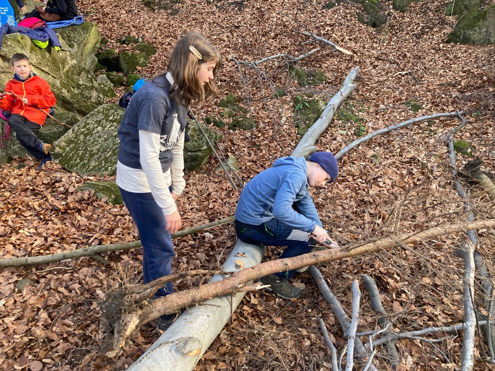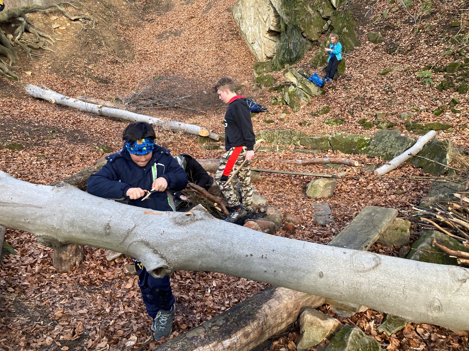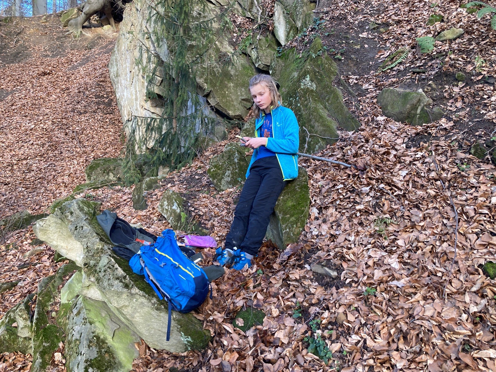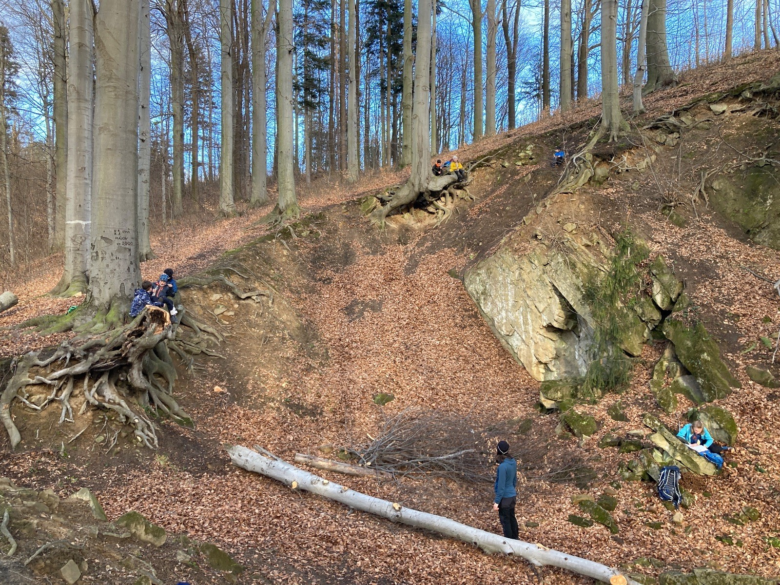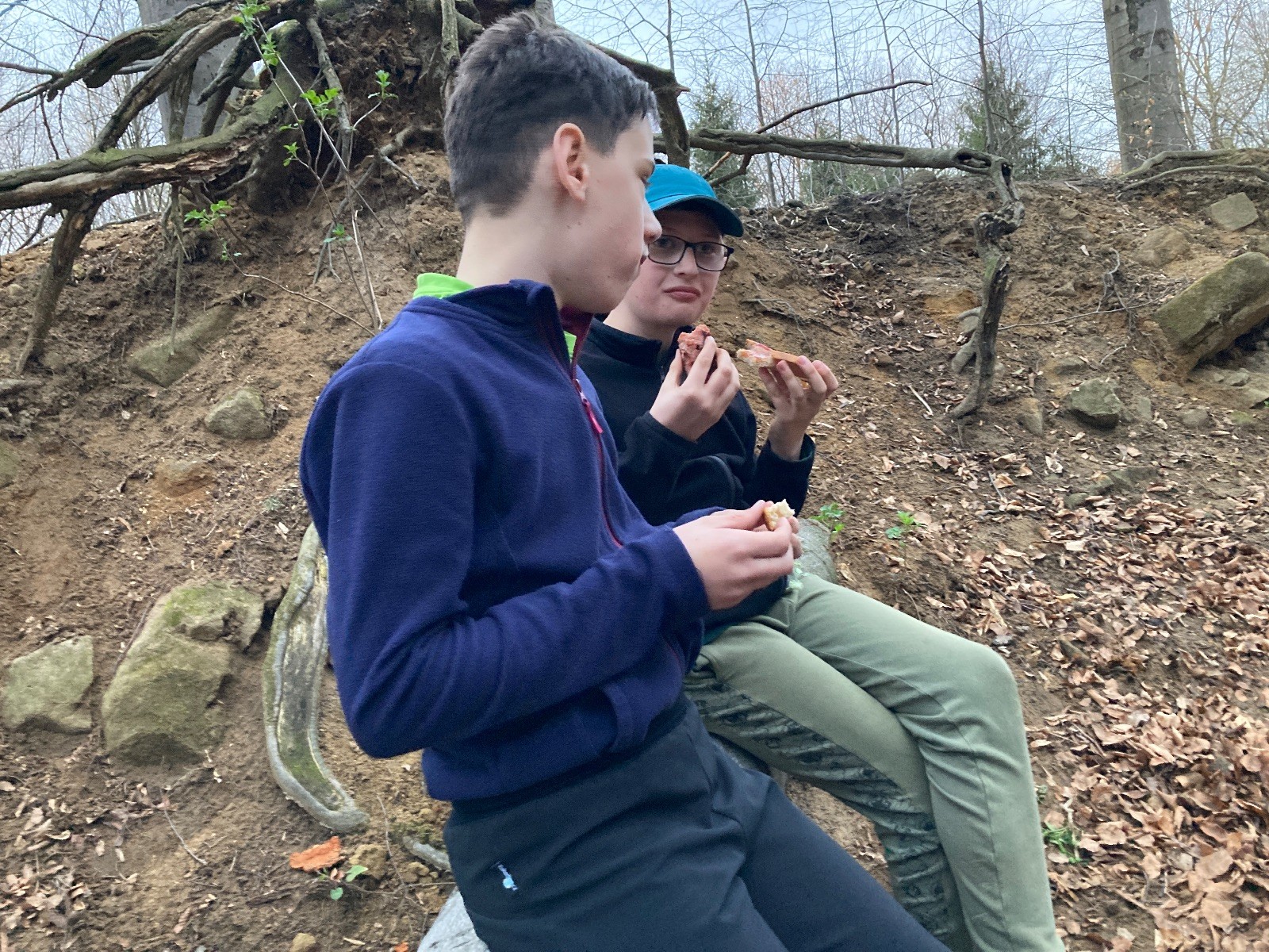 V 15.00 dáváme opět schůzku u myslivecké chaty, topíme a vybalujeme věci na spaní. Celkem se nás schází 21 (6 kocourů + 15 lišek). Vydáváme se směrem do větřkovického lomu. Po cestě již tradičně hrajeme na poli vlajkovanou. Netradiční, ale mi sympatickou kulisu nám tvoří rallye v pozadí. V lomu chystáme oheň, klacky na opékání a věci na sliby. Já připravuju pochodeň na zažehnutí slavnostního ohně. Někdy ostatním musíte ukázat, jak se věci dělat nemají, a říci: “Takhle ne, přátelé.” Ač nerad, tak se tohoto úkolu ujímám já a řežu se do prstu. Testuju novou lékárničku a pak už nám nic nebrání v cestě zapálit oheň. No a povězte sami, co by to bylo za slavnostní oheň, kdybychom pro něj nedali kousek ze sebe, že?