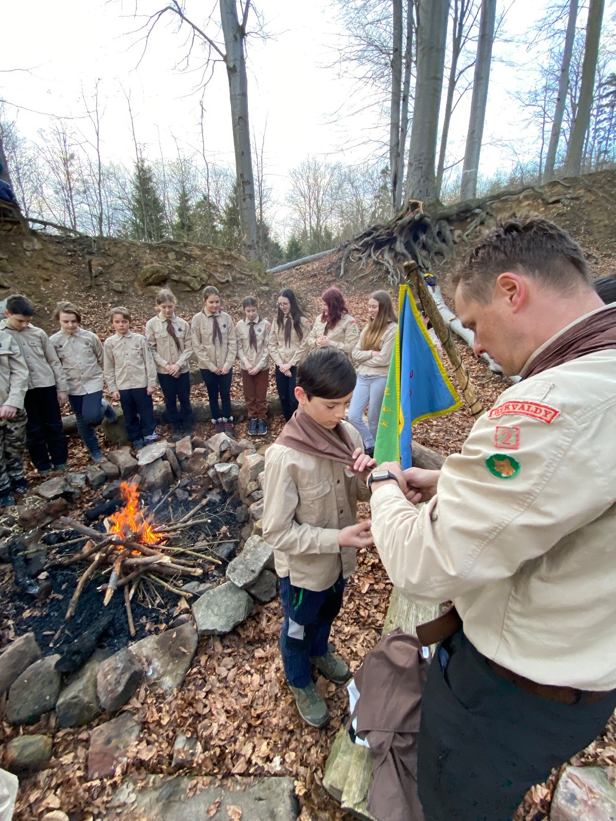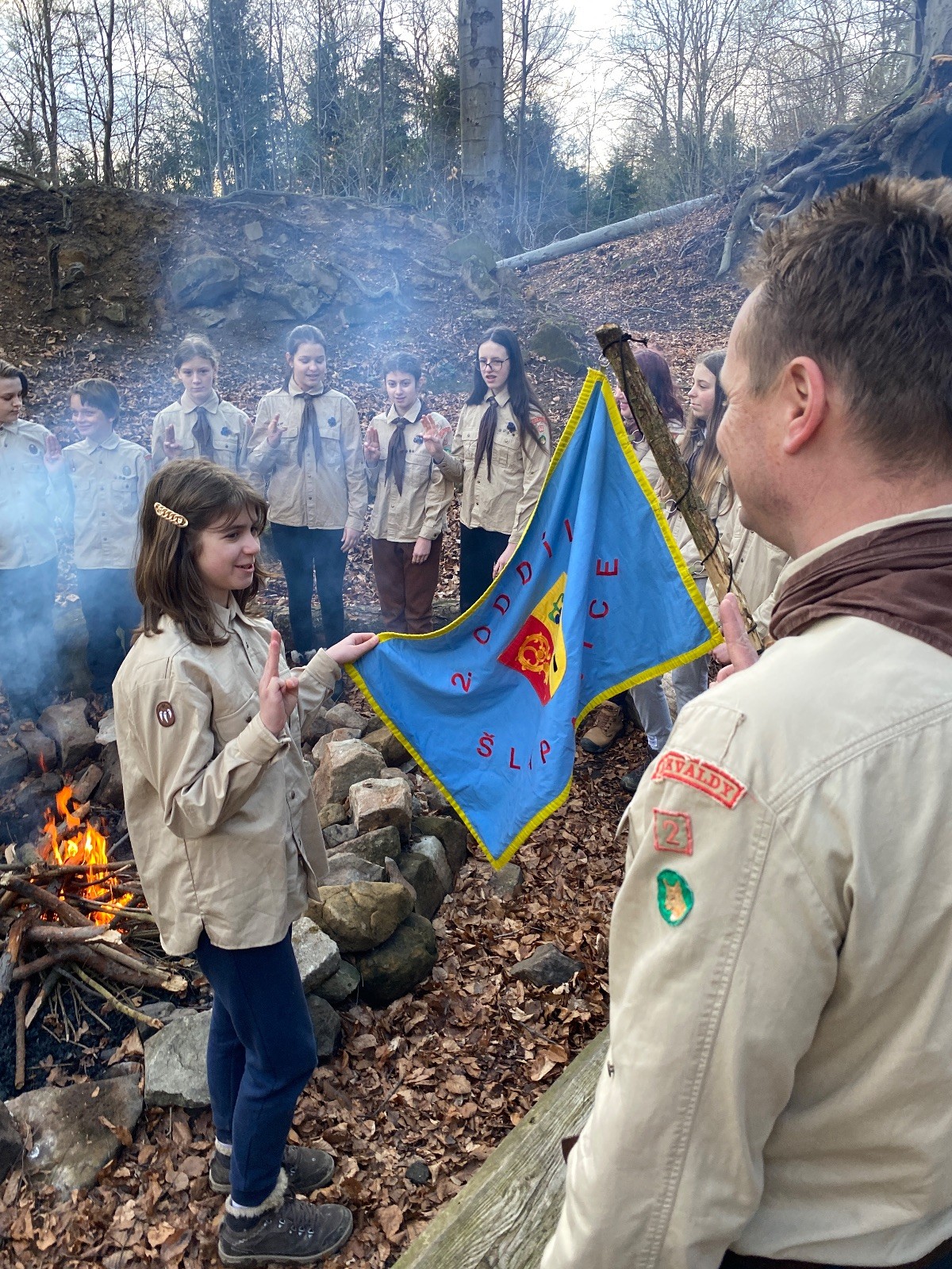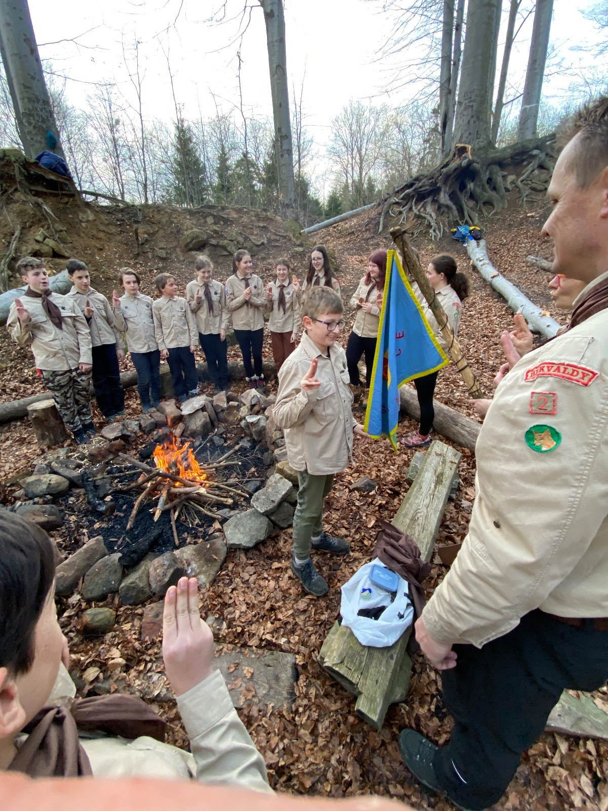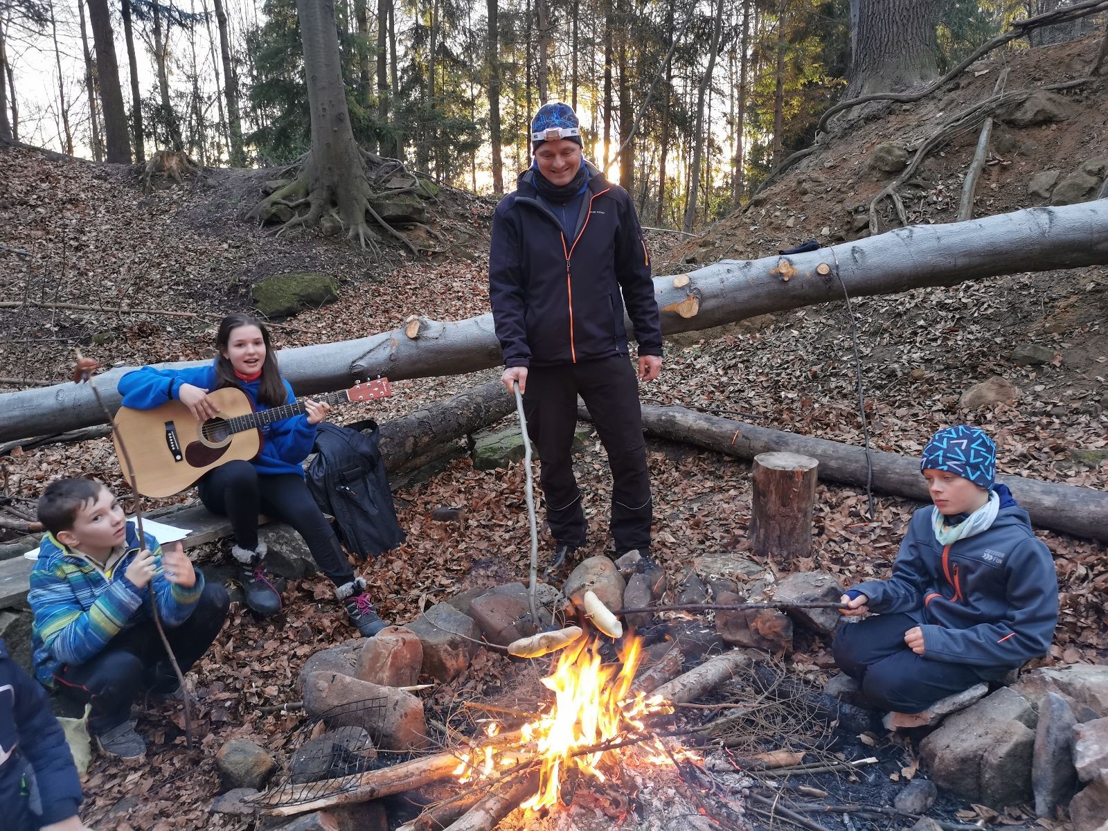 Skautské sliby skládá 6 lišek. Mí kocouři, kteří za sebou mají nováčkovskou zkoušku, bohužel chybí. Rozdáváme lipové lístečky, slavnostní oheň překřtíme na užitkový a chystáme večeři. Já si své špekáčky prozíravě nechal v autě. Mí kocouři mě ovšem mají rádi, takže se se mnou ochotně musí rozdělit. Díky Marťanovi a Schofce 😁. Potom kytara, písničky a pauza na vytrávení. Se setměním ještě hrajeme pár kol schovávané. Na závěr vytahujeme naše čupr, svíčky se skořicovou vůní. Jeden od druhého si je zapalujeme a vyslovujeme naše přání. Svíčky sice voní hezky, ale to, co výrobce přidal na vůni, zjevně ubral z jejich schopnosti hořet a vydržet. Ale co… byly ve slevě. Hasíme oheň a frčíme zpátky na myslivnu, kde nám Jana od Uzla poctivě přikládala. Vyčistíme zuby a na dobrou noc pouštíme Spidermana.
