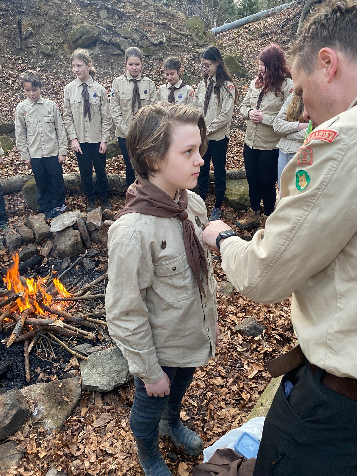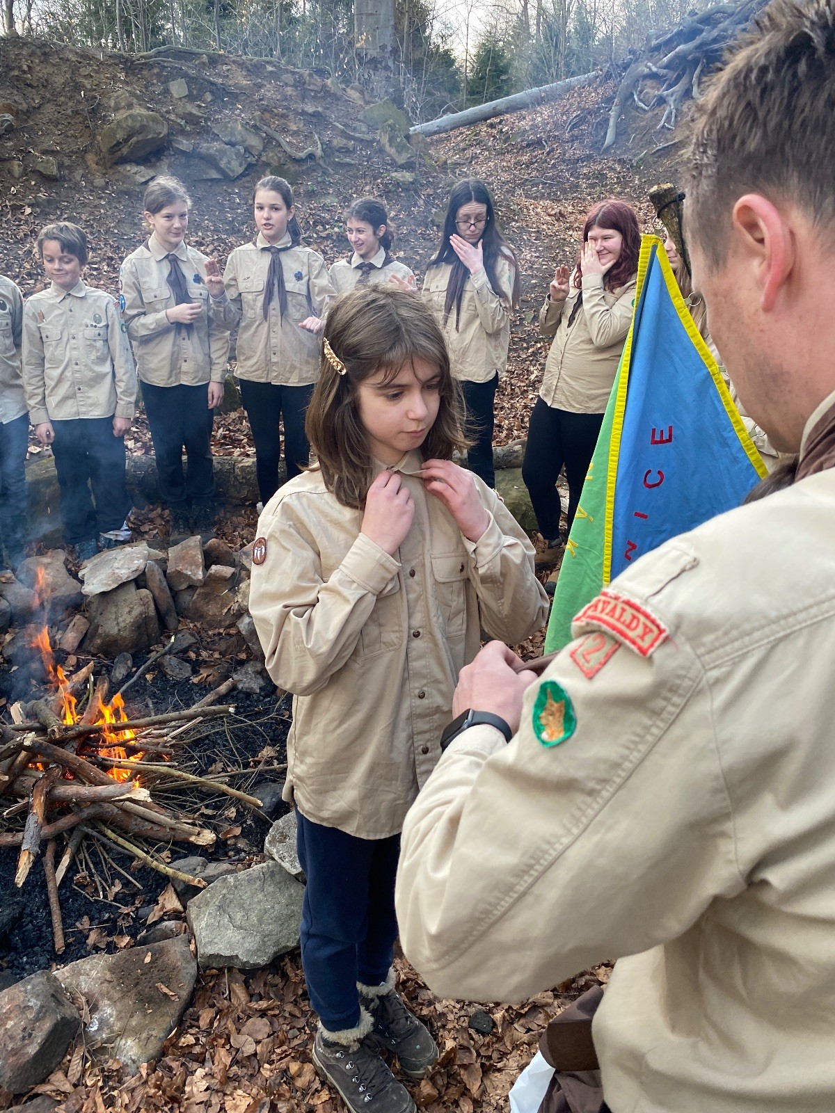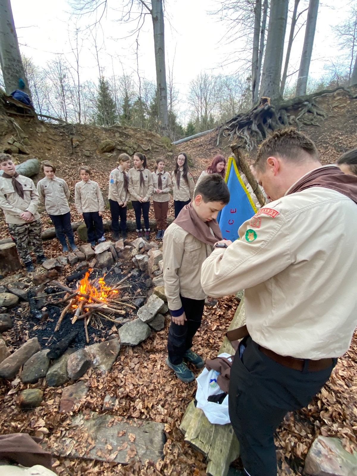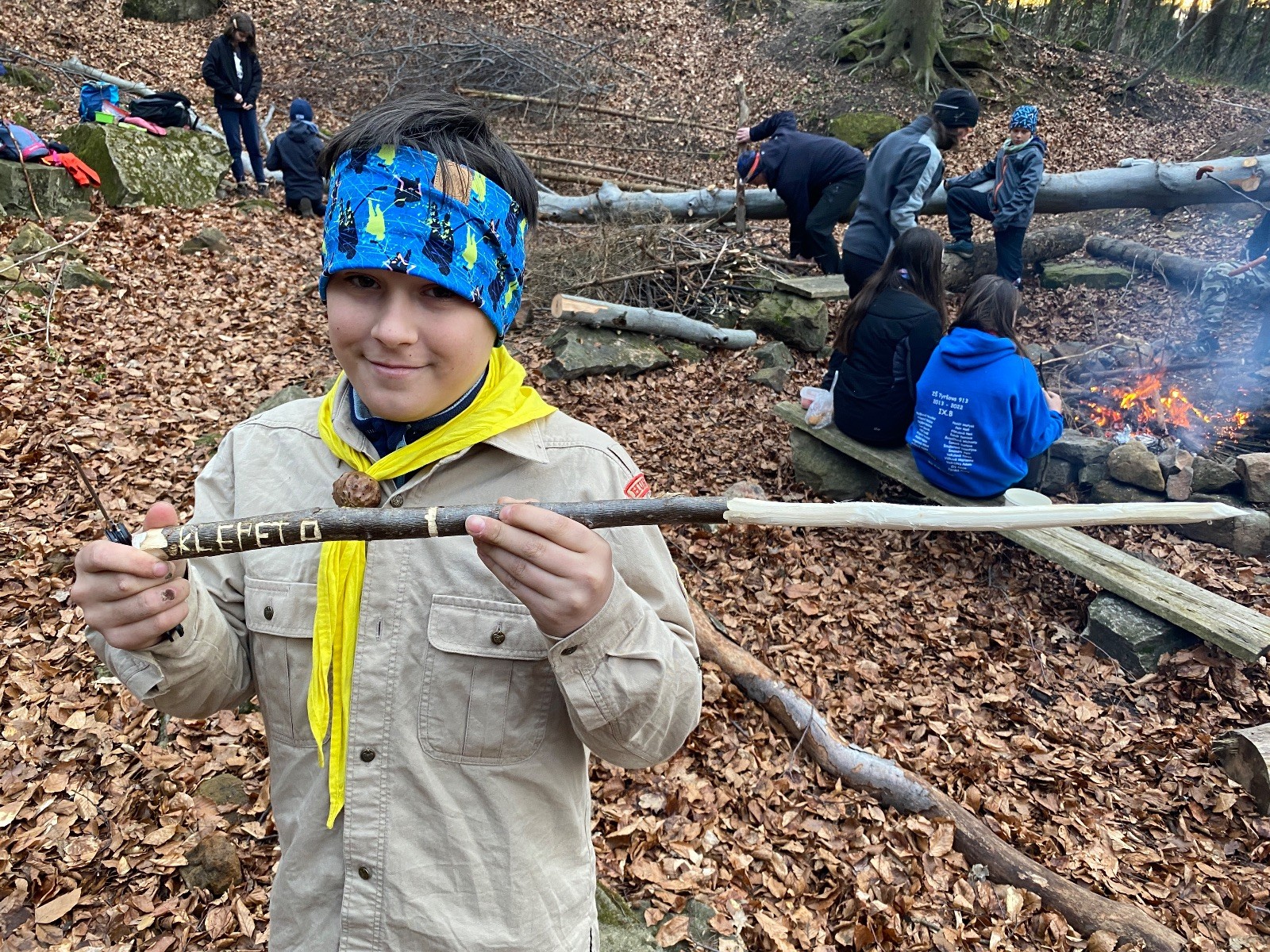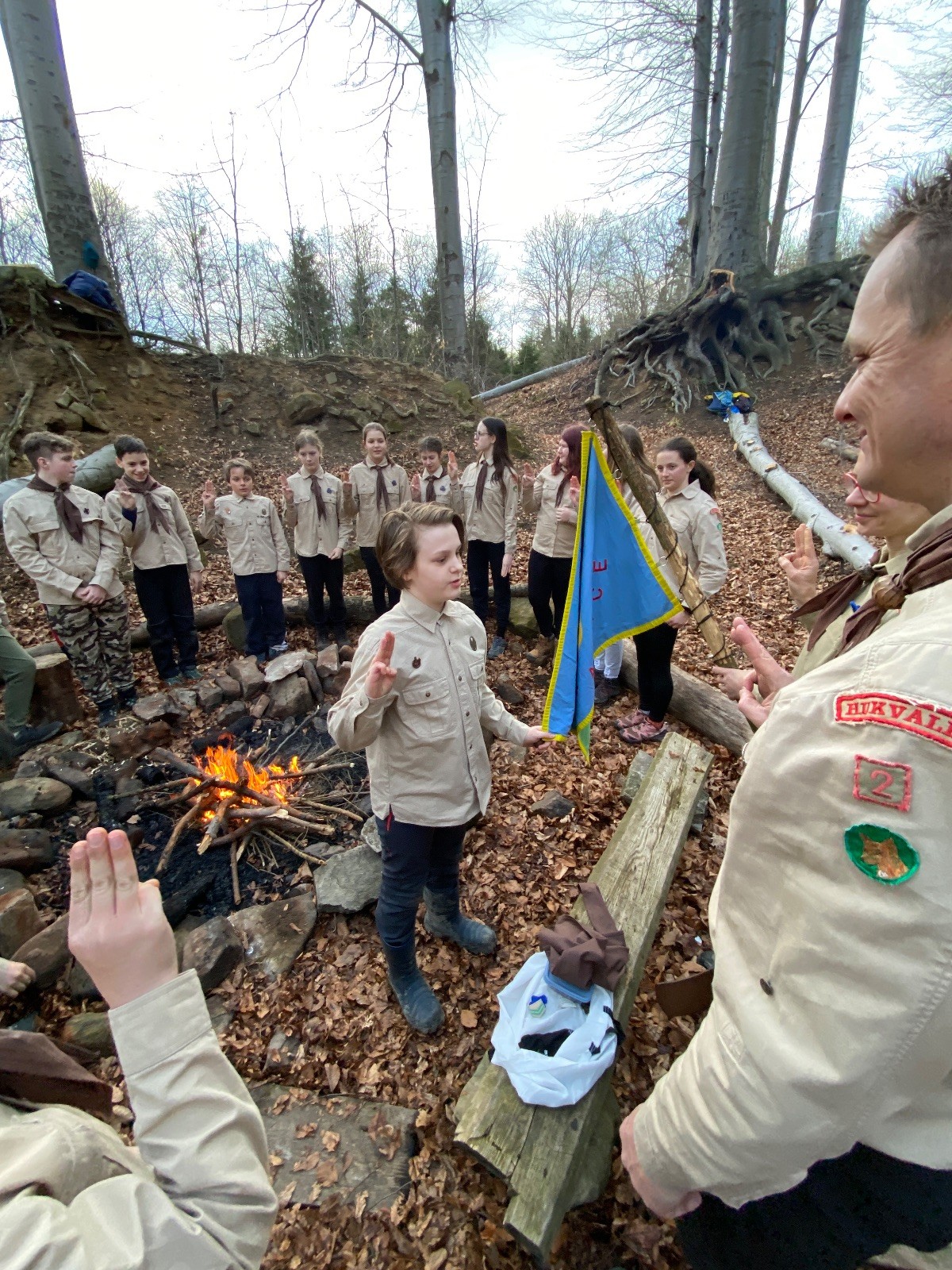 Skautské sliby skládá 6 lišek. Mí kocouři, kteří za sebou mají nováčkovskou zkoušku, bohužel chybí. Rozdáváme lipové lístečky, slavnostní oheň překřtíme na užitkový a chystáme večeři. Já si své špekáčky prozíravě nechal v autě. Mí kocouři mě ovšem mají rádi, takže se se mnou ochotně musí rozdělit. Díky Marťanovi a Schofce 😁. Potom kytara, písničky a pauza na vytrávení. Se setměním ještě hrajeme pár kol schovávané. Na závěr vytahujeme naše čupr, svíčky se skořicovou vůní. Jeden od druhého si je zapalujeme a vyslovujeme naše přání. Svíčky sice voní hezky, ale to, co výrobce přidal na vůni, zjevně ubral z jejich schopnosti hořet a vydržet. Ale co… byly ve slevě. Hasíme oheň a frčíme zpátky na myslivnu, kde nám Jana od Uzla poctivě přikládala. Vyčistíme zuby a na dobrou noc pouštíme Spidermana.