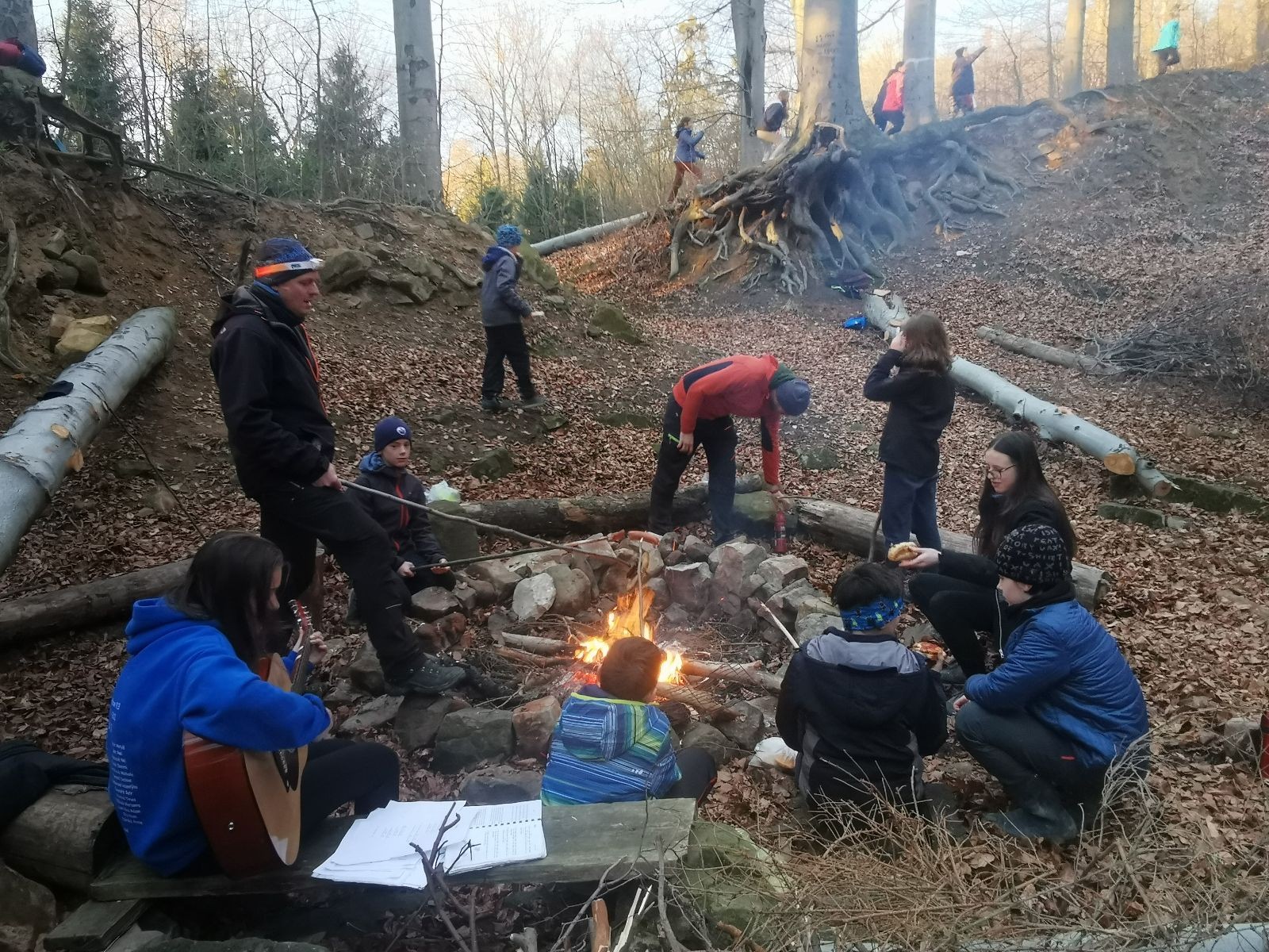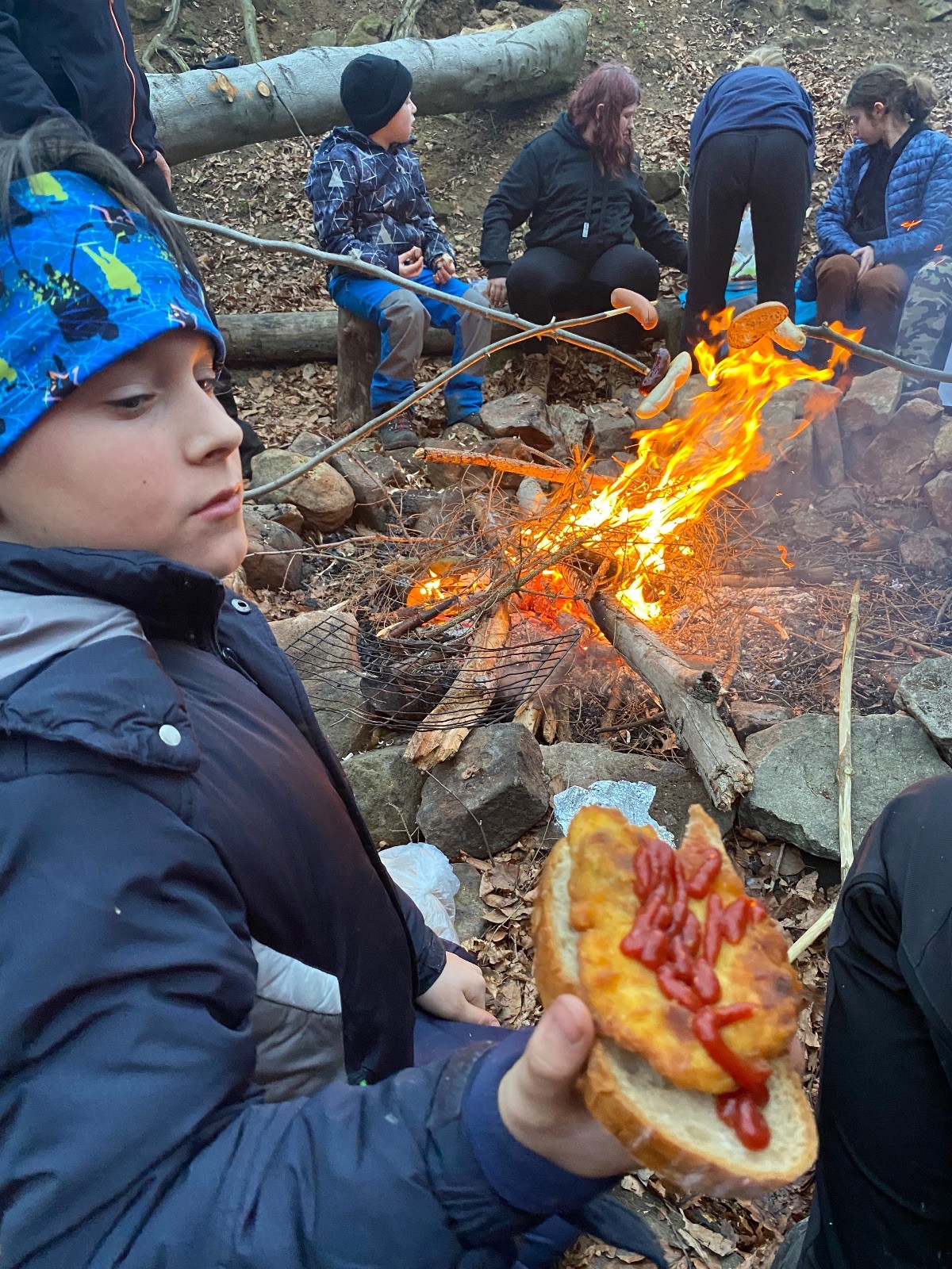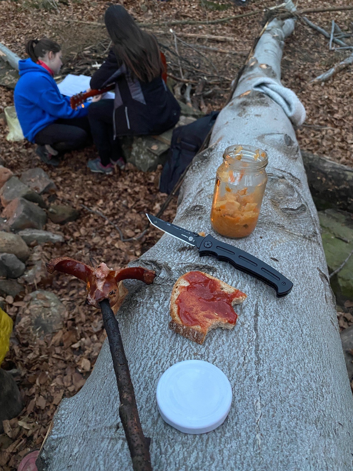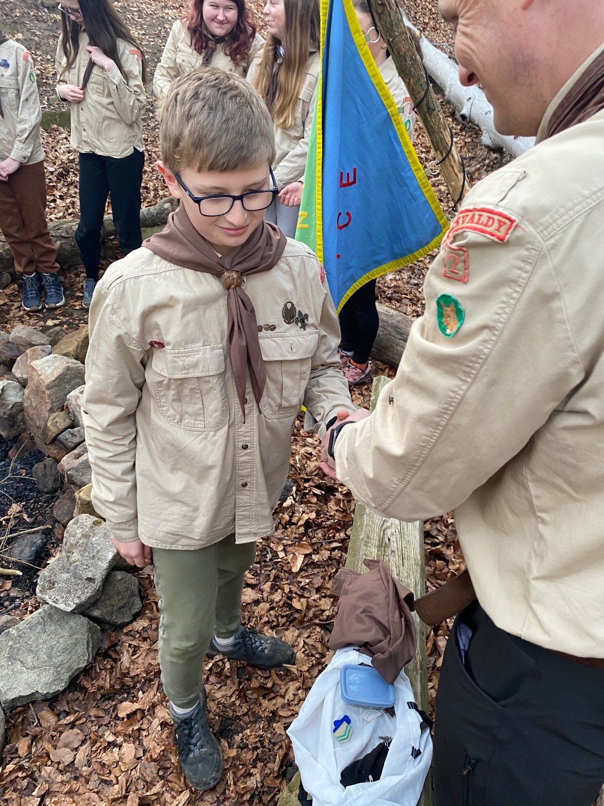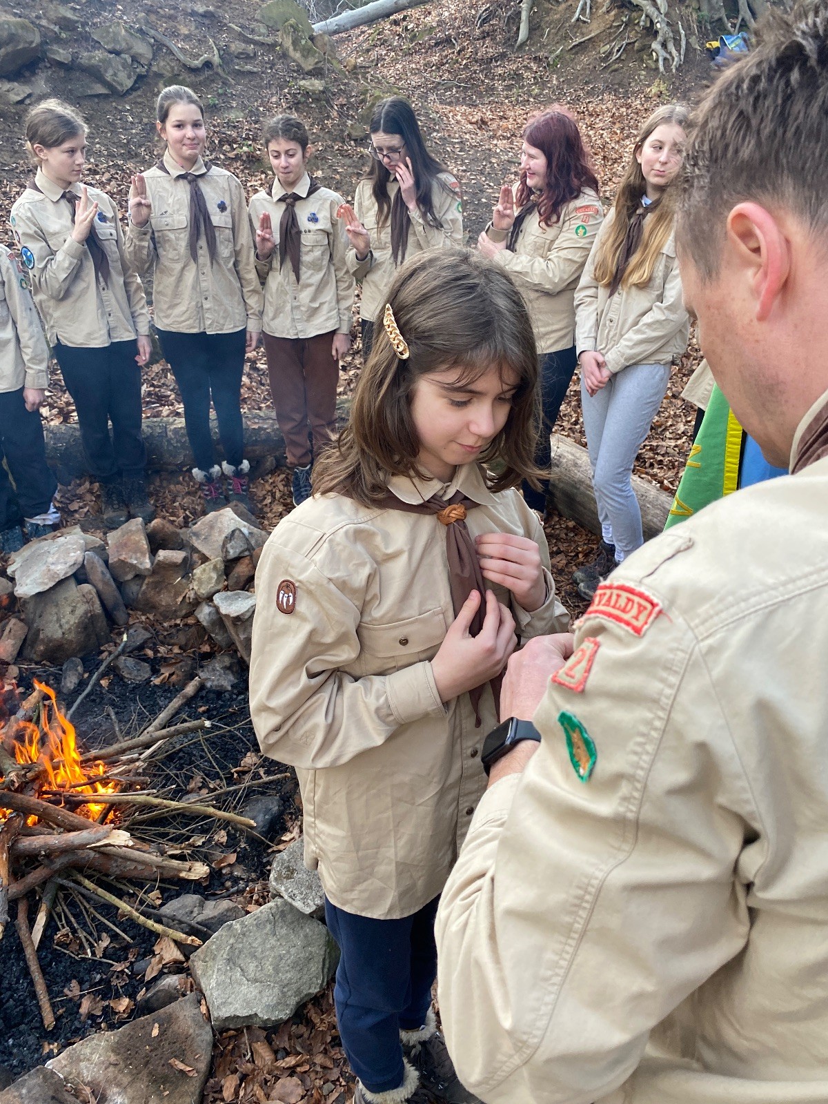 Skautské sliby skládá 6 lišek. Mí kocouři, kteří za sebou mají nováčkovskou zkoušku, bohužel chybí. Rozdáváme lipové lístečky, slavnostní oheň překřtíme na užitkový a chystáme večeři. Já si své špekáčky prozíravě nechal v autě. Mí kocouři mě ovšem mají rádi, takže se se mnou ochotně musí rozdělit. Díky Marťanovi a Schofce 😁. Potom kytara, písničky a pauza na vytrávení. Se setměním ještě hrajeme pár kol schovávané. Na závěr vytahujeme naše čupr, svíčky se skořicovou vůní. Jeden od druhého si je zapalujeme a vyslovujeme naše přání. Svíčky sice voní hezky, ale to, co výrobce přidal na vůni, zjevně ubral z jejich schopnosti hořet a vydržet. Ale co… byly ve slevě. Hasíme oheň a frčíme zpátky na myslivnu, kde nám Jana od Uzla poctivě přikládala. Vyčistíme zuby a na dobrou noc pouštíme Spidermana.