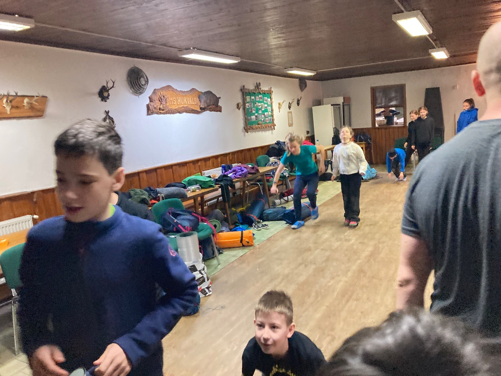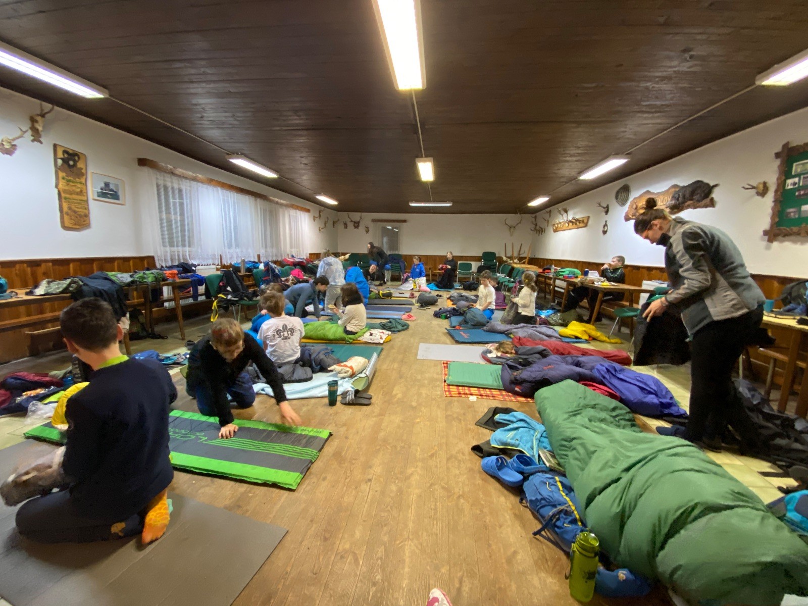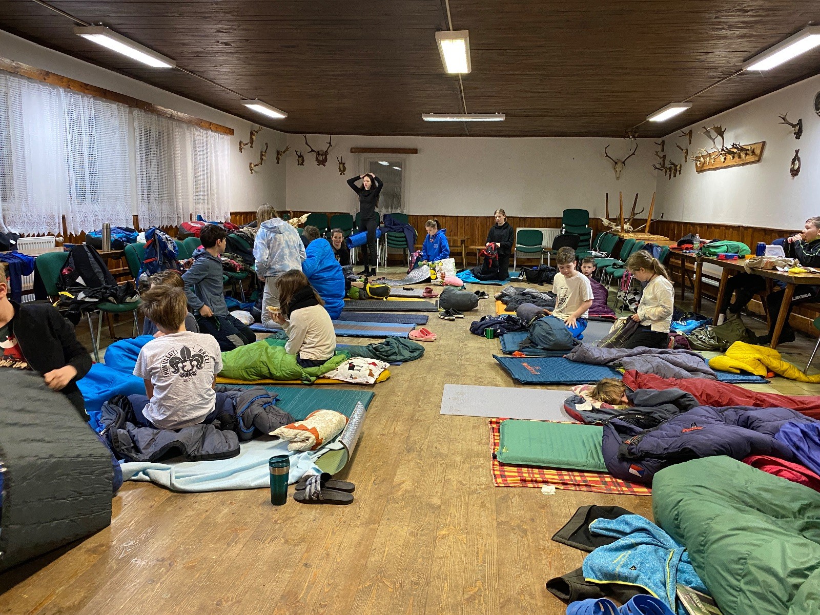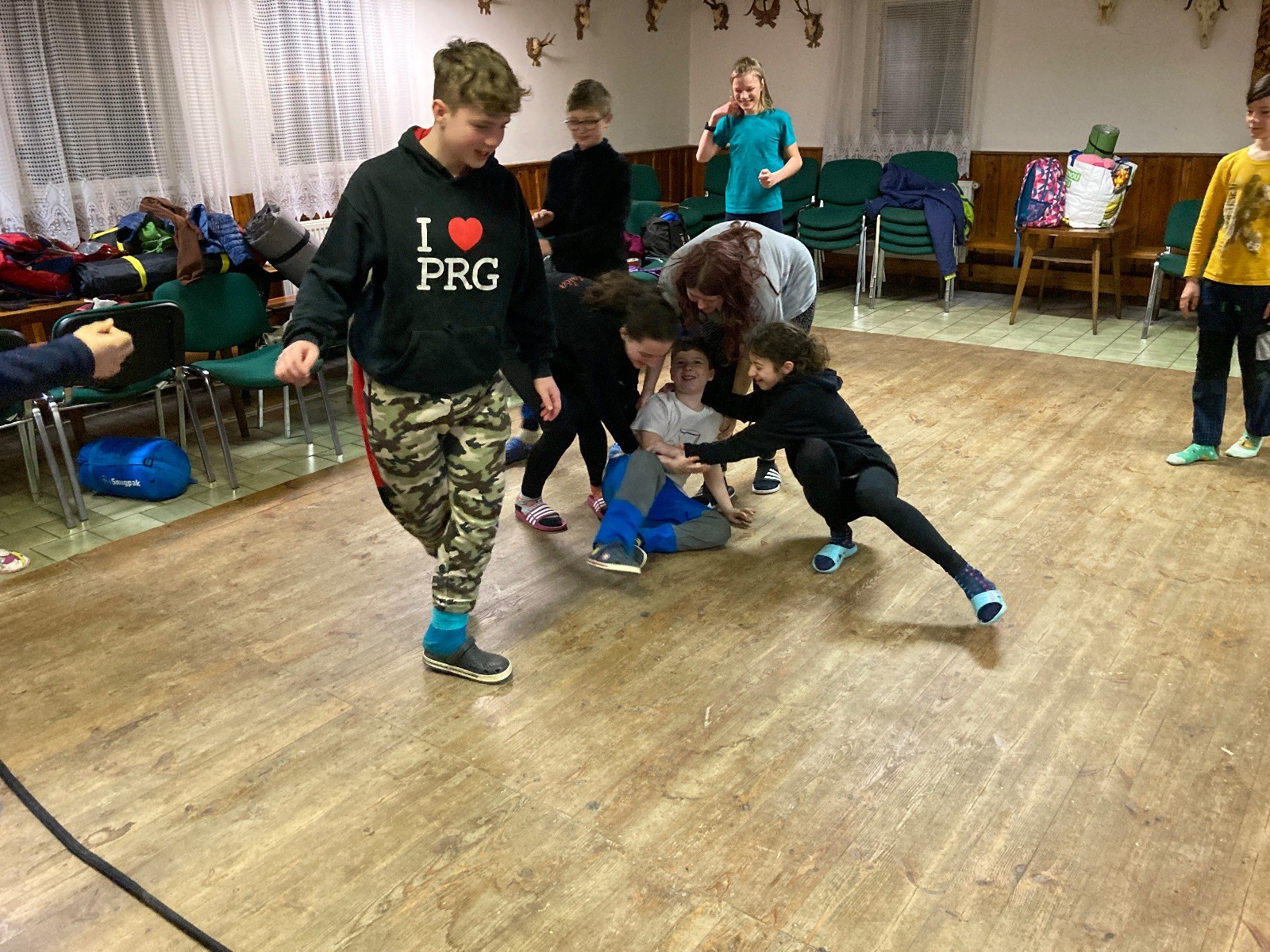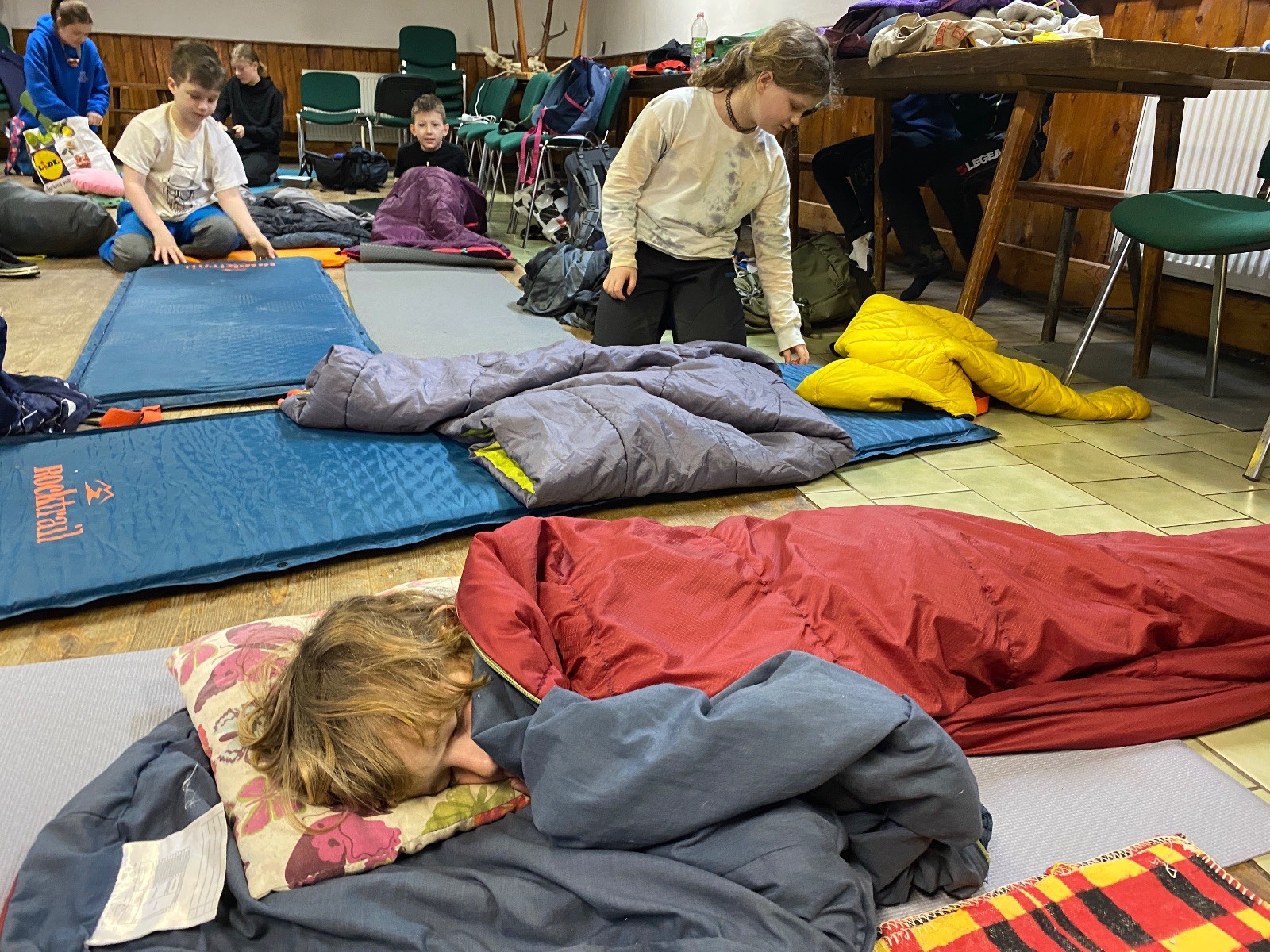 Je neděle, takže si hezky pospíme a ráno zahájíme rozcvičkou, na kterou si všichni těšíme tak, že pokud si příště zase zapomenu špekáčky, asi zůstanu hlady. Pak zahrajeme kámen-nůžky, hutututu, uklidíme a frčíme domů.