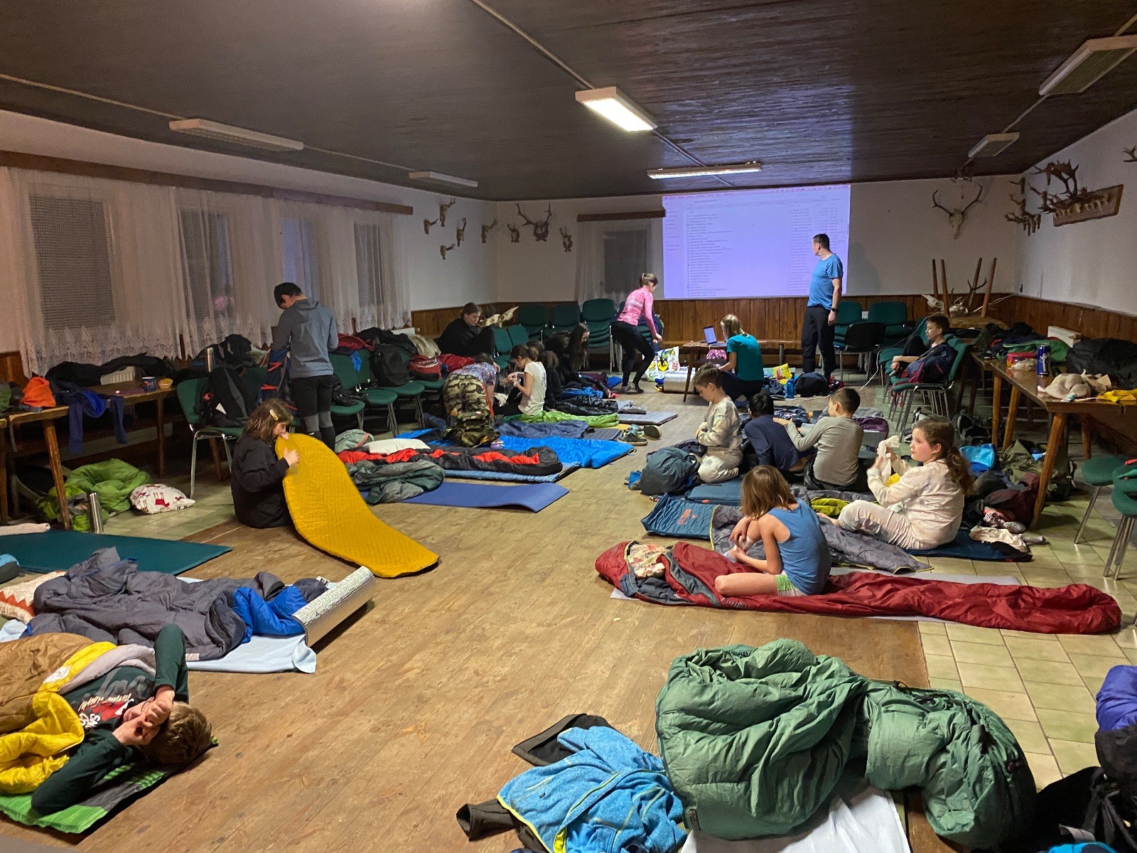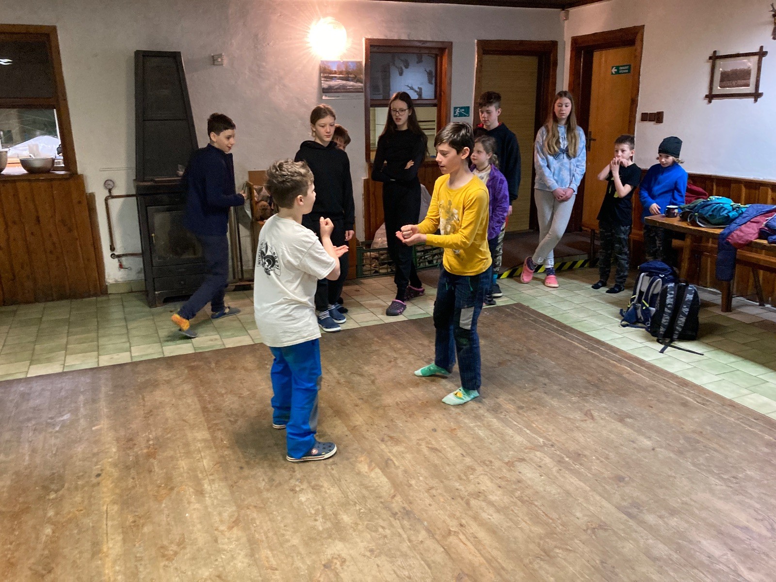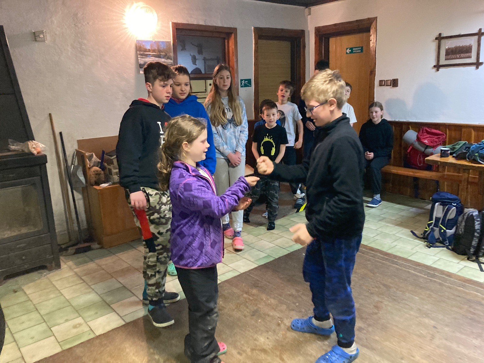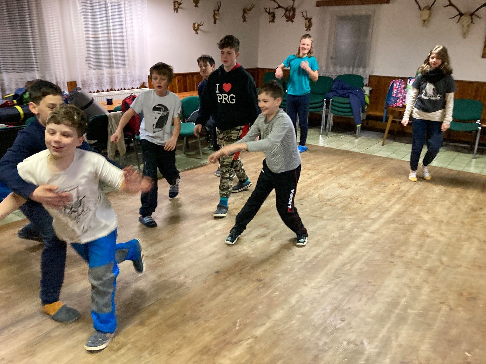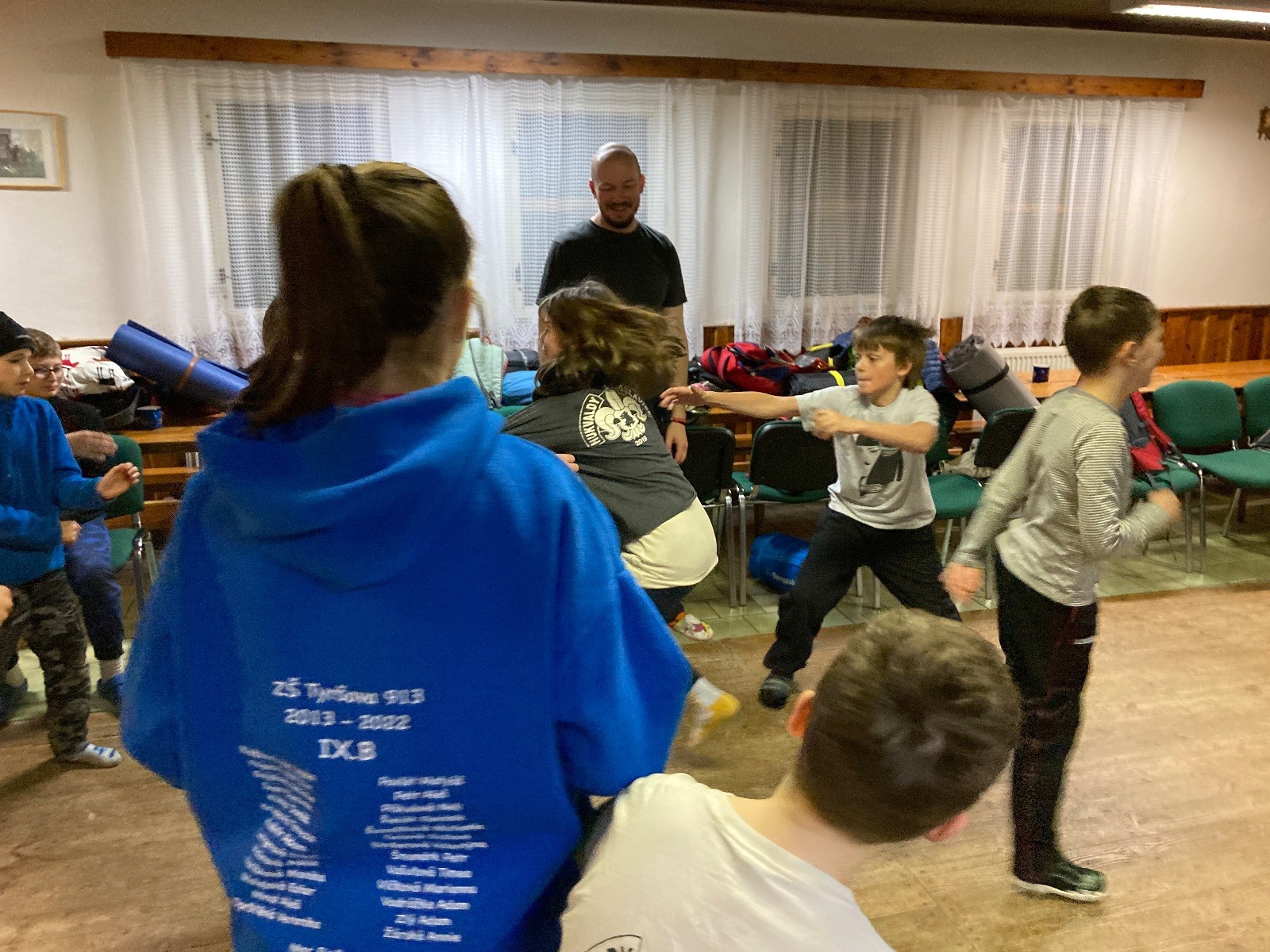 Je neděle, takže si hezky pospíme a ráno zahájíme rozcvičkou, na kterou si všichni těšíme tak, že pokud si příště zase zapomenu špekáčky, asi zůstanu hlady. Pak zahrajeme kámen-nůžky, hutututu, uklidíme a frčíme domů.