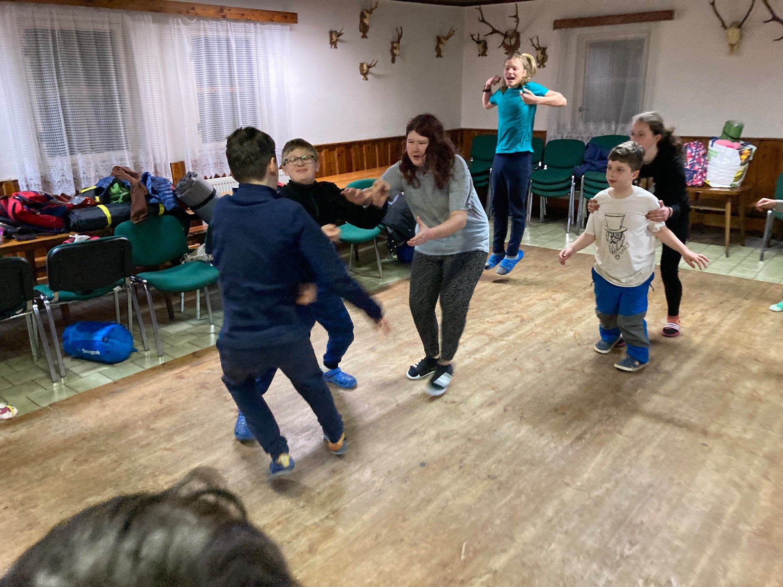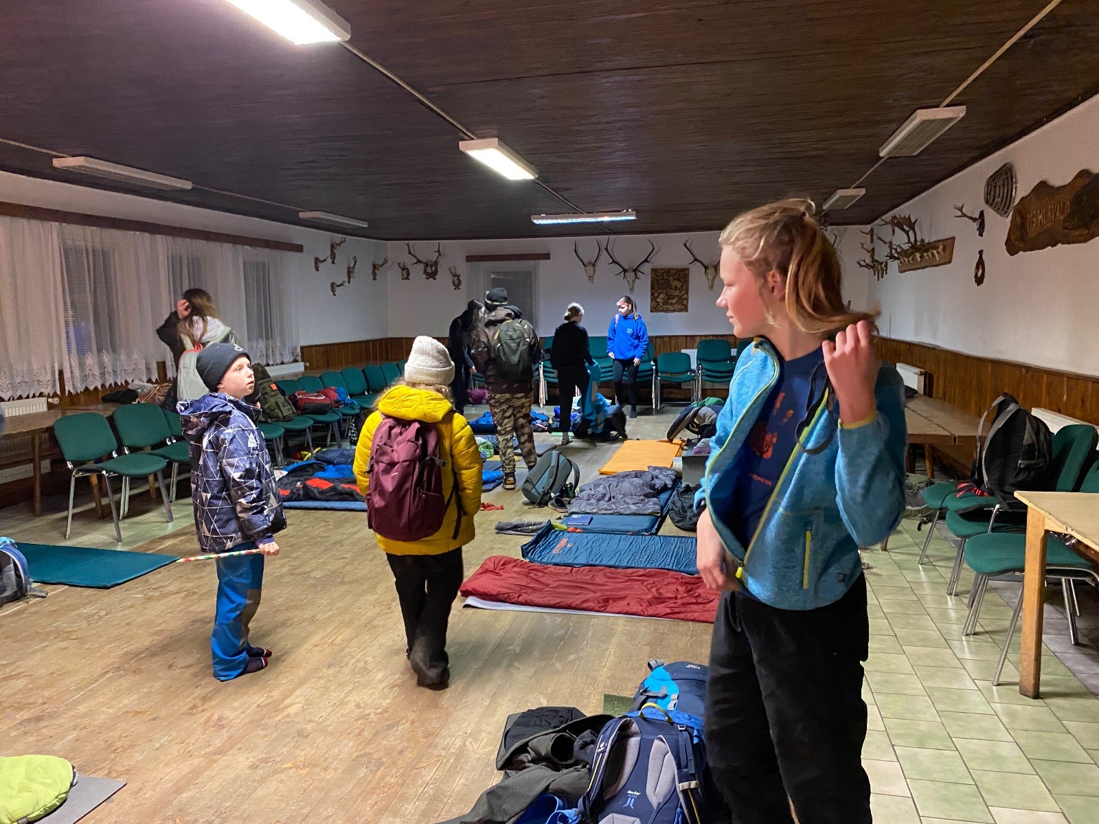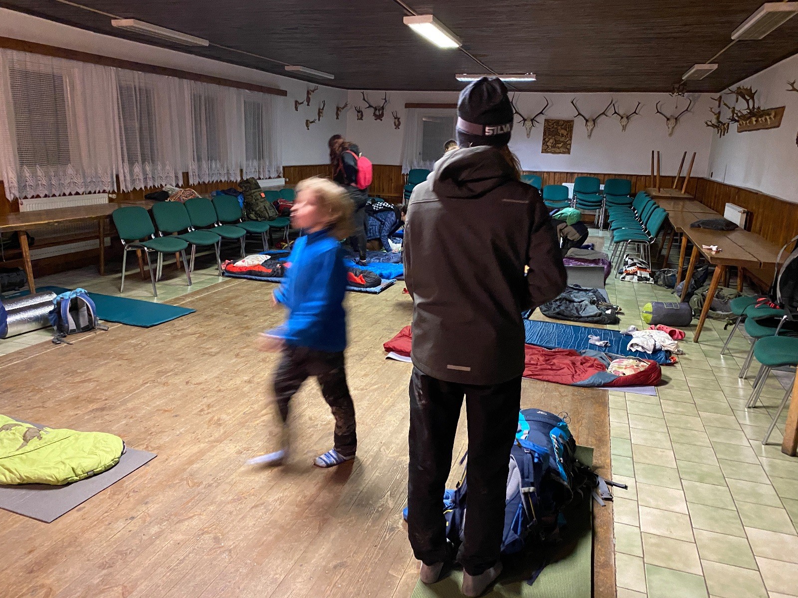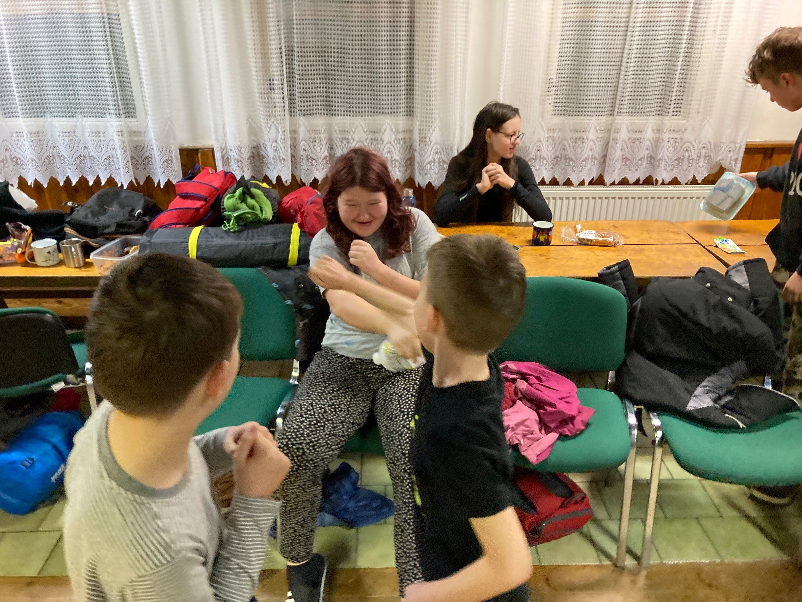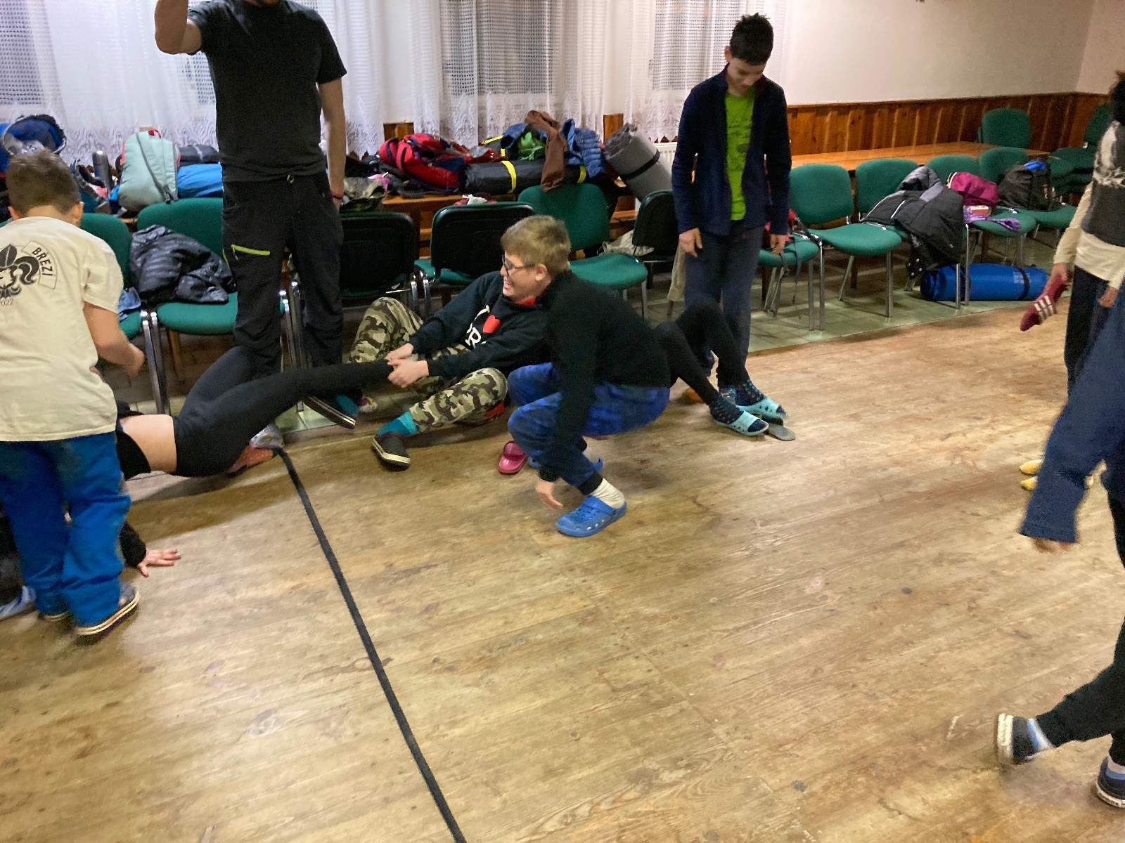 Je neděle, takže si hezky pospíme a ráno zahájíme rozcvičkou, na kterou si všichni těšíme tak, že pokud si příště zase zapomenu špekáčky, asi zůstanu hlady. Pak zahrajeme kámen-nůžky, hutututu, uklidíme a frčíme domů.