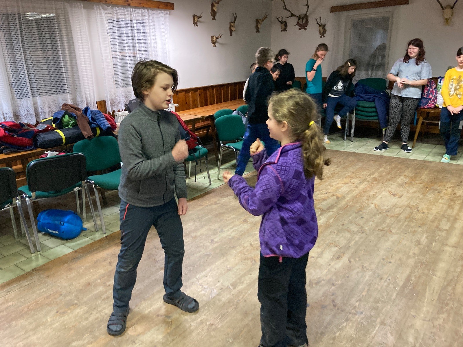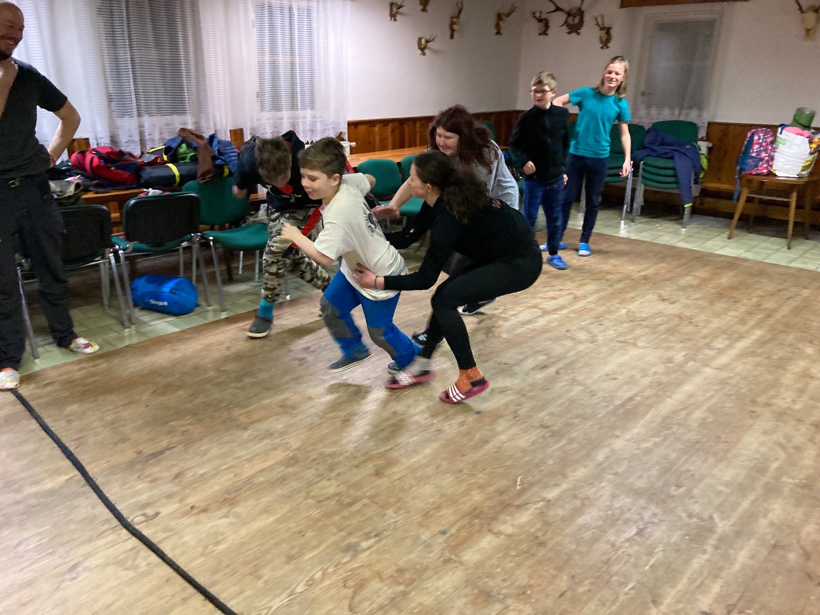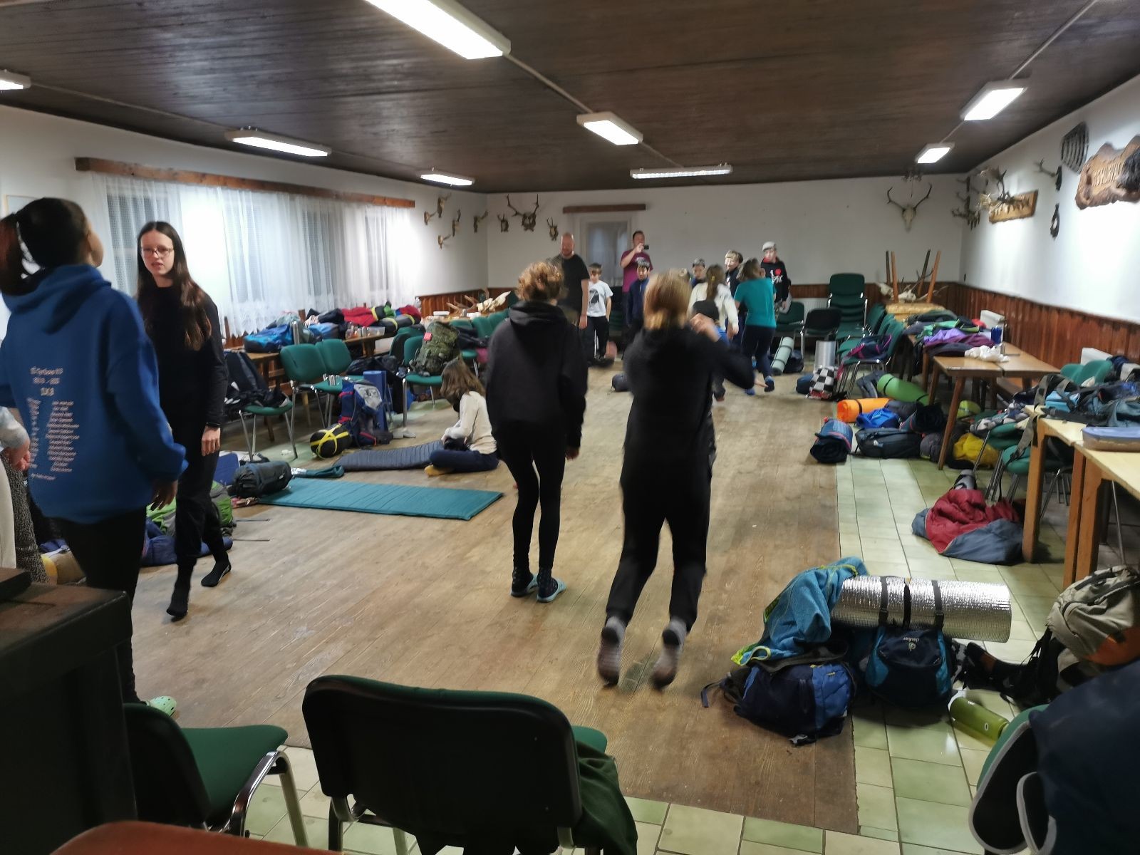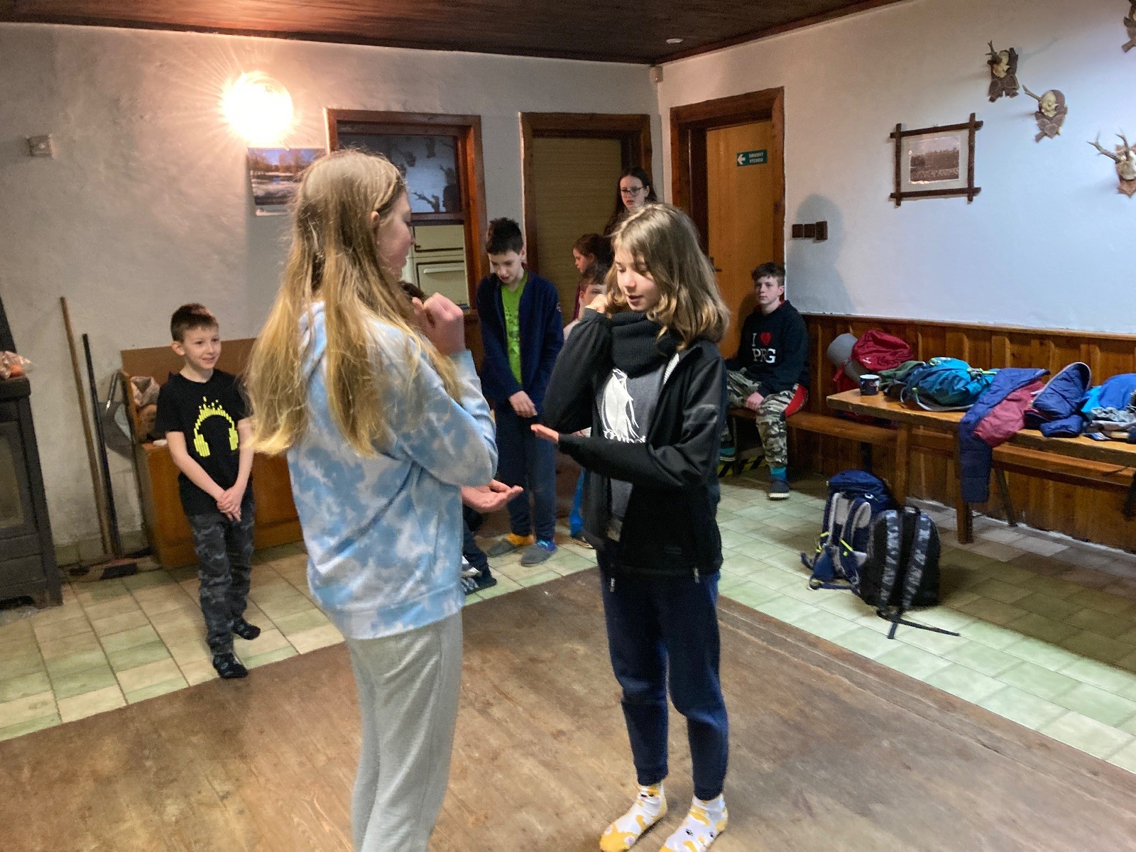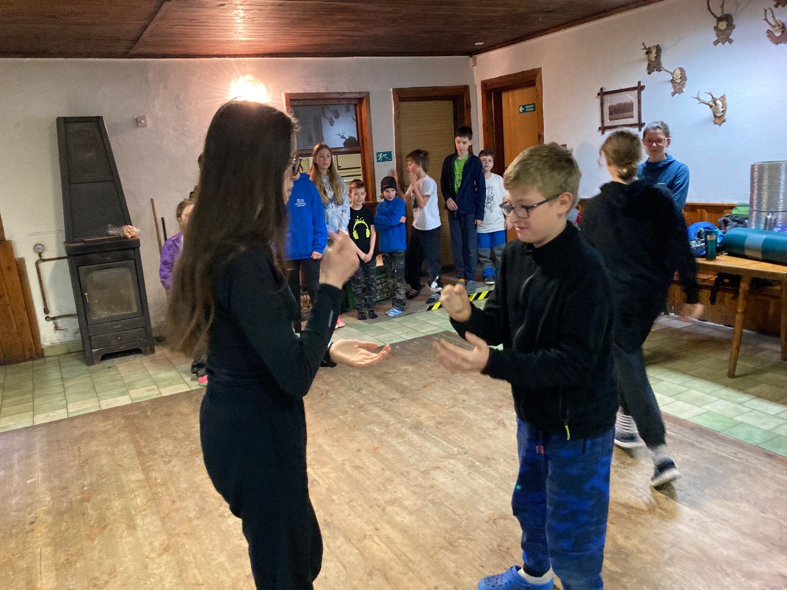 Je neděle, takže si hezky pospíme a ráno zahájíme rozcvičkou, na kterou si všichni těšíme tak, že pokud si příště zase zapomenu špekáčky, asi zůstanu hlady. Pak zahrajeme kámen-nůžky, hutututu, uklidíme a frčíme domů.