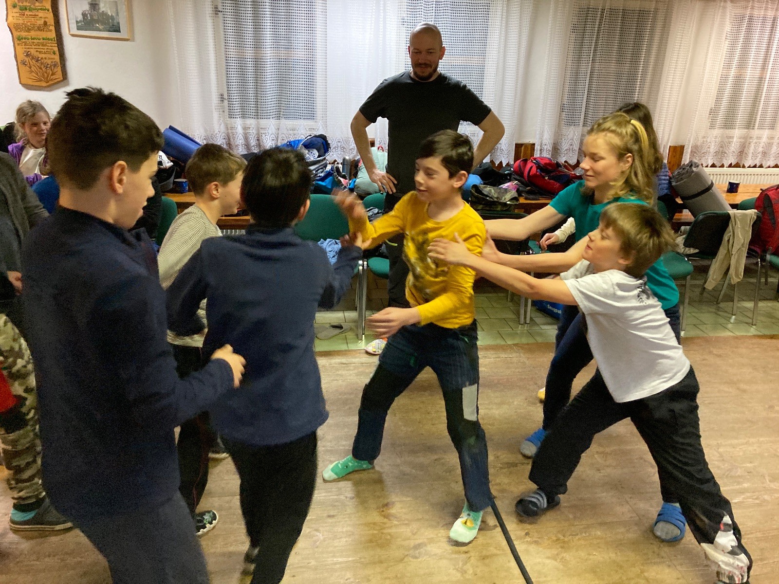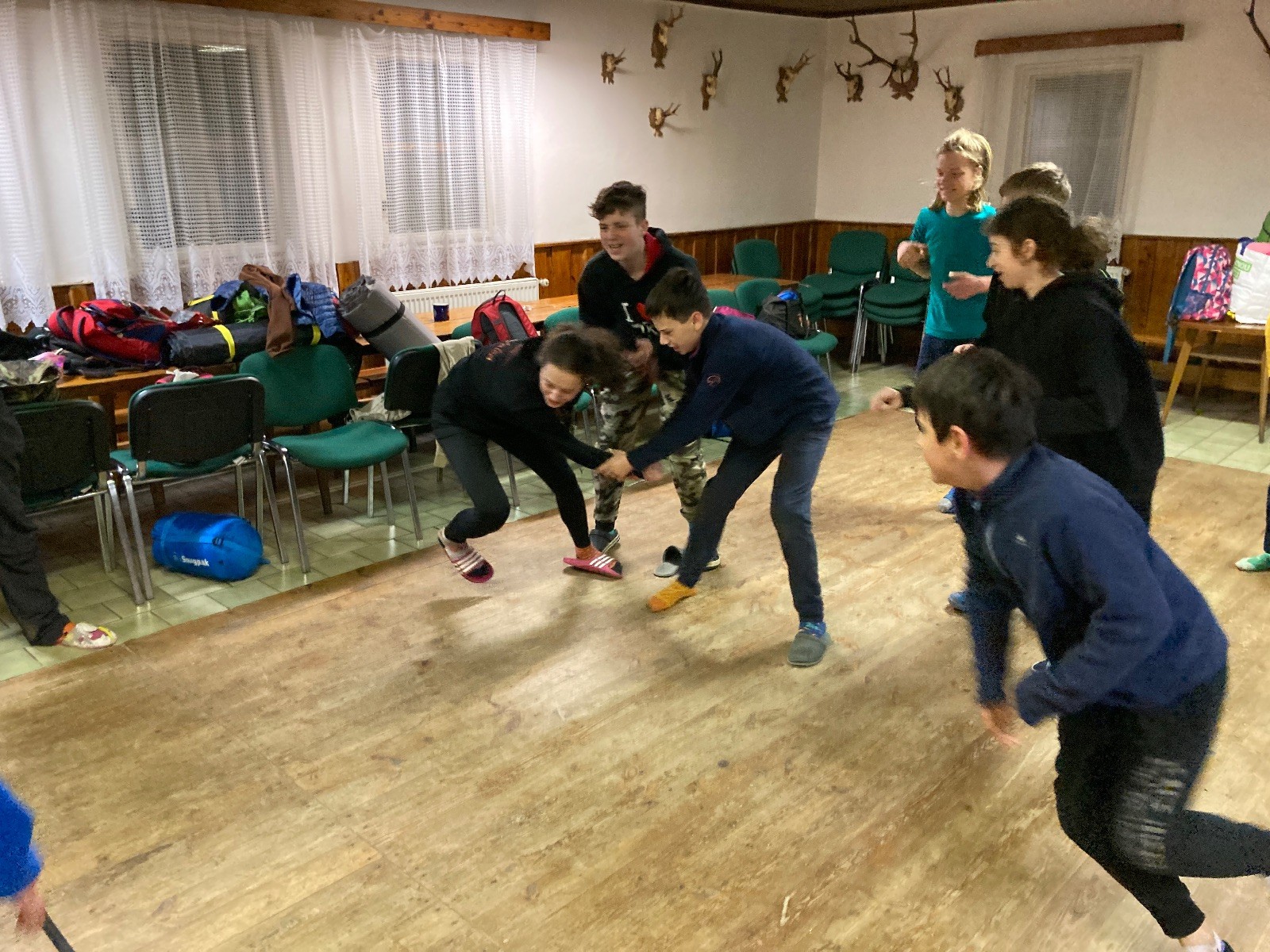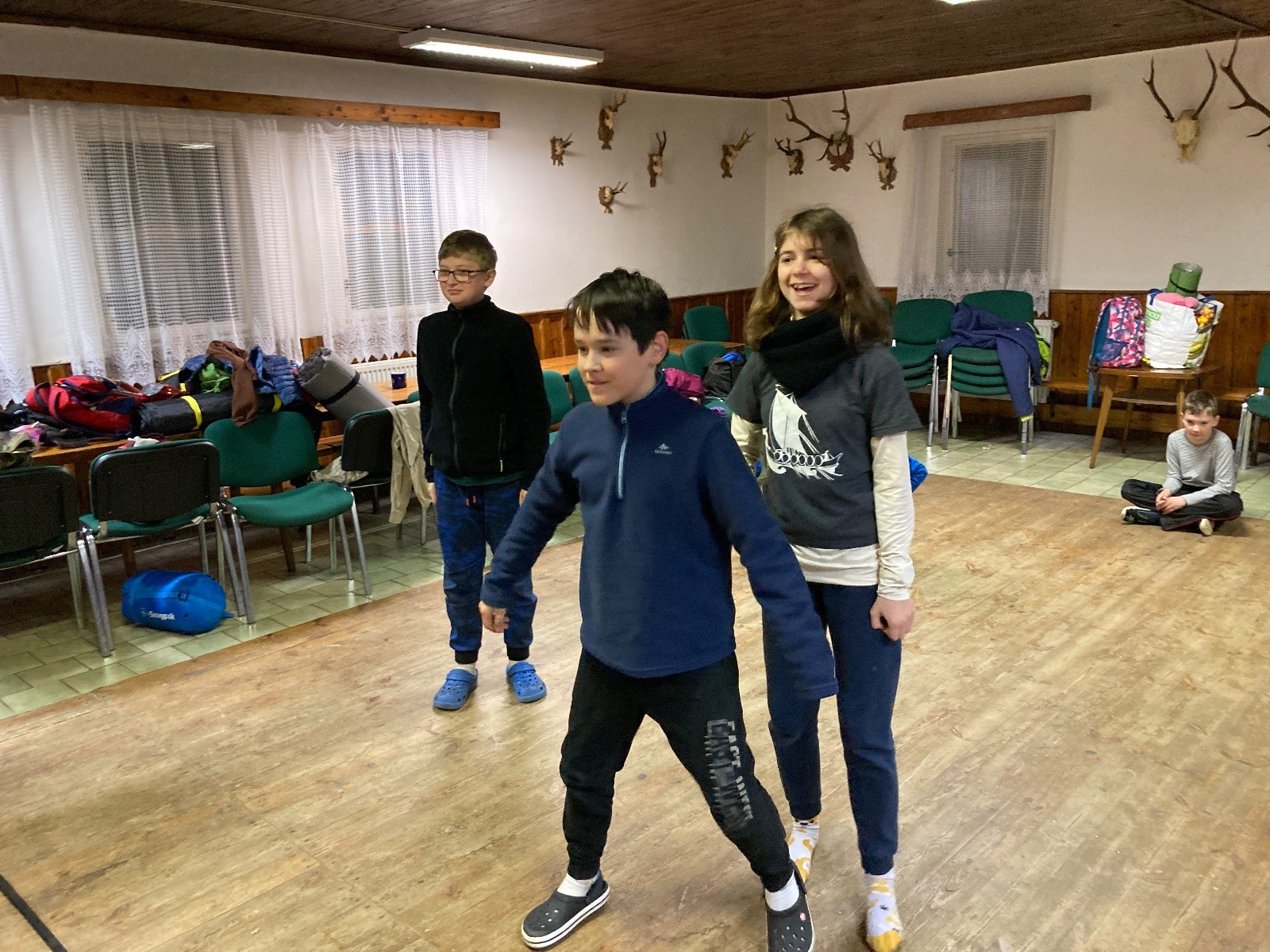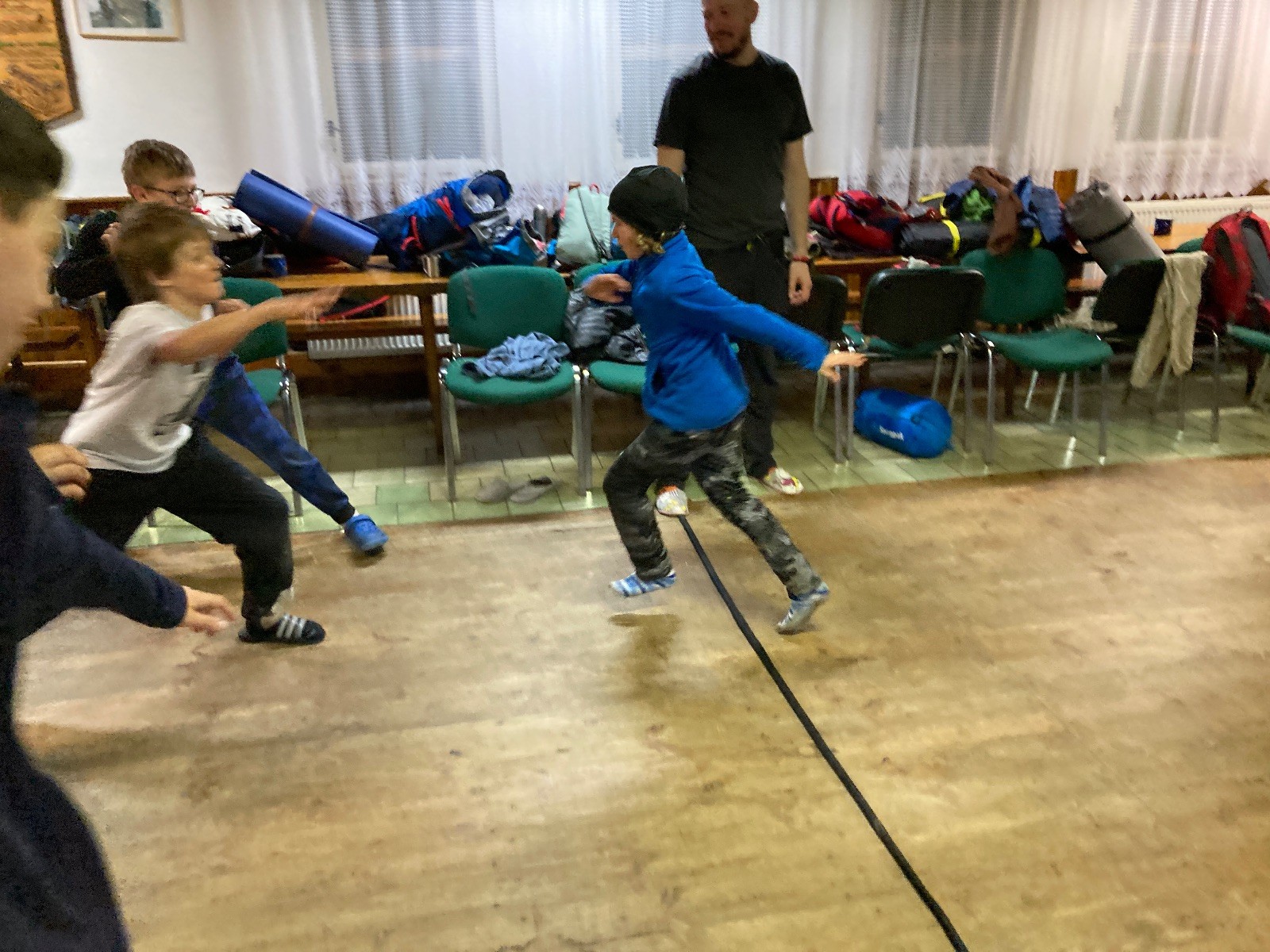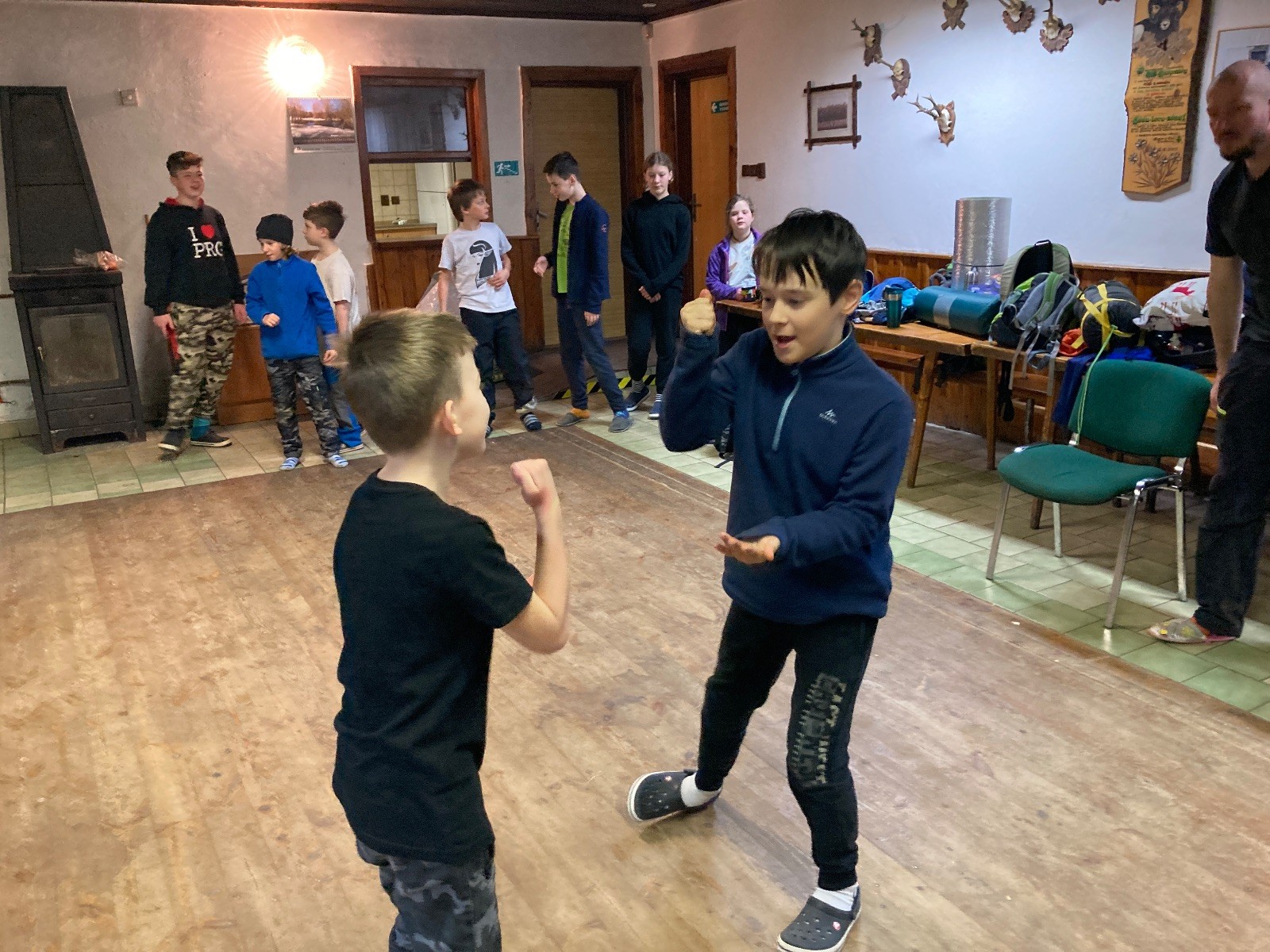 Je neděle, takže si hezky pospíme a ráno zahájíme rozcvičkou, na kterou si všichni těšíme tak, že pokud si příště zase zapomenu špekáčky, asi zůstanu hlady. Pak zahrajeme kámen-nůžky, hutututu, uklidíme a frčíme domů.