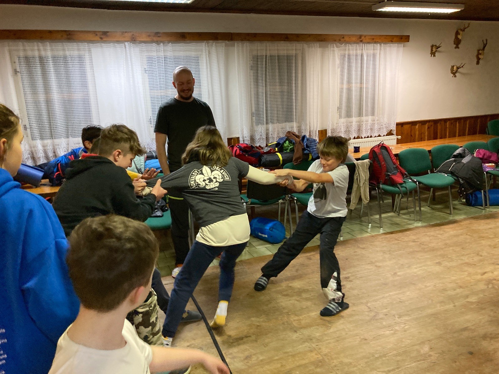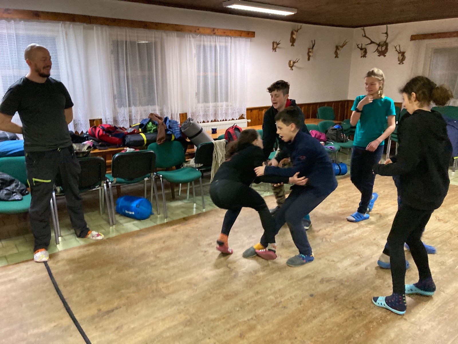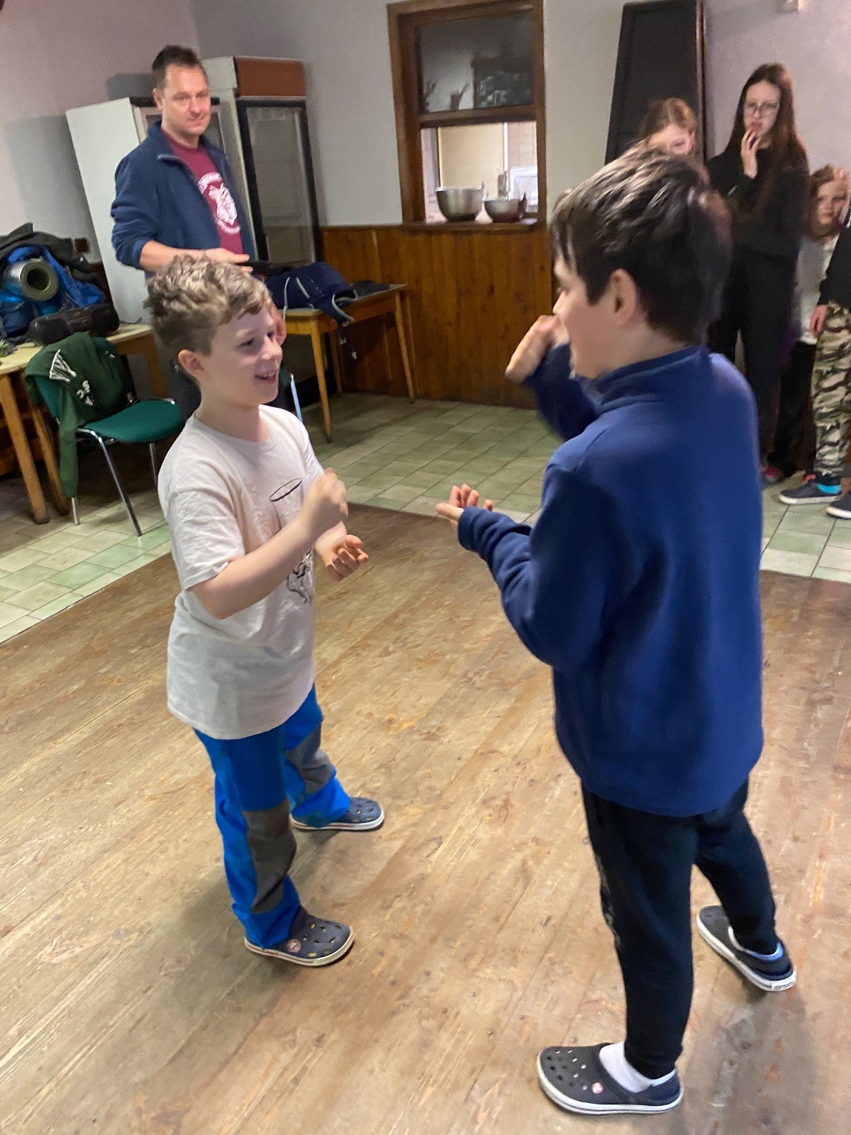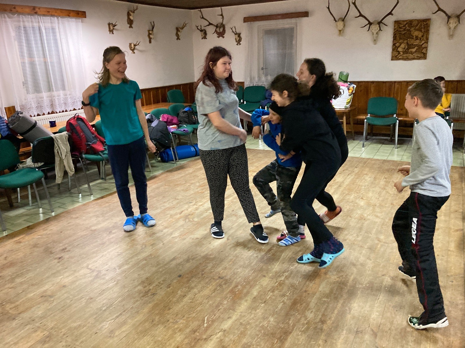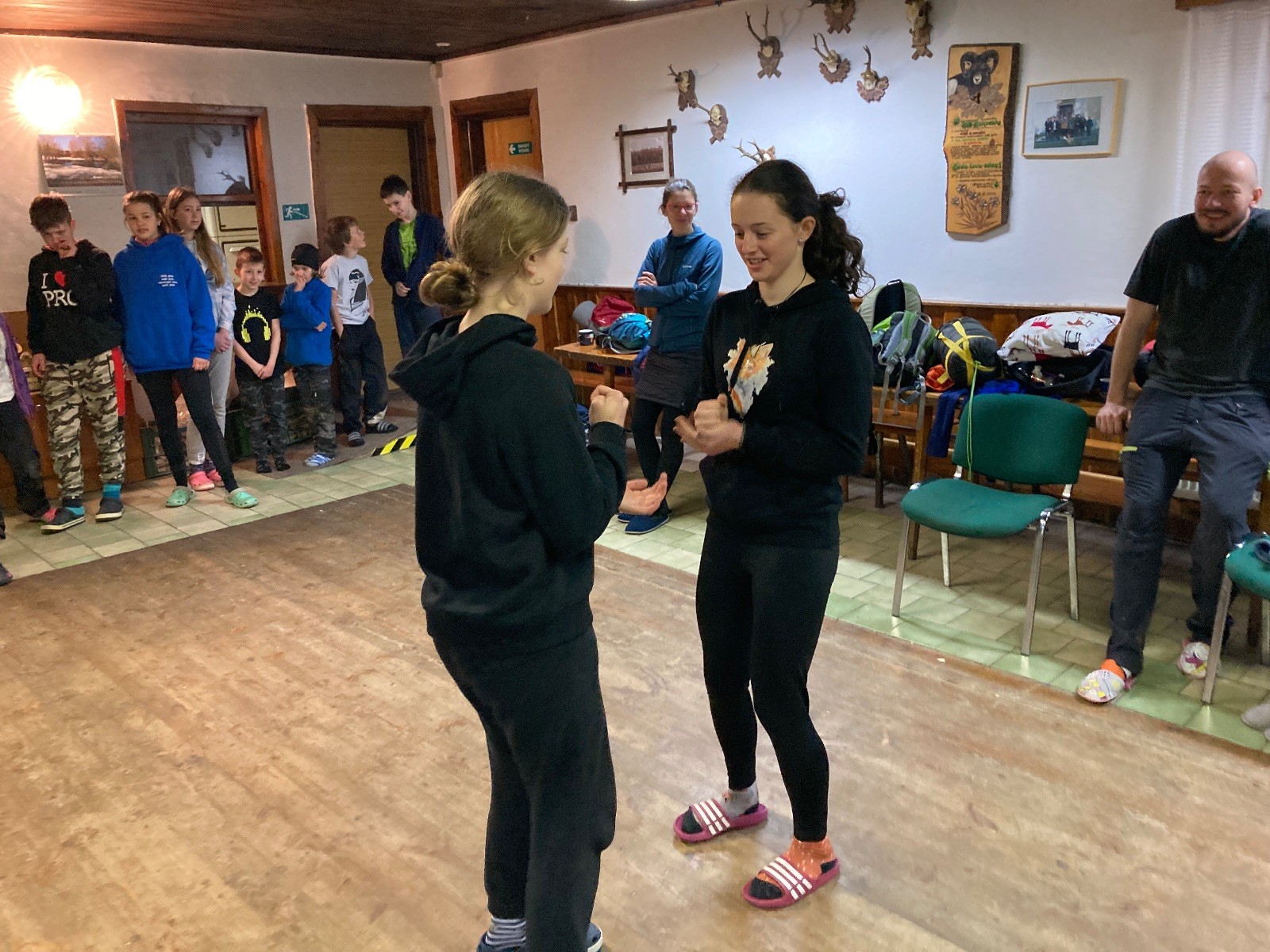 Je neděle, takže si hezky pospíme a ráno zahájíme rozcvičkou, na kterou si všichni těšíme tak, že pokud si příště zase zapomenu špekáčky, asi zůstanu hlady. Pak zahrajeme kámen-nůžky, hutututu, uklidíme a frčíme domů.