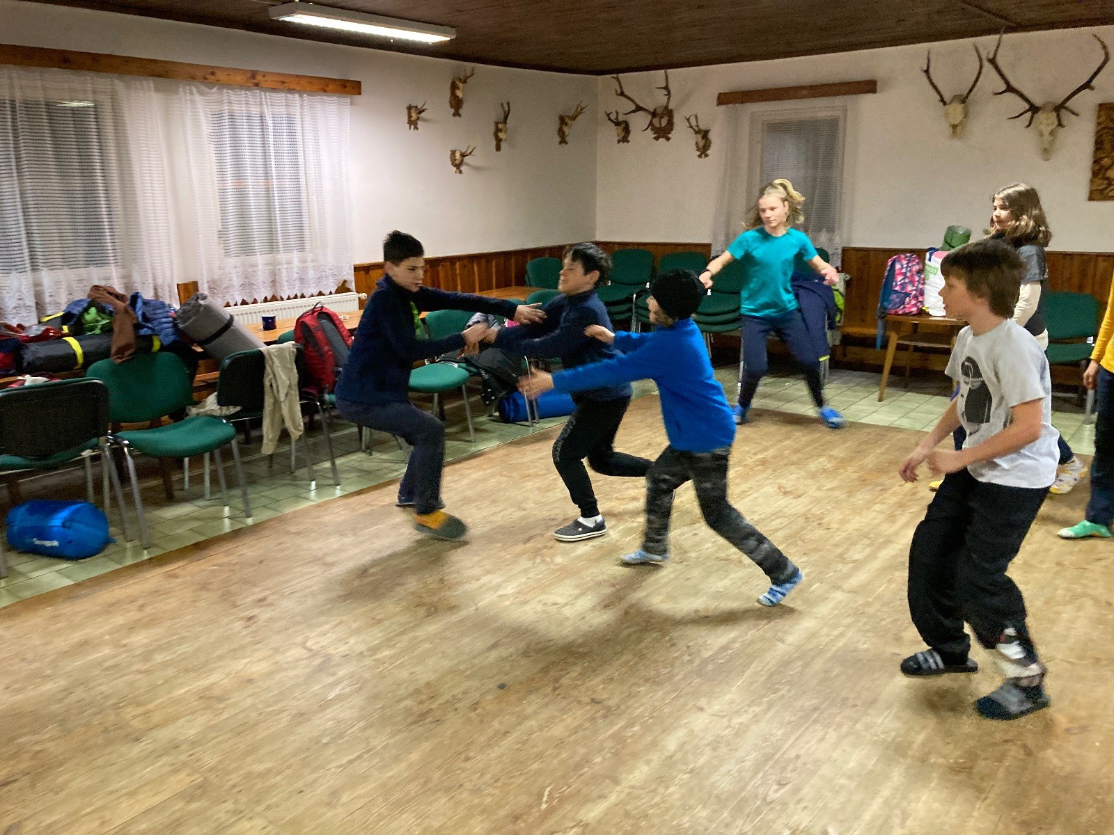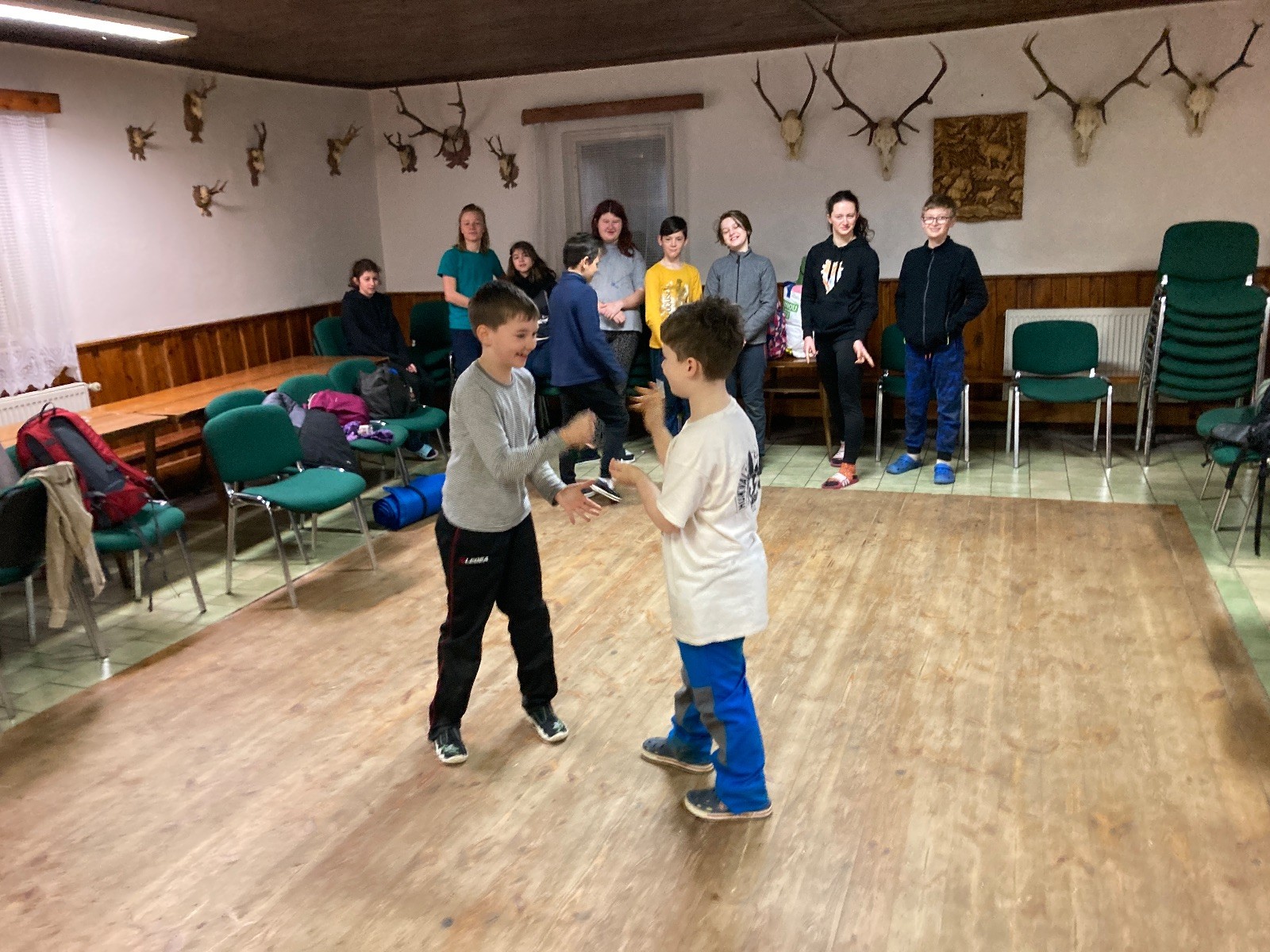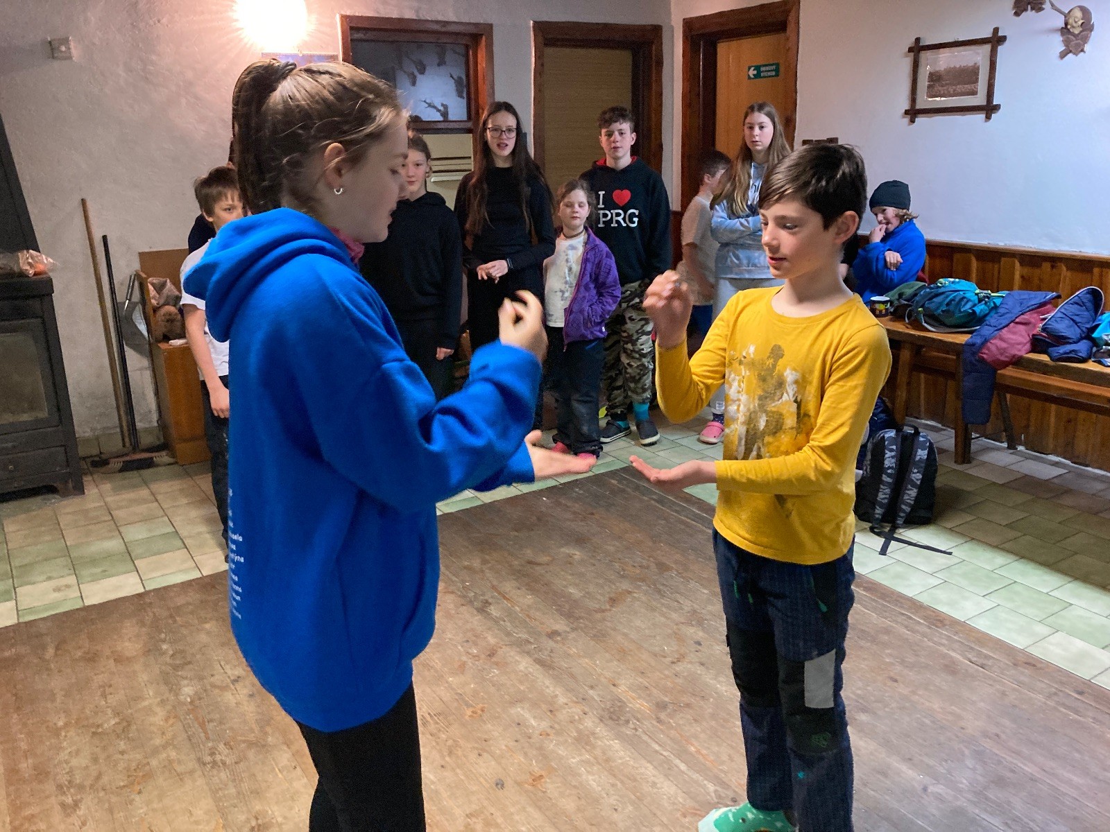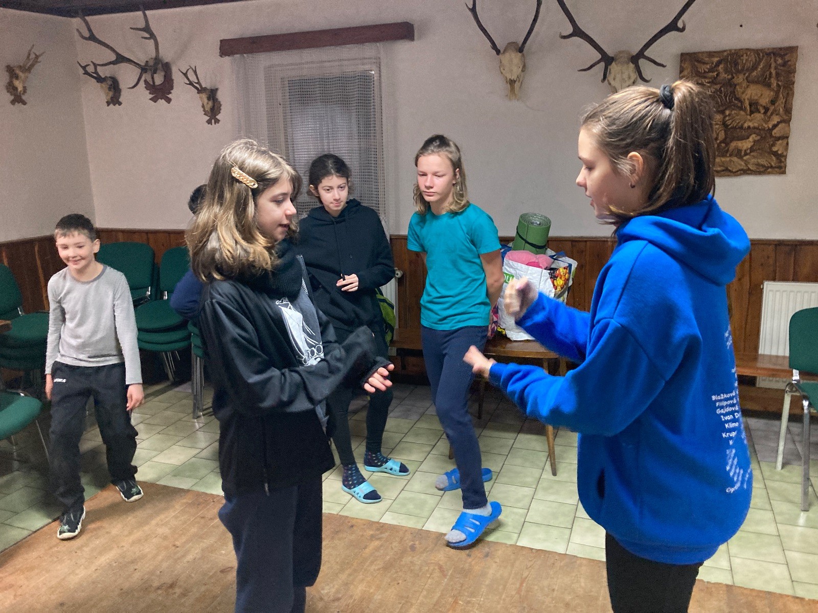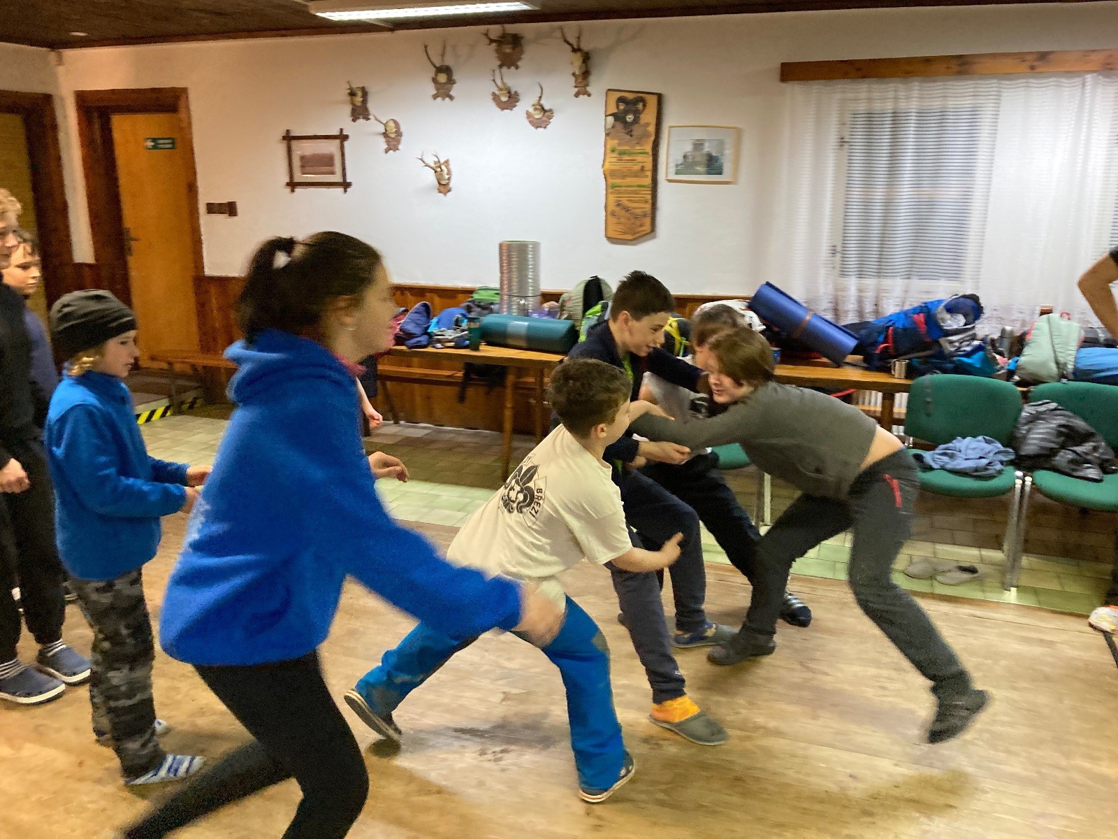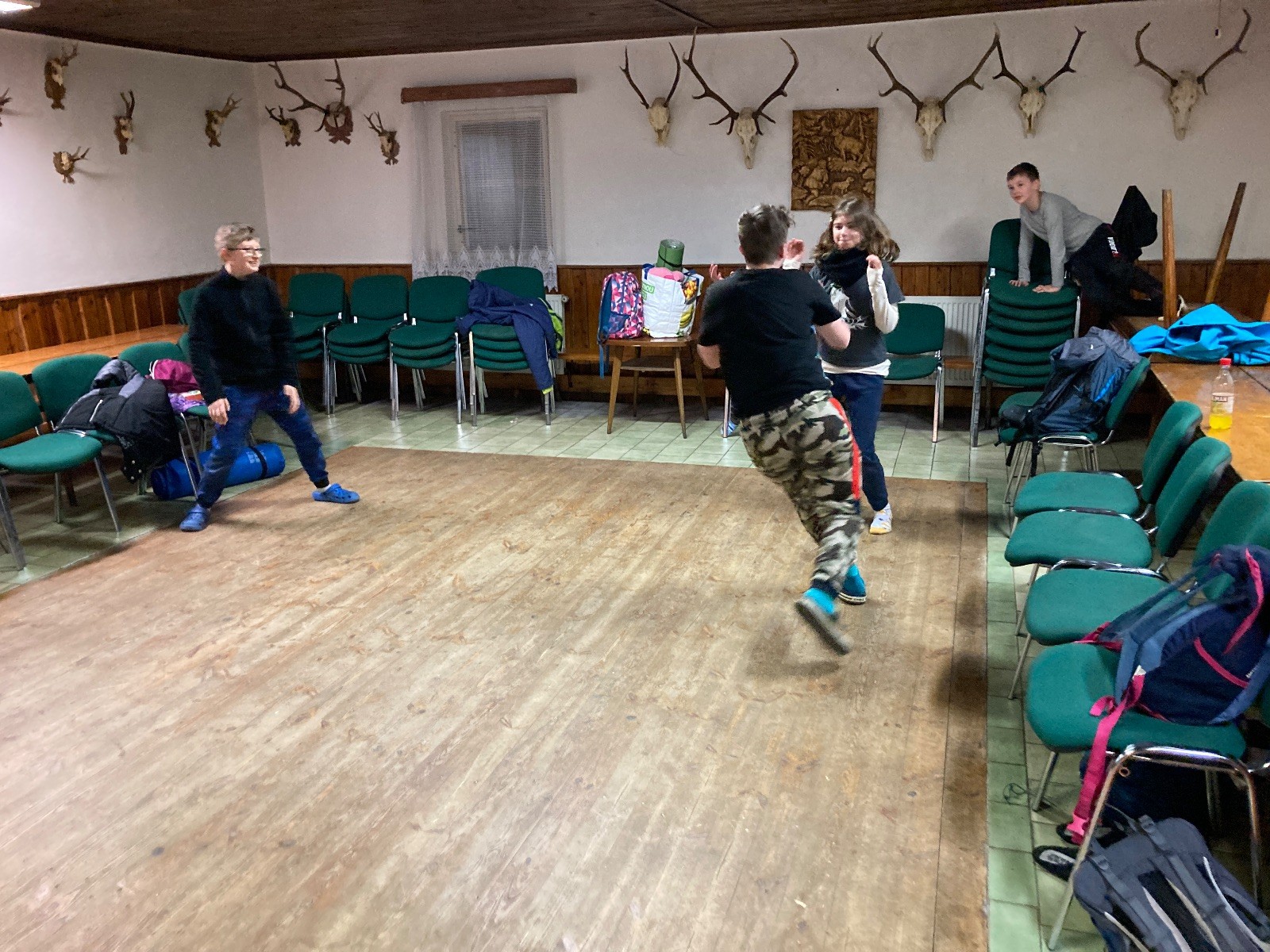 Je neděle, takže si hezky pospíme a ráno zahájíme rozcvičkou, na kterou si všichni těšíme tak, že pokud si příště zase zapomenu špekáčky, asi zůstanu hlady. Pak zahrajeme kámen-nůžky, hutututu, uklidíme a frčíme domů.