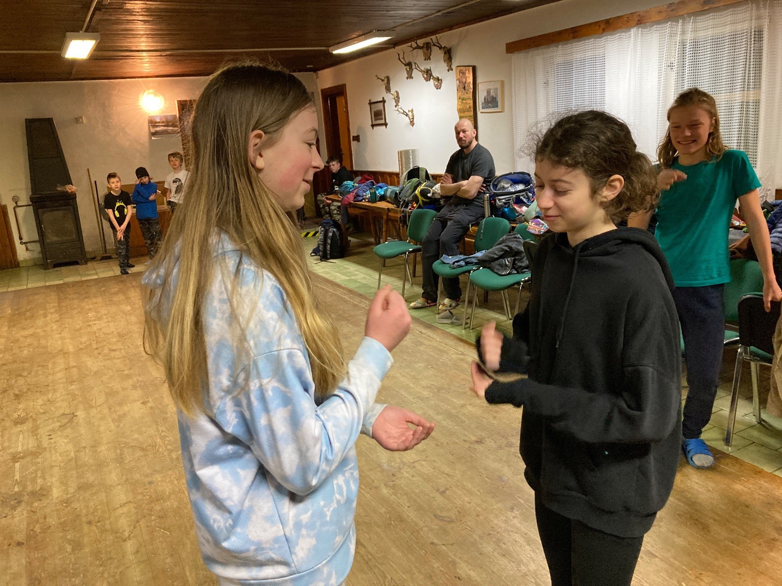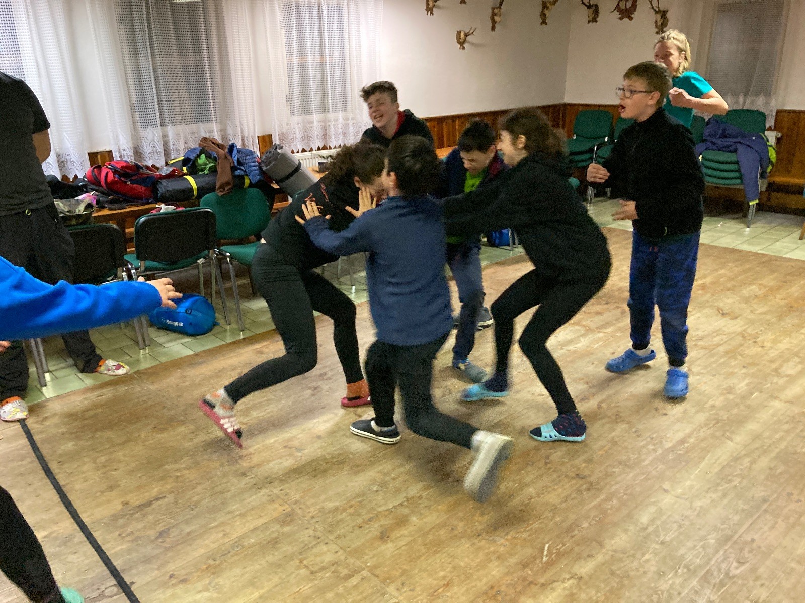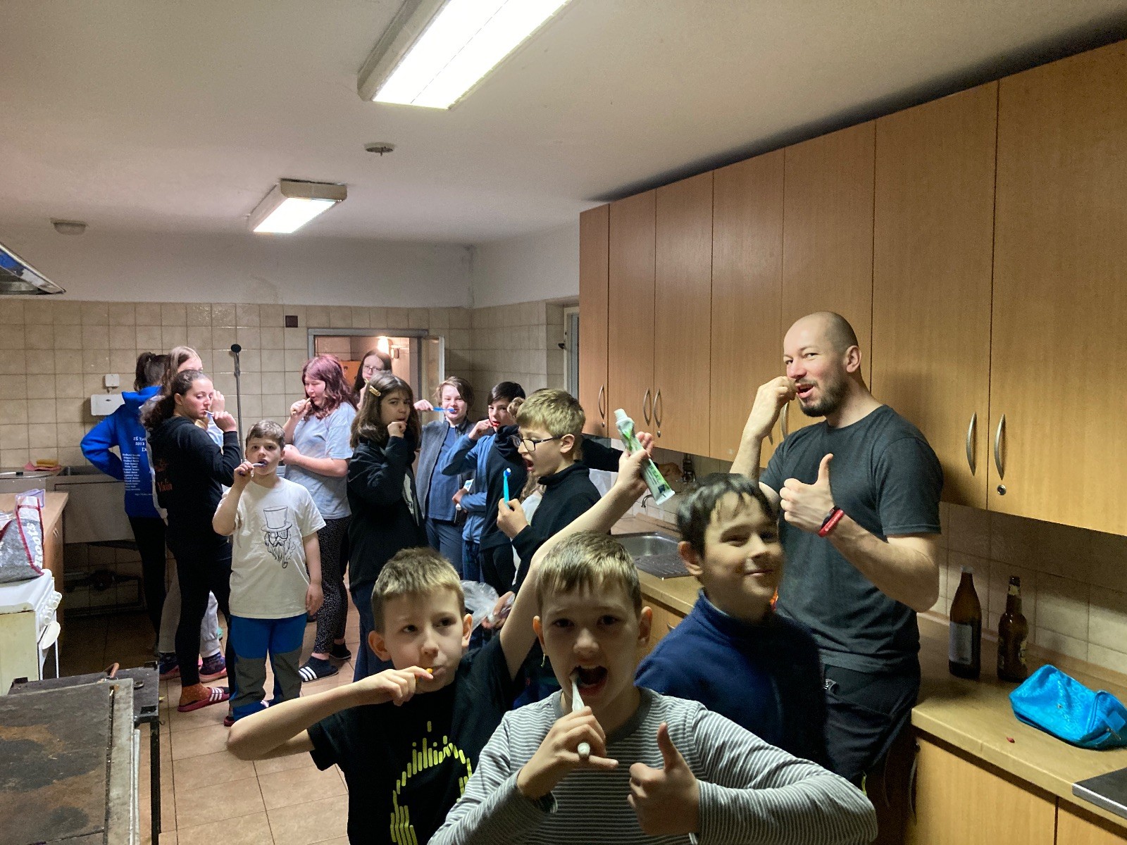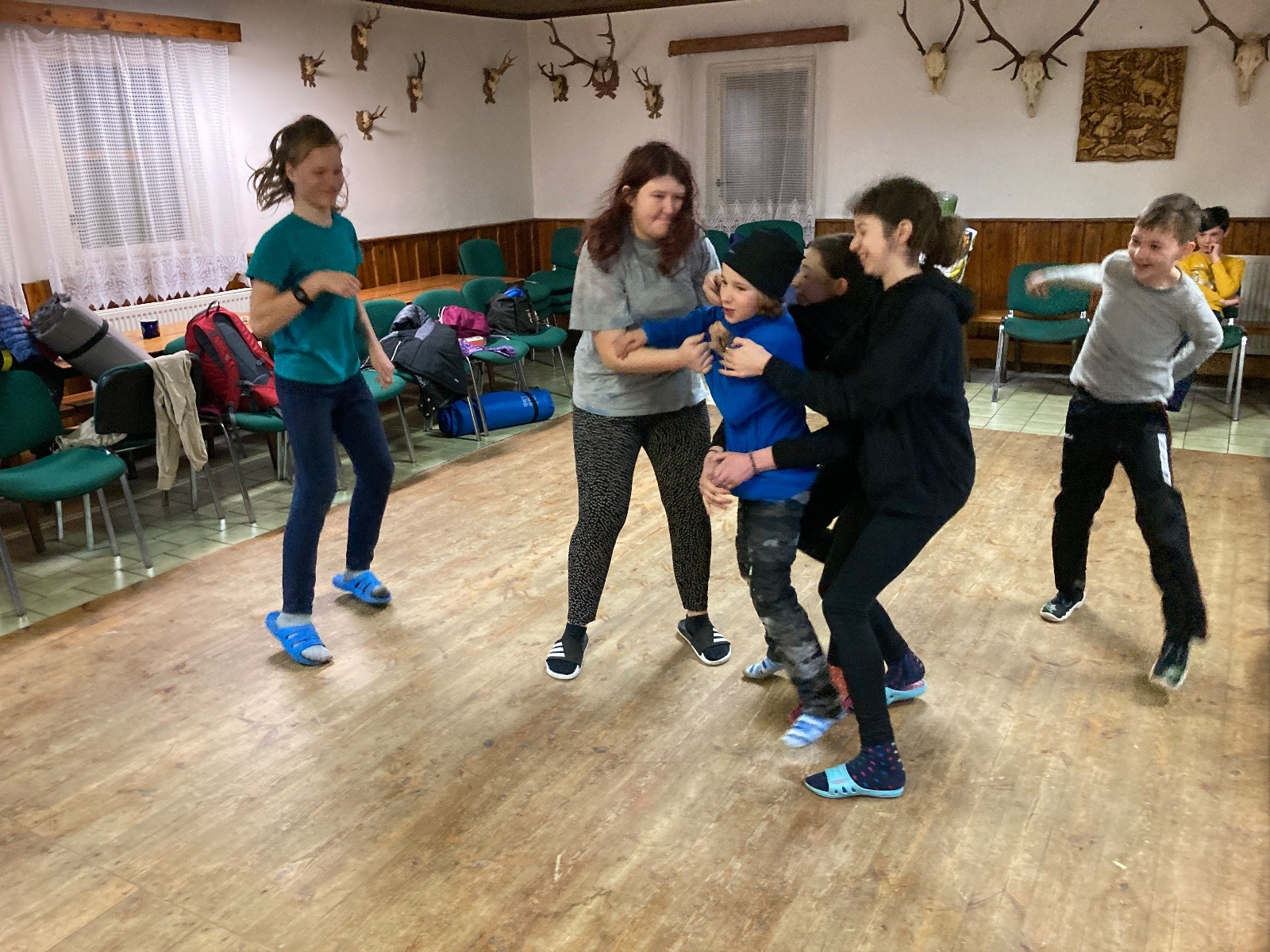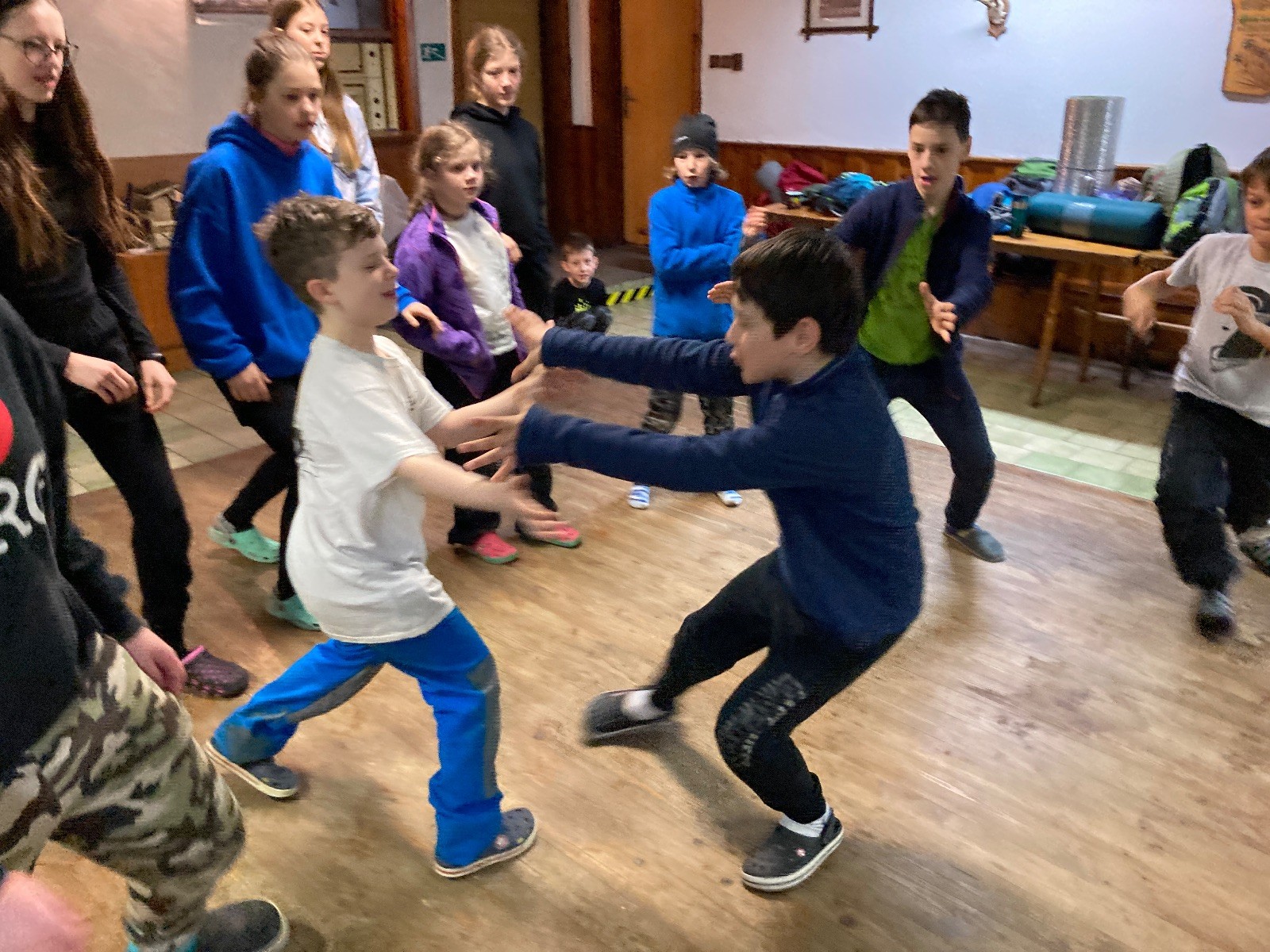 Je neděle, takže si hezky pospíme a ráno zahájíme rozcvičkou, na kterou si všichni těšíme tak, že pokud si příště zase zapomenu špekáčky, asi zůstanu hlady. Pak zahrajeme kámen-nůžky, hutututu, uklidíme a frčíme domů.