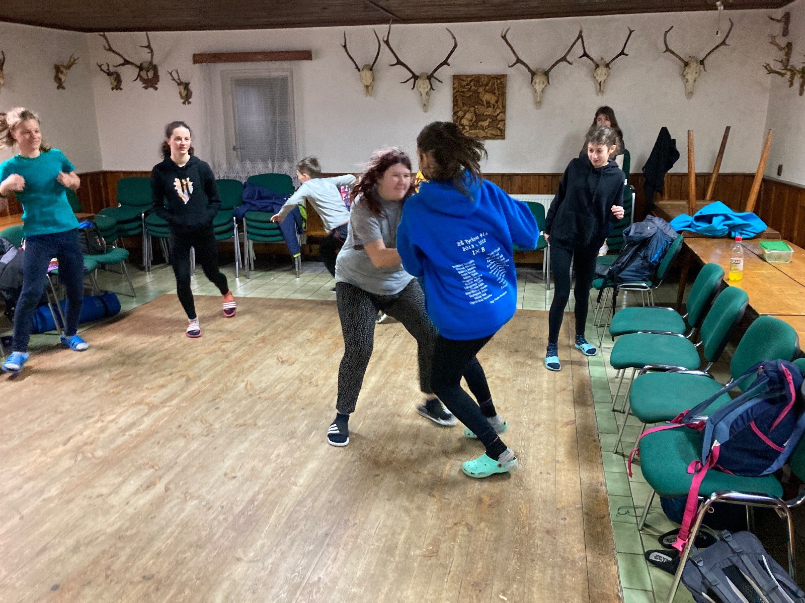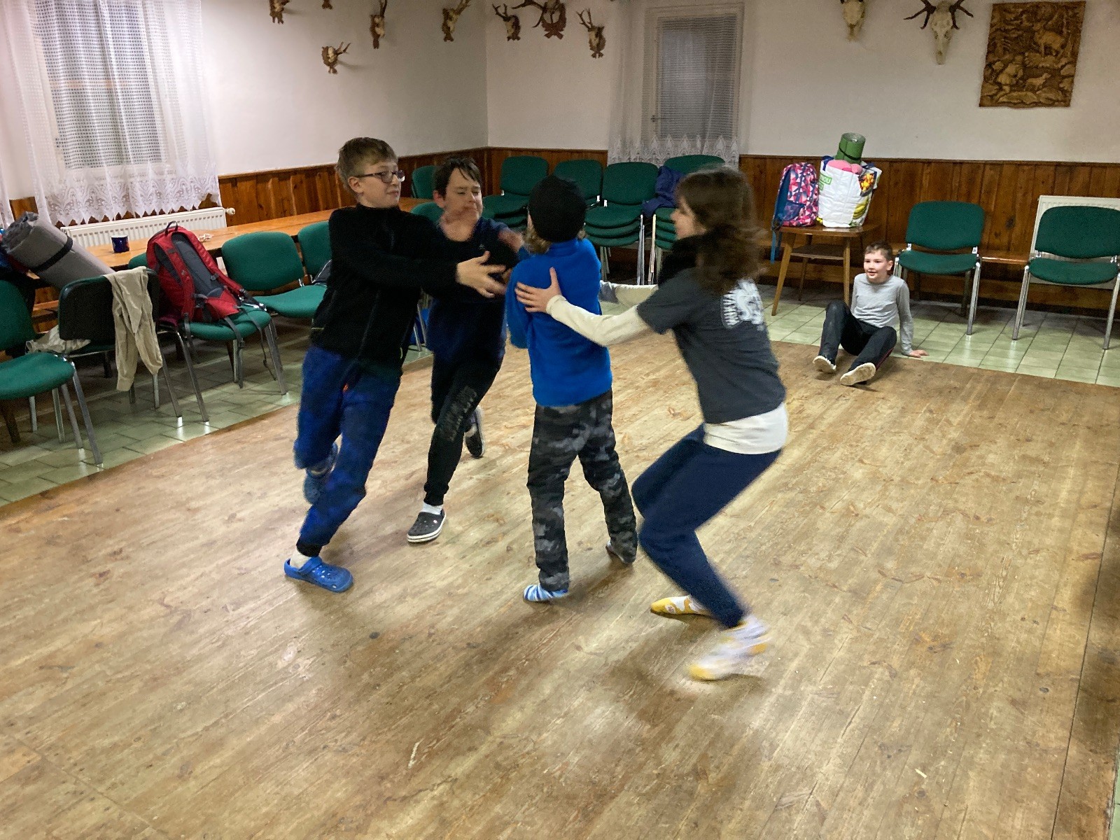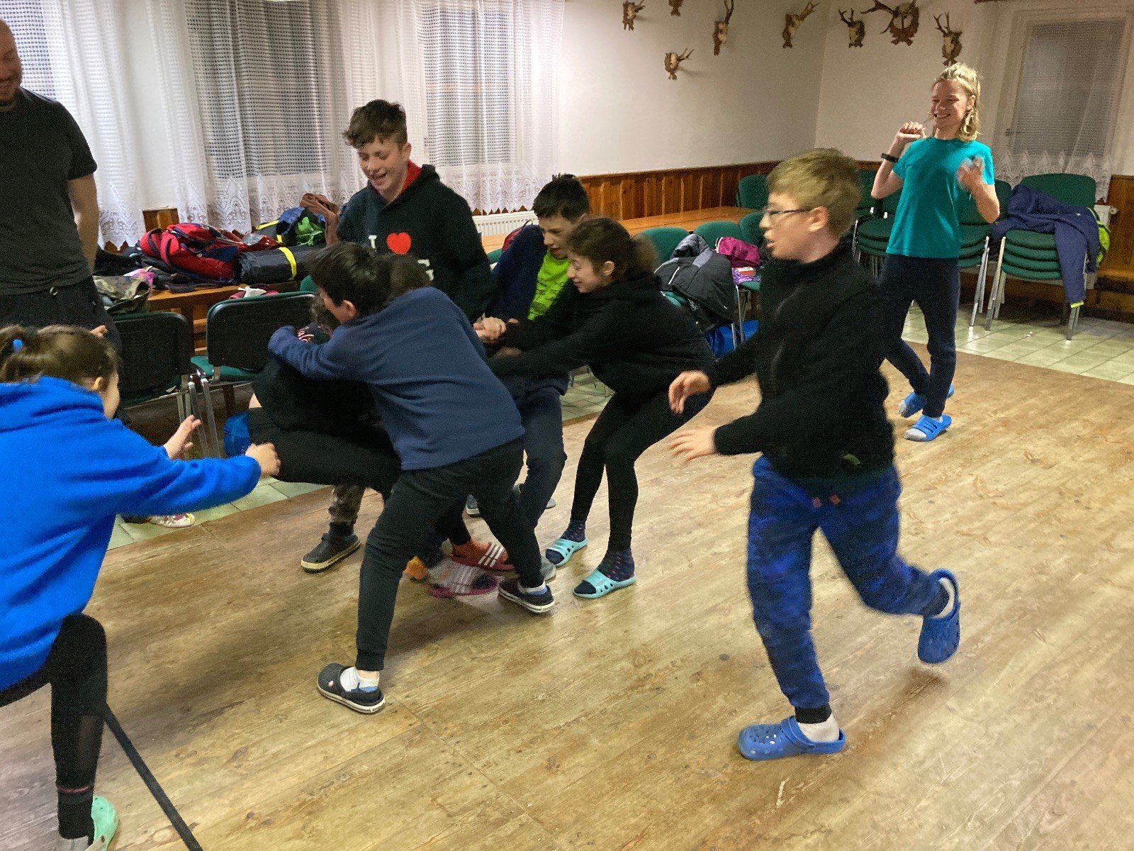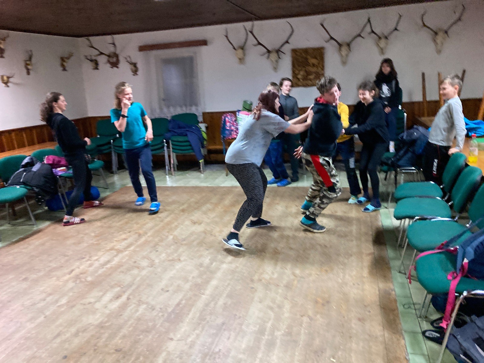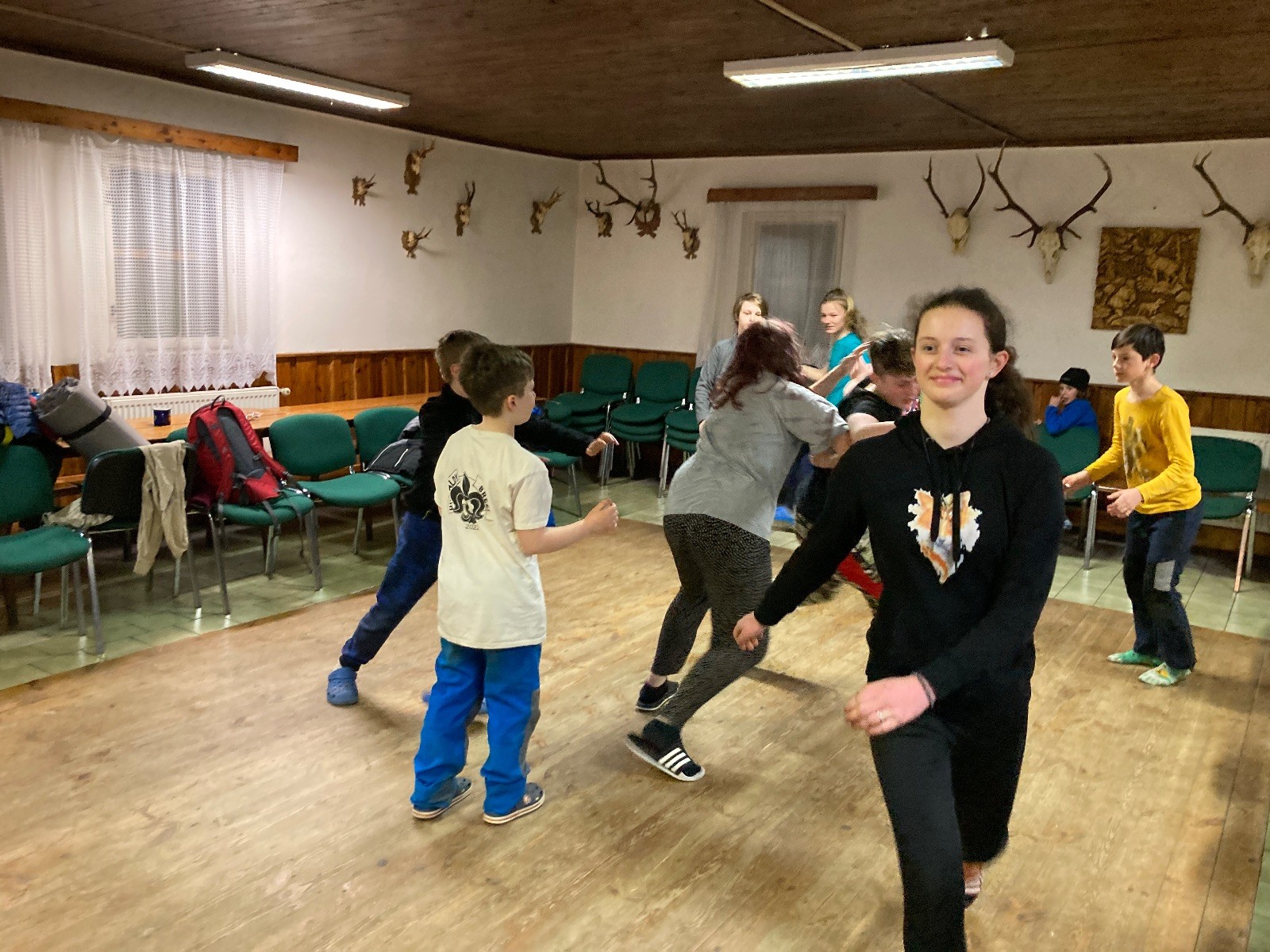 Je neděle, takže si hezky pospíme a ráno zahájíme rozcvičkou, na kterou si všichni těšíme tak, že pokud si příště zase zapomenu špekáčky, asi zůstanu hlady. Pak zahrajeme kámen-nůžky, hutututu, uklidíme a frčíme domů.