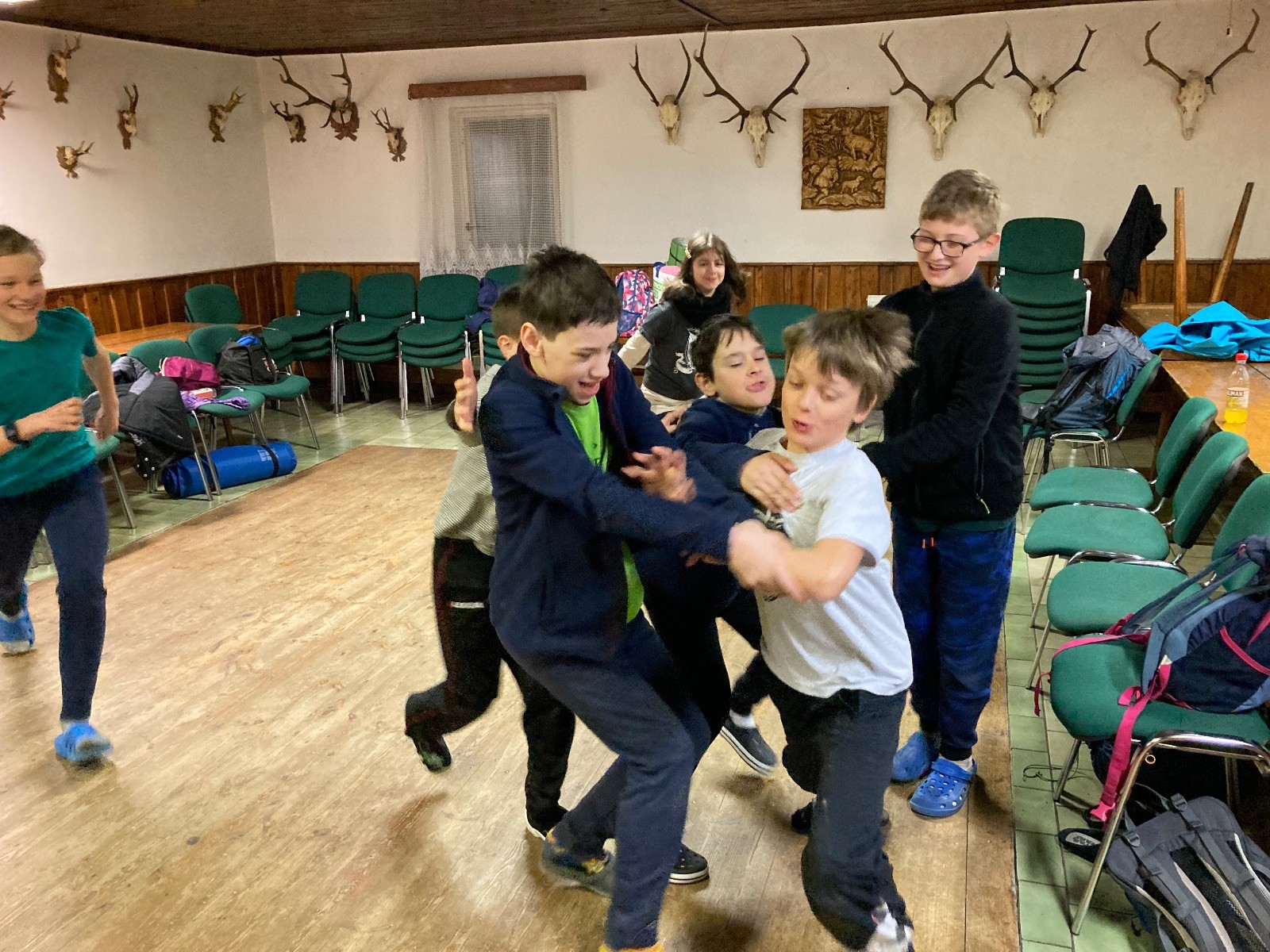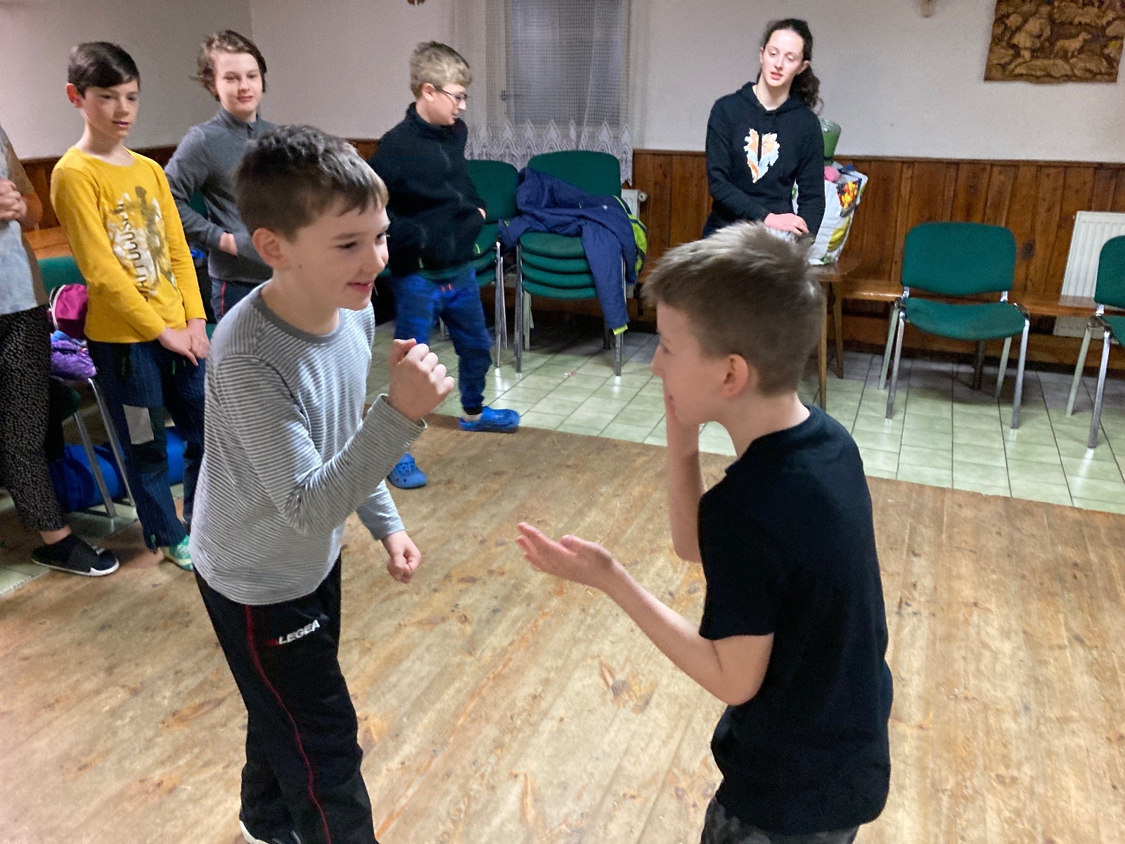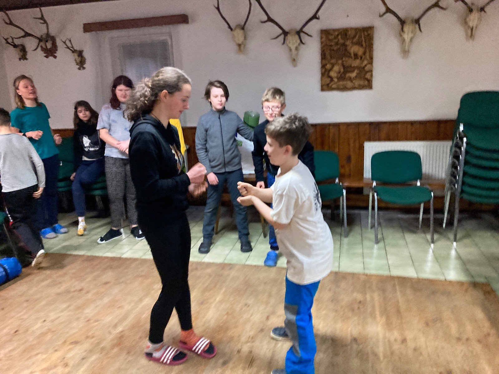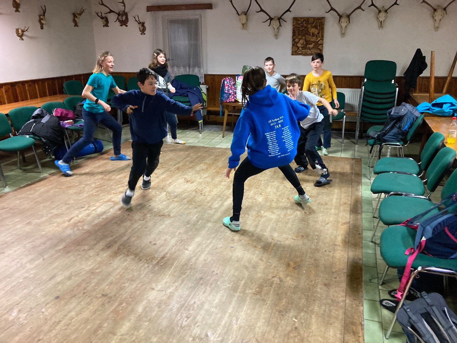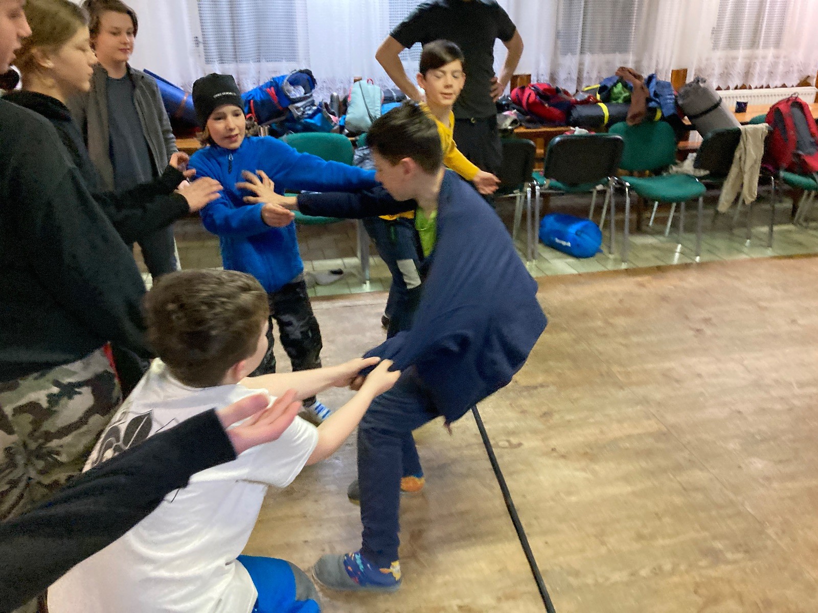 Je neděle, takže si hezky pospíme a ráno zahájíme rozcvičkou, na kterou si všichni těšíme tak, že pokud si příště zase zapomenu špekáčky, asi zůstanu hlady. Pak zahrajeme kámen-nůžky, hutututu, uklidíme a frčíme domů.