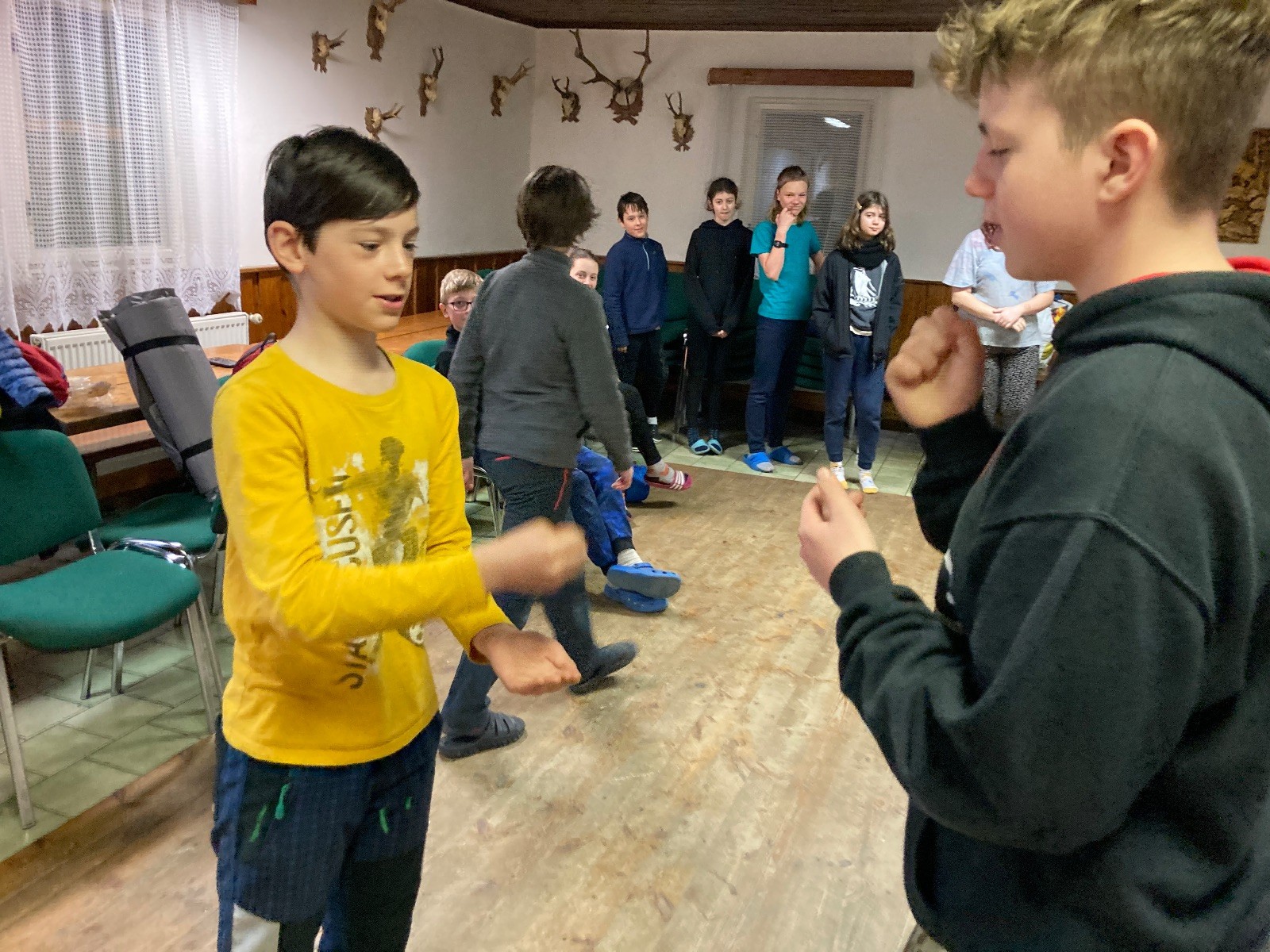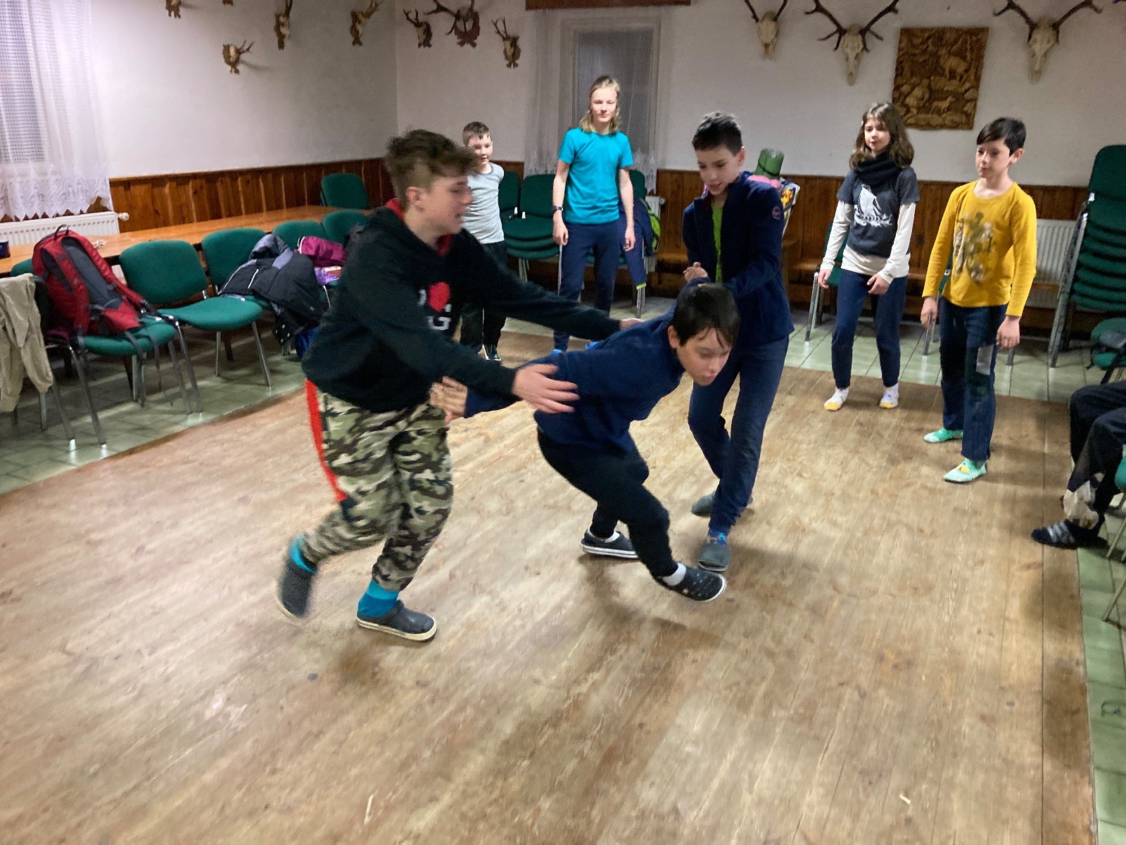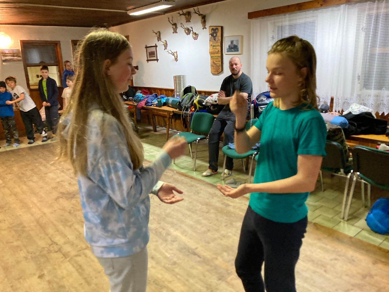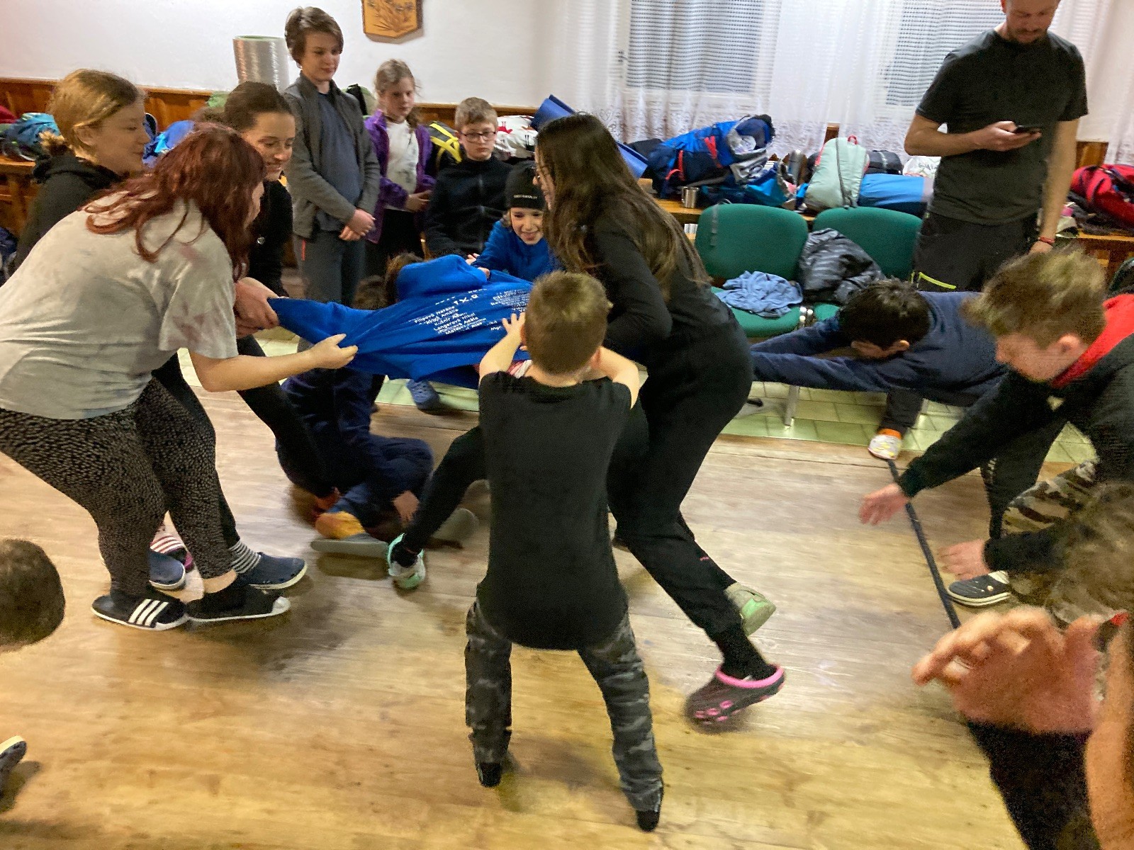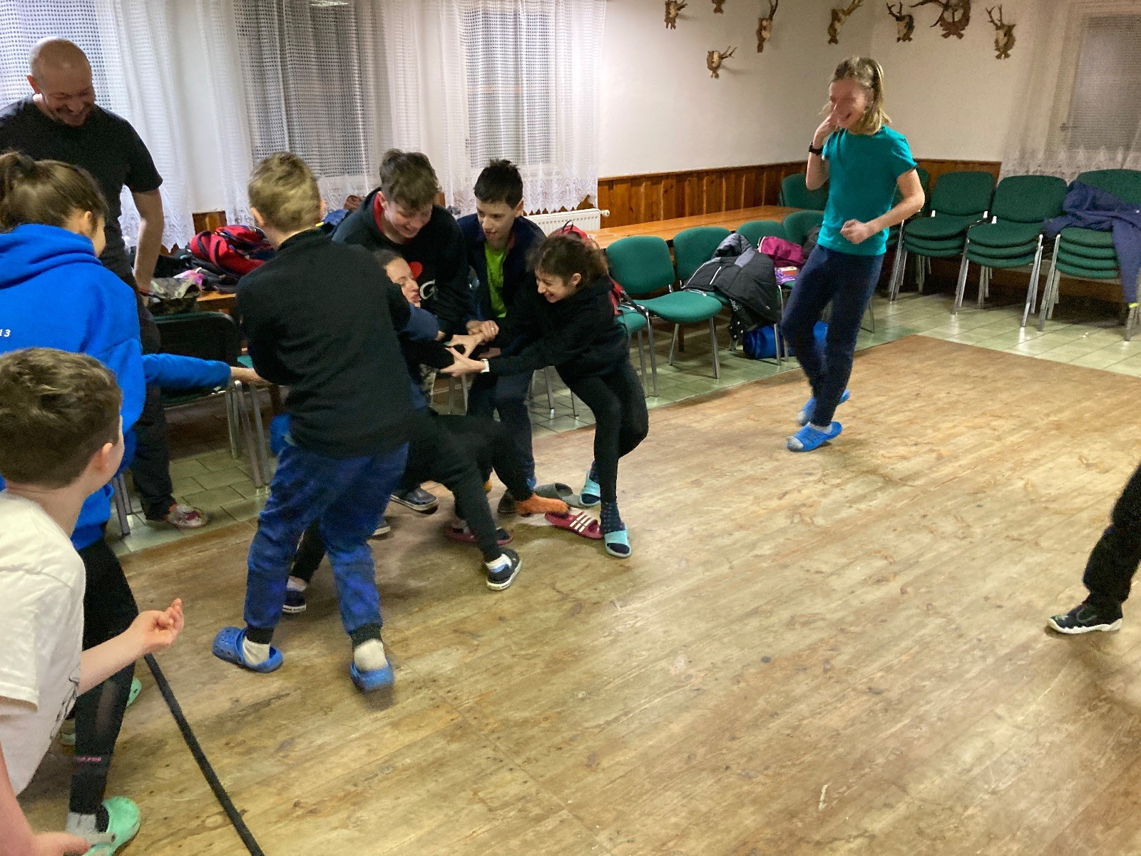Je neděle, takže si hezky pospíme a ráno zahájíme rozcvičkou, na kterou si všichni těšíme tak, že pokud si příště zase zapomenu špekáčky, asi zůstanu hlady. Pak zahrajeme kámen-nůžky, hutututu, uklidíme a frčíme domů.