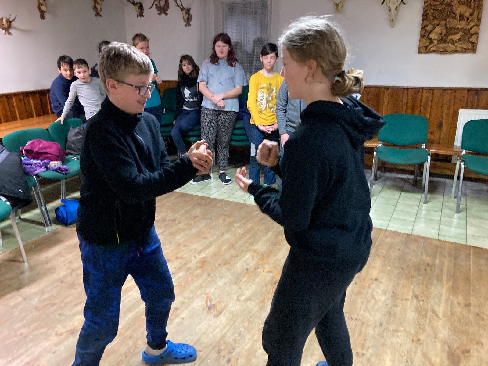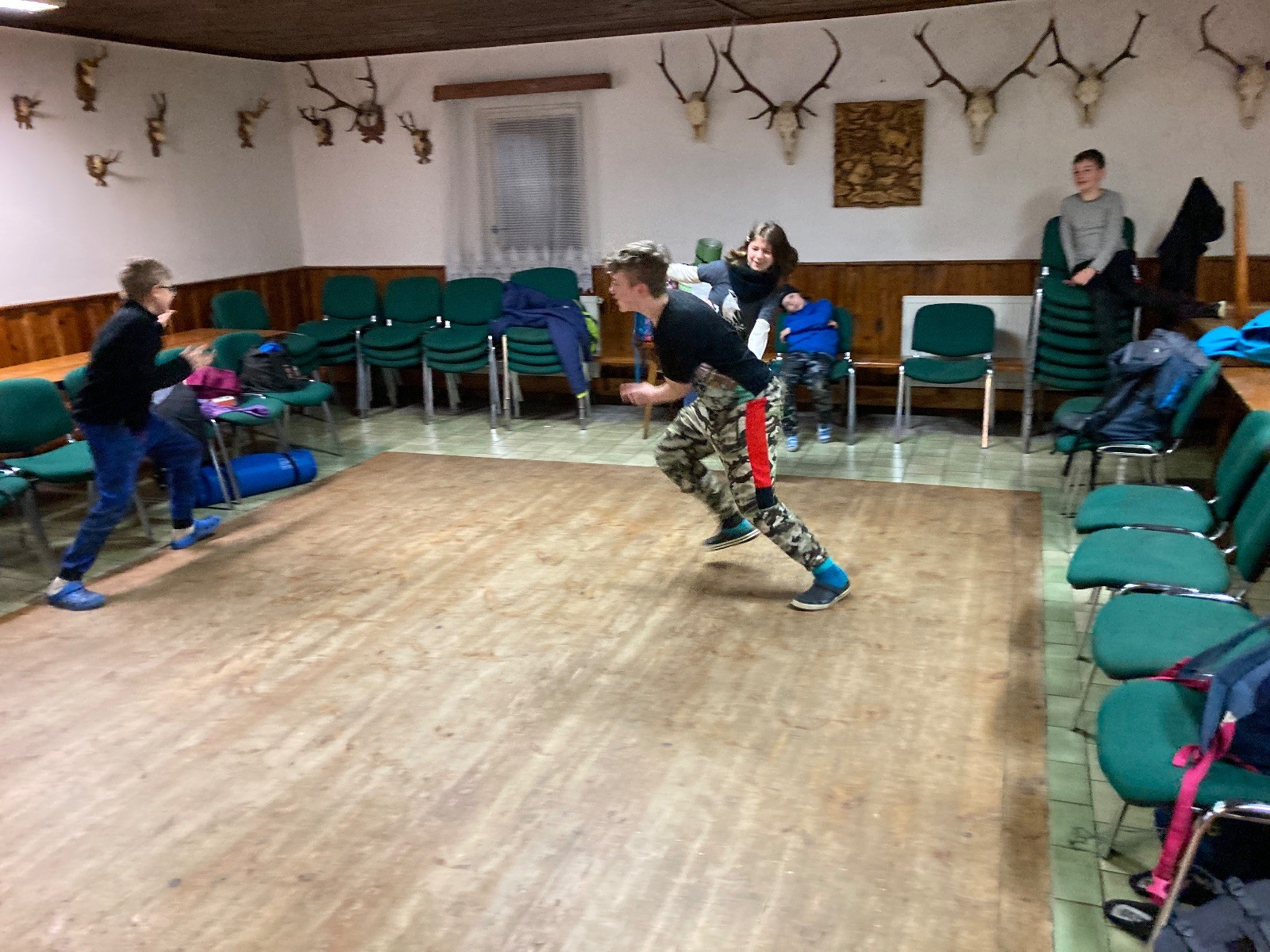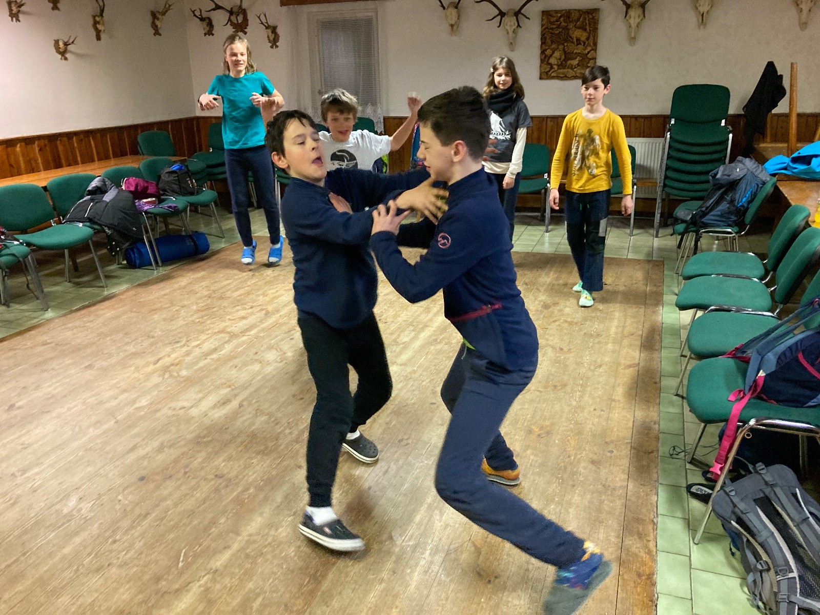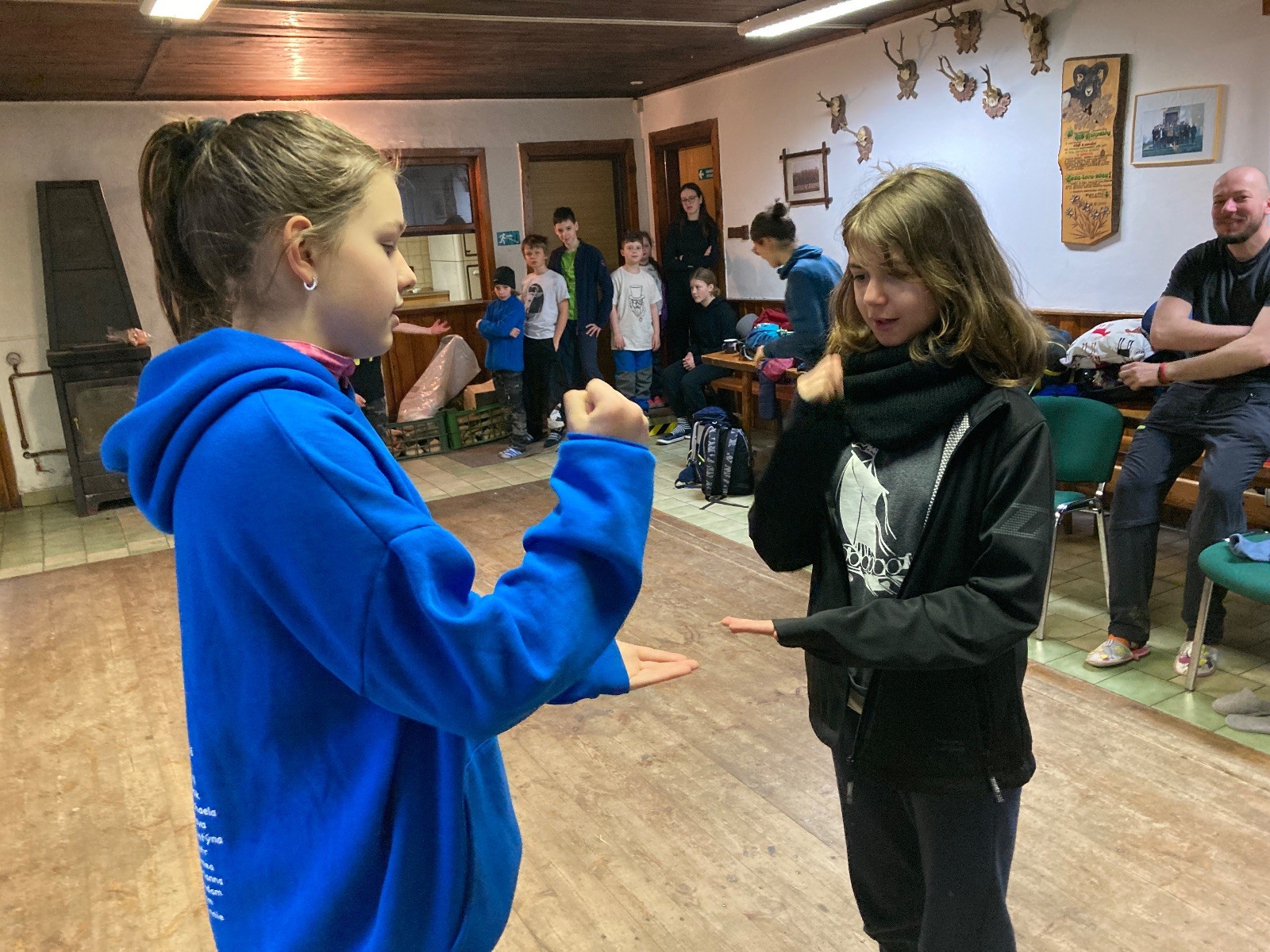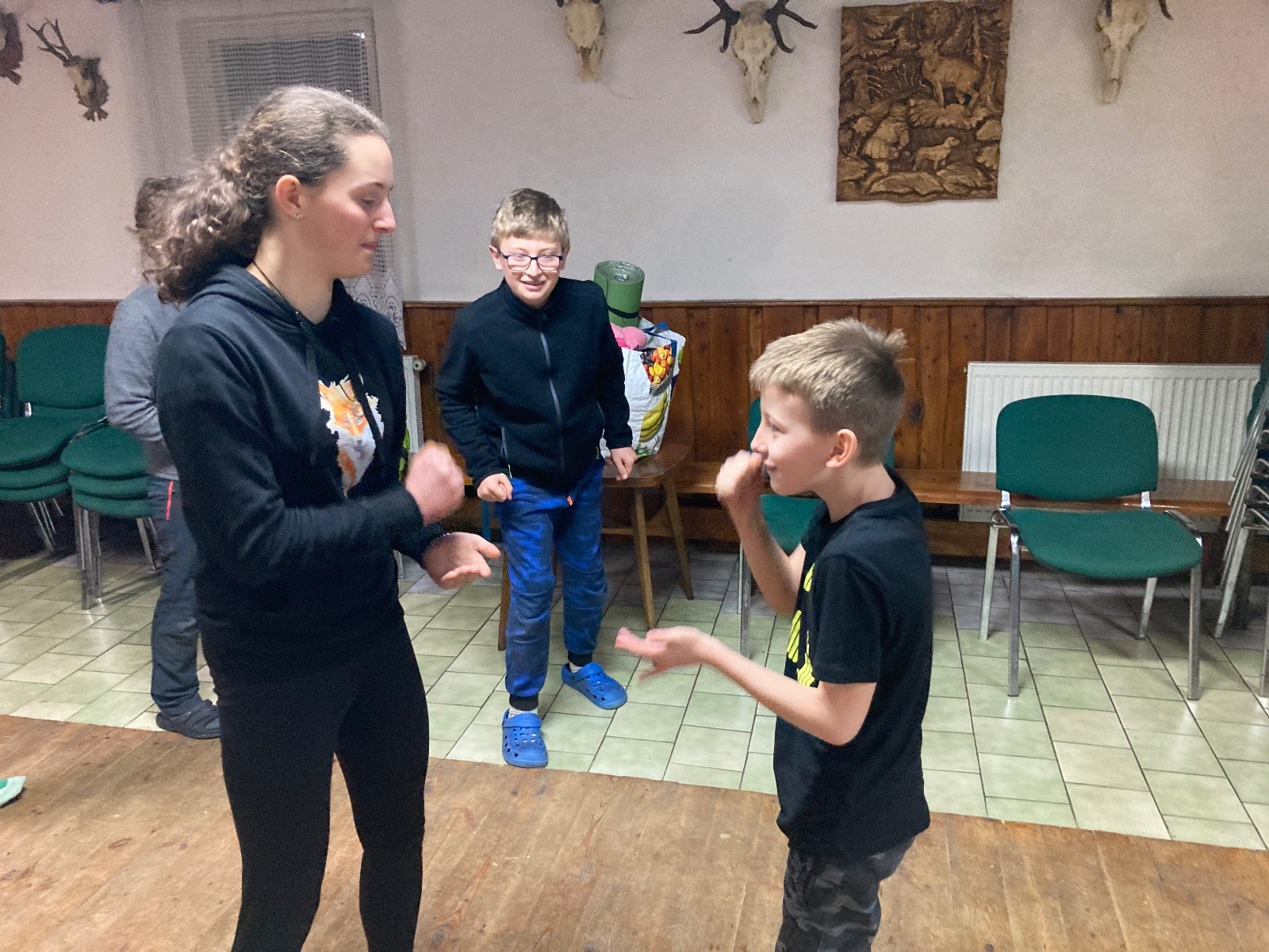 Je neděle, takže si hezky pospíme a ráno zahájíme rozcvičkou, na kterou si všichni těšíme tak, že pokud si příště zase zapomenu špekáčky, asi zůstanu hlady. Pak zahrajeme kámen-nůžky, hutututu, uklidíme a frčíme domů.