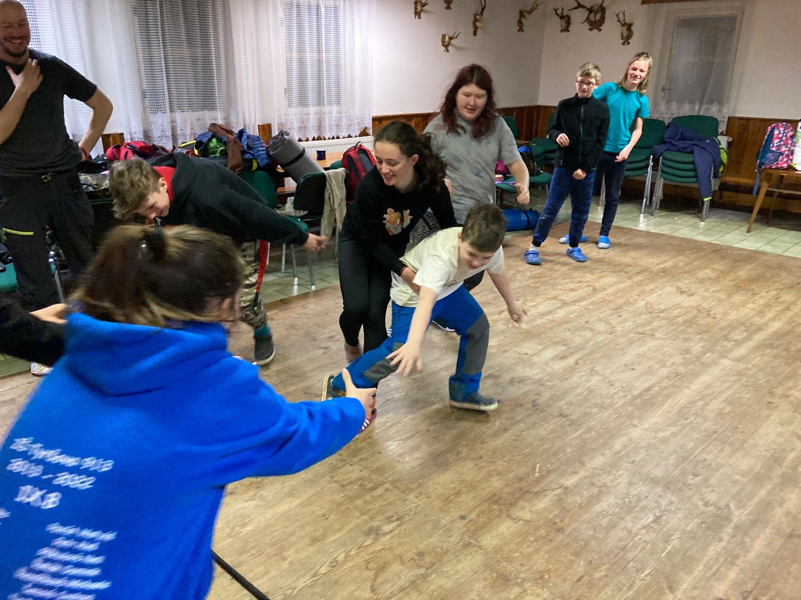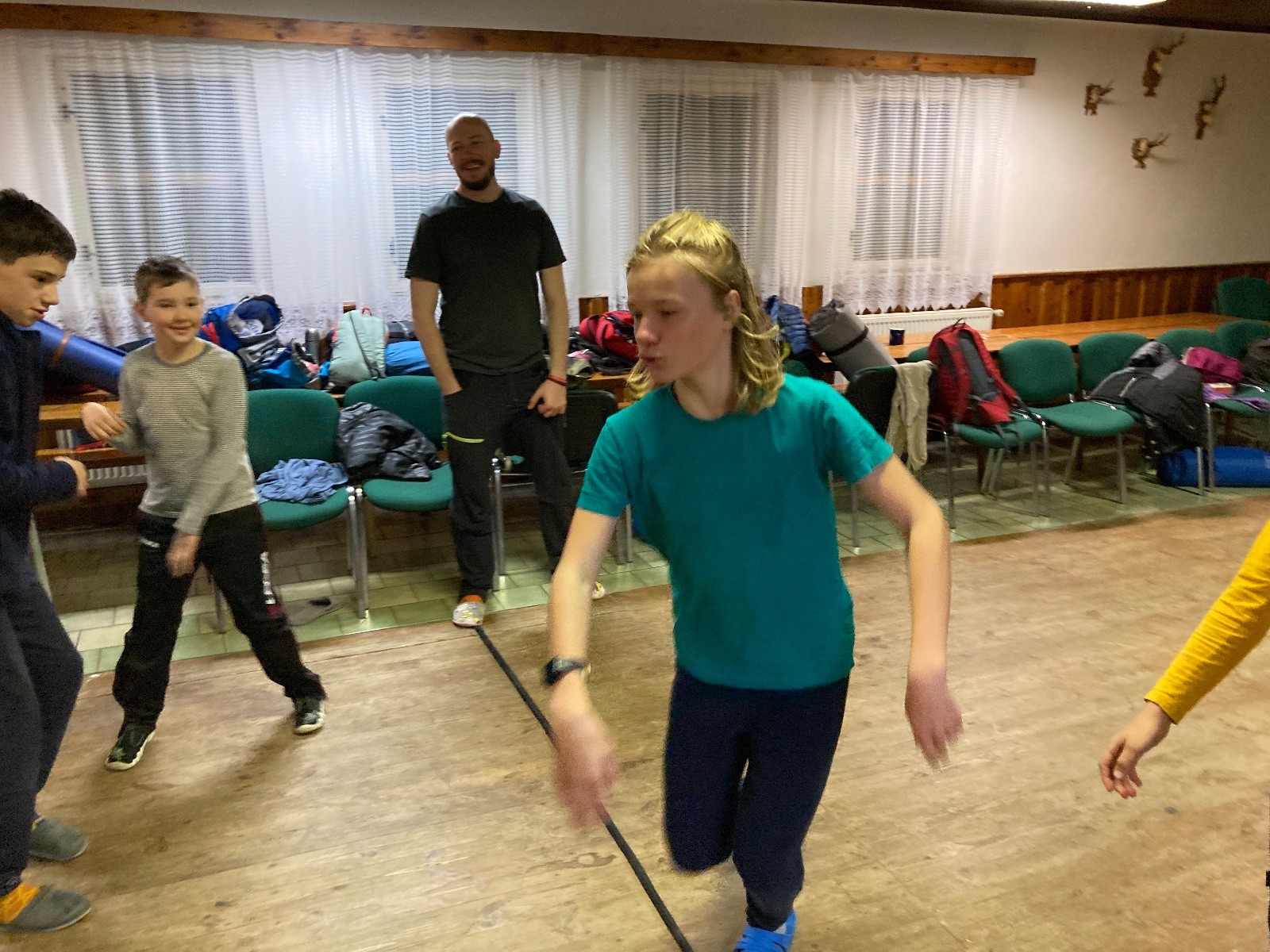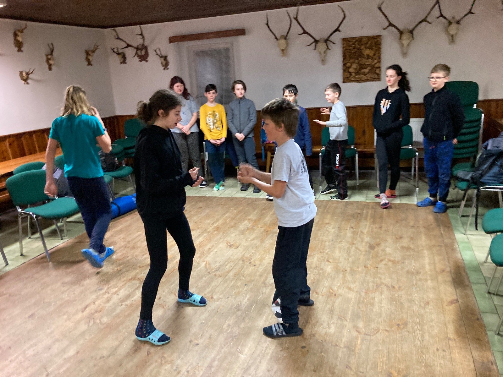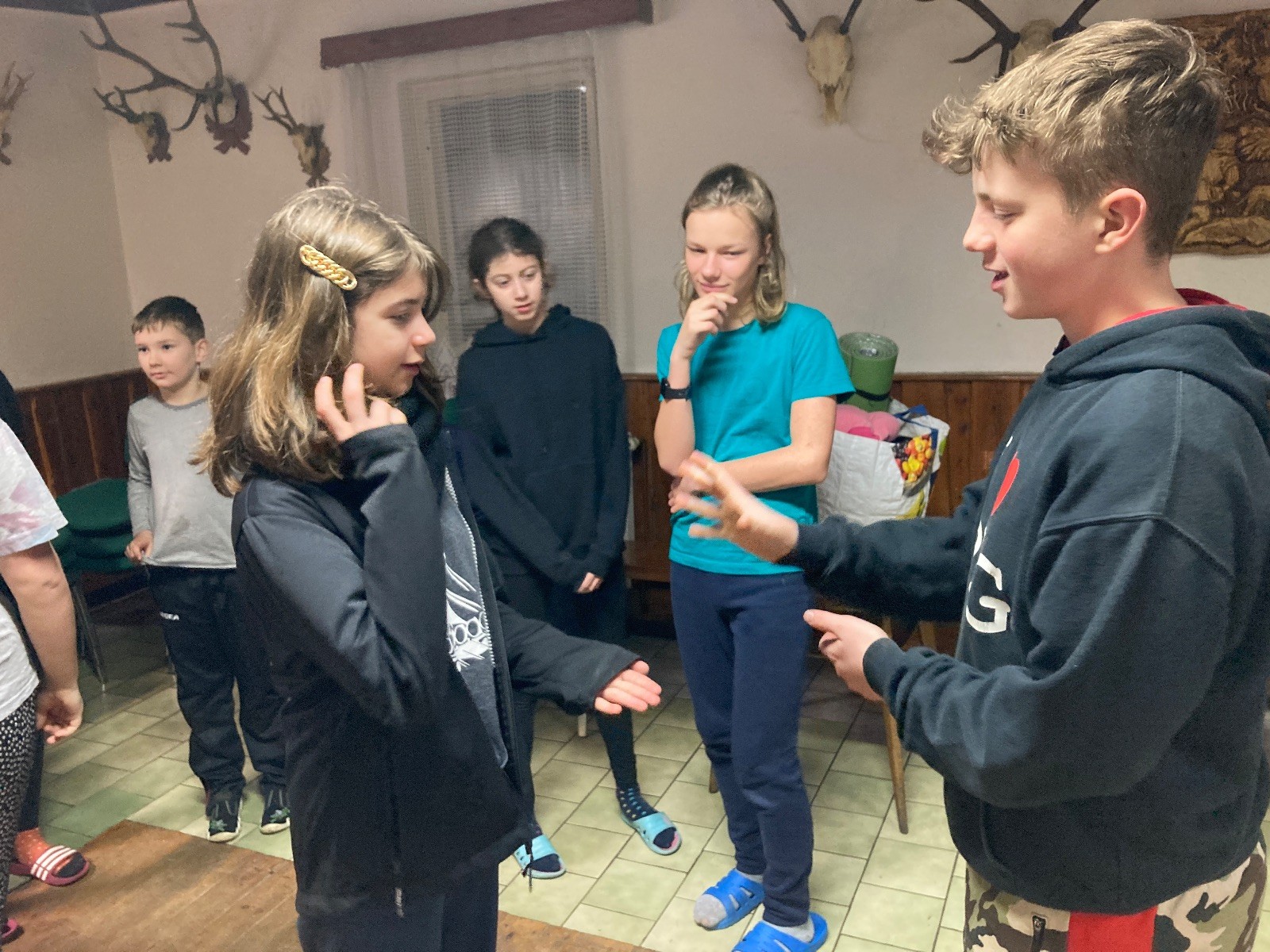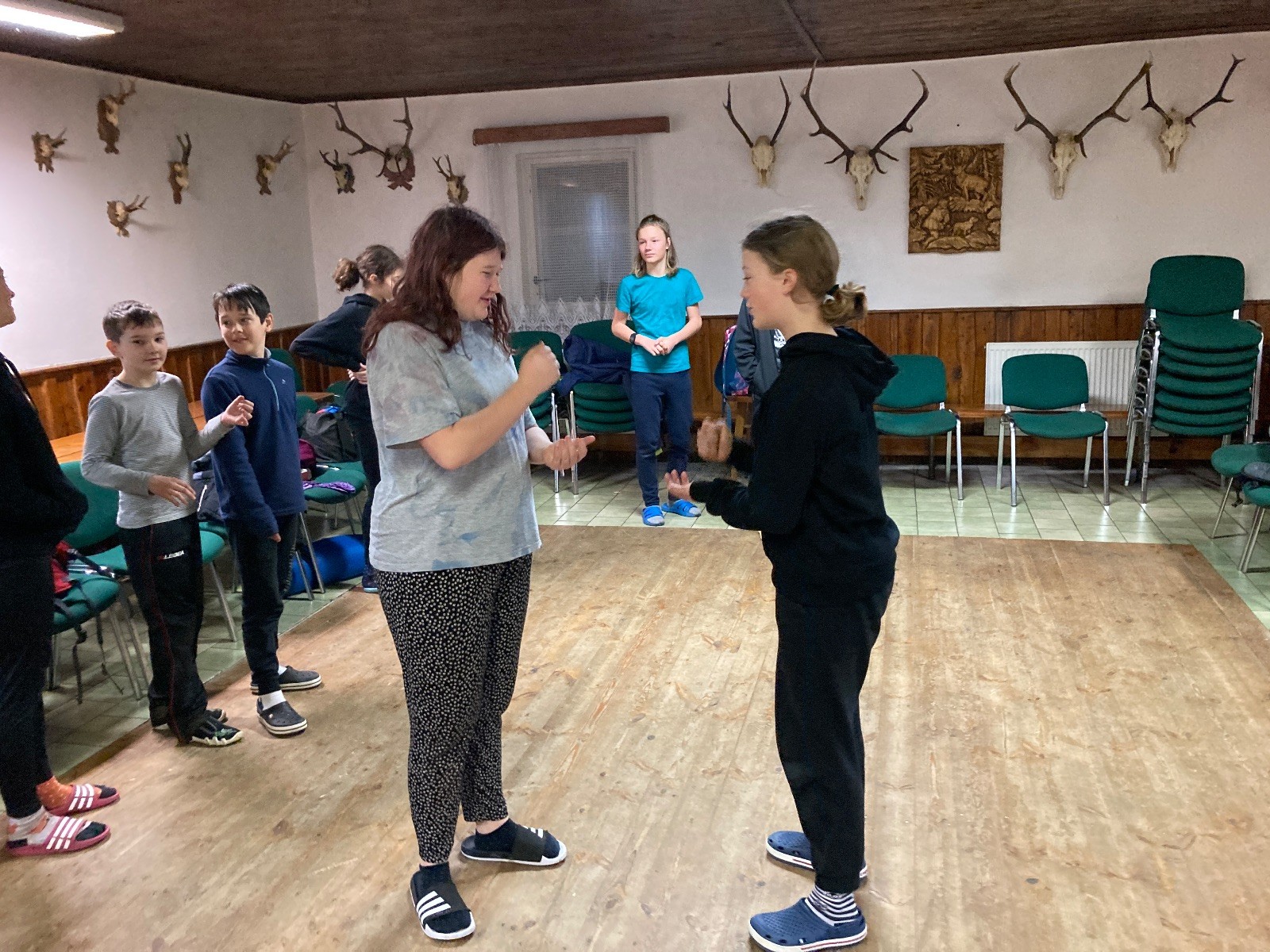 Je neděle, takže si hezky pospíme a ráno zahájíme rozcvičkou, na kterou si všichni těšíme tak, že pokud si příště zase zapomenu špekáčky, asi zůstanu hlady. Pak zahrajeme kámen-nůžky, hutututu, uklidíme a frčíme domů.