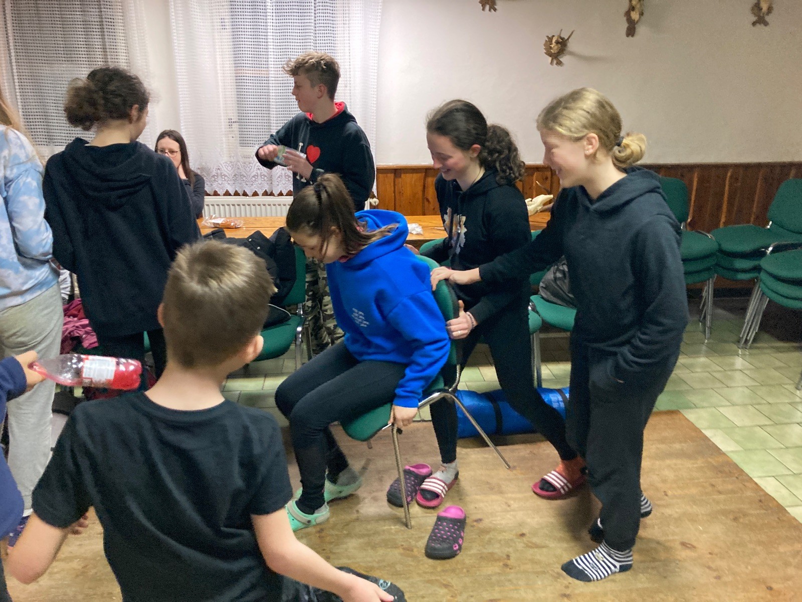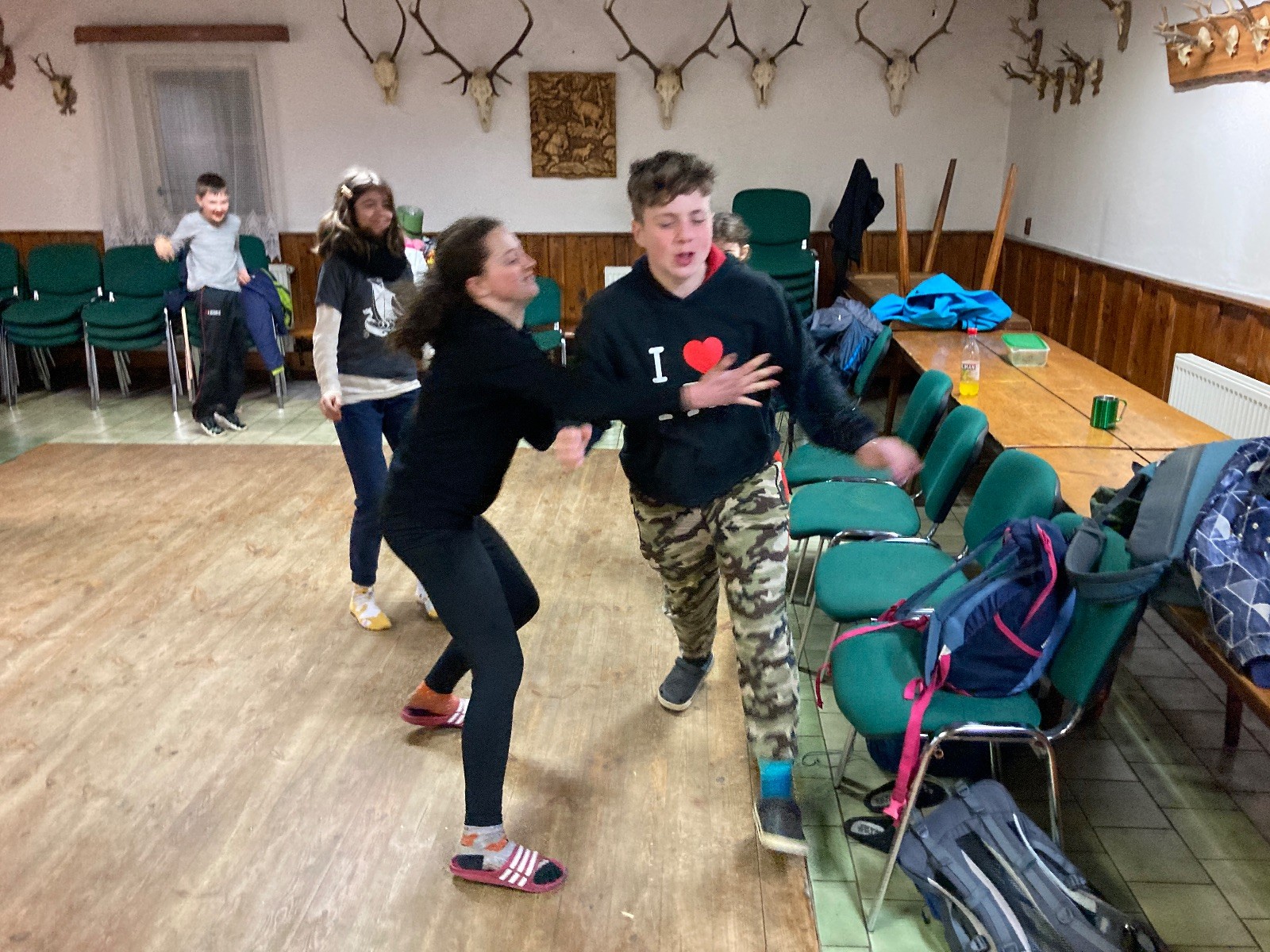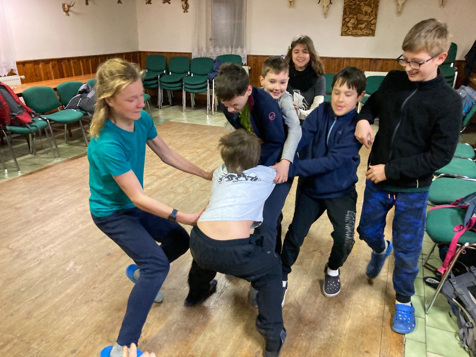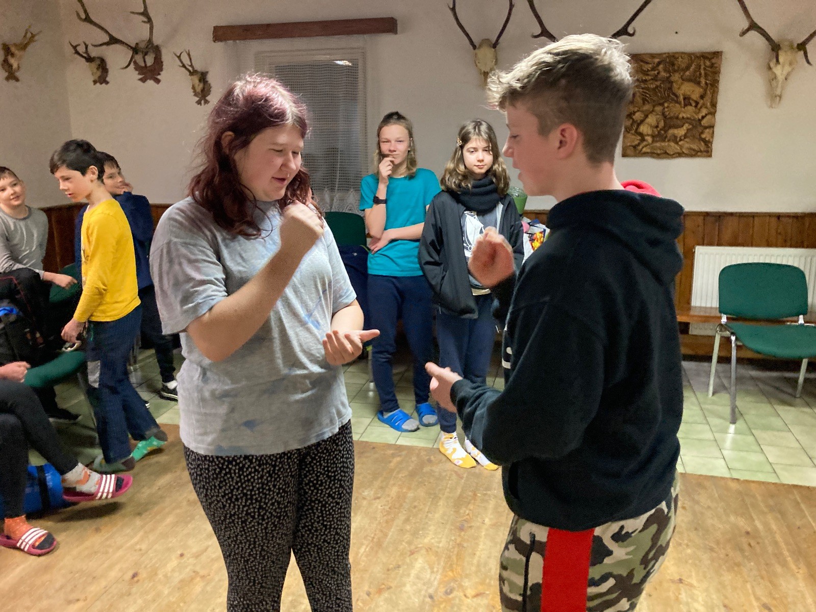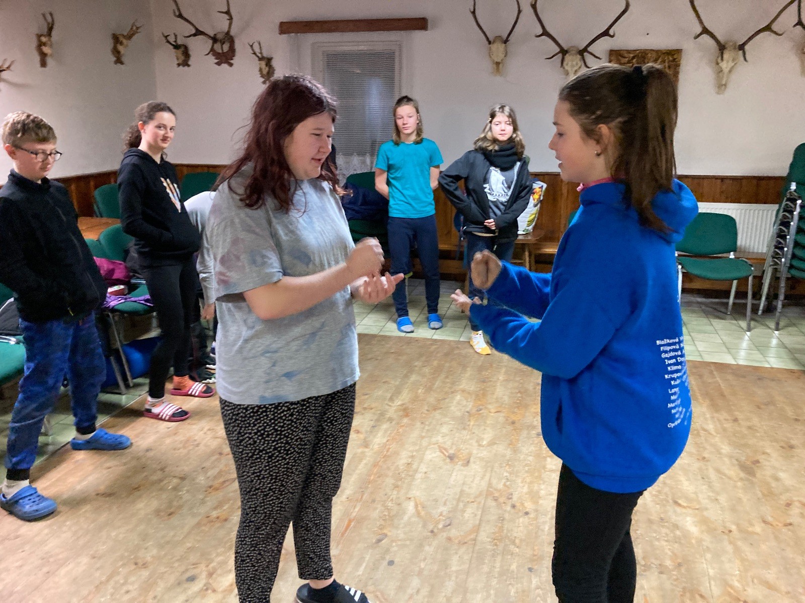 Je neděle, takže si hezky pospíme a ráno zahájíme rozcvičkou, na kterou si všichni těšíme tak, že pokud si příště zase zapomenu špekáčky, asi zůstanu hlady. Pak zahrajeme kámen-nůžky, hutututu, uklidíme a frčíme domů.