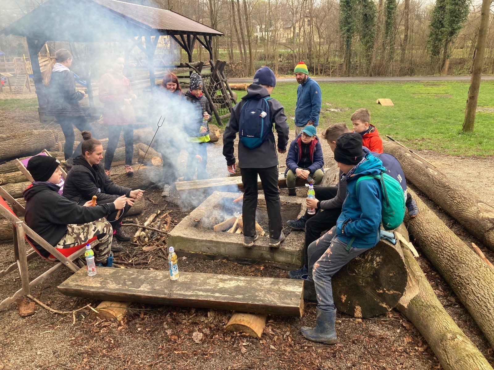 Rok se s rokem sešel, a opět je tu vítání jara, sliby a úklid Hukvald. Ráno v 9 se scházíme před myslivnou. Společně s několika rodiči a mladými hasiči se vrháme na úklid okolo myslivecké chaty a podél řeky mezi Vajtem a Koupalištěm. Je podezřele čisto. Oproti loňsku je odpadků výrazně méně, což nás těší! Jen tak dále! Končíme na koupališti okolo 11. Za odměnu nás čeká oheň, špekáček, pití a párky v rohlíku. Pak se rozprcháváme domů sbalit si další špekáčky a věci na večer.