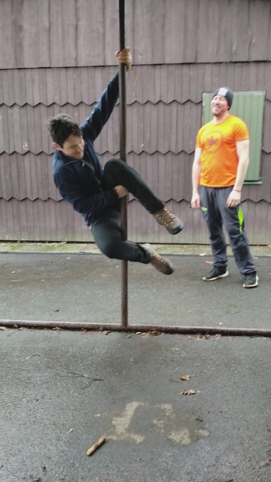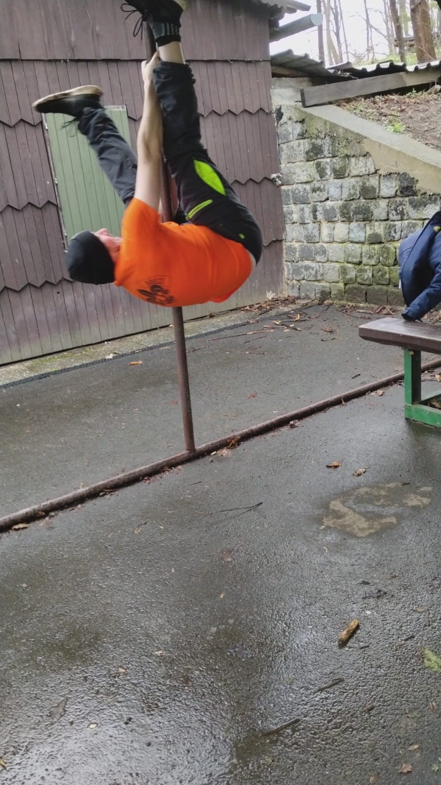 Kolem 11. míříme na Koupaliště. Cestou dáváme zastávku u Myslivecké chaty, kde nás Tuleňa učí pár gymnastických kousků. Zjišťuju, že na to nemám ani geny ani sílu, a že Tuleňa je silnější než já s Tobákem dohromady. O ohebnosti ani nemluvím. Krom toho, že nám to moc nejde, to taky dost bolí. Po chvíli to raději vzdáváme a jdeme chystat párky v rohlíku. Zde patří dík Franklinovi a Valči, kteří se toho ujali a nakrmili všechny přítomné.