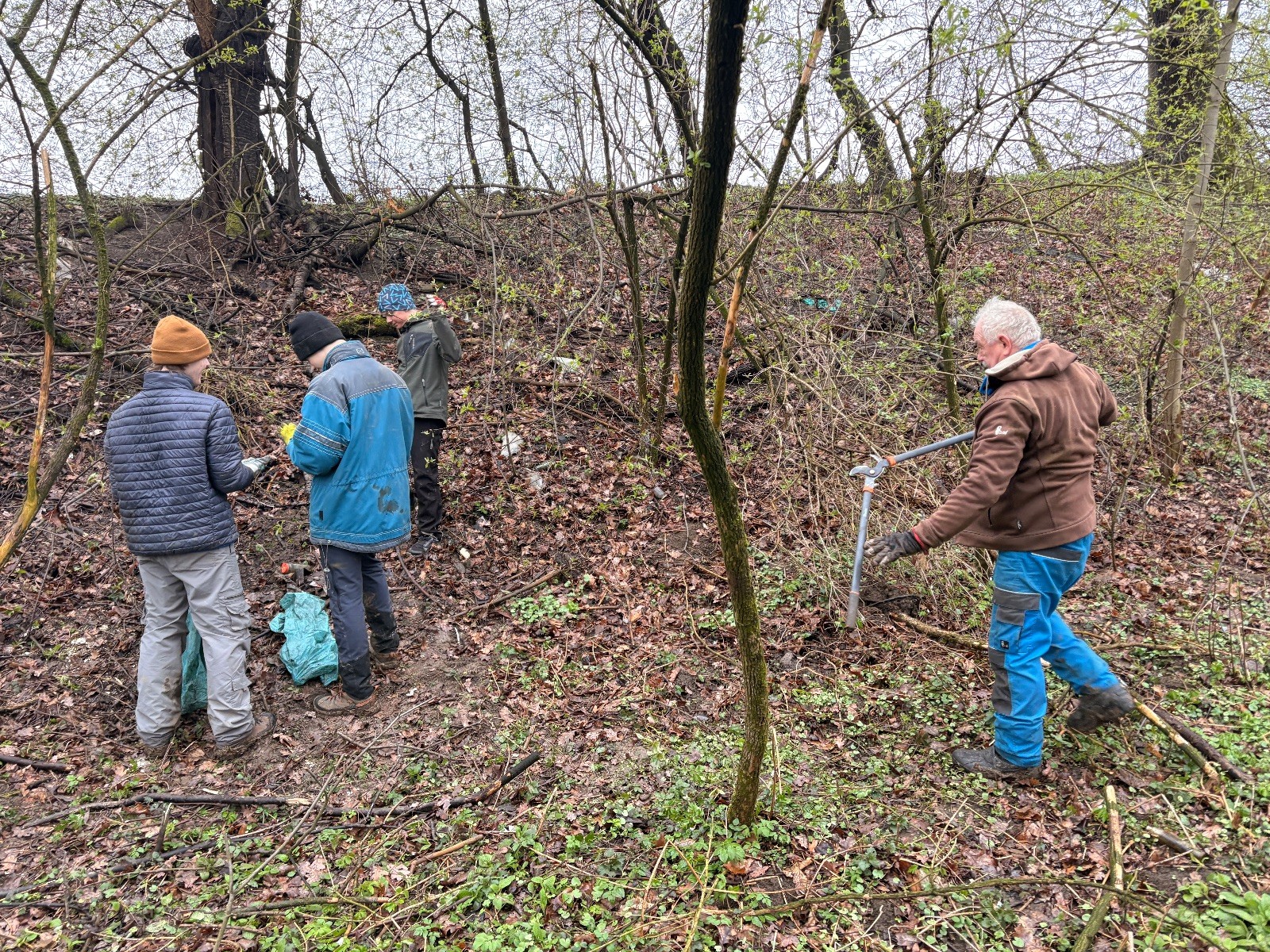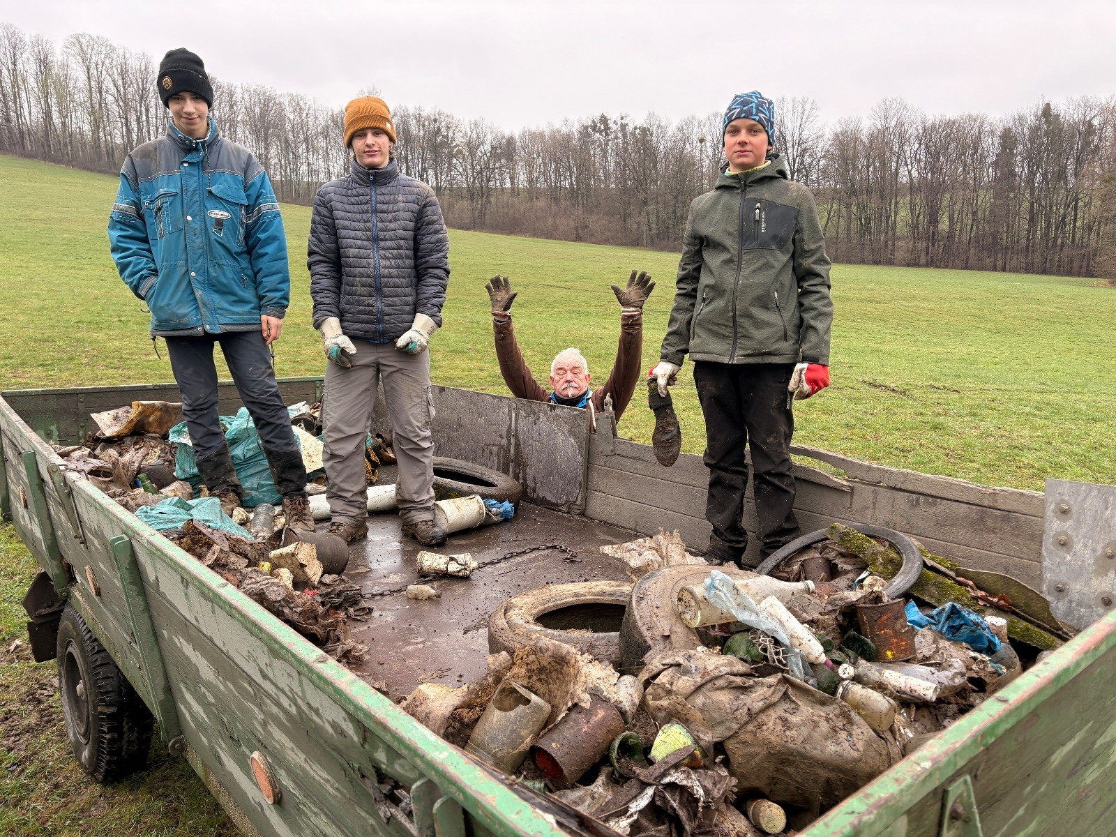 Dáváme sraz v 9:00 u Myslivecké chaty. Počasí nám zrovna 2x nepřeje, protože na jaro je podezřele velká zima a přes noc napadala i trocha sněhu. Nic hezkého. Tento názor se mnou zjevně sdílí více členů a tak zůstávají doma v teple. Setkáváme se v trochu komornějším počtu 12 členů. Po chvíli nás posílí i Sofka a Miki. Pandy a Sokoli si berou prostor kolem Myslivecké chaty a cestu směrem na Koupaliště. Lišky s Uzlem sedají na kola a míří do Rychaltic, kde už druhým rokem likvidují velké ložisko všemožného bordelu. Opět stihli nasbírat skoro půl vlečky. S kocoury se vydáváme od Myslivecké chaty směrem k Rychalticím. S potěšením musím konstatovat, že odpadků je podél cesty výrazně méně než v předchozích letech. Cestou se stavujeme ke mně domů. Cítím, že Ukliďme Hukvaldy je zároveň skvělou příležitostí si vynést koš, což činím. Už bylo na čase. Zvažuju i úklid pokoje, ale nerad bych to uspěchal. Myslím, že do Vánoc to vydrží. S vynesením koše si prozatím vystačím a na odvedenou práci jsem patřičně hrdý. S úklidem doma se to zkrátka nesmí přehánět, a tak se raději věnujeme úklidu podél řeky směrem ke kostelu. Kde je odpadků znatelně víc.