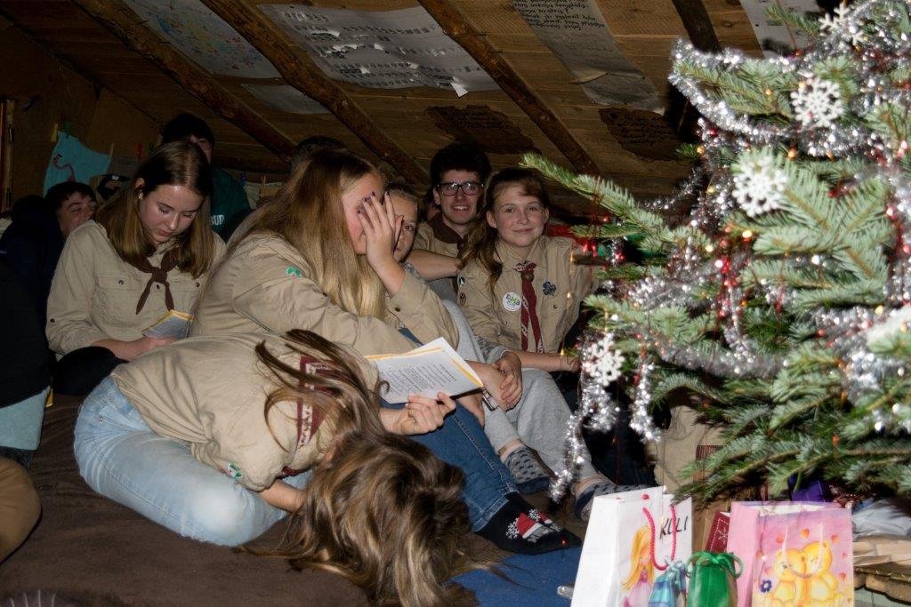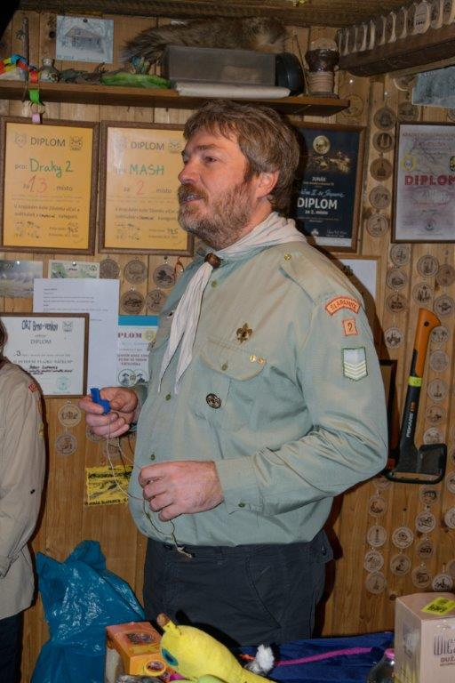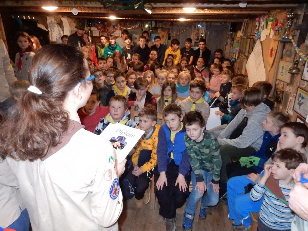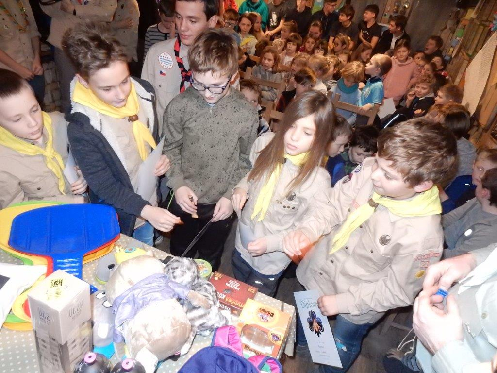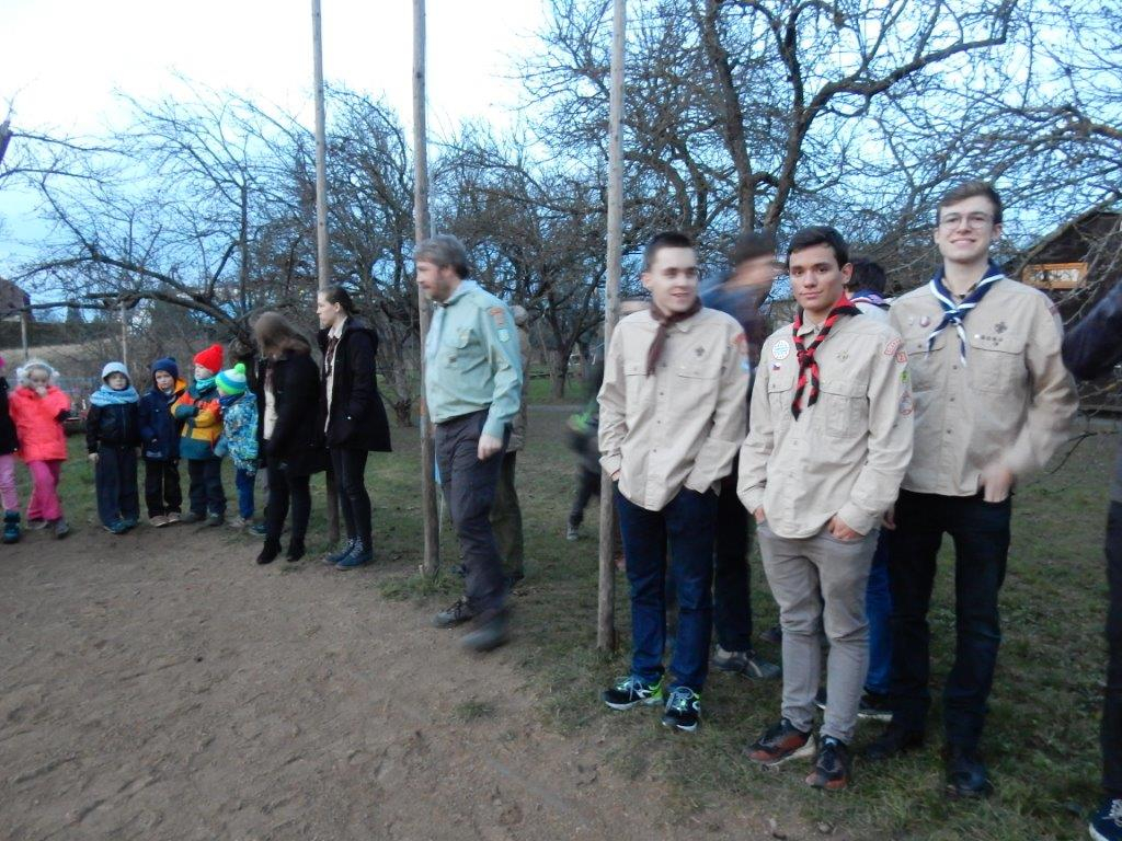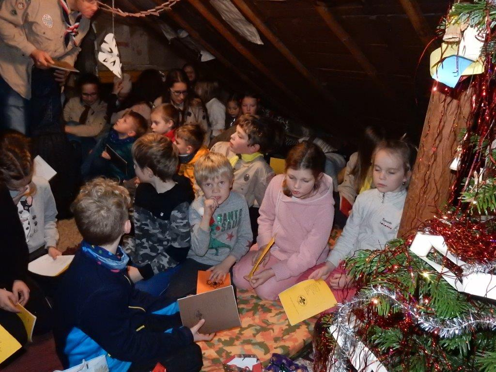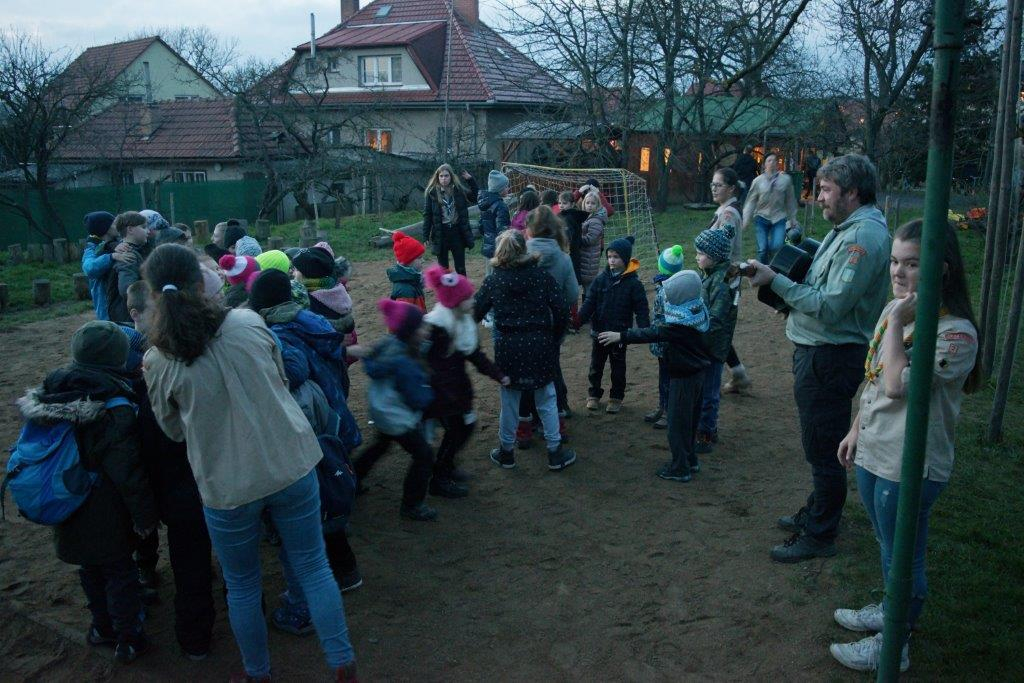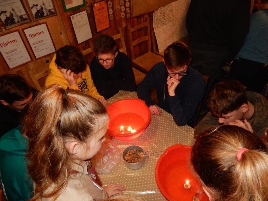 12°C nad nulou, sluníčko, jižní vítr. Tak vypadalo počasí v pátek 20.12. 2019, tedy v den Vánoční oddílové schůzky. Na Boudě se nás sešlo celkem 107 (možná víc, nevím, jestli se všichni zapsali do prezenčky) a bylo veselo. Po nástupu zorganizoval Džany na hřišti molekuly. Postupně se jednotlivé atomy posunuly do Trojky a faktem je, že druhooddíláci zase jednou projevili svoji pověstnou "skladnost". Vedoucí družin vyhlásili výsledky bodování,ti nejlepší převzali diplomy a věcné ceny. Hodnotila se i nejlepší účast, ten nepilnější z každé družiny dostal super cenu - hrníček s oddílovým obrázkem. Následovaly vánoční zvyky: odlévání vosku a lodičky z ořechových skořápek. Kudlanky a Sovičky ve Staré Boudě, Sršni, Žraloci a Kobři v Nové, Tygři, Vlci, Veverky, Pumy a Draci ve Trojce. Prskavky pak byly dalším bodem programu, o který se postaral Krysařík. Než se všichni přesunuli ke stromečkům (straší do podkroví Trojky, mladší nad Starou a Novou Boudu), nafasovali na cestu vánoční zpěvníček. Před rozdáváním dárků se totiž zpívaly koledy. Nevím jak u mladších (nebyl jsem tam), ale u starších zněl zpěv velmi pěkně. Dárečky pak rozdávali ti nejmladší - Sádra z Pum (oslavila teprve 4. narozeniny) a Žabka z Veverek. Moc pěkná schůzka Jura