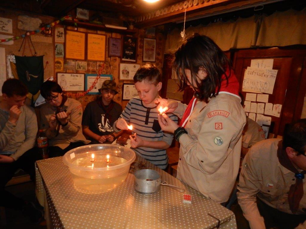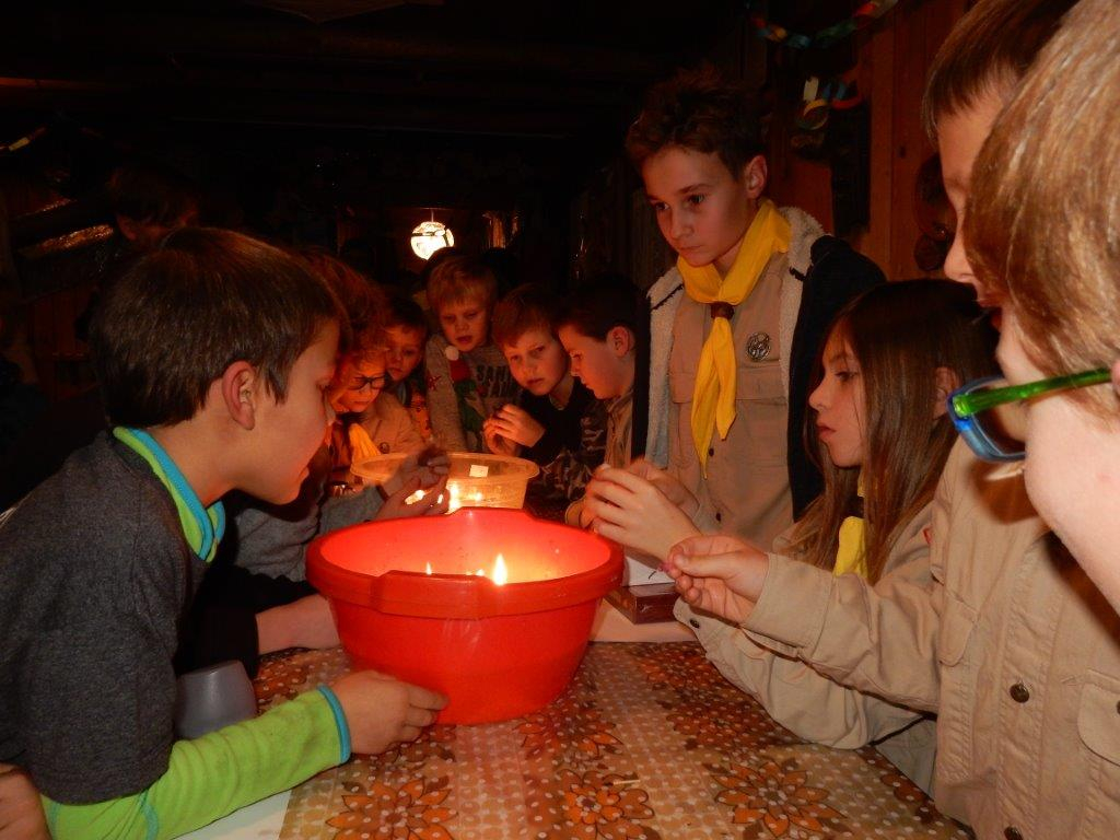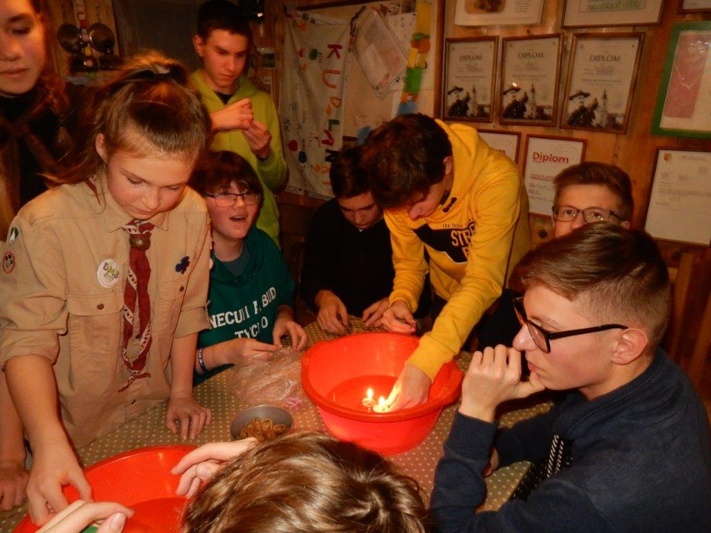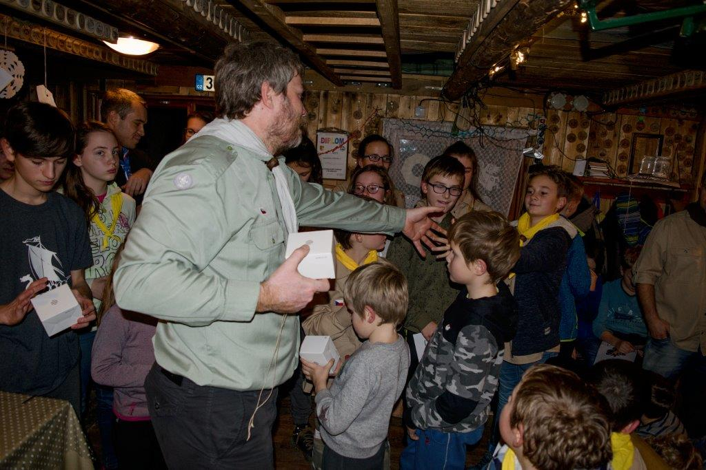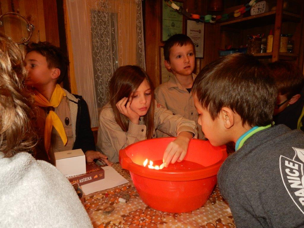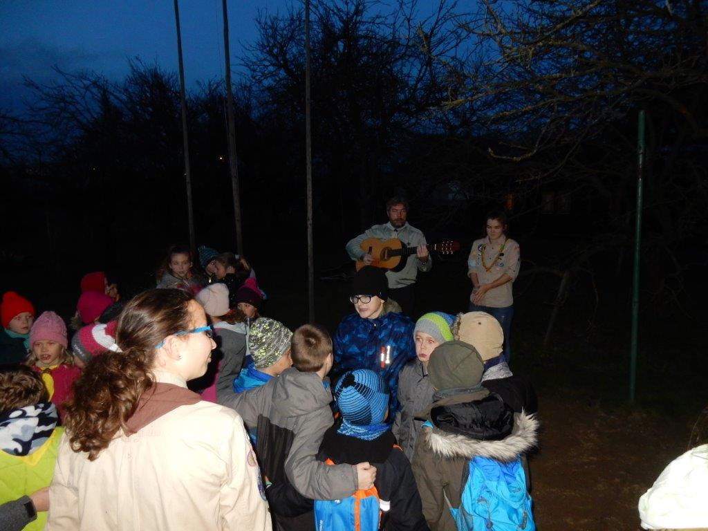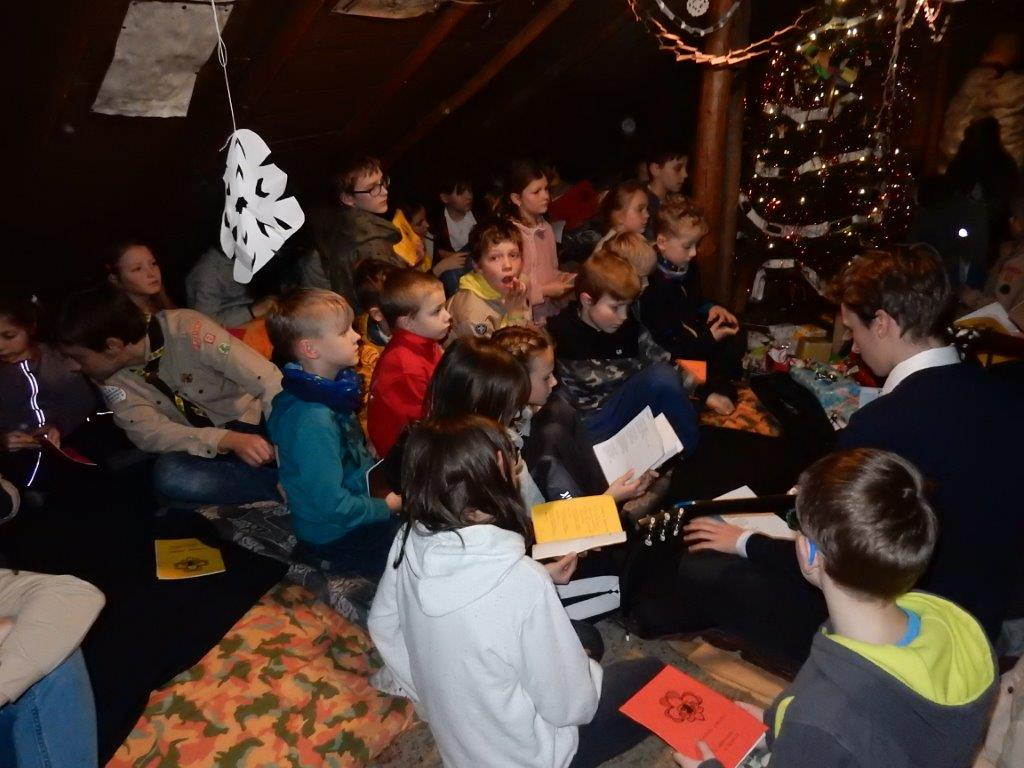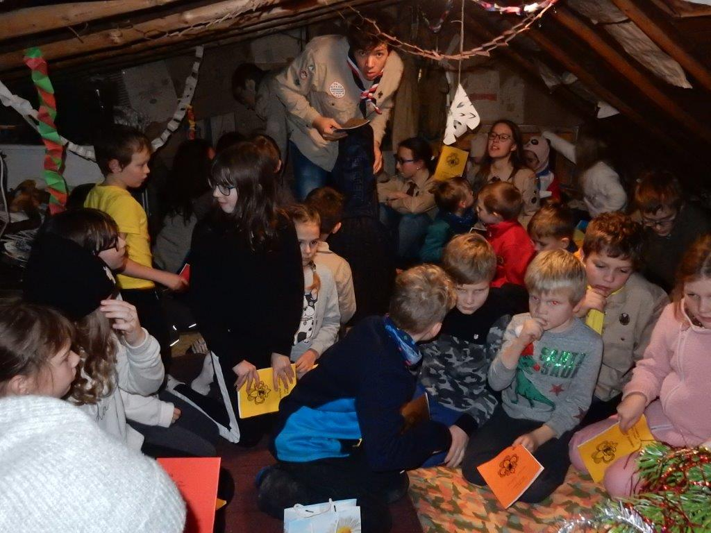 12°C nad nulou, sluníčko, jižní vítr. Tak vypadalo počasí v pátek 20.12. 2019, tedy v den Vánoční oddílové schůzky. Na Boudě se nás sešlo celkem 107 (možná víc, nevím, jestli se všichni zapsali do prezenčky) a bylo veselo. Po nástupu zorganizoval Džany na hřišti molekuly. Postupně se jednotlivé atomy posunuly do Trojky a faktem je, že druhooddíláci zase jednou projevili svoji pověstnou "skladnost". Vedoucí družin vyhlásili výsledky bodování,ti nejlepší převzali diplomy a věcné ceny. Hodnotila se i nejlepší účast, ten nepilnější z každé družiny dostal super cenu - hrníček s oddílovým obrázkem. Následovaly vánoční zvyky: odlévání vosku a lodičky z ořechových skořápek. Kudlanky a Sovičky ve Staré Boudě, Sršni, Žraloci a Kobři v Nové, Tygři, Vlci, Veverky, Pumy a Draci ve Trojce. Prskavky pak byly dalším bodem programu, o který se postaral Krysařík. Než se všichni přesunuli ke stromečkům (straší do podkroví Trojky, mladší nad Starou a Novou Boudu), nafasovali na cestu vánoční zpěvníček. Před rozdáváním dárků se totiž zpívaly koledy. Nevím jak u mladších (nebyl jsem tam), ale u starších zněl zpěv velmi pěkně. Dárečky pak rozdávali ti nejmladší - Sádra z Pum (oslavila teprve 4. narozeniny) a Žabka z Veverek. Moc pěkná schůzka Jura