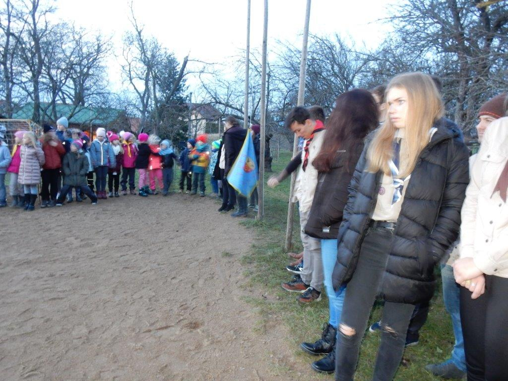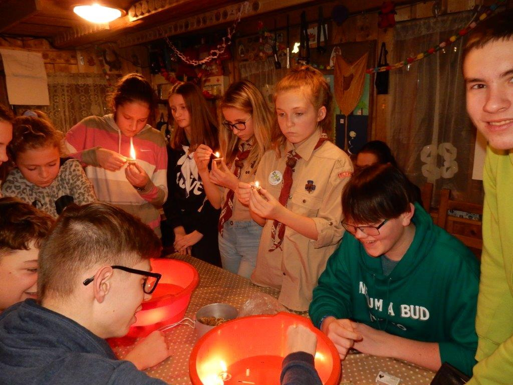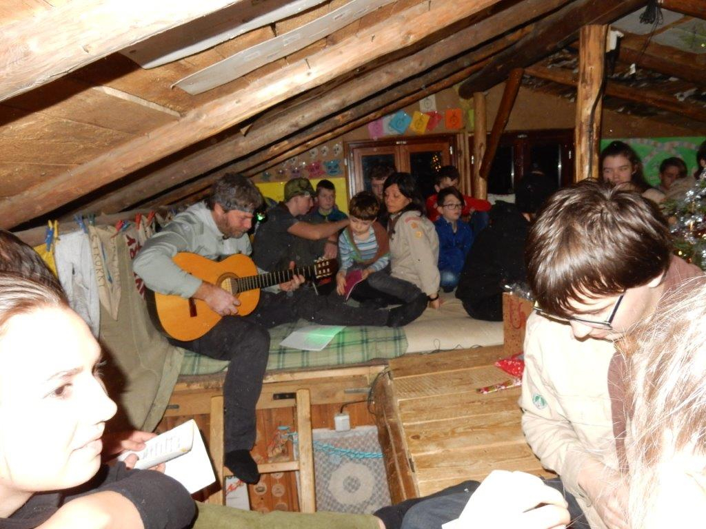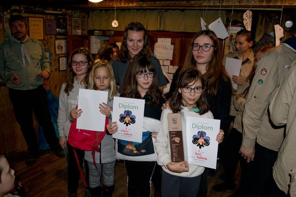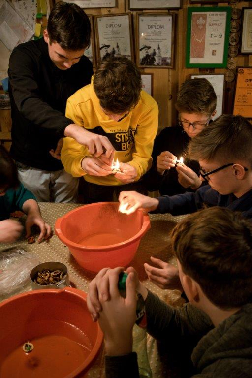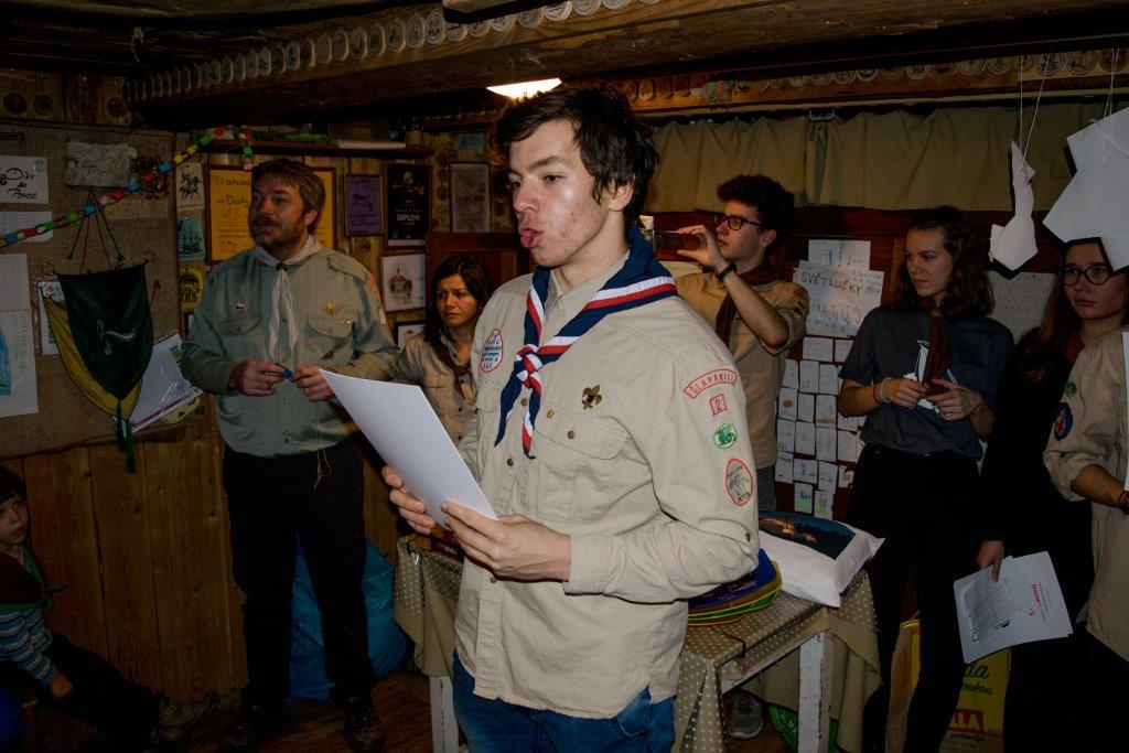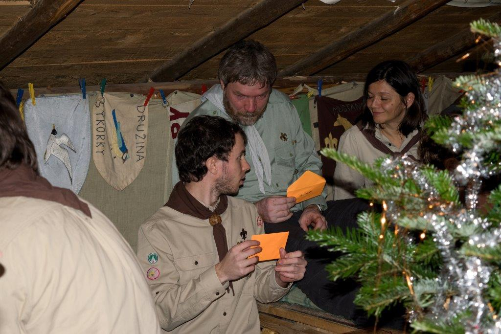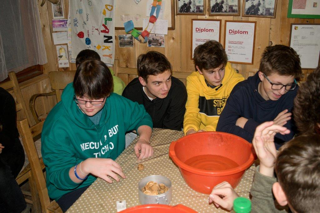 12°C nad nulou, sluníčko, jižní vítr. Tak vypadalo počasí v pátek 20.12. 2019, tedy v den Vánoční oddílové schůzky. Na Boudě se nás sešlo celkem 107 (možná víc, nevím, jestli se všichni zapsali do prezenčky) a bylo veselo. Po nástupu zorganizoval Džany na hřišti molekuly. Postupně se jednotlivé atomy posunuly do Trojky a faktem je, že druhooddíláci zase jednou projevili svoji pověstnou "skladnost". Vedoucí družin vyhlásili výsledky bodování,ti nejlepší převzali diplomy a věcné ceny. Hodnotila se i nejlepší účast, ten nepilnější z každé družiny dostal super cenu - hrníček s oddílovým obrázkem. Následovaly vánoční zvyky: odlévání vosku a lodičky z ořechových skořápek. Kudlanky a Sovičky ve Staré Boudě, Sršni, Žraloci a Kobři v Nové, Tygři, Vlci, Veverky, Pumy a Draci ve Trojce. Prskavky pak byly dalším bodem programu, o který se postaral Krysařík. Než se všichni přesunuli ke stromečkům (straší do podkroví Trojky, mladší nad Starou a Novou Boudu), nafasovali na cestu vánoční zpěvníček. Před rozdáváním dárků se totiž zpívaly koledy. Nevím jak u mladších (nebyl jsem tam), ale u starších zněl zpěv velmi pěkně. Dárečky pak rozdávali ti nejmladší - Sádra z Pum (oslavila teprve 4. narozeniny) a Žabka z Veverek. Moc pěkná schůzka Jura