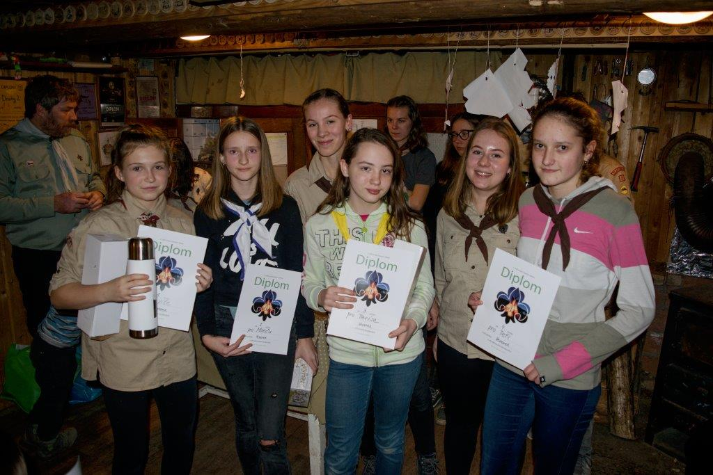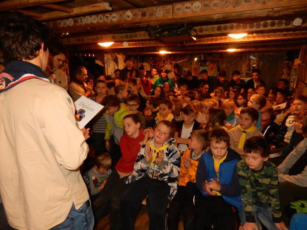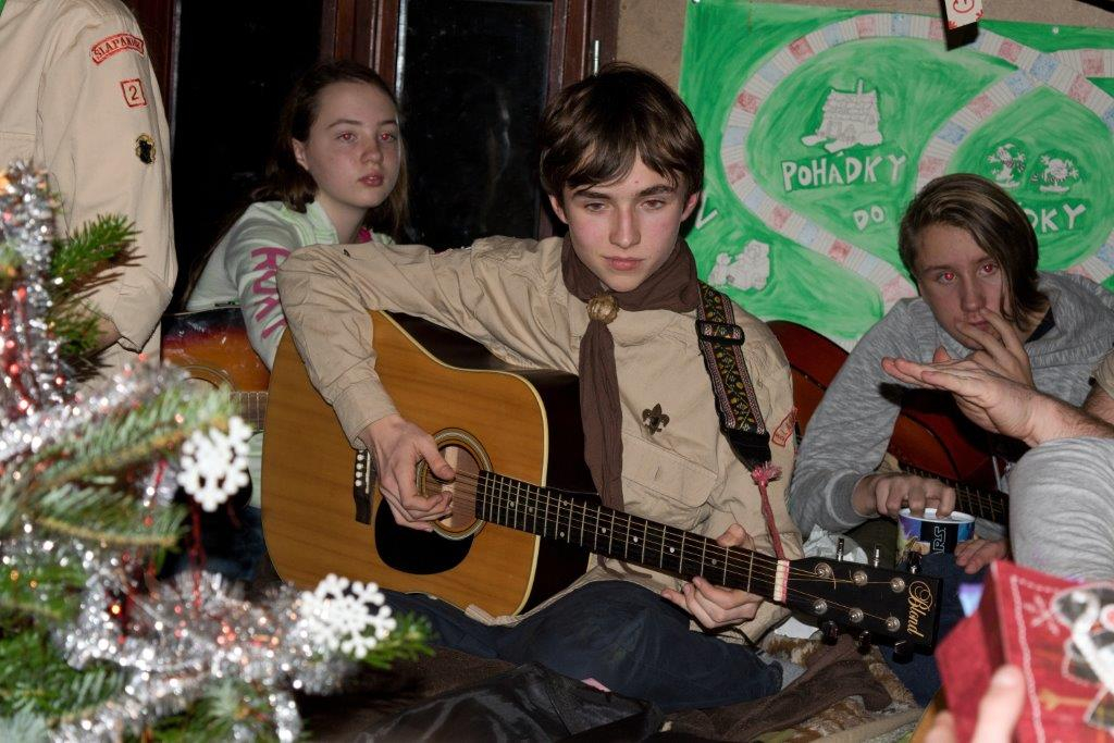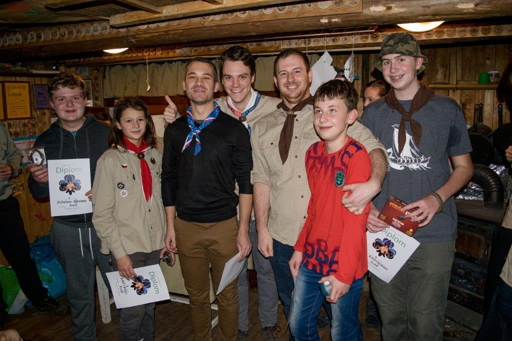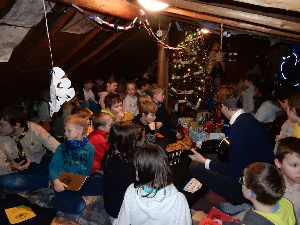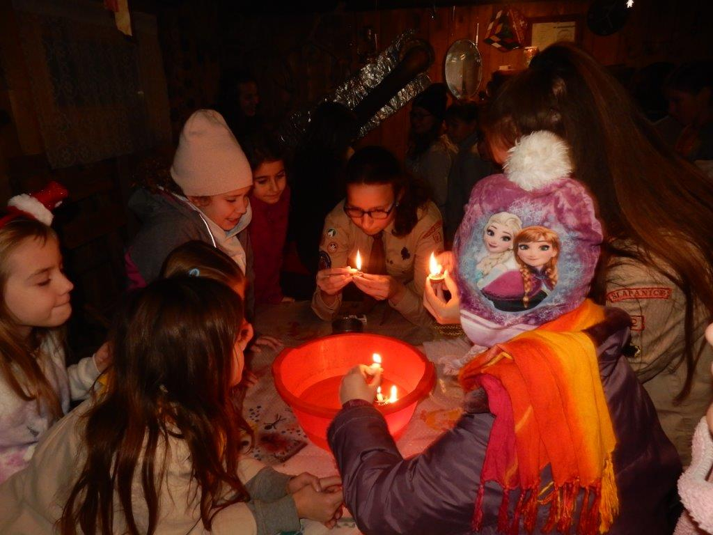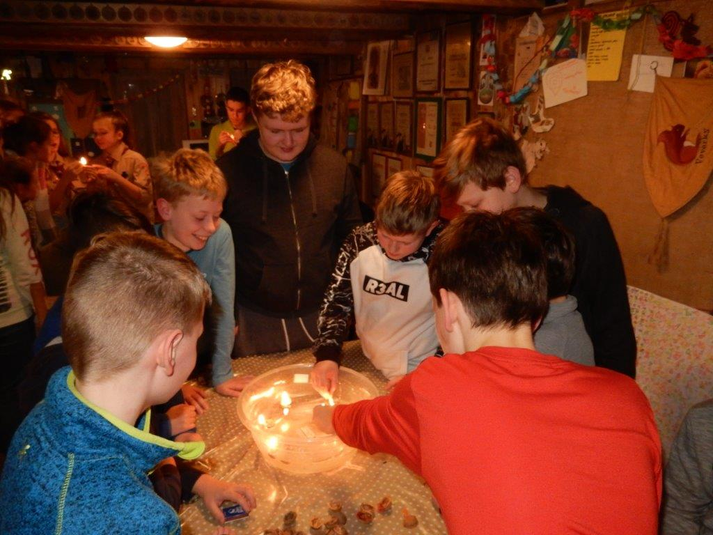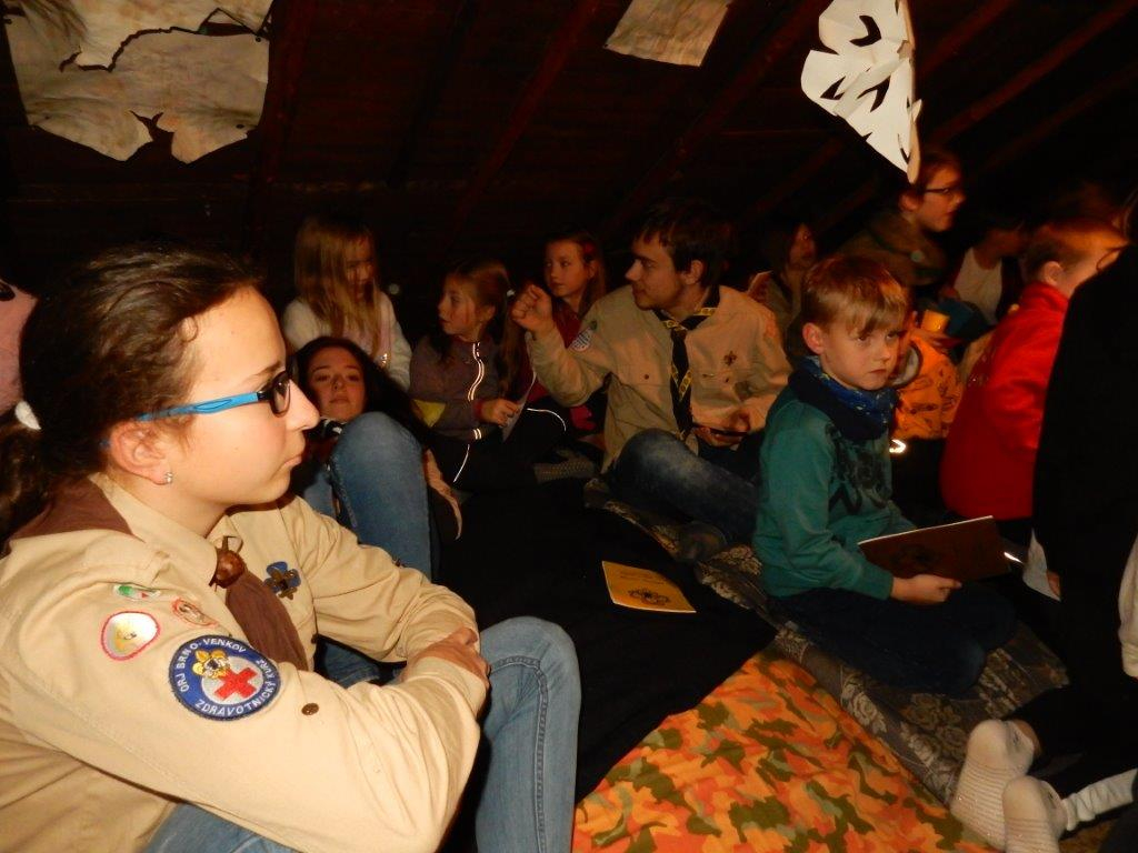 12°C nad nulou, sluníčko, jižní vítr. Tak vypadalo počasí v pátek 20.12. 2019, tedy v den Vánoční oddílové schůzky. Na Boudě se nás sešlo celkem 107 (možná víc, nevím, jestli se všichni zapsali do prezenčky) a bylo veselo. Po nástupu zorganizoval Džany na hřišti molekuly. Postupně se jednotlivé atomy posunuly do Trojky a faktem je, že druhooddíláci zase jednou projevili svoji pověstnou "skladnost". Vedoucí družin vyhlásili výsledky bodování,ti nejlepší převzali diplomy a věcné ceny. Hodnotila se i nejlepší účast, ten nepilnější z každé družiny dostal super cenu - hrníček s oddílovým obrázkem. Následovaly vánoční zvyky: odlévání vosku a lodičky z ořechových skořápek. Kudlanky a Sovičky ve Staré Boudě, Sršni, Žraloci a Kobři v Nové, Tygři, Vlci, Veverky, Pumy a Draci ve Trojce. Prskavky pak byly dalším bodem programu, o který se postaral Krysařík. Než se všichni přesunuli ke stromečkům (straší do podkroví Trojky, mladší nad Starou a Novou Boudu), nafasovali na cestu vánoční zpěvníček. Před rozdáváním dárků se totiž zpívaly koledy. Nevím jak u mladších (nebyl jsem tam), ale u starších zněl zpěv velmi pěkně. Dárečky pak rozdávali ti nejmladší - Sádra z Pum (oslavila teprve 4. narozeniny) a Žabka z Veverek. Moc pěkná schůzka Jura