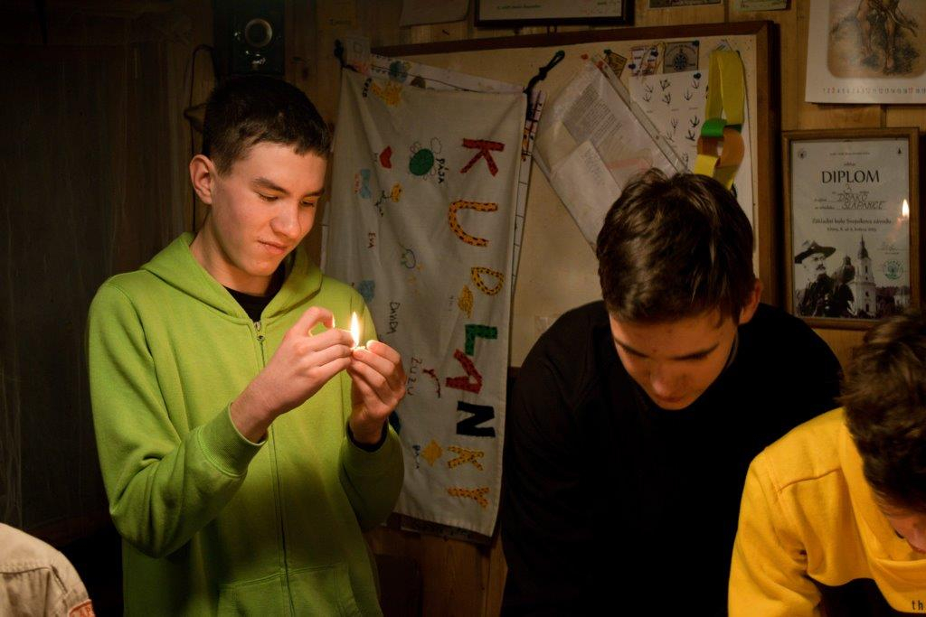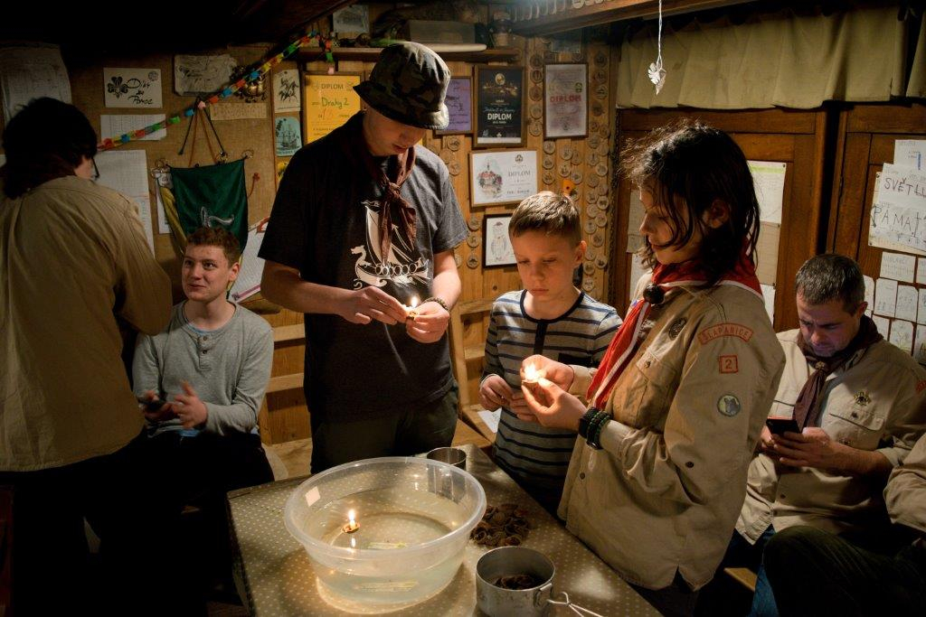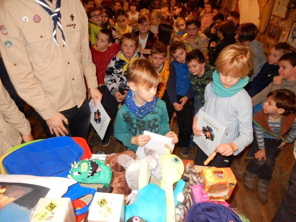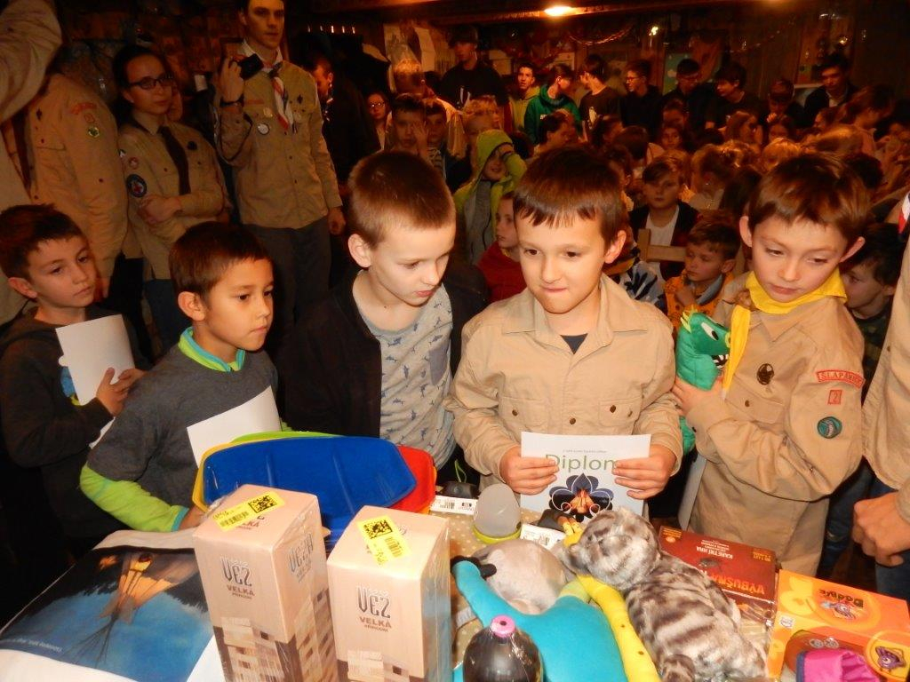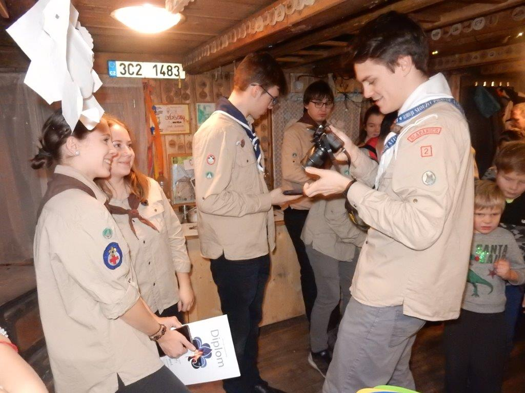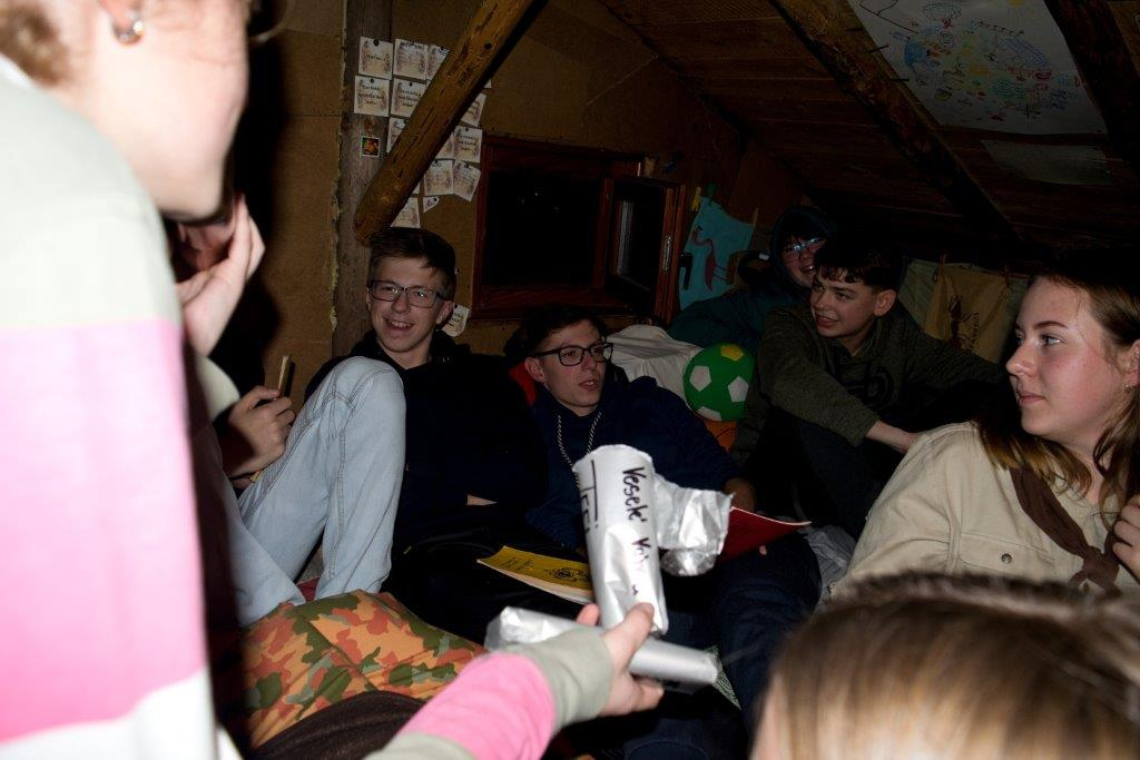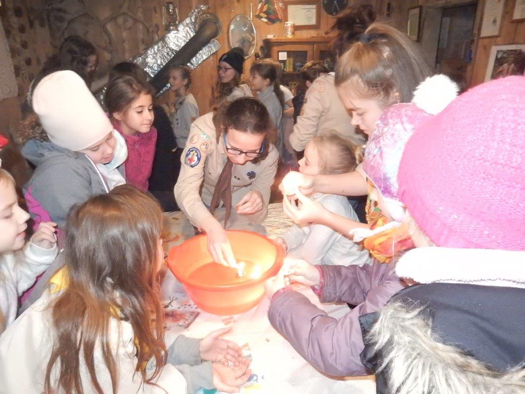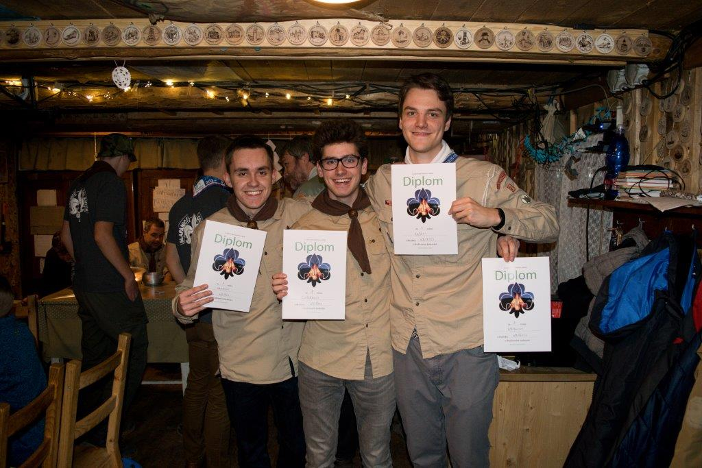 12°C nad nulou, sluníčko, jižní vítr. Tak vypadalo počasí v pátek 20.12. 2019, tedy v den Vánoční oddílové schůzky. Na Boudě se nás sešlo celkem 107 (možná víc, nevím, jestli se všichni zapsali do prezenčky) a bylo veselo. Po nástupu zorganizoval Džany na hřišti molekuly. Postupně se jednotlivé atomy posunuly do Trojky a faktem je, že druhooddíláci zase jednou projevili svoji pověstnou "skladnost". Vedoucí družin vyhlásili výsledky bodování,ti nejlepší převzali diplomy a věcné ceny. Hodnotila se i nejlepší účast, ten nepilnější z každé družiny dostal super cenu - hrníček s oddílovým obrázkem. Následovaly vánoční zvyky: odlévání vosku a lodičky z ořechových skořápek. Kudlanky a Sovičky ve Staré Boudě, Sršni, Žraloci a Kobři v Nové, Tygři, Vlci, Veverky, Pumy a Draci ve Trojce. Prskavky pak byly dalším bodem programu, o který se postaral Krysařík. Než se všichni přesunuli ke stromečkům (straší do podkroví Trojky, mladší nad Starou a Novou Boudu), nafasovali na cestu vánoční zpěvníček. Před rozdáváním dárků se totiž zpívaly koledy. Nevím jak u mladších (nebyl jsem tam), ale u starších zněl zpěv velmi pěkně. Dárečky pak rozdávali ti nejmladší - Sádra z Pum (oslavila teprve 4. narozeniny) a Žabka z Veverek. Moc pěkná schůzka Jura