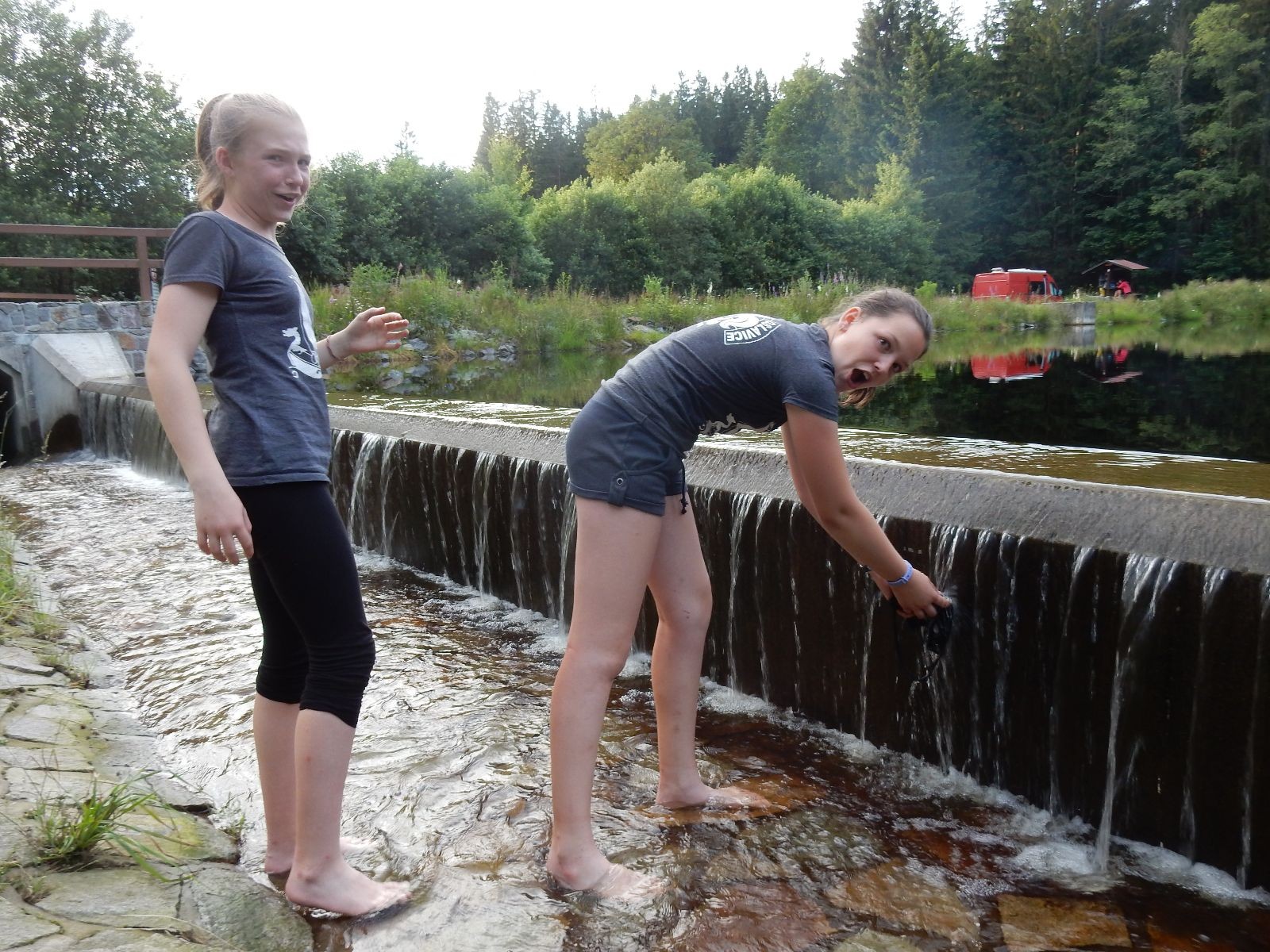 Na třetí Veverčí puťák jsme se rozhodly vyrazit směrem k vodní nádrži Velké Dářko. V neděli ráno hned po snídani jsme vyrazily pěšky z tábora do Žďáru nad Sázavou, kde jsme nakoupily jídlo. Pokračovaly jsme podél Sázavy, po cestě jsme se občerstvily skvělou zmrzkou a dorazily až k Dářku, kde jsme se vykoupaly a naobědvaly. Po koupačce jsme se vydaly příjemnou cestou lesem dál až k rybníčku, u kterého jsme se utábořily. Opekly jsme hermelíny, chvilku si povídaly a celé unavené ulehly do spacáků. Ráno jsme posnídaly buchty a vyrazily dál přes Devět skal, Malinskou skálu a Dráteníčky. Na Blatinách jsme si daly limonádu nebo zmrzlinu a autobusem dojely do Nového Města. Tam nás zastihl déšť, ale to nám vůbec nevadilo, pod stříškou na zastávce jsme se nasvačily a dlouhou chvíli si zkrátily tancováním. Dalším busem jsme přejely do Žďáru nad Sázavou, kde jsme puťák zakončily rozchodem na náměstí, potom už nás čekal jen návrat do tábora.