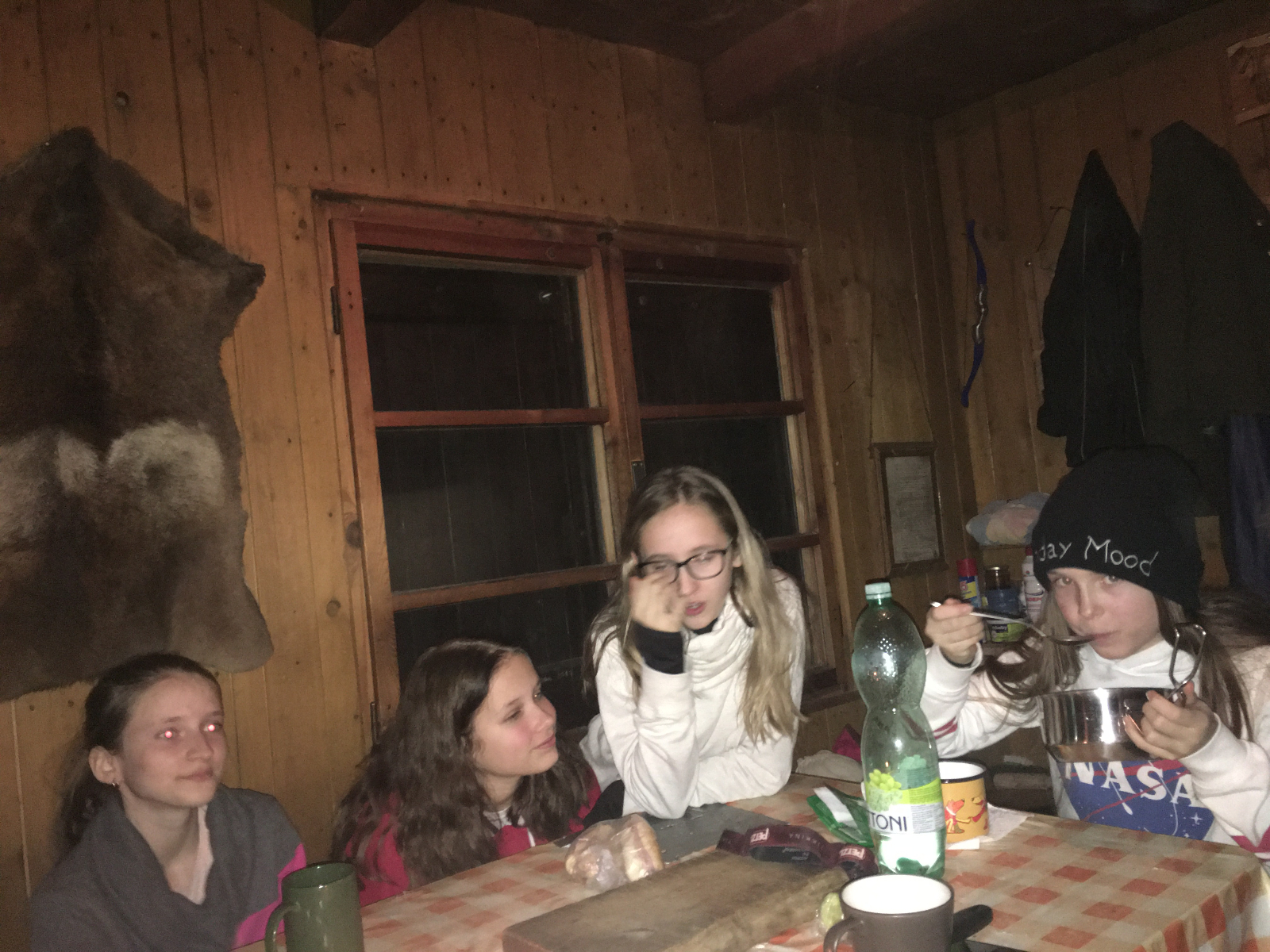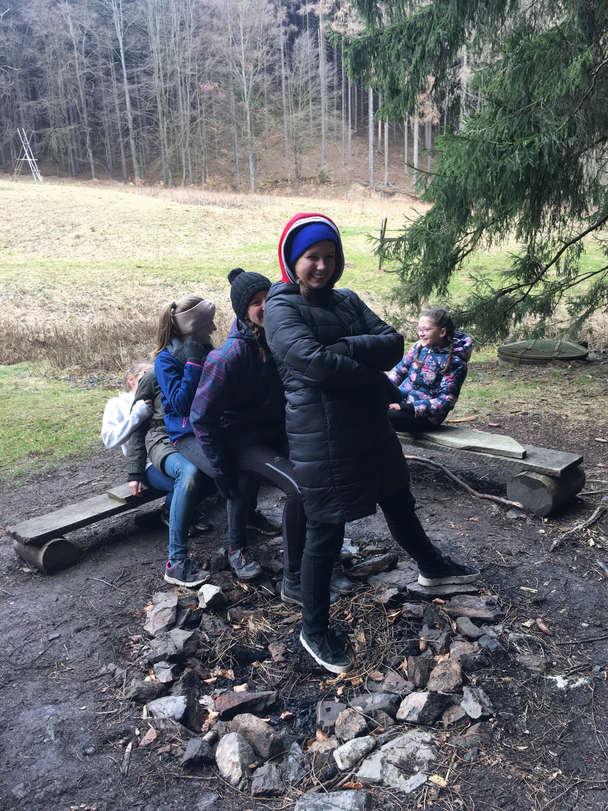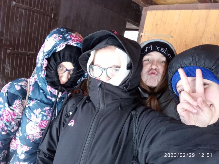 Dne 29.2. - 1.3. jsme měli sraz na trolejbusové zastávce Kalvodova kde se nás sešlo celkem 6+ Babu a Hihňa. Trolejbusem jsme vyrazili na Hlavní Nádraží kde jsme vlakem přijeli na místo kudy jezdíme i na Dytrych (nevím jak se to tam jmenuje) a od tam autobusem do Němčic kde jsme si vyzvedli klíče k naší základně. Pán nás doprovodil až k dřevěnému stavení a zatopil nám. Po cestě samozřejmě sněžilo a bylo bahno. Na základně jsme si vybalili a trochu se přioblíkli a vyrazili na Bowling. Celkem sranda jít do celkem dost strmého kopce v klouzajícím bahně. Na místě jsme měli rozchod do Alberta a Tety atd. Potom přišel na řadu bowling kde netuším kdo vyhrál první hru, ale druhou vyhrála Monča s 95 body (já měla 92 takže jsem ji celkem dohnala). Poté jsme si šli koupit do Alberta něco na zítřejší oběd. Některé z nás si kupili něco i na dnešní večeři. Jelikož jsme měli ještě čas než jsme vyrazili na autobus, sedli jsme si ke schodům do tepla. Samozřejmě kolem nás procházeli lidi a vypadali jsme vážně jako bezdomovci. No potom šli kolem nějací borci a na mě ze shora spadla 1 koruna. Buď jim spadla a nebo to hodili schválně, to už se nedozvíme. Na autobusové zastávce byla taky sranda. Byla tam nějaká paní s dítětem, které si velice oblíbilo Keho, tak si tam s ním hrála. Samozřejmě jsme si z toho dělali srandu. Autobus nás dovezl do nějaké vesnice odkud jsme šli po tmě lesem k naší základně. Myslím že jsem byla jediná kdo se bál. No samozřejmě na cestě nesmělo chybět bláto. Celé zmrzlé jsme přišli na základnu kde jsme si zatopili, sedli okolo stolu a začli večeřet. Samozřejmě nemohli chybět vtipné historky a scénky. Nakonec jsme šli celkem brzo spát. Jelikož nahoře nebylo okno, ze kterého by nás uvítalo ranní světlo, vstali jsme relativně pozdě, ale to vůbec nevadilo. Jako vždycky nejdýl spala Hrozča. Poté co proběhla ranní hygiena jsme si zahráli schovku. Mezitím co Babu s Hihňou vařili oběd, holky si čistili boty od bahna a pletli copánky. Na oběd jsme měli těstoviny s kečupem a sýrem. No bylo to vynikající. Pak přišel na řadu úklid. Bylo celkem rychle hotovo, tak jsme měli chvilku volno s potom jsme vyrazili vrátit klíče. U hřbitova si Lvíče vyzvedla mamka takže nás opustila. Na cestě zpátky naštěstí nebylo nikomu blbě, takže jsme dojeli domů v pořádku. Výpravu jsem si moc užila a strašně se těším na další.