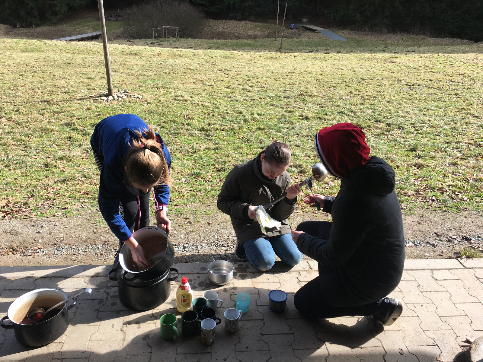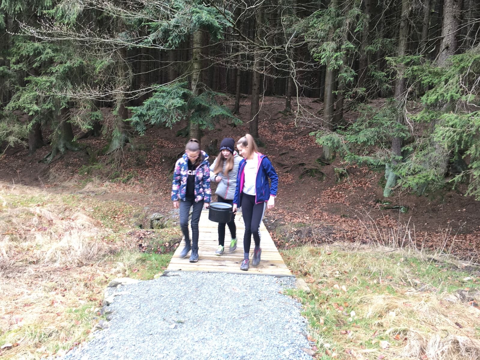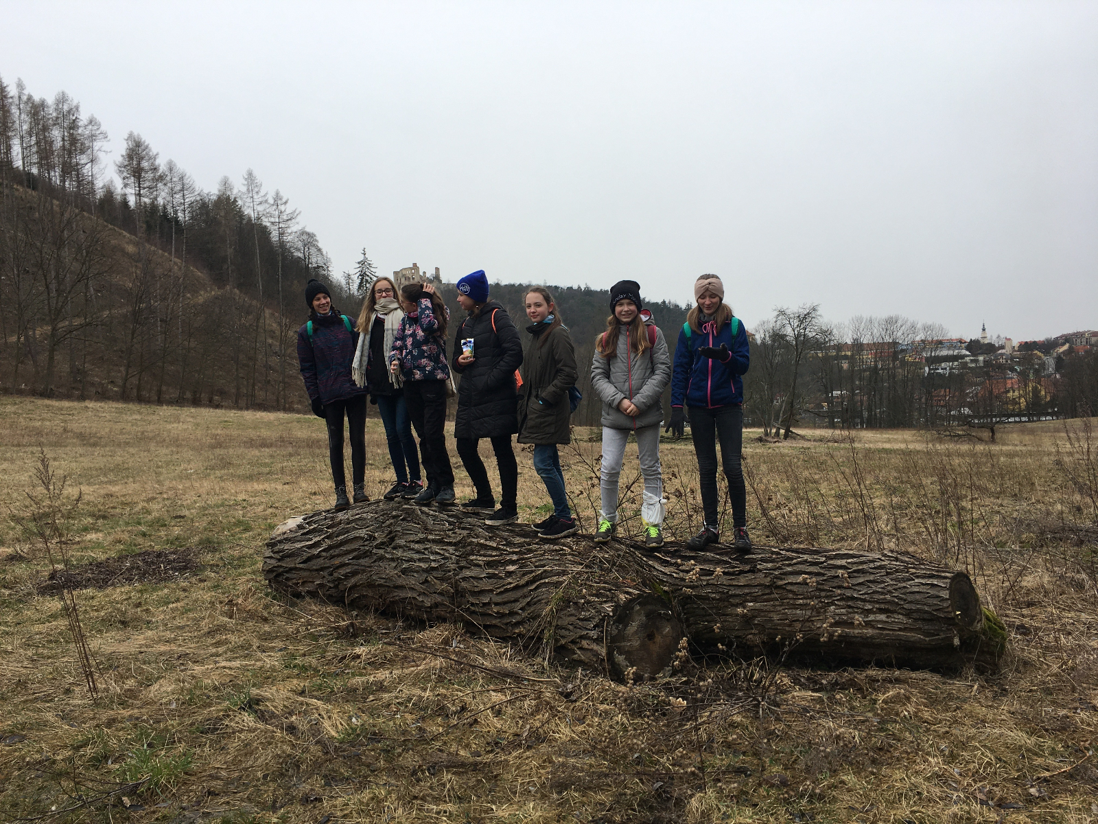 Dne 29.2. - 1.3. jsme měli sraz na trolejbusové zastávce Kalvodova kde se nás sešlo celkem 6+ Babu a Hihňa. Trolejbusem jsme vyrazili na Hlavní Nádraží kde jsme vlakem přijeli na místo kudy jezdíme i na Dytrych (nevím jak se to tam jmenuje) a od tam autobusem do Němčic kde jsme si vyzvedli klíče k naší základně. Pán nás doprovodil až k dřevěnému stavení a zatopil nám. Po cestě samozřejmě sněžilo a bylo bahno. Na základně jsme si vybalili a trochu se přioblíkli a vyrazili na Bowling. Celkem sranda jít do celkem dost strmého kopce v klouzajícím bahně. Na místě jsme měli rozchod do Alberta a Tety atd. Potom přišel na řadu bowling kde netuším kdo vyhrál první hru, ale druhou vyhrála Monča s 95 body (já měla 92 takže jsem ji celkem dohnala). Poté jsme si šli koupit do Alberta něco na zítřejší oběd. Některé z nás si kupili něco i na dnešní večeři. Jelikož jsme měli ještě čas než jsme vyrazili na autobus, sedli jsme si ke schodům do tepla. Samozřejmě kolem nás procházeli lidi a vypadali jsme vážně jako bezdomovci. No potom šli kolem nějací borci a na mě ze shora spadla 1 koruna. Buď jim spadla a nebo to hodili schválně, to už se nedozvíme. Na autobusové zastávce byla taky sranda. Byla tam nějaká paní s dítětem, které si velice oblíbilo Keho, tak si tam s ním hrála. Samozřejmě jsme si z toho dělali srandu. Autobus nás dovezl do nějaké vesnice odkud jsme šli po tmě lesem k naší základně. Myslím že jsem byla jediná kdo se bál. No samozřejmě na cestě nesmělo chybět bláto. Celé zmrzlé jsme přišli na základnu kde jsme si zatopili, sedli okolo stolu a začli večeřet. Samozřejmě nemohli chybět vtipné historky a scénky. Nakonec jsme šli celkem brzo spát. Jelikož nahoře nebylo okno, ze kterého by nás uvítalo ranní světlo, vstali jsme relativně pozdě, ale to vůbec nevadilo. Jako vždycky nejdýl spala Hrozča. Poté co proběhla ranní hygiena jsme si zahráli schovku. Mezitím co Babu s Hihňou vařili oběd, holky si čistili boty od bahna a pletli copánky. Na oběd jsme měli těstoviny s kečupem a sýrem. No bylo to vynikající. Pak přišel na řadu úklid. Bylo celkem rychle hotovo, tak jsme měli chvilku volno s potom jsme vyrazili vrátit klíče. U hřbitova si Lvíče vyzvedla mamka takže nás opustila. Na cestě zpátky naštěstí nebylo nikomu blbě, takže jsme dojeli domů v pořádku. Výpravu jsem si moc užila a strašně se těším na další.