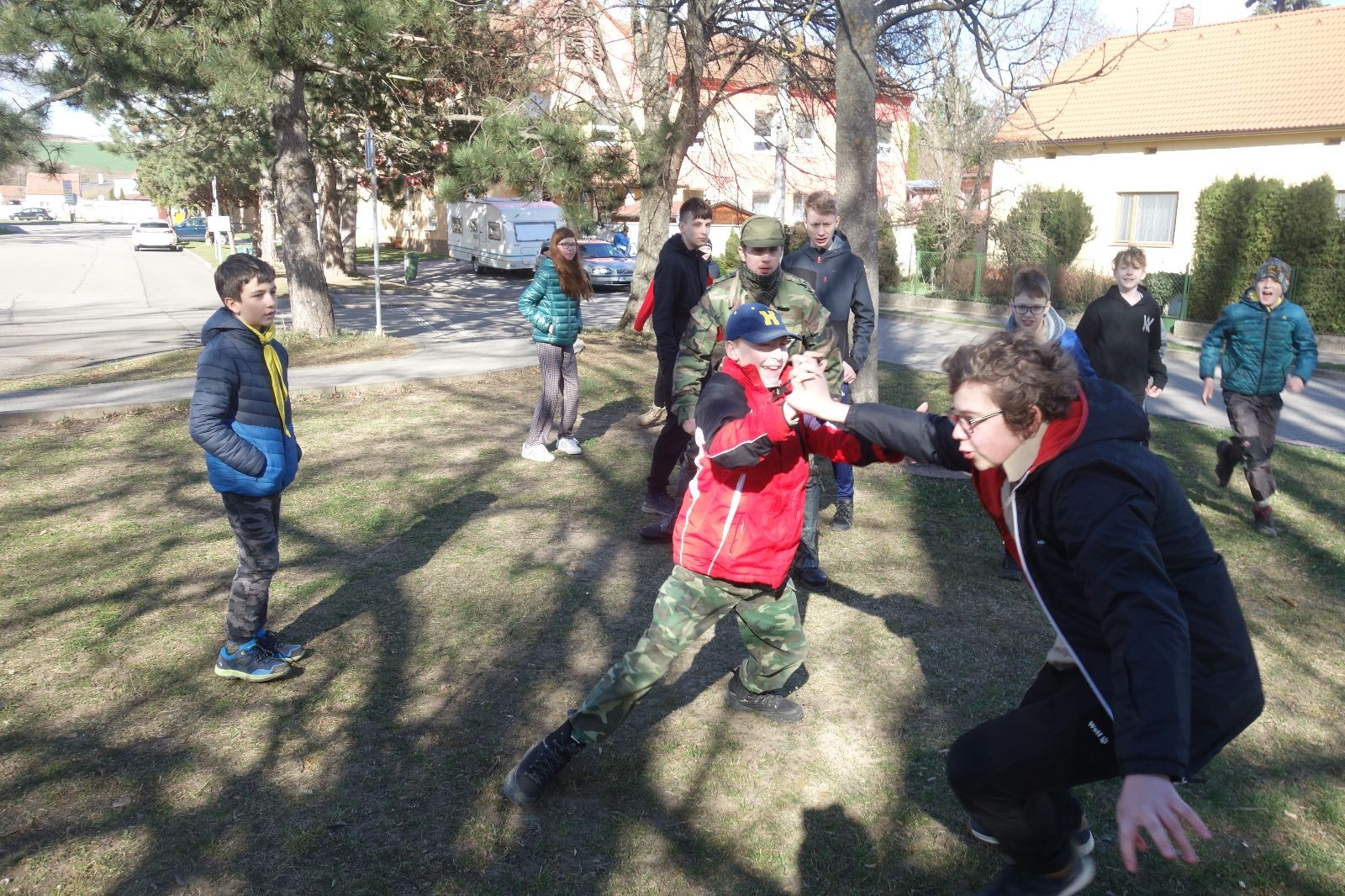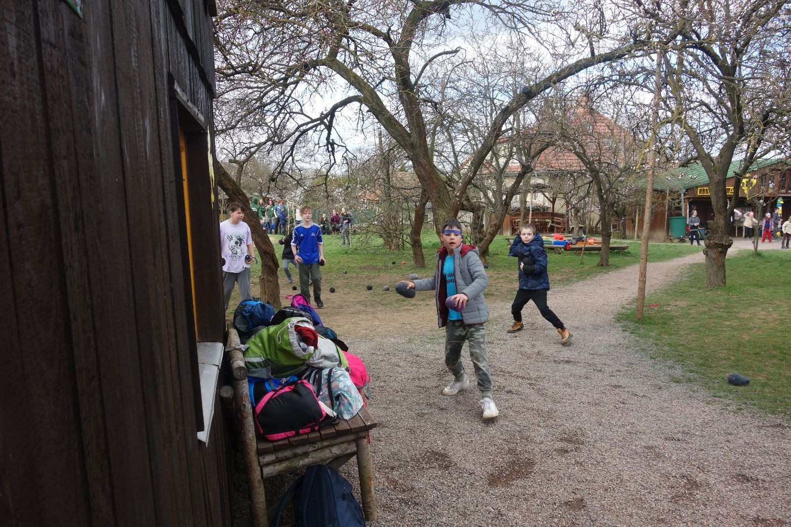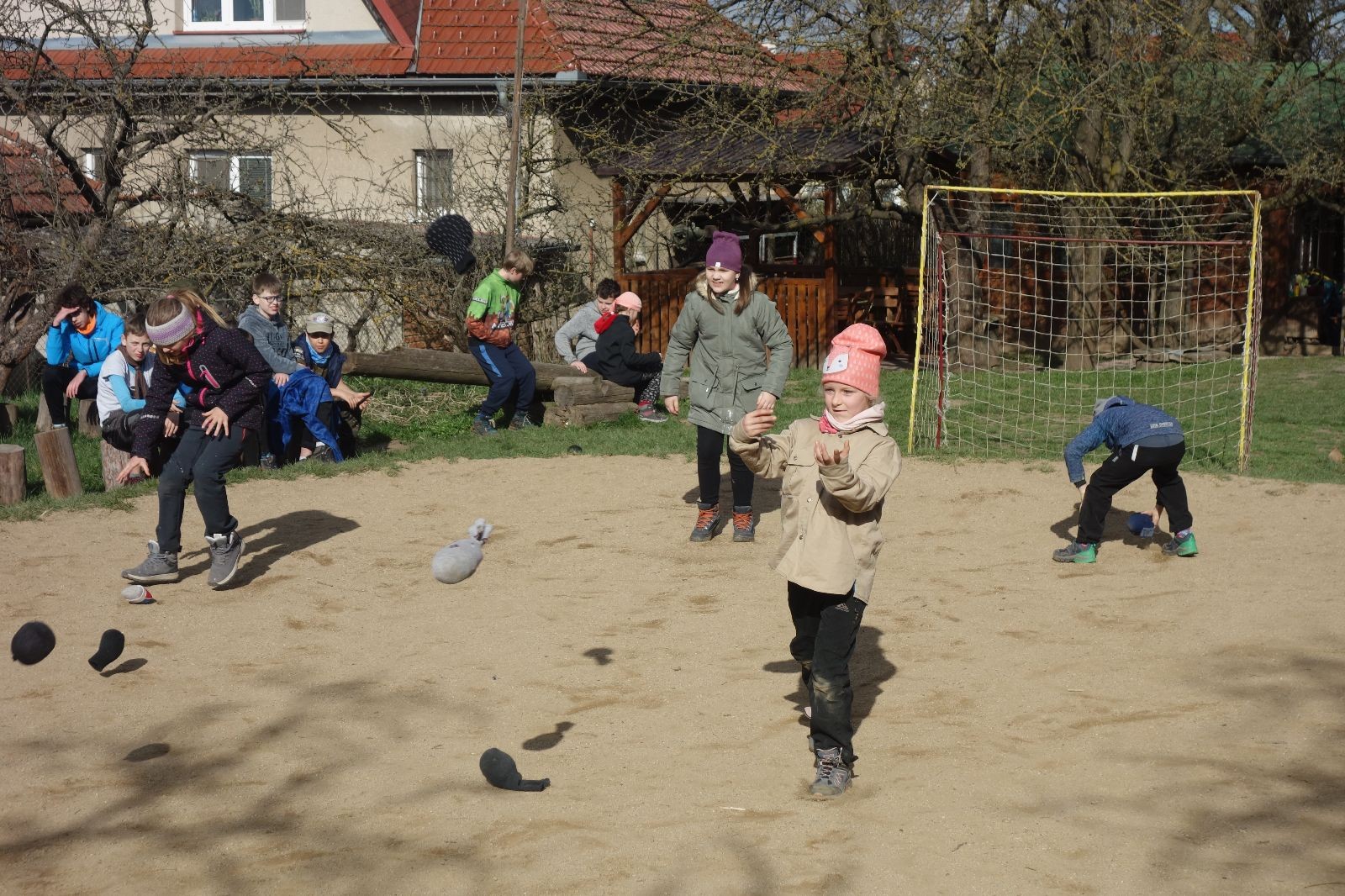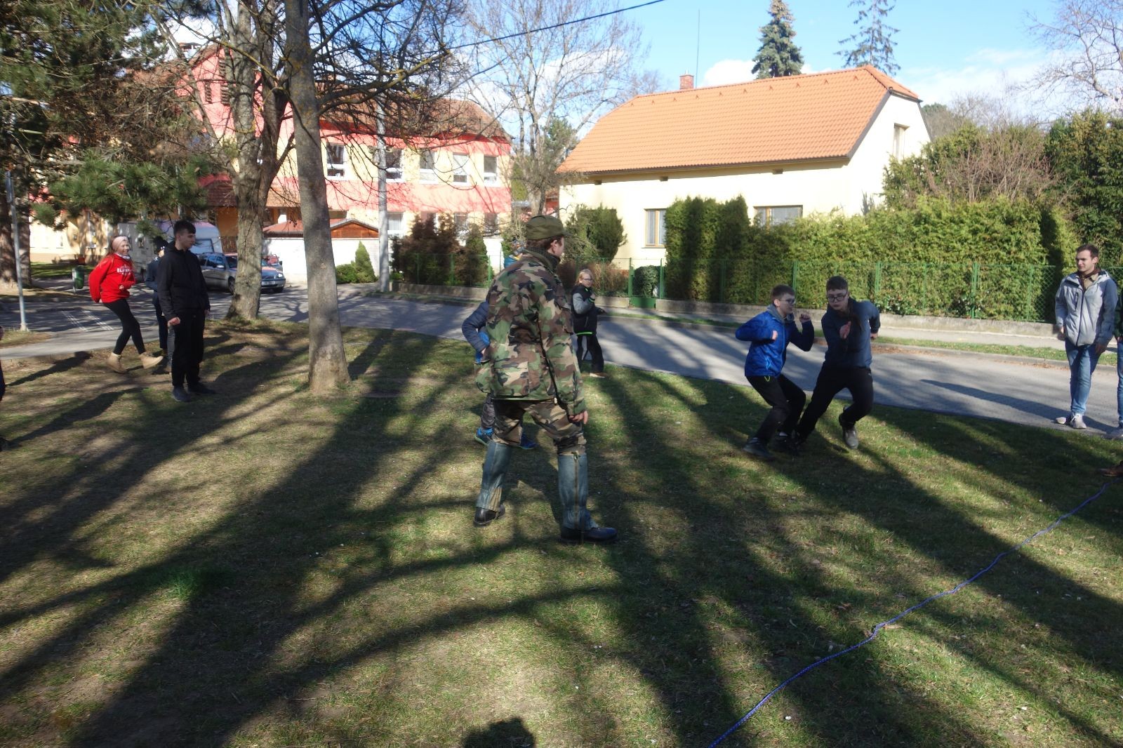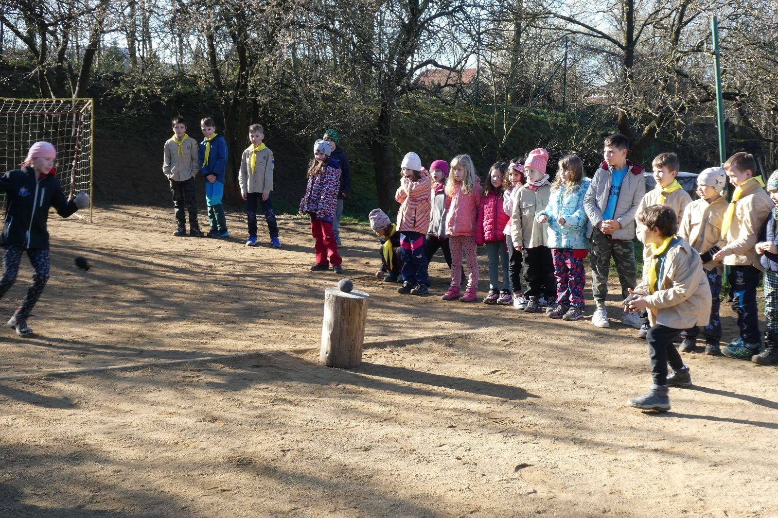 Následuje hra, kterou připravila a organizuje Kiki, po ní tradiční Bojovka. Na nástupu odměňujeme bojovníky ovocnými čočkami, všechny pak lipovými lístky na kroj. V 11:00 akce končí pro mladší, starší se ještě něco přes hodinku věnují úklidu. Myjí podlahy, okna, rovnají věci, vysávají, vynášejí a zase zanášejí nábytek.