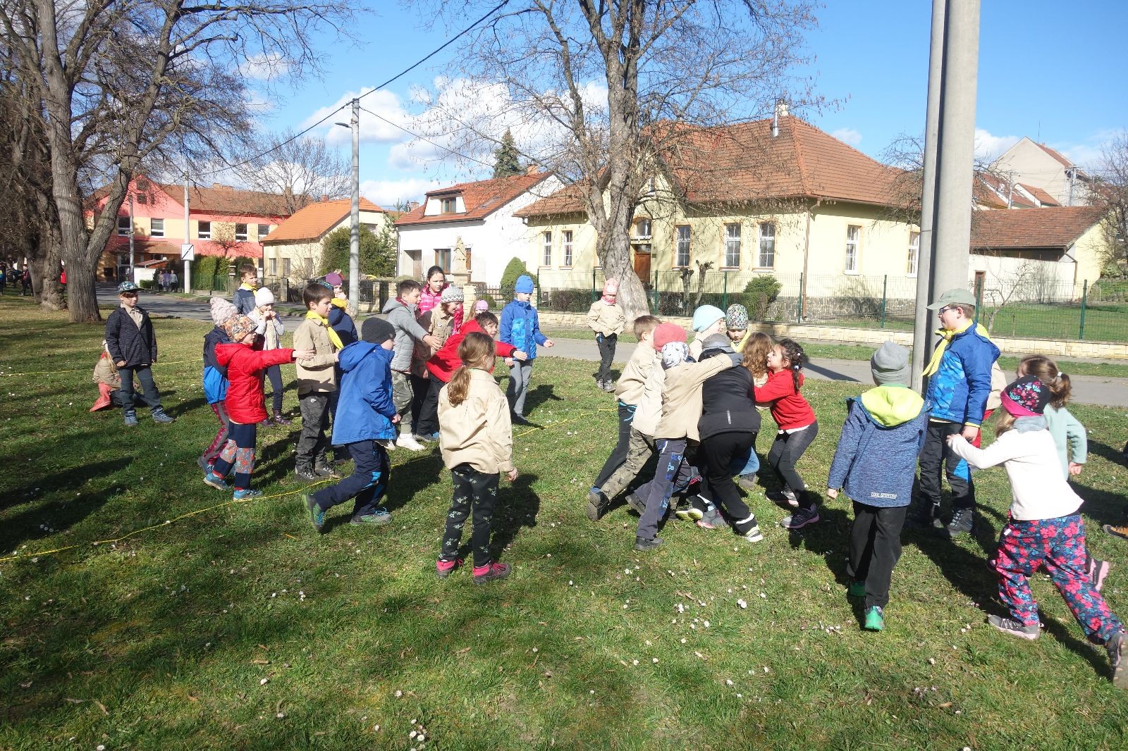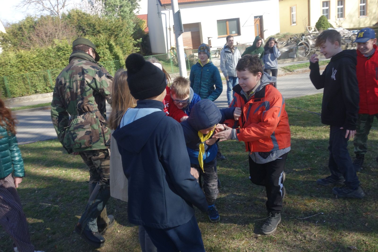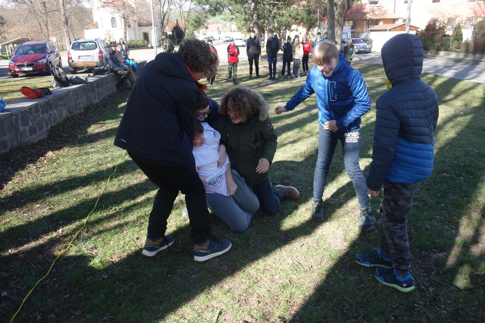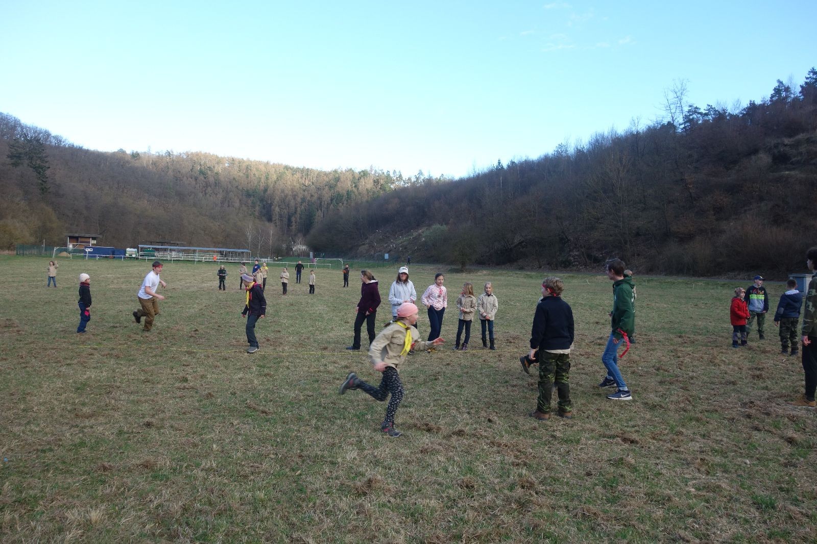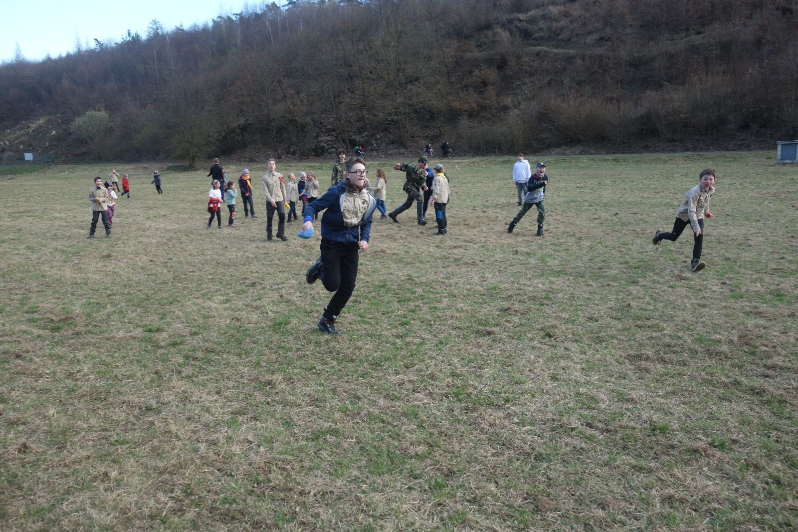 Následuje hra, kterou připravila a organizuje Kiki, po ní tradiční Bojovka. Na nástupu odměňujeme bojovníky ovocnými čočkami, všechny pak lipovými lístky na kroj. V 11:00 akce končí pro mladší, starší se ještě něco přes hodinku věnují úklidu. Myjí podlahy, okna, rovnají věci, vysávají, vynášejí a zase zanášejí nábytek.