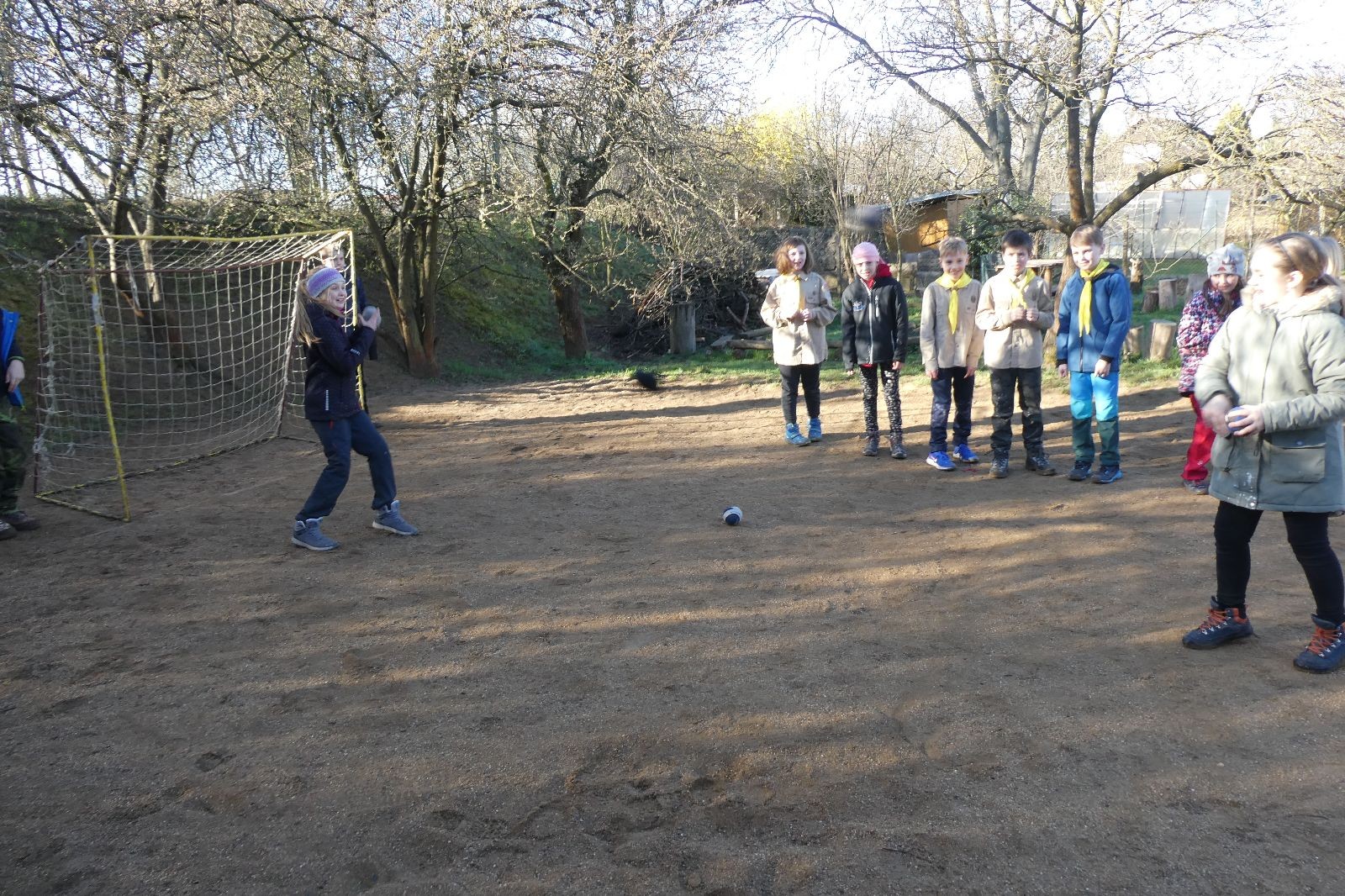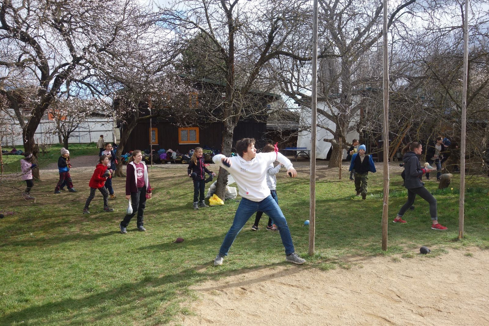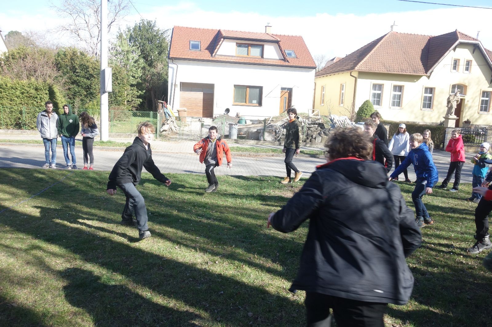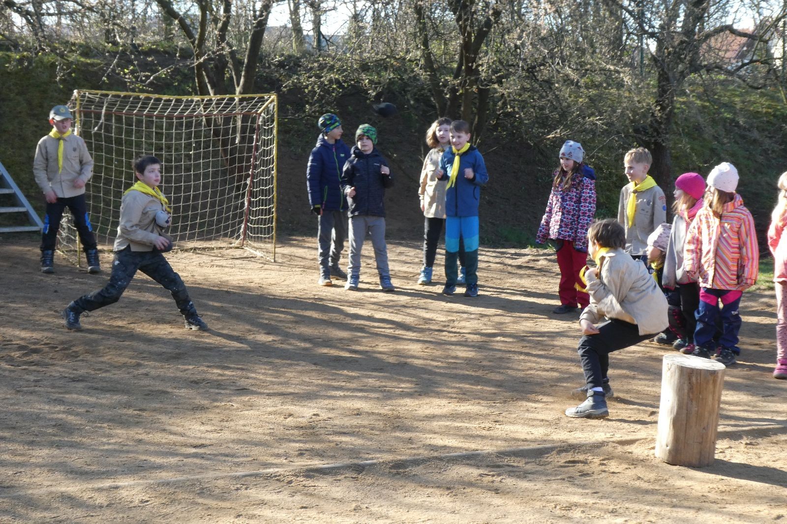 Následuje hra, kterou připravila a organizuje Kiki, po ní tradiční Bojovka. Na nástupu odměňujeme bojovníky ovocnými čočkami, všechny pak lipovými lístky na kroj. V 11:00 akce končí pro mladší, starší se ještě něco přes hodinku věnují úklidu. Myjí podlahy, okna, rovnají věci, vysávají, vynášejí a zase zanášejí nábytek.