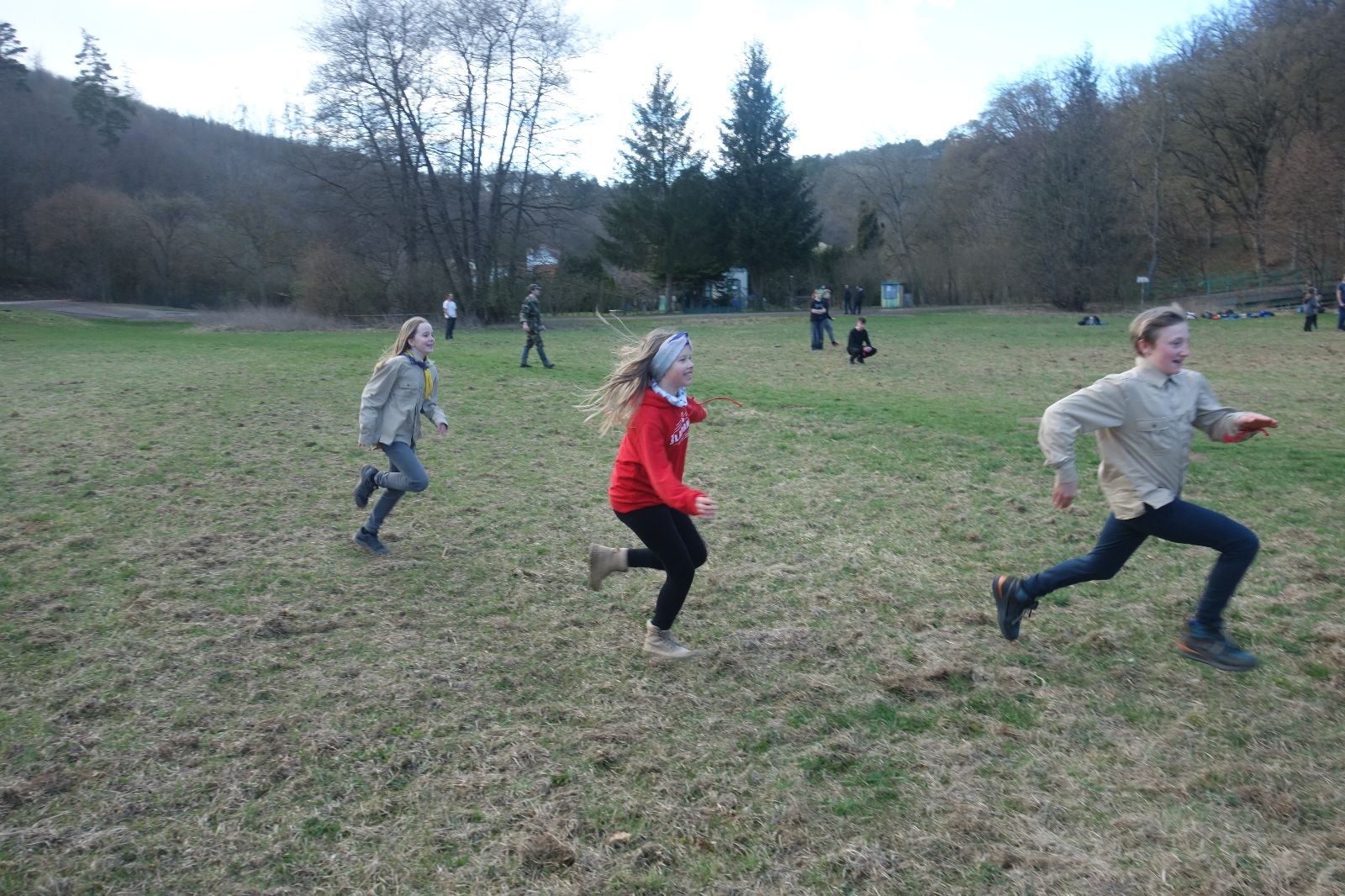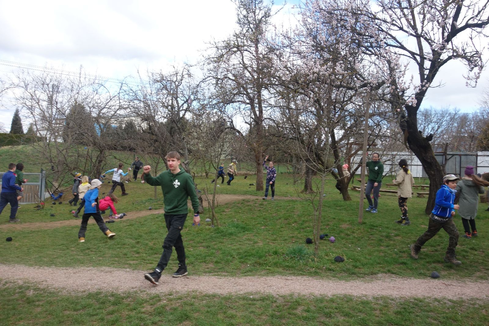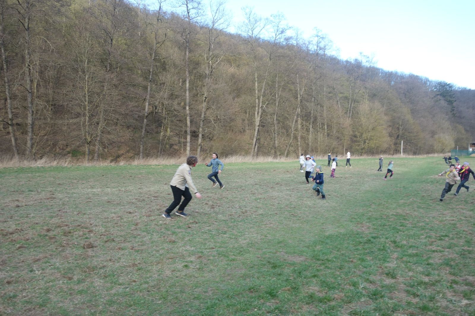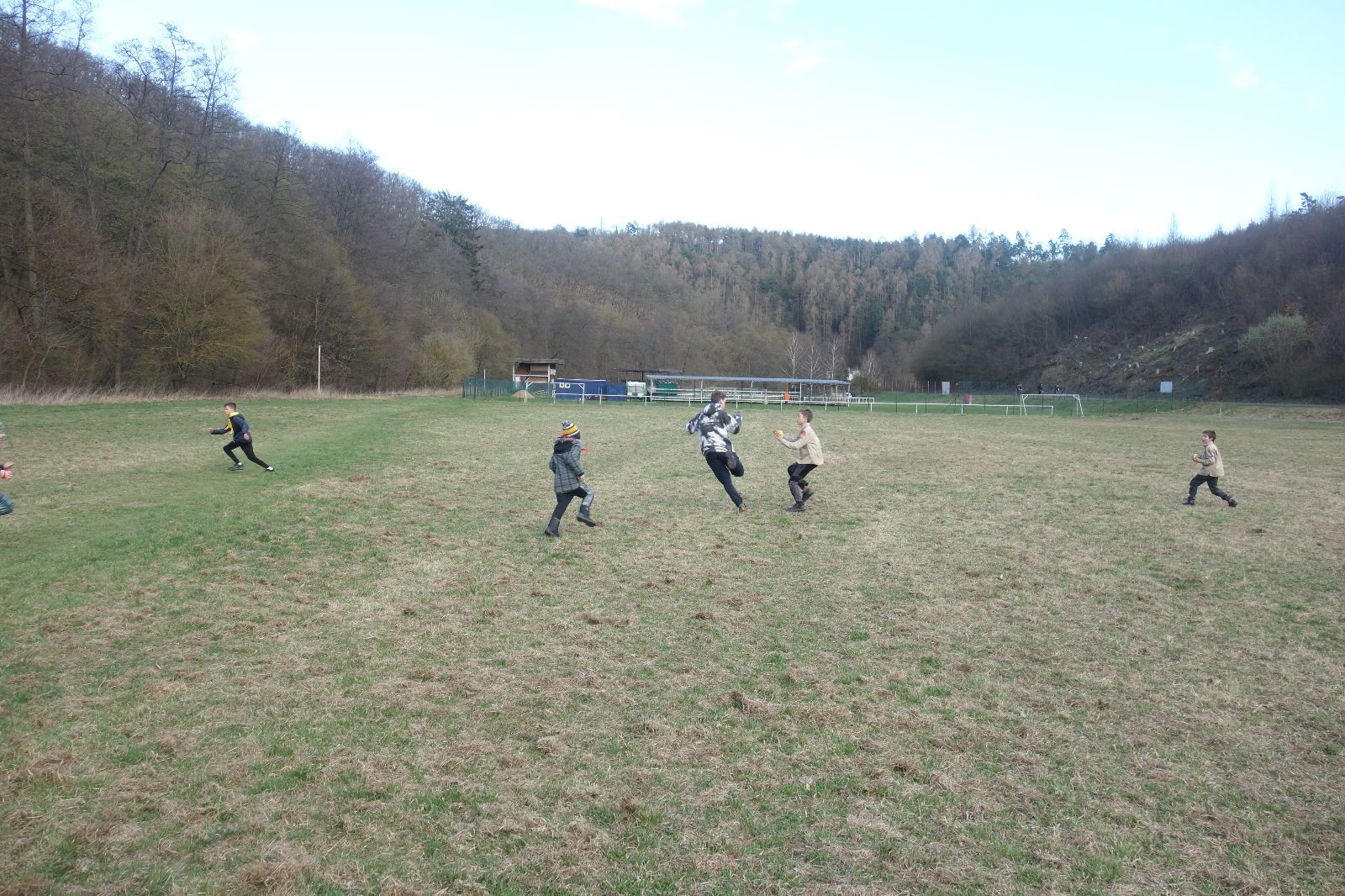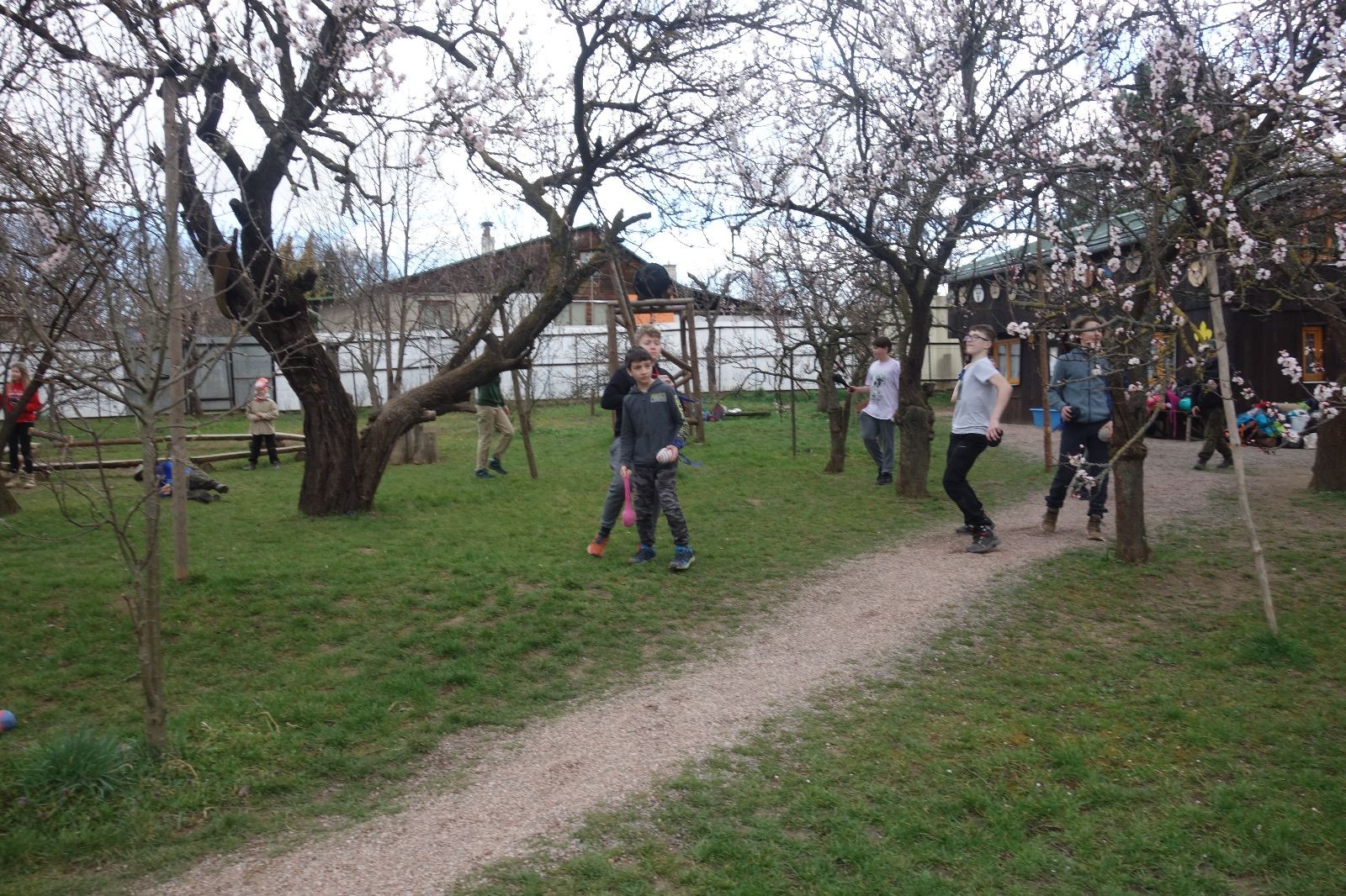 Následuje hra, kterou připravila a organizuje Kiki, po ní tradiční Bojovka. Na nástupu odměňujeme bojovníky ovocnými čočkami, všechny pak lipovými lístky na kroj. V 11:00 akce končí pro mladší, starší se ještě něco přes hodinku věnují úklidu. Myjí podlahy, okna, rovnají věci, vysávají, vynášejí a zase zanášejí nábytek.