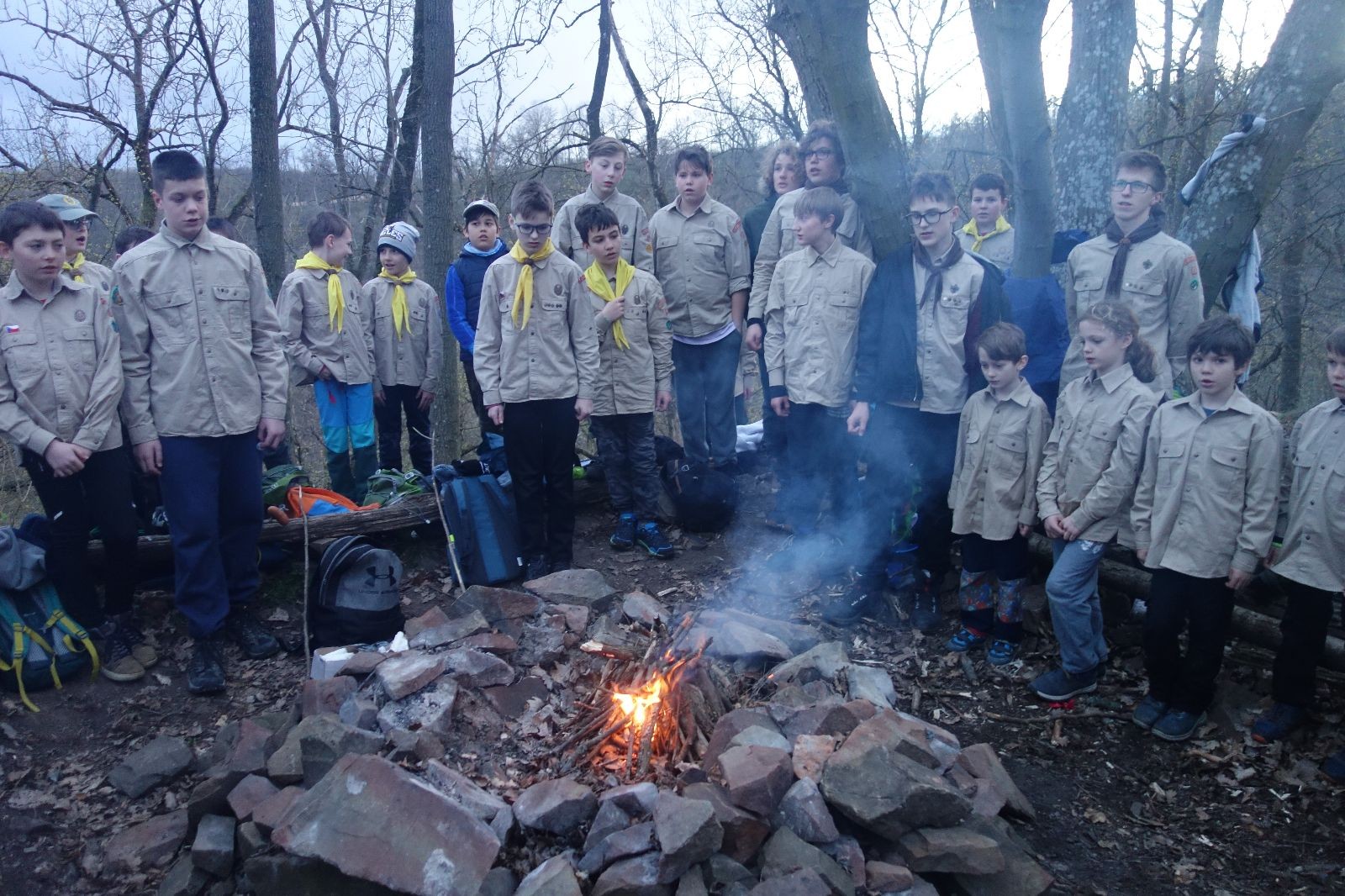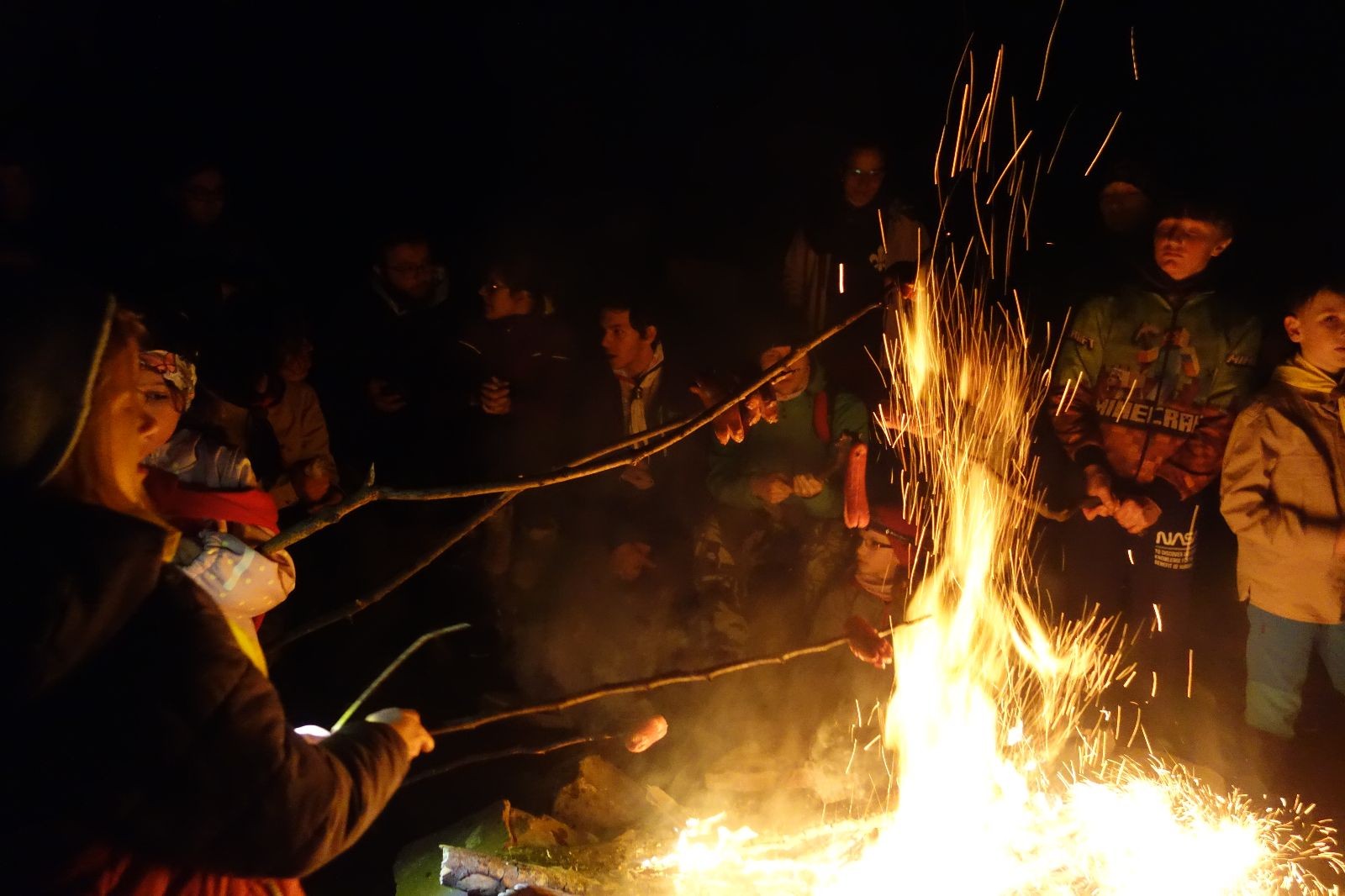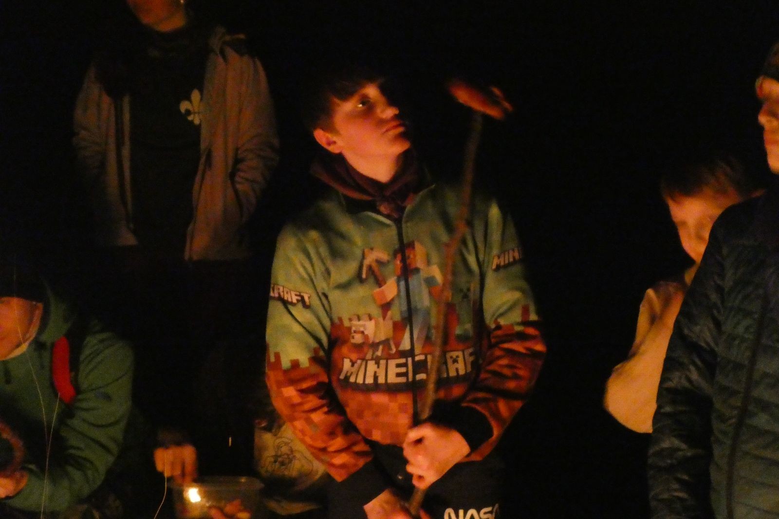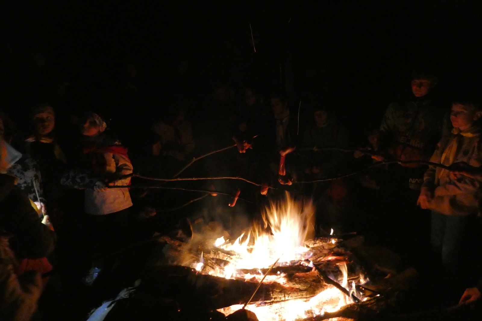 Po slavnostním slibu je oheň prohlášen za užitkový a hladoví lidičkové opékají špekáčky. Všude kolem to voní, ti co si už opekli, uvolňují místo u ohně dalším. A písničky. Čtyři bytelný kola, Tři kříže, Peggy, Pověste ho vejš…. Kdo zrovna nemá pusu plnou jídla, zpívá. A zní to moc hezky.