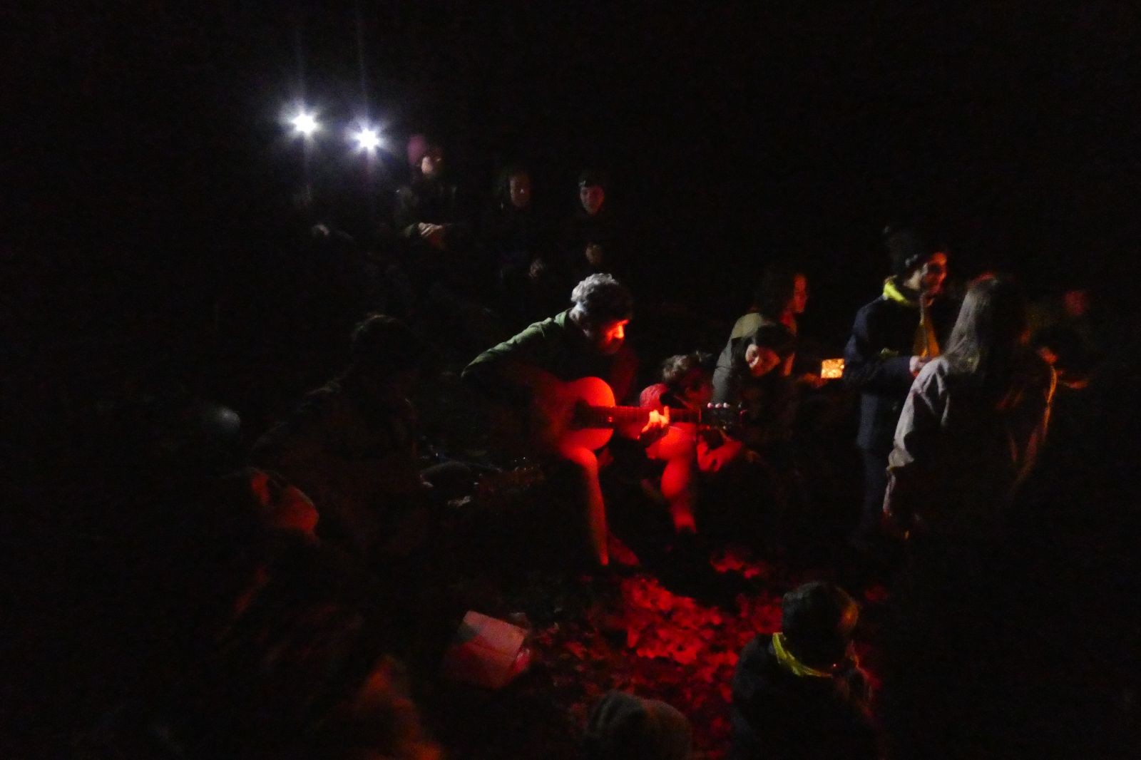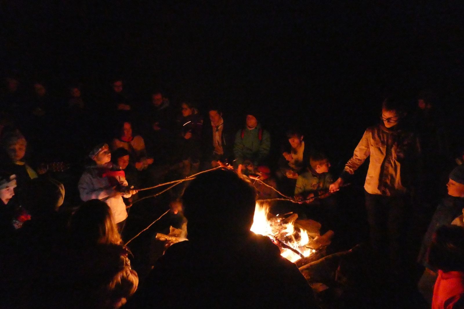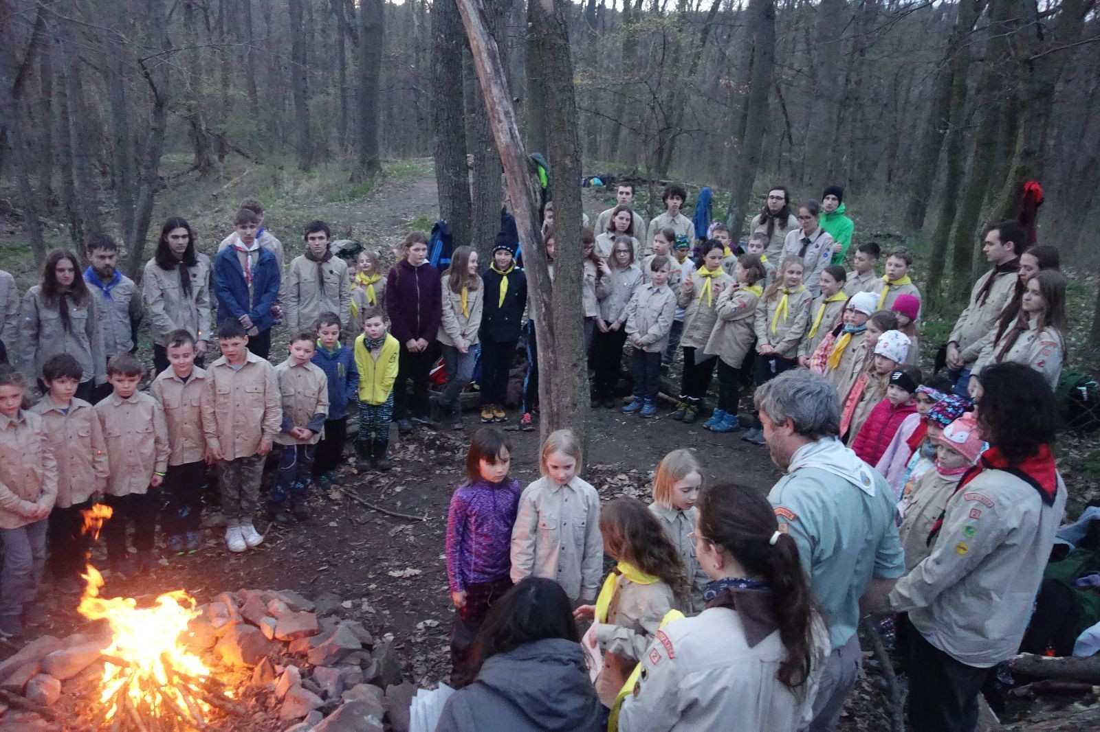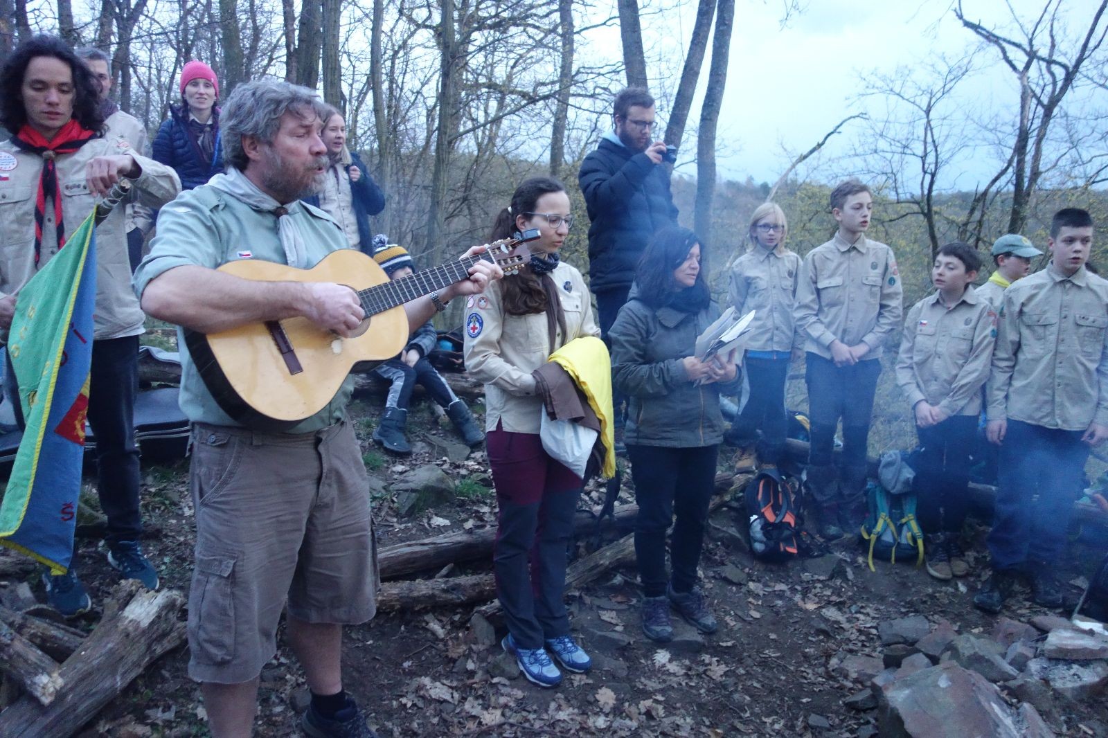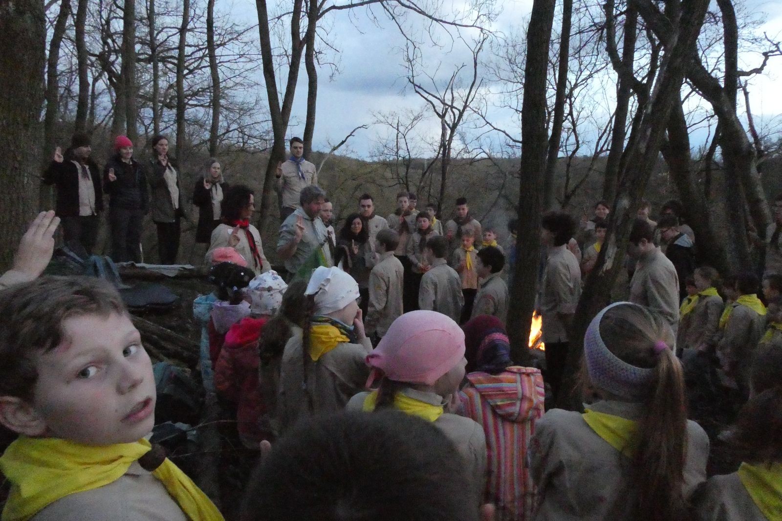 Po slavnostním slibu je oheň prohlášen za užitkový a hladoví lidičkové opékají špekáčky. Všude kolem to voní, ti co si už opekli, uvolňují místo u ohně dalším. A písničky. Čtyři bytelný kola, Tři kříže, Peggy, Pověste ho vejš…. Kdo zrovna nemá pusu plnou jídla, zpívá. A zní to moc hezky.