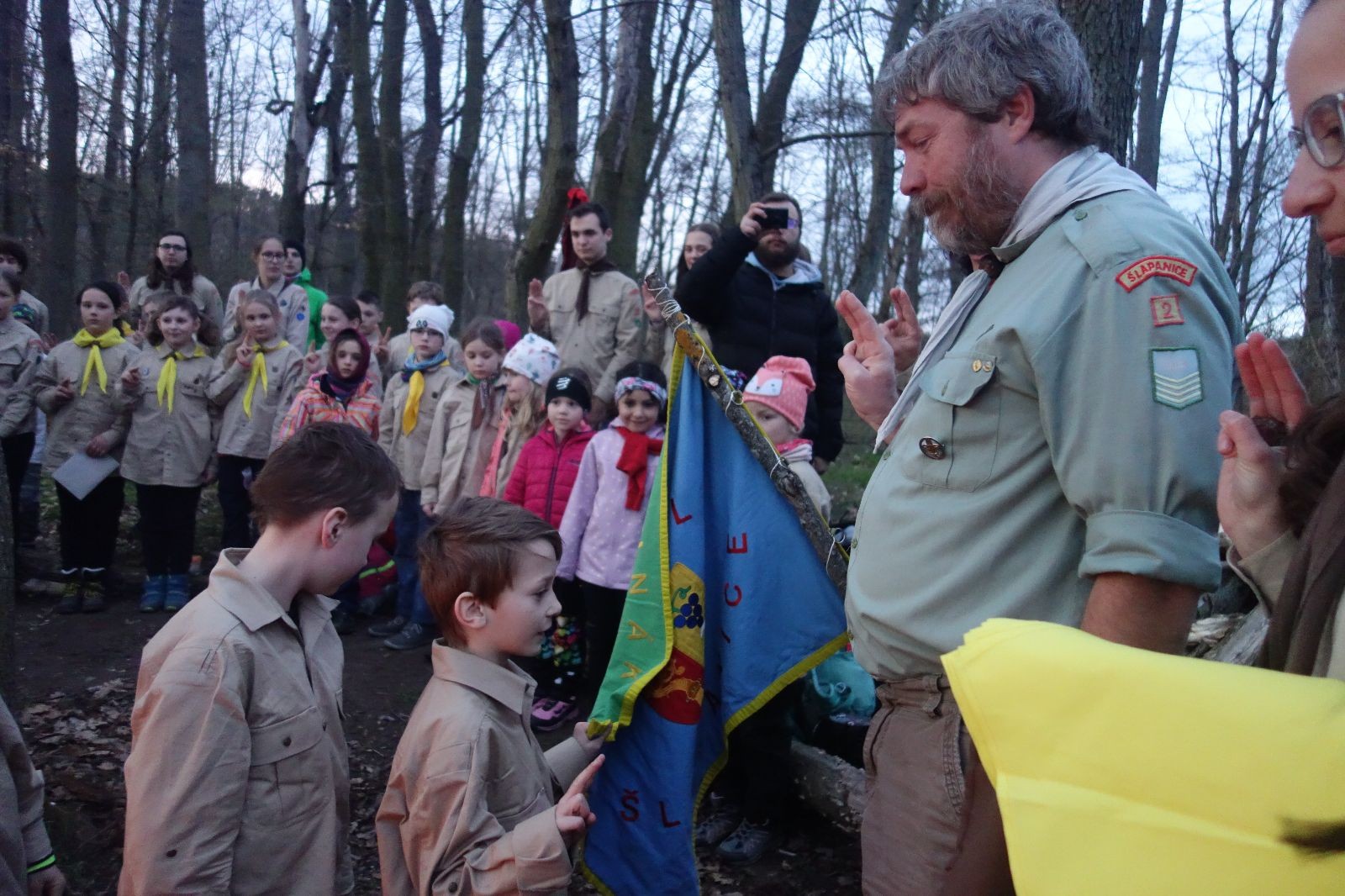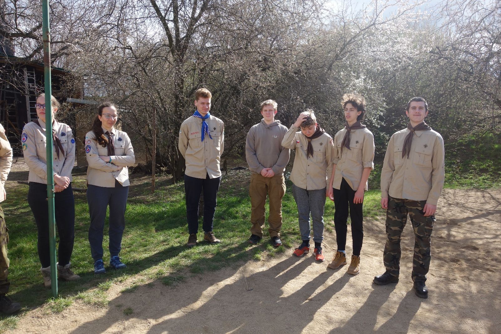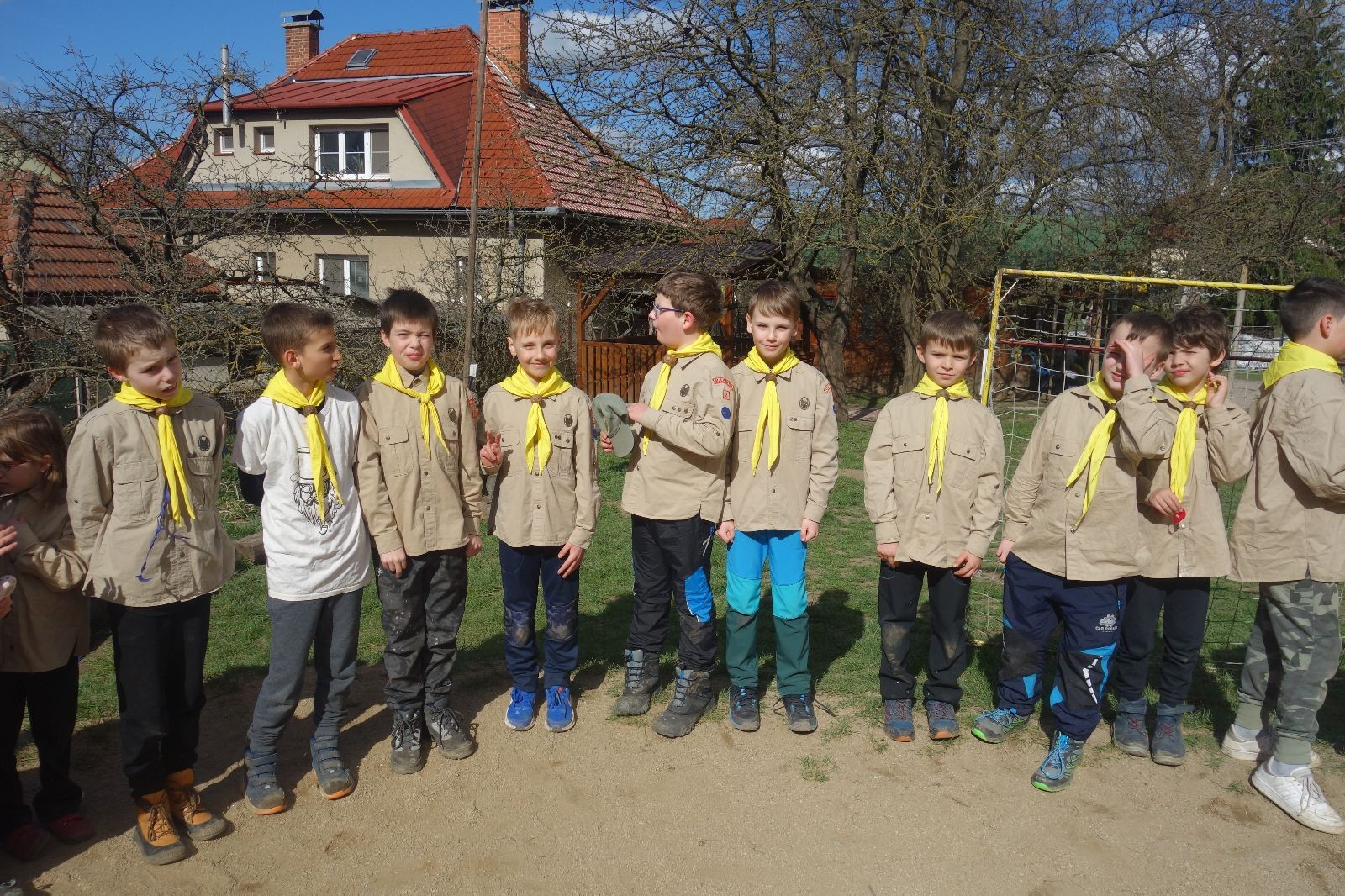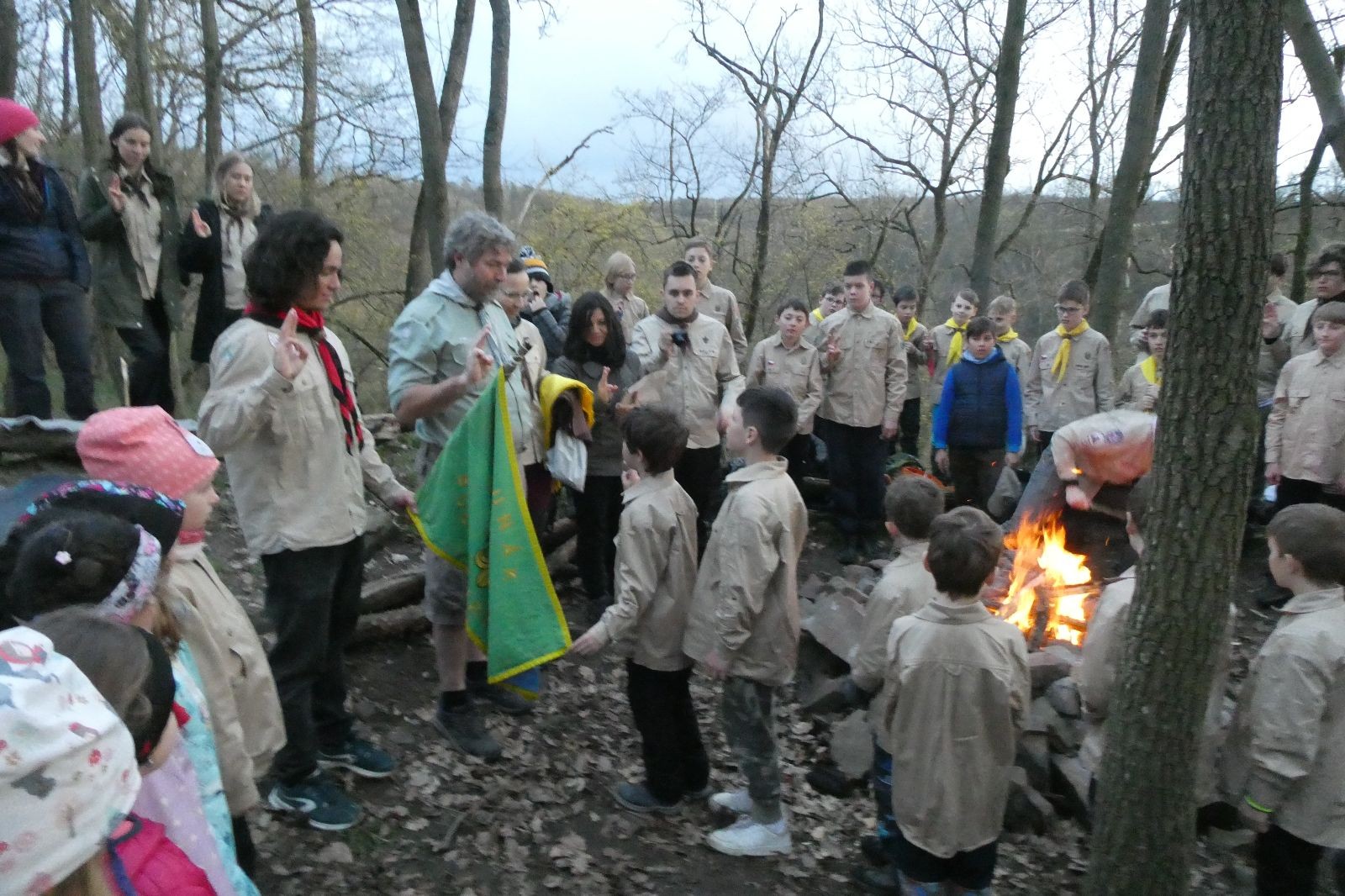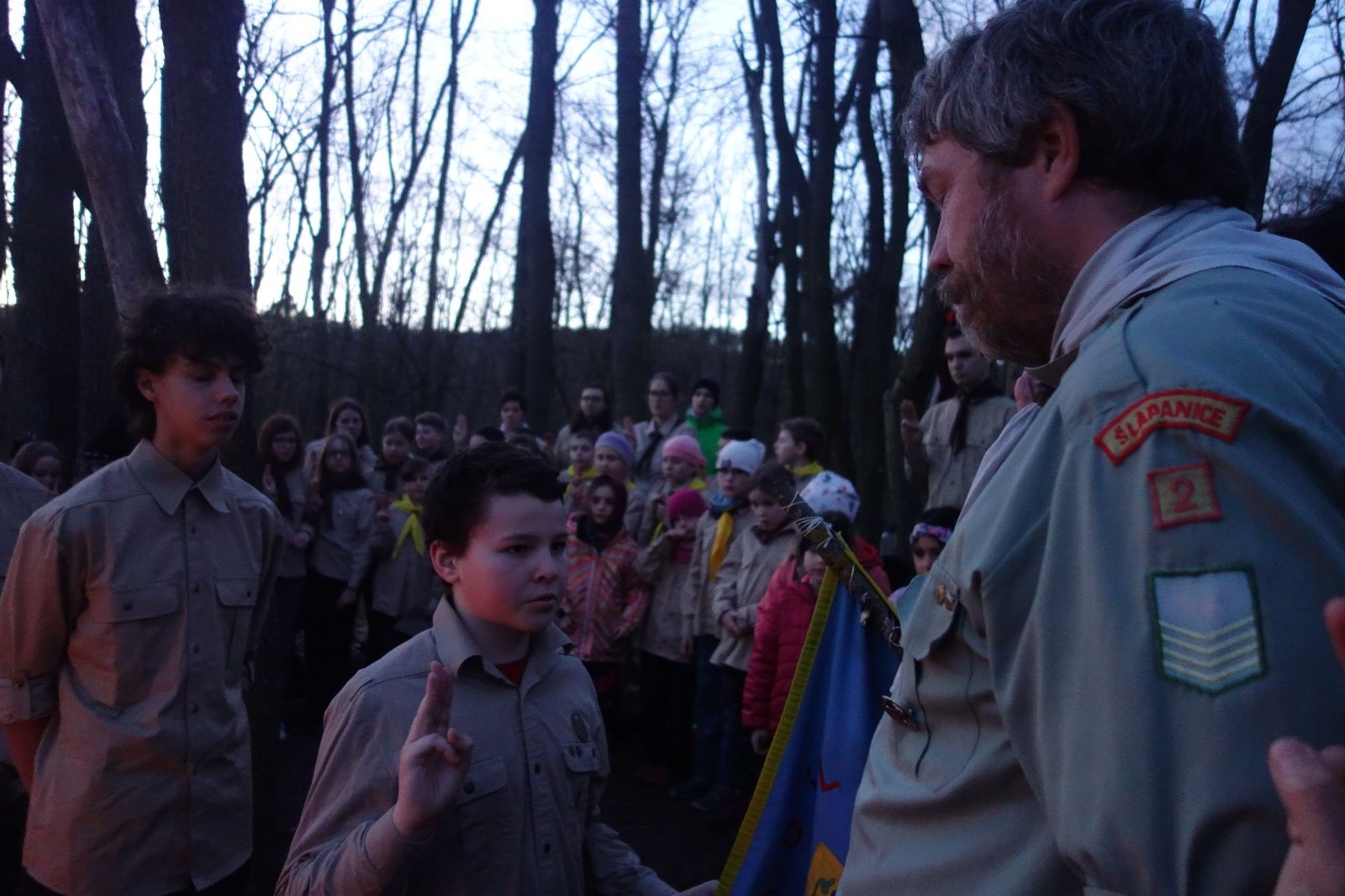 A na řadu přichází sliby. 10 světlušek, většina z Lasiček. Pak 8 vlčat, většina od Lachtanů. 4 skautky – 3 Sovičky a jedna Kudlanka. A skauti. Těch je 10 – 2 Vlci, 4 Sršni a 4 Kobři. Celkem 32 lidiček.