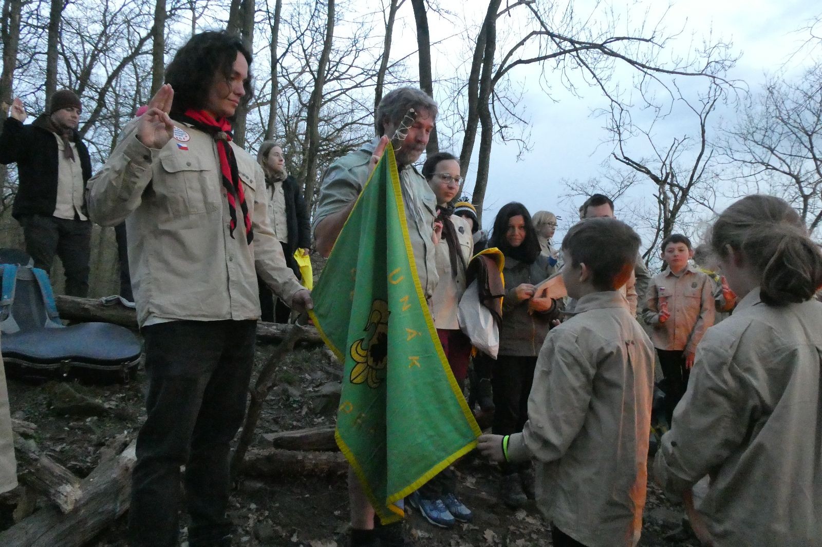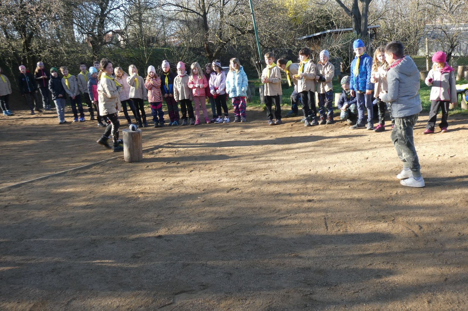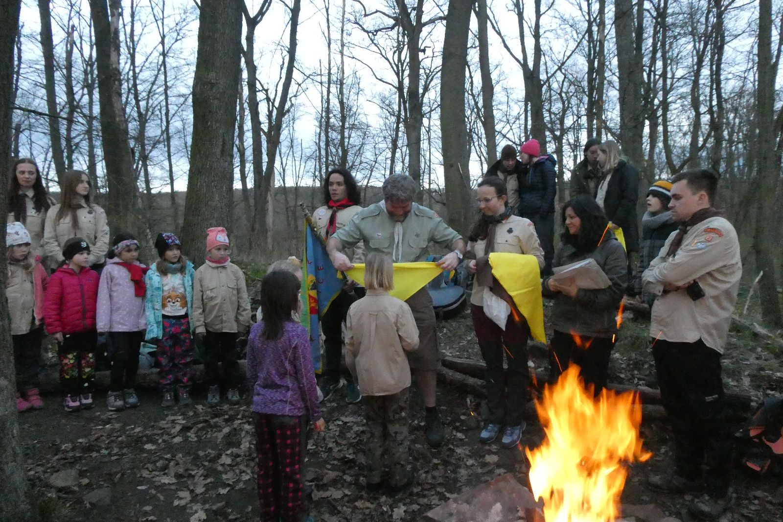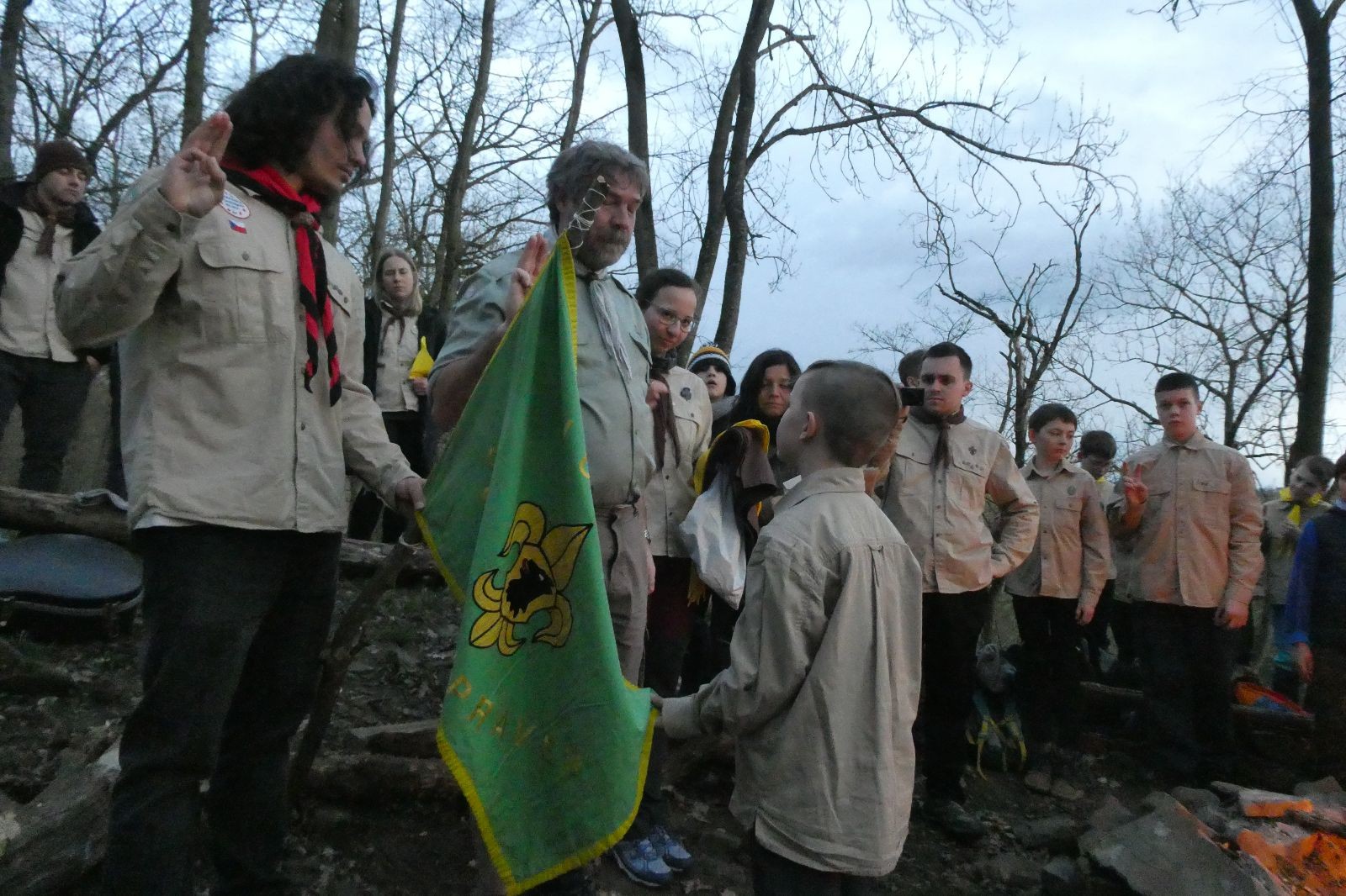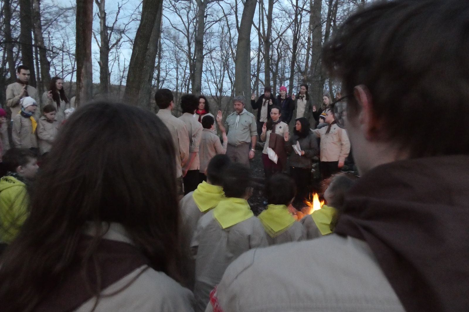 A na řadu přichází sliby. 10 světlušek, většina z Lasiček. Pak 8 vlčat, většina od Lachtanů. 4 skautky – 3 Sovičky a jedna Kudlanka. A skauti. Těch je 10 – 2 Vlci, 4 Sršni a 4 Kobři. Celkem 32 lidiček.