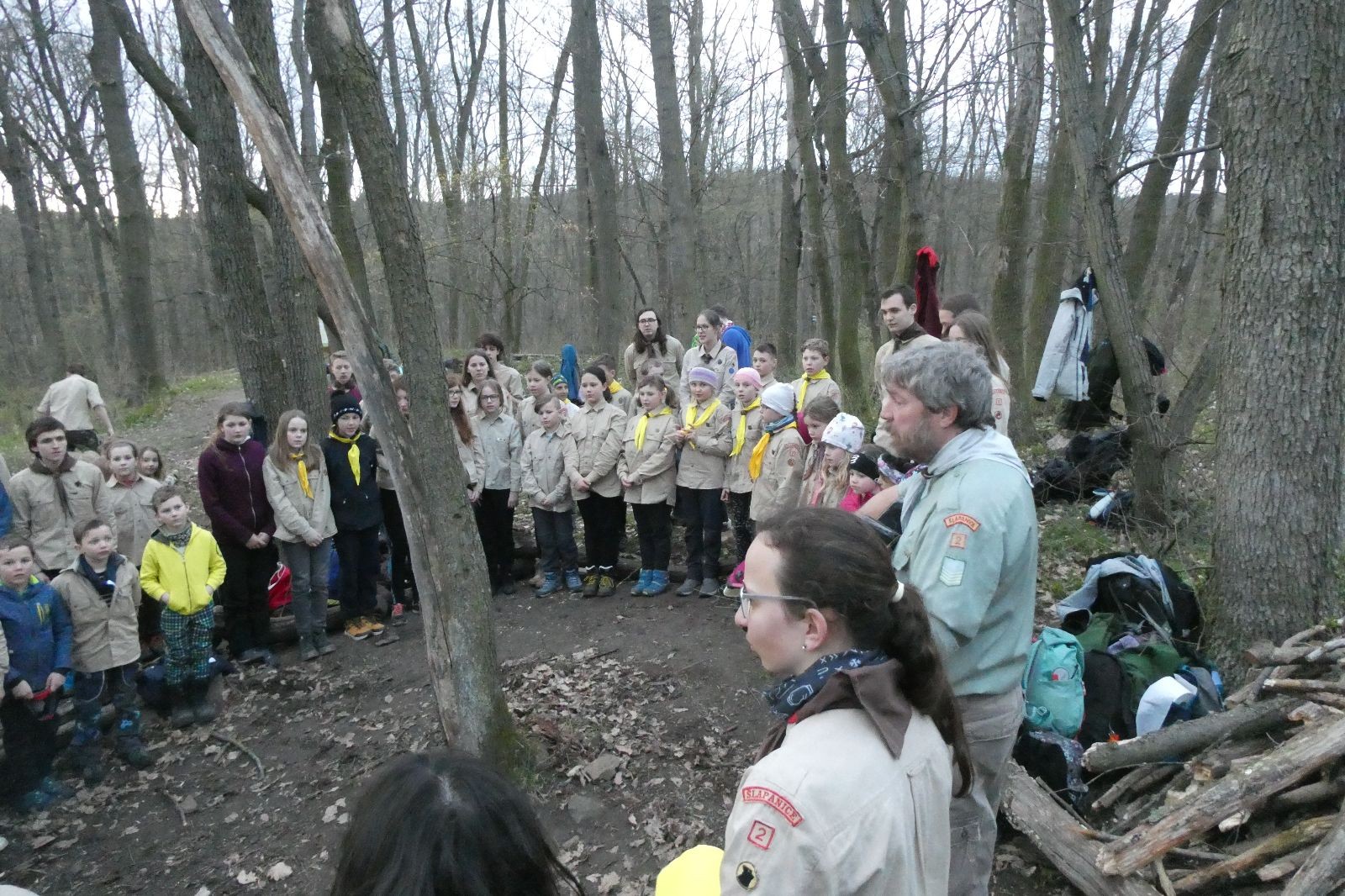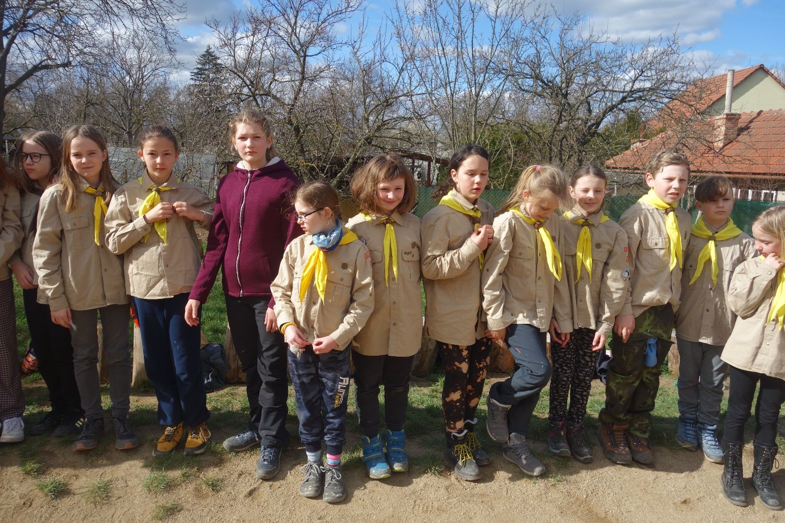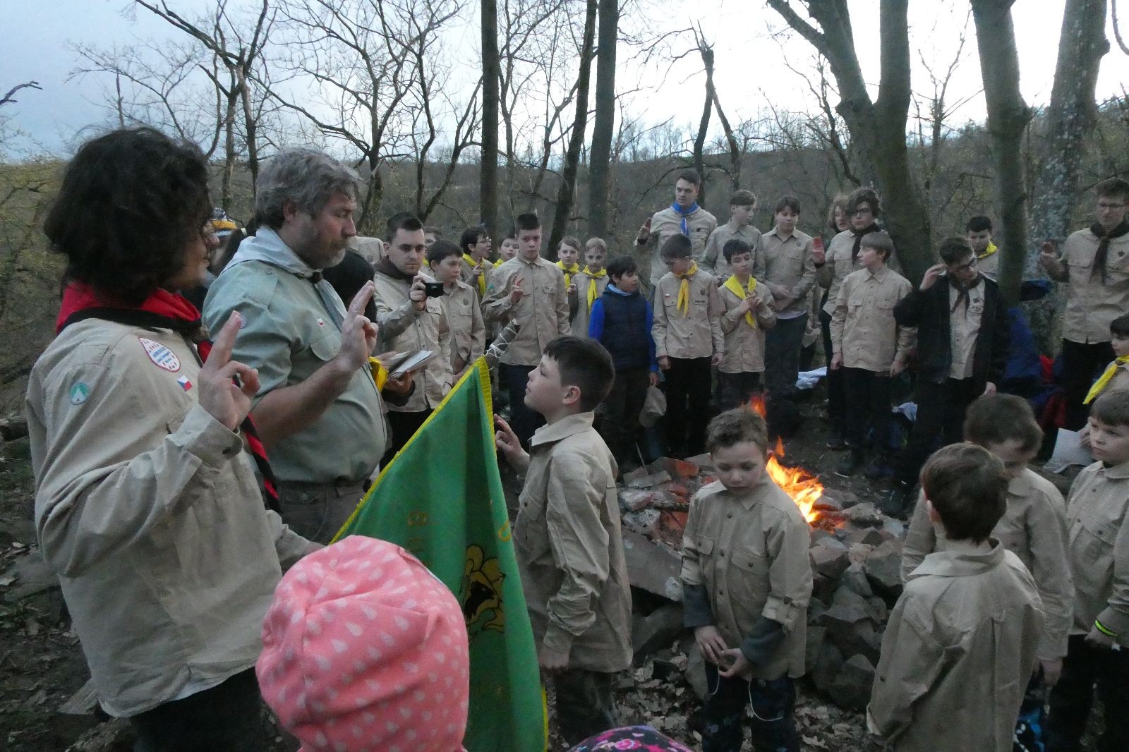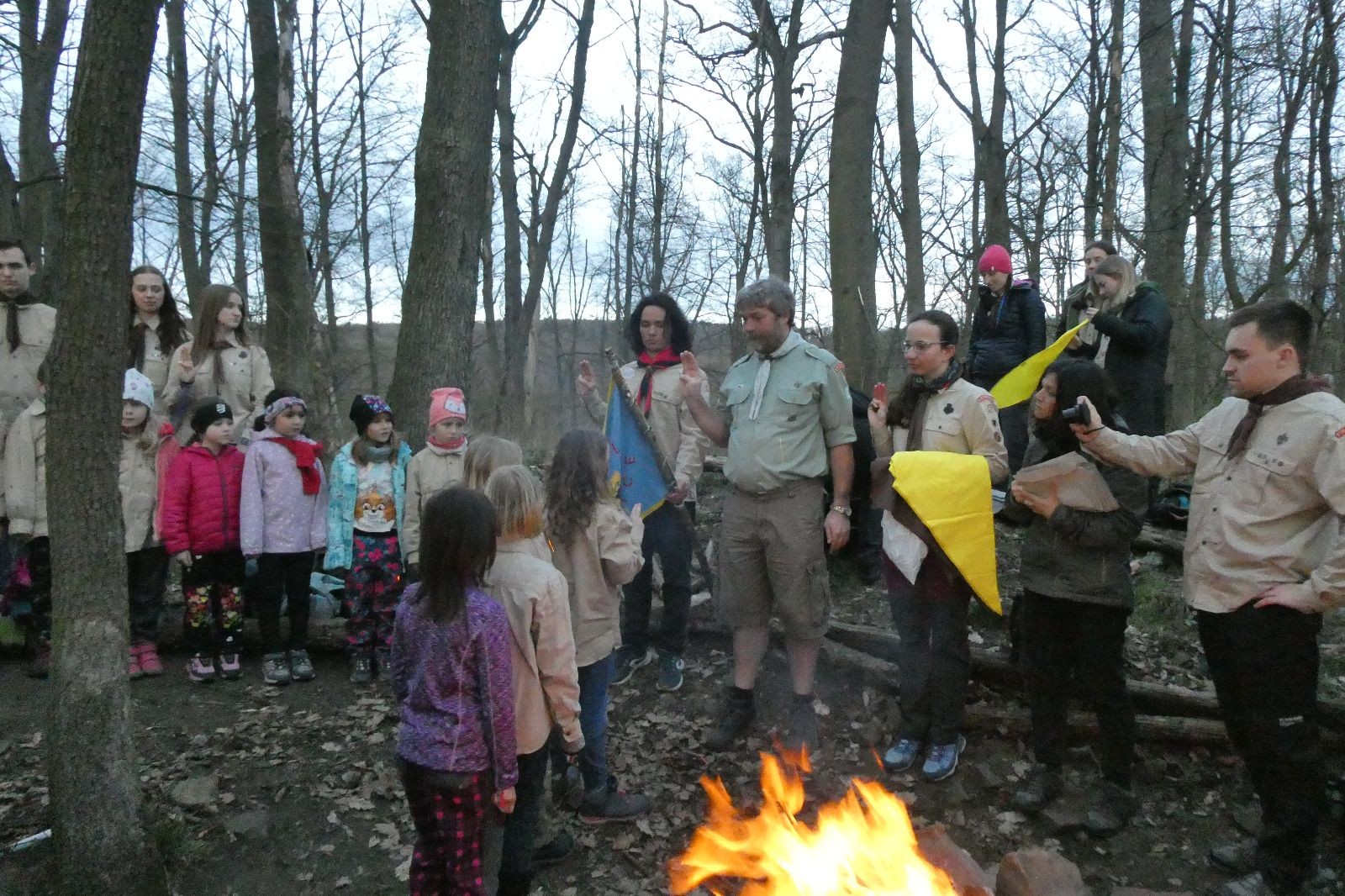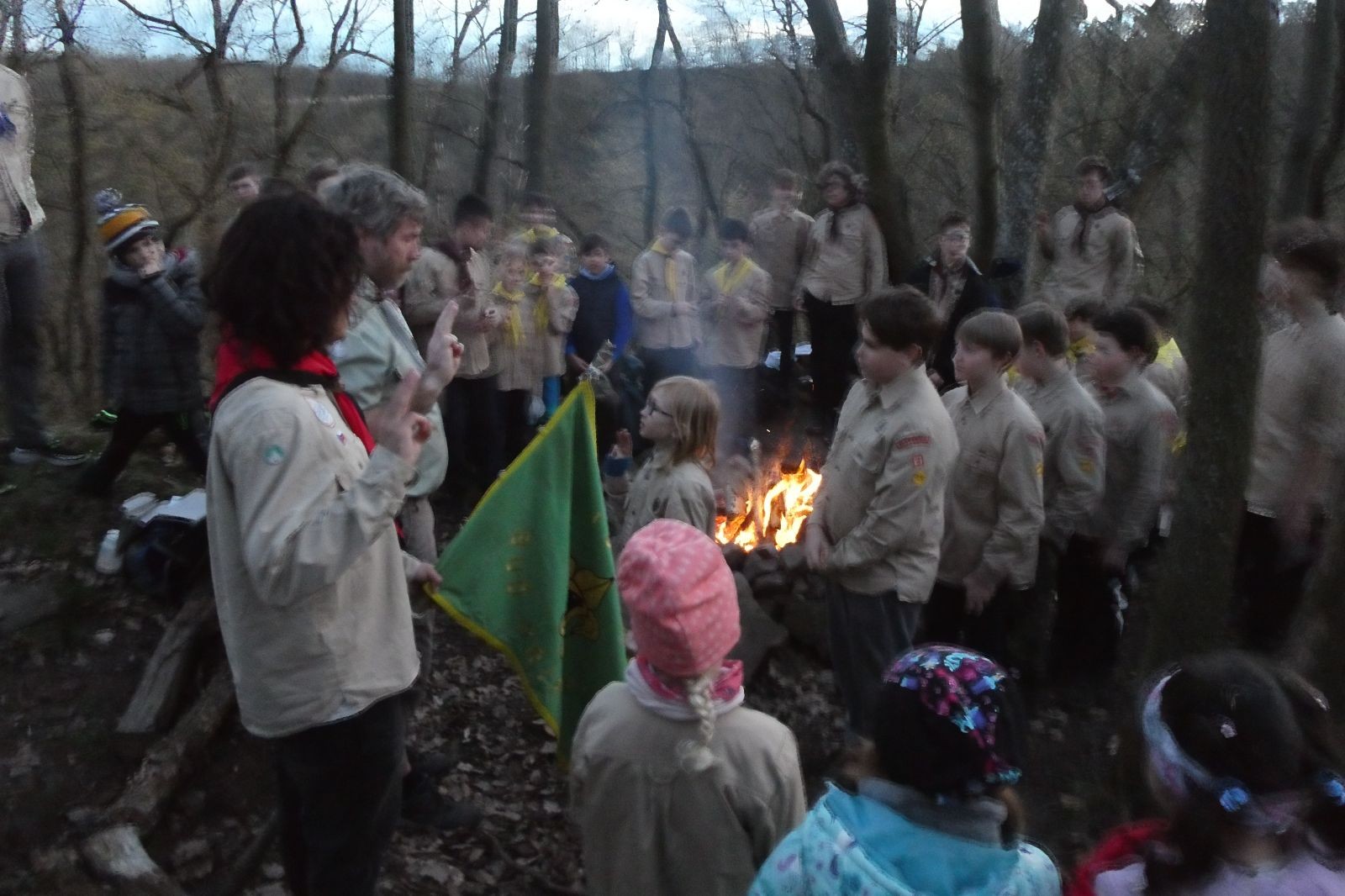 A na řadu přichází sliby. 10 světlušek, většina z Lasiček. Pak 8 vlčat, většina od Lachtanů. 4 skautky – 3 Sovičky a jedna Kudlanka. A skauti. Těch je 10 – 2 Vlci, 4 Sršni a 4 Kobři. Celkem 32 lidiček.
