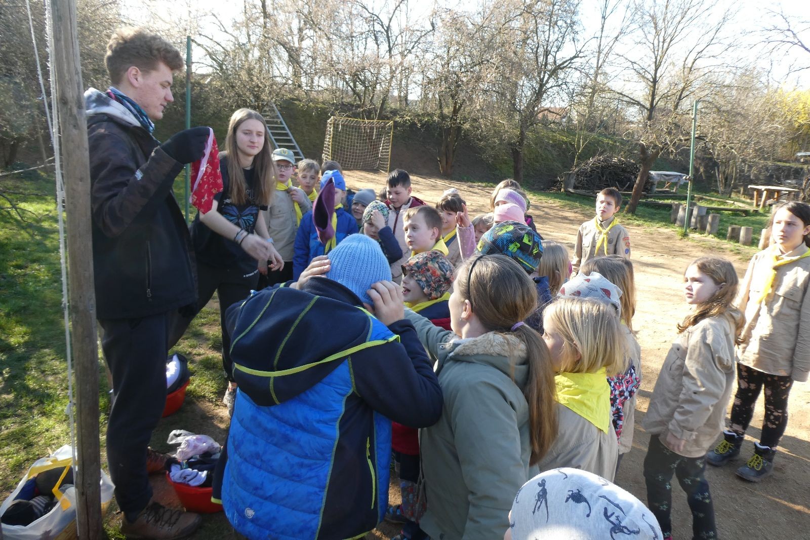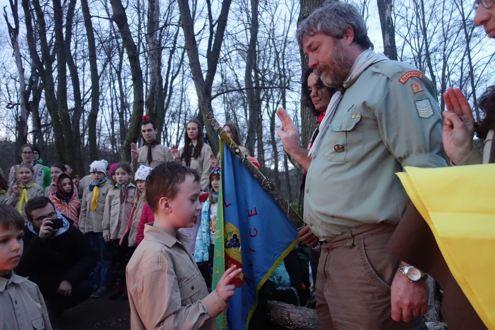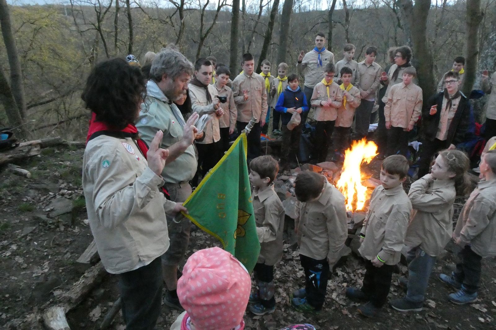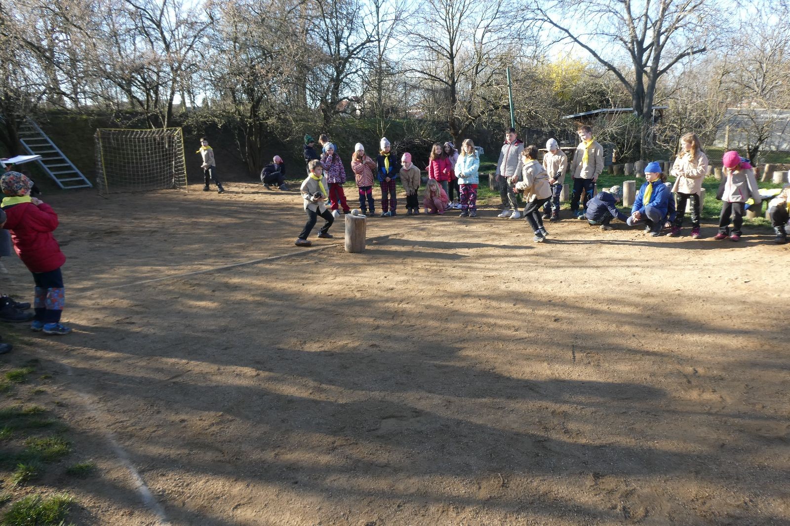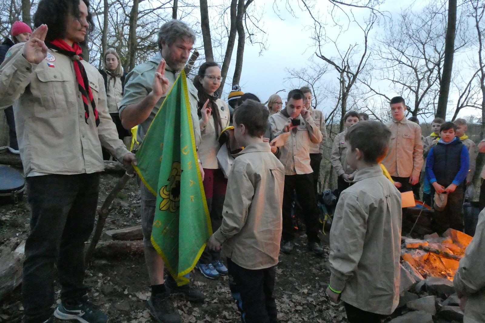 A na řadu přichází sliby. 10 světlušek, většina z Lasiček. Pak 8 vlčat, většina od Lachtanů. 4 skautky – 3 Sovičky a jedna Kudlanka. A skauti. Těch je 10 – 2 Vlci, 4 Sršni a 4 Kobři. Celkem 32 lidiček.